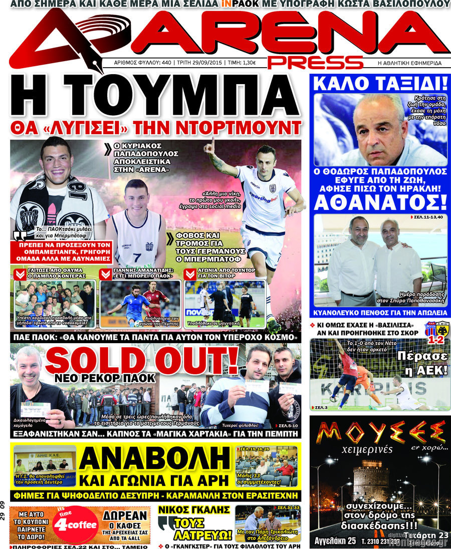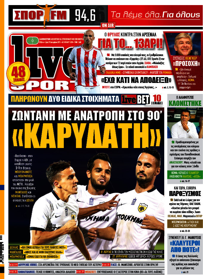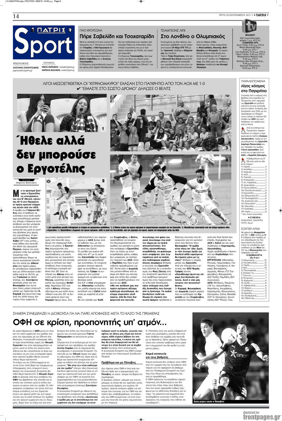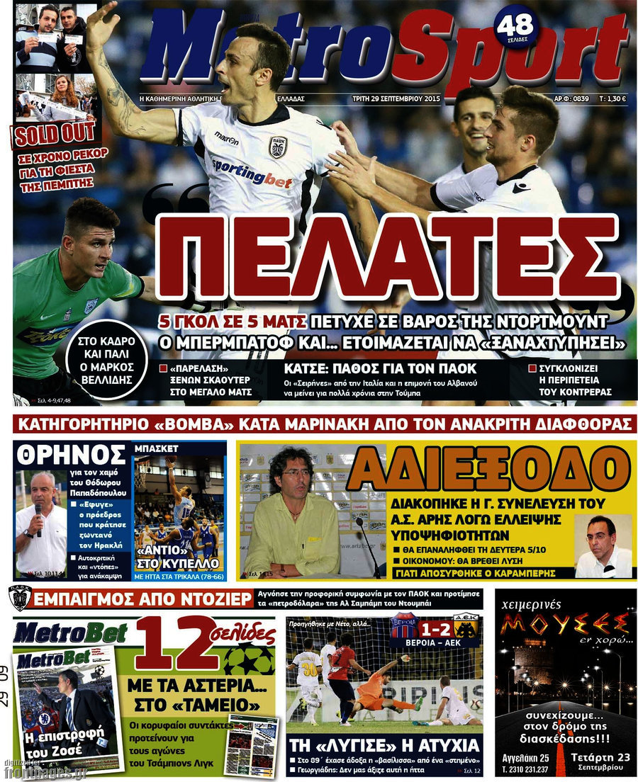Οι αθλητικές εφημερίδες 29/9/2015 Enikos Newsroom 07:28, Τρίτη 29 Σεπτεμβρίου 2015 Media Διαβάστε τα σημερινά πρωτοσέλιδα των αθλητικών εφημερίδων: ΑΘΛΗΤΙΚΕΣ ΕΦΗΜΕΡΙΔΕΣ ΠΡΩΤΟΣΕΛΙΔΑ Μοιράσου το: σχολίασε κι εσύ (0 σχόλια) Ακολουθήστε το enikos.gr στο Google News και μάθετε πρώτοι όλες τις ειδήσεις Δείτε όλες τις τελευταίες ειδήσεις από την Ελλάδα και τον Κόσμο στο enikos.gr Ειδήσεις Ροή Ειδήσεων 4 ώρες πριν Χριστούγεννα στα μπλόκα: Επιμένουν στις κινητοποιήσεις τους οι αγρότες – Ανοίγουν τα διόδια το Σαββατοκύριακο 4 ώρες πριν Ουκρανία: Η άνευ προηγουμένου επίθεση σε ρωσικό τάνκερ στη Μεσόγειο και το μήνυμα προς στον Πούτιν – Το «μακρύ χέρι» του Κιέβου 3 ώρες πριν Πούτιν: Τα μηνύματα σε Ευρώπη και ΝΑΤΟ από το μαραθώνιο «σόου» του – Η απαίτηση για «σεβασμό» και η ειρήνη «με τους όρους» της Μόσχας 4 ώρες πριν Τραμπ: Δεν αποκλείει την πιθανότητα ενός πολέμου στη Βενεζουέλα – «Ο Μαδούρο ξέρει καλύτερα από τον καθένα τι ακριβώς θέλω» 5 ώρες πριν Συνεχίζει να προκαλεί ο Μίτσκοσκι: «Για μένα το όνομα Μακεδονία είναι ιερό» 3 ώρες πριν Ανακαλύφθηκαν αρχαία χρυσά νομίσματα 2.200 ετών που απεικονίζουν τον θεό Απόλλωνα – Η άγνωστη σύνδεση με τον Φίλιππο Β΄ της Μακεδονίας 4 ώρες πριν Ύπνος: Μια κρυφή κατάσταση του εγκεφάλου πριν από τον ύπνο μπορεί να είναι το “κλειδί” για υψηλή ευφυΐα και δημιουργικότητα 5 ώρες πριν Αριθμολογία: Οι άνθρωποι που έχουν γεννηθεί αυτές τις 4 ημερομηνίες, συχνά παρεξηγούνται – «Η καλοσύνη τους κρύβει τεράστια δύναμη» 6 ώρες πριν Ξεχάστε το καθάρισμα το Σαββατοκύριακο: Ο «κανόνας των 20 λεπτών» που θα σας λύσει τα χέρια 9 λεπτά πριν Εξάρχεια: Ένταση με μολότοφ, χημικά και κρότου λάμψης 25 λεπτά πριν ΗΠΑ: Τραγωδία στην Αλαμπάμα – Σκότωσε την δημοσιογράφο σύζυγό του και αυτοκτόνησε μπροστά στον 3χρονο γιο τους 39 λεπτά πριν Πρόταση γάμου στο ΣΕΦ κατά την διάρκεια του αγώνα Ολυμπιακός-Βιλερμπάν – Δείτε βίντεο 54 λεπτά πριν Euroleague: Επέστρεψε στις νίκες ο Ολυμπιακός, πήρε την ματσάρα της χρονιάς η Μπάρτσα – Τα αποτελέσματα και η βαθμολογία 1 ώρα πριν Συρία: Μαζικά πλήγματα των ΗΠΑ σε θέσεις του Ισλαμικού Κράτους – Χέγκσεθ: «Δεν είναι αρχή πολέμου, είναι μια δήλωση εκδίκησης» για το θάνατο των στρατιωτών μας ENIKOS NETWORK Το ΕΚΑΒ τιμήθηκε από την Ακαδημία Αθηνών για τα 40 χρόνια προσφοράς του Έχετε πραγματικά μεγάλη καρδιά; 10 χαρακτηριστικά όσων έχουν καλοσύνη Αναστολή μέτρων αναγκαστικής εκτέλεσης για κτηνοτρόφους που πλήττονται από την ευλογιά των αιγοπροβάτων Πλήρης επάρκεια προϊόντων στις λαϊκές της Αττικής, παρά τις αγροτικές κινητοποιήσεις – Τι απαντούν οι πωλητές Χαρτογραφώντας το «σημείο χωρίς επιστροφή»: Για πρώτη φορά αποκαλύπτεται με λεπτομέρεια το ακανθώδες όριο της ατμόσφαιρας τ... Η Google καταργεί τη λειτουργία «dark web report» – Πώς θα μπορούν οι χρήστες να διαγράφουν τα δεδομένα τους περισσότερα 22:42 , Παρασκευή 19 Δεκεμβρίου 2025 Γιώργος Γιαννόπουλος για “Το σόι σου”: “Είναι ευτυχία και ευλογία αυτή η σειρά” «Είναι ευτυχία και ευλογία η συγκυρία αυτής της σειράς», θα πει ο Γιώργος Γιαννόπουλος -ο αγαπ... 20:37 , Παρασκευή 19 Δεκεμβρίου 2025 Don’t Forget The Lyrics: Η Έλλη Κοκκίνου υποδέχεται 4 παίκτες που θα κάνουν τα πάντα για να μη χάσουν ούτε… μισή λέξη από τους στίχους Το «Don’t Forget The Lyrics» επιστρέφει απόψε, Παρασκευή 19 Δεκεμβρίου, στις 21:00 με νέο επει... 19:31 , Παρασκευή 19 Δεκεμβρίου 2025 GNTM: Απόψε ο μεγάλος τελικός για τους 4 φιναλίστ Έπειτα από μήνες γεμάτους μόδα, δημιουργία και 