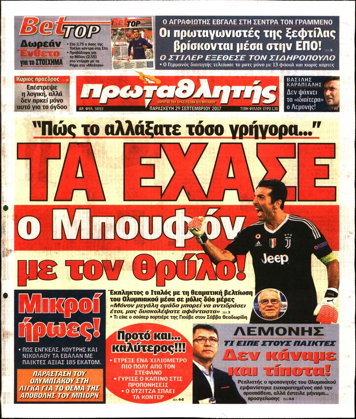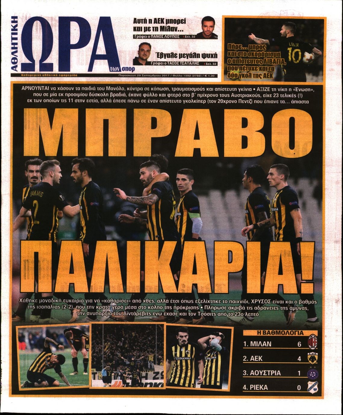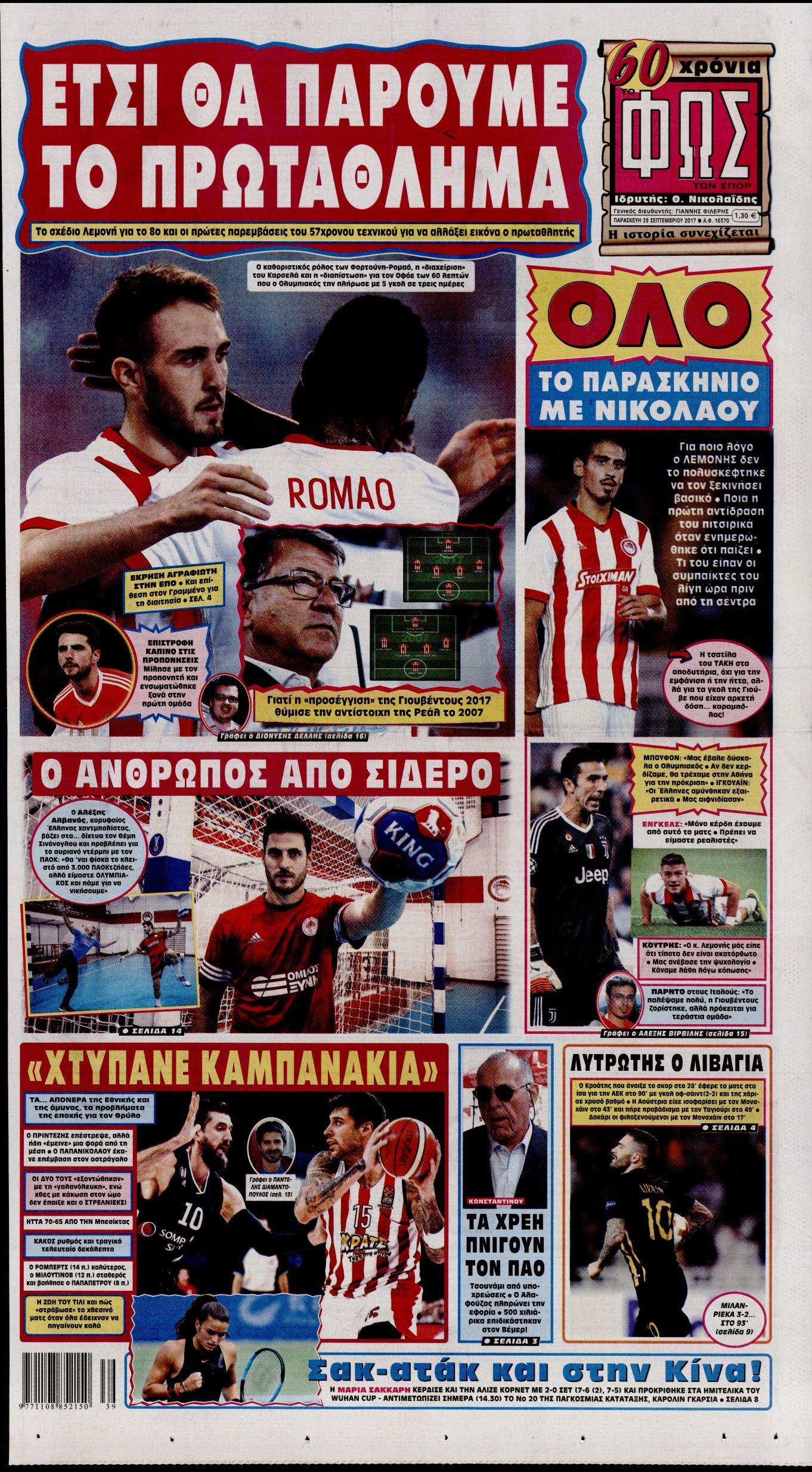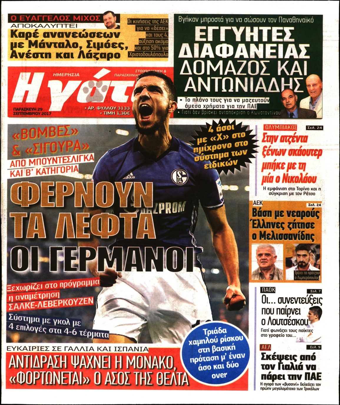 Οι αθλητικές εφημερίδες 29/9/2017 Enikos Newsroom 07:11, Παρασκευή 29 Σεπτεμβρίου 2017 Media Διαβάστε τα σημερινά πρωτοσέλιδα των αθλητικών εφημερίδων: ΑΘΛΗΤΙΚΕΣ ΕΦΗΜΕΡΙΔΕΣ ΠΡΩΤΟΣΕΛΙΔΑ Μοιράσου το: σχολίασε κι εσύ (0 σχόλια) Ακολουθήστε το enikos.gr στο Google News και μάθετε πρώτοι όλες τις ειδήσεις Δείτε όλες τις τελευταίες ειδήσεις από την Ελλάδα και τον Κόσμο στο enikos.gr Ειδήσεις Ροή Ειδήσεων 3 ώρες πριν Χριστούγεννα στα μπλόκα: Επιμένουν στις κινητοποιήσεις τους οι αγρότες – Ανοίγουν τα διόδια το Σαββατοκύριακο 4 ώρες πριν Ουκρανία: Η άνευ προηγουμένου επίθεση σε ρωσικό τάνκερ στη Μεσόγειο και το μήνυμα προς στον Πούτιν – Το «μακρύ χέρι» του Κιέβου 3 ώρες πριν Πούτιν: Τα μηνύματα σε Ευρώπη και ΝΑΤΟ από το μαραθώνιο «σόου» του – Η απαίτηση για «σεβασμό» και η ειρήνη «με τους όρους» της Μόσχας 4 ώρες πριν Τραμπ: Δεν αποκλείει την πιθανότητα ενός πολέμου στη Βενεζουέλα – «Ο Μαδούρο ξέρει καλύτερα από τον καθένα τι ακριβώς θέλω» 4 ώρες πριν Συνεχίζει να προκαλεί ο Μίτσκοσκι: «Για μένα το όνομα Μακεδονία είναι ιερό» 3 ώρες πριν Ανακαλύφθηκαν αρχαία χρυσά νομίσματα 2.200 ετών που απεικονίζουν τον θεό Απόλλωνα – Η άγνωστη σύνδεση με τον Φίλιππο Β΄ της Μακεδονίας 4 ώρες πριν Ύπνος: Μια κρυφή κατάσταση του εγκεφάλου πριν από τον ύπνο μπορεί να είναι το “κλειδί” για υψηλή ευφυΐα και δημιουργικότητα 5 ώρες πριν Αριθμολογία: Οι άνθρωποι που έχουν γεννηθεί αυτές τις 4 ημερομηνίες, συχνά παρεξηγούνται – «Η καλοσύνη τους κρύβει τεράστια δύναμη» 6 ώρες πριν Ξεχάστε το καθάρισμα το Σαββατοκύριακο: Ο «κανόνας των 20 λεπτών» που θα σας λύσει τα χέρια 14 λεπτά πριν Πρόταση γάμου στο ΣΕΦ κατά την διάρκεια του αγώνα Ολυμπιακός-Βιλερμπάν – Δείτε βίντεο 29 λεπτά πριν Euroleague: Επέστρεψε στις νίκες ο Ολυμπιακός, πήρε την ματσάρα της χρονιάς η Μπάρτσα – Τα αποτελέσματα και η βαθμολογία 44 λεπτά πριν Συρία: Μαζικά πλήγματα των ΗΠΑ σε θέσεις του Ισλαμικού Κράτους – Χέγκσεθ: «Δεν είναι αρχή πολέμου, είναι μια δήλωση εκδίκησης» για το θάνατο των στρατιωτών μας 56 λεπτά πριν Ουκρανία: Ολοκληρώθηκαν οι συνομιλίες με τους Αμερικανούς κι Ευρωπαίους διαπραγματευτές 1 ώρα πριν Μπαρτσελόνα – Μπασκόνια 134-124: Οι «μπλαουγκράνα» πήραν το ματς της χρονιάς ύστερα από τρεις παρατάσεις ENIKOS NETWORK Το ΕΚΑΒ τιμήθηκε από την Ακαδημία Αθηνών για τα 40 χρόνια προσφοράς του Έχετε πραγματικά μεγάλη καρδιά; 10 χαρακτηριστικά όσων έχουν καλοσύνη Αναστολή μέτρων αναγκαστικής εκτέλεσης για κτηνοτρόφους που πλήττονται από την ευλογιά των αιγοπροβάτων Πλήρης επάρκεια προϊόντων στις λαϊκές της Αττικής, παρά τις αγροτικές κινητοποιήσεις – Τι απαντούν οι πωλητές Χαρτογραφώντας το «σημείο χωρίς επιστροφή»: Για πρώτη φορά αποκαλύπτεται με λεπτομέρεια το ακανθώδες όριο της ατμόσφαιρας τ... Η Google καταργεί τη λειτουργία «dark web report» – Πώς θα μπορούν οι χρήστες να διαγράφουν τα δεδομένα τους περισσότερα 22:42 , Παρασκευή 19 Δεκεμβρίου 2025 Γιώργος Γιαννόπουλος για “Το σόι σου”: “Είναι ευτυχία και ευλογία αυτή η σειρά” «Είναι ευτυχία και ευλογία η συγκυρία αυτής της σειράς», θα πει ο Γιώργος Γιαννόπουλος -ο αγαπ... 20:37 , Παρασκευή 19 Δεκεμβρίου 2025 Don’t Forget The Lyrics: Η Έλλη Κοκκίνου υποδέχεται 4 παίκτες που θα κάνουν τα πάντα για να μη χάσουν ούτε… μισή λέξη από τους στίχους Το «Don’t Forget The Lyrics» επιστρέφει απόψε, Παρασκευή 19 Δεκεμβρίου, στις 21:00 με νέο επει... 19:31 , Παρασκευή 19 Δεκεμβρίου 2025 GNTM: Απόψε ο μεγάλος τελικός για τους 4 φιναλίστ Έπειτα από μήν