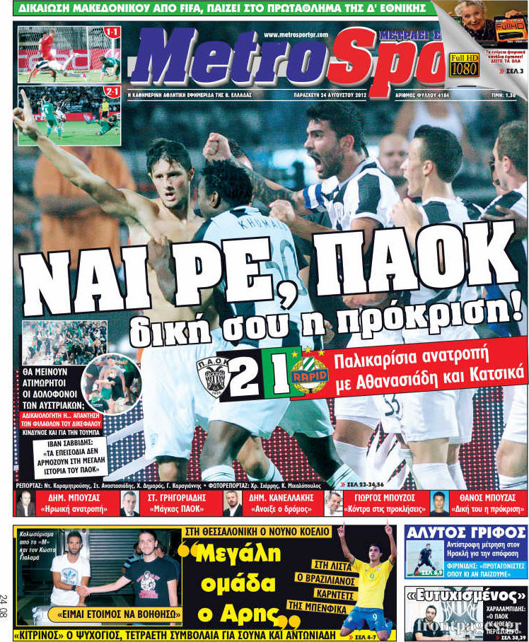 Διαβάστε τα σημερινά πρωτοσέλιδα των αθλητικών εφημερίδων.
