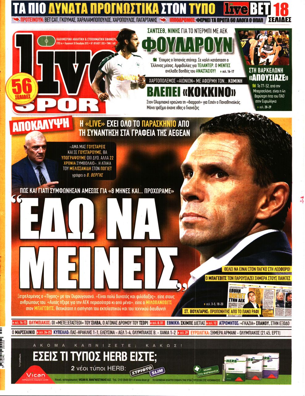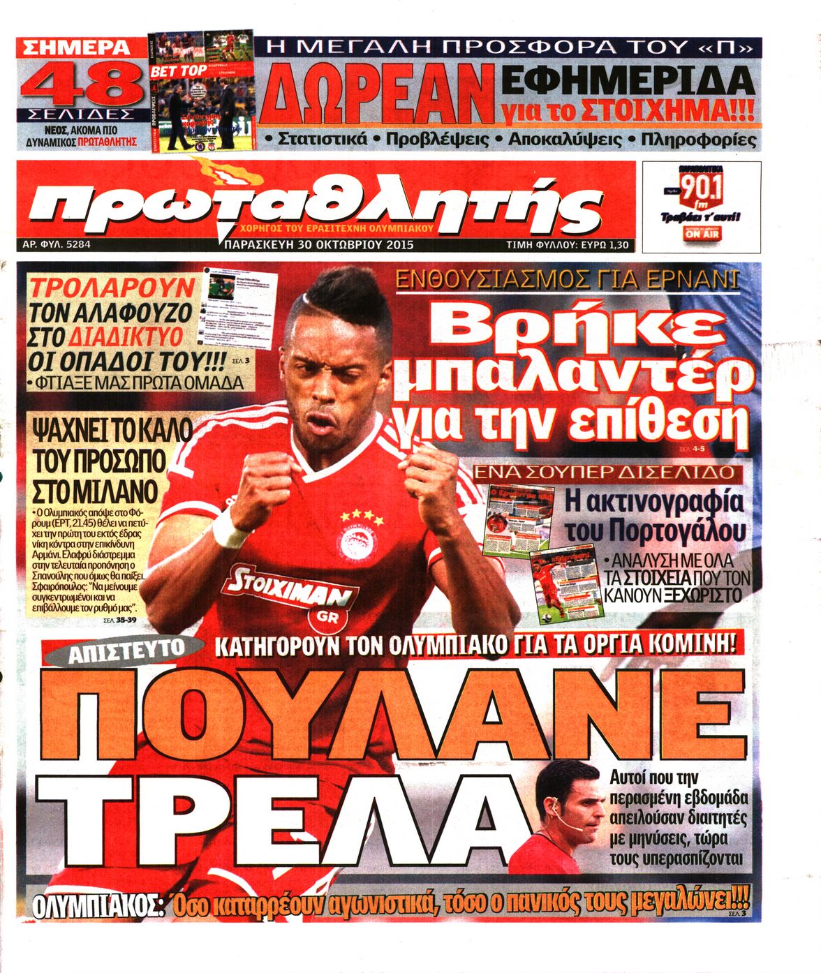 Οι αθλητικές εφημερίδες 30/10/2015 Enikos Newsroom 06:11, Παρασκευή 30 Οκτωβρίου 2015 Media Διαβάστε τα σημερινά πρωτοσέλιδα των αθλητικών εφημερίδων: ΑΘΛΗΤΙΚΕΣ ΕΦΗΜΕΡΙΔΕΣ ΠΡΩΤΟΣΕΛΙΔΑ Μοιράσου το: σχολίασε κι εσύ (0 σχόλια) Ακολουθήστε το enikos.gr στο Google News και μάθετε πρώτοι όλες τις ειδήσεις Δείτε όλες τις τελευταίες ειδήσεις από την Ελλάδα και τον Κόσμο στο enikos.gr Ειδήσεις Ροή Ειδήσεων 2 ώρες πριν Ζελένσκι: Μόνο οι ΗΠΑ και ο Τραμπ μπορούν να πιέσουν τη Ρωσία να βάλει τέλος στον πόλεμο 2 ώρες πριν Φοινικούντα: Προφυλακιστέος ο 30χρονος για συνέργεια στη διπλή δολοφονία – Και άλλα πρόσωπα στο «μικροσκόπιο» 3 ώρες πριν Κυριάκος Μητσοτάκης: Στην Ιερουσαλήμ την Τρίτη ο Πρωθυπουργός για την τριμερή Ελλάδας, Κύπρου, Ισραήλ – Θα συναντηθεί και με τον Αμπάς 6 ώρες πριν Πώς δρούσε το κύκλωμα που διακινούσε ναρκωτικά σε σχολεία – Υπέβαλαν σε βασανιστήρια όσους δεν τηρούσαν τους «κανόνες πειθαρχίας» 3 ώρες πριν Πάπας Λέων: Όταν έχει αϋπνίες επενδύει παραγωγικά τον χρόνο του – Ποιο παιχνίδι παίζει στο κινητό 2 ώρες πριν Αριθμολογία: Ο αριθμός του φύλακα αγγέλου σας, με βάση τον μήνα γέννησής σας – «Έτσι σας στέλνει σημάδια το σύμπαν» 3 ώρες πριν Πώς να απαλλαγείτε από τη μυρωδιά του τηγανητού φαγητού: Το μυστικό βρίσκεται στην κουζίνα σας 4 ώρες πριν Μήπως οι γιορτές σας δεν είναι τόσο τέλειες; 7 χριστουγεννιάτικες συνήθειες που μαρτυρούν ότι μια οικογένεια είναι δυσλειτουργική 14 ώρες πριν Enerwave: Το νέο «ρεύμα» στη λιανική ενέργειας που αλλάζει την εμπειρία του καταναλωτή 10 λεπτά πριν Χριστούγεννα στα μπλόκα οι αγρότες: Άνοιξαν στα διόδια και μοίρασαν προϊόντα στους πολίτες – Νέα σύσκεψη την Κυριακή στη Νίκαια 20 λεπτά πριν Ολυμπιακός – Κηφισιά 1-1: Δεύτερη σερί ισοπαλία για τους Ερυθρόλευκους – Υπό… αμφισβήτηση η κορυφή της Super League 31 λεπτά πριν Κύκλωμα διακίνησης ναρκωτικών σε σχολεία: Τηλεφωνούσαν στους ανηλίκους την ώρα του μαθήματος – Οι διάλογοι-σοκ, τα «ψευδώνυμα» και τα βασανιστήρια 40 λεπτά πριν Χαβιέρ Μιλέι: Ο πρόεδρος της Αργεντινής χαιρετίζει την «πίεση των ΗΠΑ» στη Βενεζουέλα 47 λεπτά πριν Ξένια Τσίρκοβα: Έμαθε από την τηλεόραση ότι είναι η μεγάλη νικήτρια του GNTM – Η αντίδρασή της – ΒΙΝΤΕΟ ENIKOS NETWORK Οι γυναίκες αποκαλύπτουν το πιο ελκυστικό πράγμα που μπορεί να κάνει ένας άνδρας Ομορφιά και αντιγήρανση: Ειδικοί μιλούν για συσκευές περιποίησης του δέρματος Ακύρωση ΑΦΜ για απάτες – Ποιους βάζει στο στόχαστρο η ΑΑΔΕ Ρεύμα: Πώς μπορείτε να αλλάξετε πάροχο γρήγορα και εύκολα – Τα βήματα της διαδικασίας Χαρτογραφώντας το «σημείο χωρίς επιστροφή»: Για πρώτη φορά αποκαλύπτεται με λεπτομέρεια το ακανθώδες όριο της ατμόσφαιρας τ... Η Google καταργεί τη λειτουργία «dark web report» – Πώς θα μπορούν οι χρήστες να διαγράφουν τα δεδομένα τους περισσότερα 20:30 , Σάββατο 20 Δεκεμβρίου 2025 Αυτή την Κυριακή με τη Realnews: Instyle, μαζί Drive και Realnews Geopolitics Αυτή την Κυριακή με τη Realnews: Instyle, μαζί Drive και Realnews Geopolitics Instyle Η Άννα Ρ... 20:28 , Σάββατο 20 Δεκεμβρίου 2025 Ο ΑΝΤ1 γεμίζει τις γιορτές με μουσική – Ποιους καλλιτέχνες θα απολαύσουμε Φέτος στον ΑΝΤ1 γιορτάζουμε τις νύχτες μας παρέα με αγαπημένους καλλιτέχνες και μεγάλες μουσι... 18:19 , Σάββατο 20 Δεκεμβρίου 2025 HOTΕΛ ΕΛVIRA: Η Ελβίρα μαθαίνει πως ο Χάρι μένει κρυφά στο ξενοδοχείο του Παντελή Συνεχίζονται οι εκλογές για πρόεδρο, στο νέο επεισόδιο της κωμικής σειράς του MEGA, HOTΕΛ ΕΛVI... 14:04 , Σάββατο 20 Δεκεμβρίου 2025 Η Realnews αυτής της Κυριακής (21/12/2025) Με τίτλο: «Ασπίδα πρ