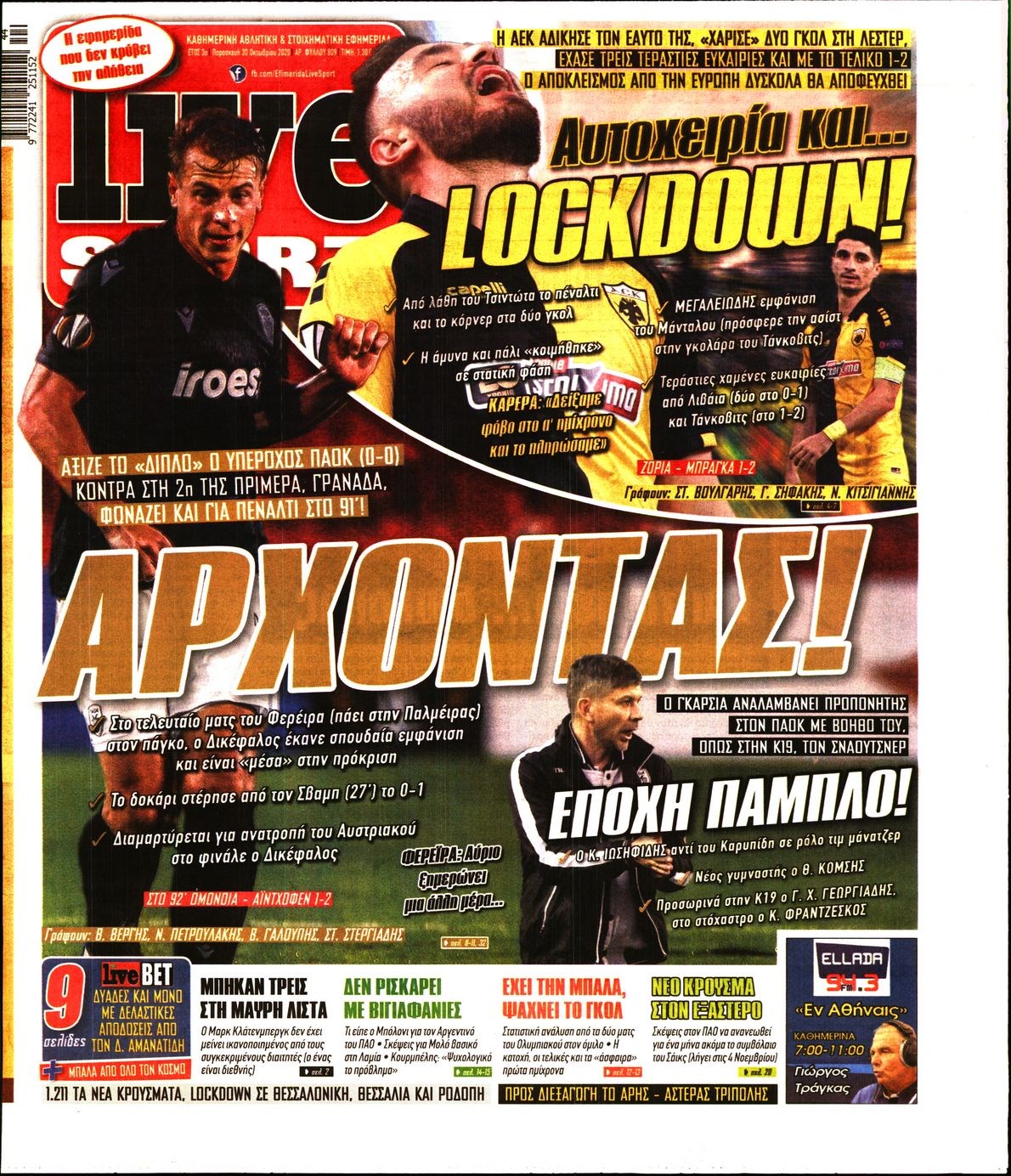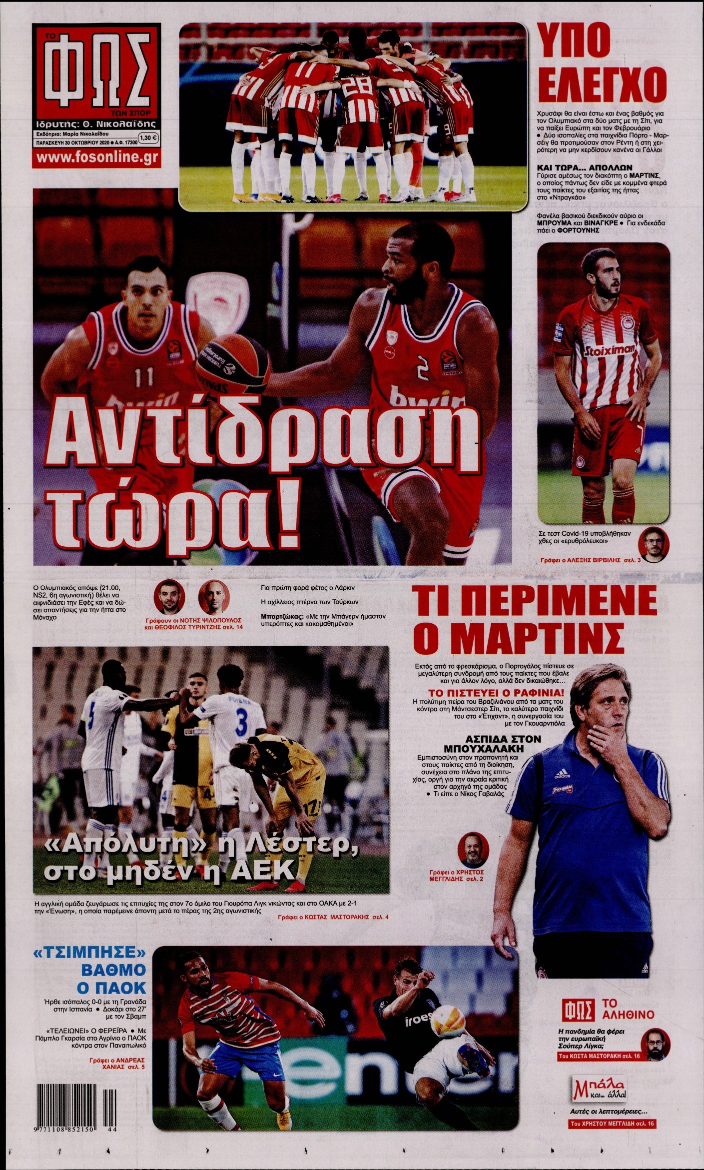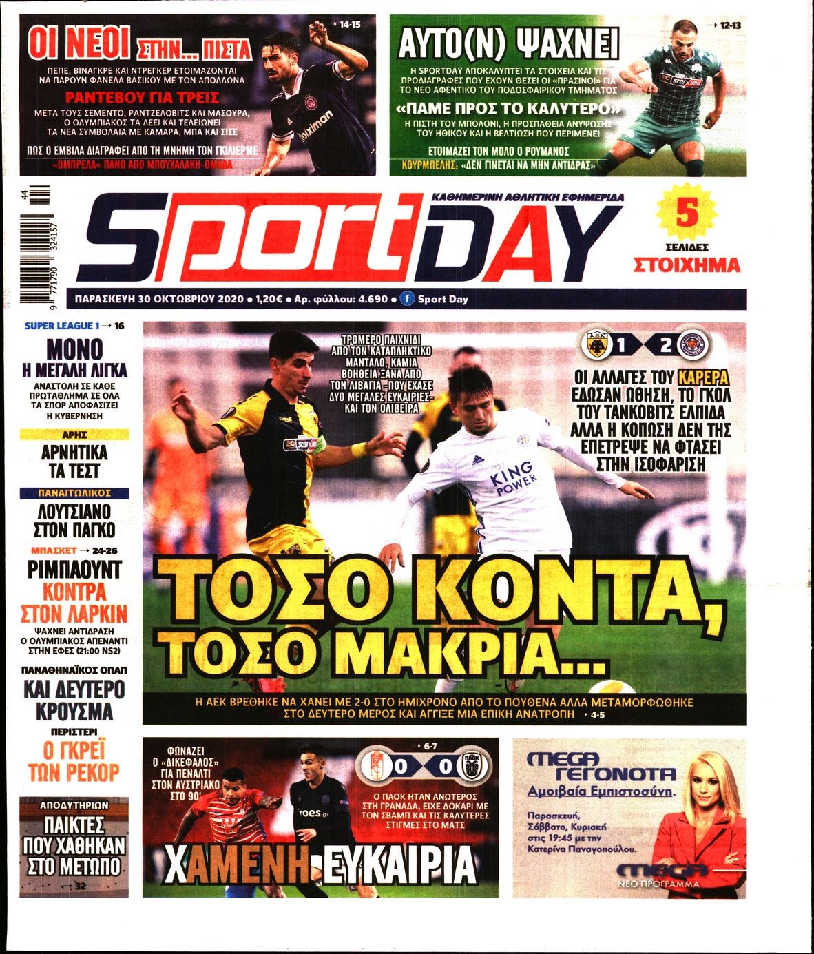 Οι αθλητικές εφημερίδες 30/10/2020 Διονύσης Νίκκας 06:41, Παρασκευή 30 Οκτωβρίου 2020 Media Διαβάστε τα πρωτοσέλιδα των αθλητικών εφημερίδων… ΑΘΛΗΤΙΚΕΣ ΕΦΗΜΕΡΙΔΕΣ Μοιράσου το: σχολίασε κι εσύ (0 σχόλια) Ακολουθήστε το enikos.gr στο Google News και μάθετε πρώτοι όλες τις ειδήσεις Δείτε όλες τις τελευταίες ειδήσεις από την Ελλάδα και τον Κόσμο στο enikos.gr Ειδήσεις Ροή Ειδήσεων 3 ώρες πριν Χριστούγεννα στα μπλόκα: Επιμένουν στις κινητοποιήσεις τους οι αγρότες – Ανοίγουν τα διόδια το Σαββατοκύριακο 3 ώρες πριν Ουκρανία: Η άνευ προηγουμένου επίθεση σε ρωσικό τάνκερ στη Μεσόγειο και το μήνυμα προς στον Πούτιν – Το «μακρύ χέρι» του Κιέβου 3 ώρες πριν Πούτιν: Τα μηνύματα σε Ευρώπη και ΝΑΤΟ από το μαραθώνιο «σόου» του – Η απαίτηση για «σεβασμό» και η ειρήνη «με τους όρους» της Μόσχας 3 ώρες πριν Τραμπ: Δεν αποκλείει την πιθανότητα ενός πολέμου στη Βενεζουέλα – «Ο Μαδούρο ξέρει καλύτερα από τον καθένα τι ακριβώς θέλω» 4 ώρες πριν Συνεχίζει να προκαλεί ο Μίτσκοσκι: «Για μένα το όνομα Μακεδονία είναι ιερό» 3 ώρες πριν Ανακαλύφθηκαν αρχαία χρυσά νομίσματα 2.200 ετών που απεικονίζουν τον θεό Απόλλωνα – Η άγνωστη σύνδεση με τον Φίλιππο Β΄ της Μακεδονίας 4 ώρες πριν Ύπνος: Μια κρυφή κατάσταση του εγκεφάλου πριν από τον ύπνο μπορεί να είναι το “κλειδί” για υψηλή ευφυΐα και δημιουργικότητα 5 ώρες πριν Αριθμολογία: Οι άνθρωποι που έχουν γεννηθεί αυτές τις 4 ημερομηνίες, συχνά παρεξηγούνται – «Η καλοσύνη τους κρύβει τεράστια δύναμη» 6 ώρες πριν Ξεχάστε το καθάρισμα το Σαββατοκύριακο: Ο «κανόνας των 20 λεπτών» που θα σας λύσει τα χέρια 10 λεπτά πριν Euroleague: Επέστρεψε στις νίκες ο Ολυμπιακός, πήρε την ματσάρα της χρονιάς η Μπάρτσα – Τα αποτελέσματα και η βαθμολογία 25 λεπτά πριν Συρία: Μαζικά πλήγματα των ΗΠΑ σε θέσεις του Ισλαμικού Κράτους – Χέγκσεθ: «Δεν είναι αρχή πολέμου, είναι μια δήλωση εκδίκησης» για το θάνατο των στρατιωτών μας 38 λεπτά πριν Ουκρανία: Ολοκληρώθηκαν οι συνομιλίες με τους Αμερικανούς κι Ευρωπαίους διαπραγματευτές 53 λεπτά πριν Μπαρτσελόνα – Μπασκόνια 134-124: Οι «μπλαουγκράνα» πήραν το ματς της χρονιάς ύστερα από τρεις παρατάσεις 1 ώρα πριν Φαίη Σκορδά: «Παλιότερα τα κομπλιμέντα τα προσπερνούσα, τώρα τα έχω ανάγκη» ENIKOS NETWORK Το ΕΚΑΒ τιμήθηκε από την Ακαδημία Αθηνών για τα 40 χρόνια προσφοράς του Έχετε πραγματικά μεγάλη καρδιά; 10 χαρακτηριστικά όσων έχουν καλοσύνη Αναστολή μέτρων αναγκαστικής εκτέλεσης για κτηνοτρόφους που πλήττονται από την ευλογιά των αιγοπροβάτων Πλήρης επάρκεια προϊόντων στις λαϊκές της Αττικής, παρά τις αγροτικές κινητοποιήσεις – Τι απαντούν οι πωλητές Χαρτογραφώντας το «σημείο χωρίς επιστροφή»: Για πρώτη φορά αποκαλύπτεται με λεπτομέρεια το ακανθώδες όριο της ατμόσφαιρας τ... Η Google καταργεί τη λειτουργία «dark web report» – Πώς θα μπορούν οι χρήστες να διαγράφουν τα δεδομένα τους περισσότερα 22:42 , Παρασκευή 19 Δεκεμβρίου 2025 Γιώργος Γιαννόπουλος για “Το σόι σου”: “Είναι ευτυχία και ευλογία αυτή η σειρά” «Είναι ευτυχία και ευλογία η συγκυρία αυτής της σειράς», θα πει ο Γιώργος Γιαννόπουλος -ο αγαπ... 20:37 , Παρασκευή 19 Δεκεμβρίου 2025 Don’t Forget The Lyrics: Η Έλλη Κοκκίνου υποδέχεται 4 παίκτες που θα κάνουν τα πάντα για να μη χάσουν ούτε… μισή λέξη από τους στίχους Το «Don’t Forget The Lyrics» επιστρέφει απόψε, Παρασκευή 19 Δεκεμβρίου, στις 21:00 με νέο επει... 19:31 , Παρασκευή 19 Δεκεμβρίου 2025 GNTM: Απόψε ο μεγάλος τελικός για τους 4 φιναλίστ Έπειτα από μήνες γεμάτους μόδα, δημιουρ
