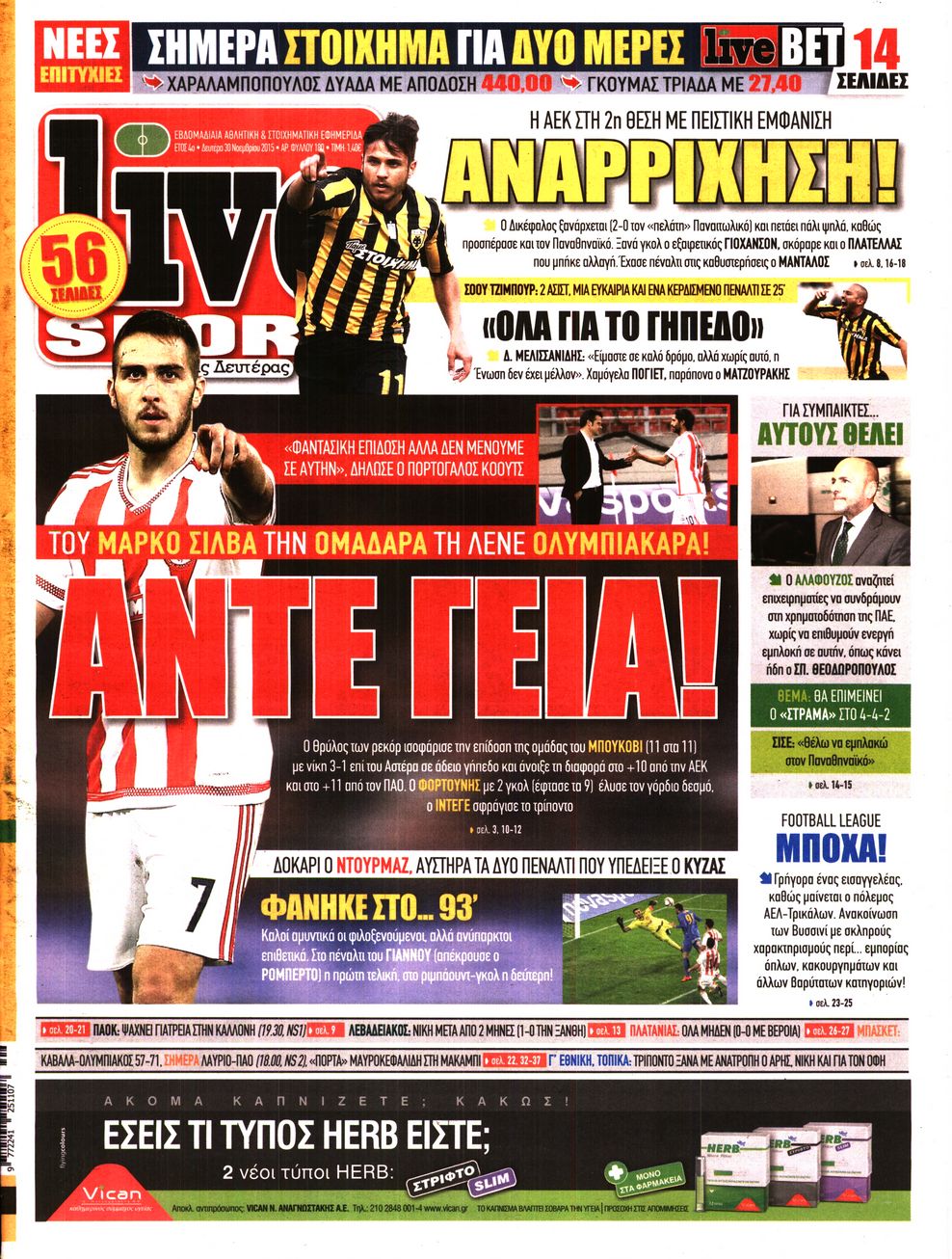 Οι αθλητικές εφημερίδες 30/11/2015 Enikos Newsroom 06:19, Δευτέρα 30 Νοεμβρίου 2015 Media Διαβάστε τα σημερινά πρωτοσέλιδα των αθλητικών εφημερίδων: ΑΘΛΗΤΙΚΕΣ ΕΦΗΜΕΡΙΔΕΣ ΠΡΩΤΟΣΕΛΙΔΑ Μοιράσου το: σχολίασε κι εσύ (0 σχόλια) Ακολουθήστε το enikos.gr στο Google News και μάθετε πρώτοι όλες τις ειδήσεις Δείτε όλες τις τελευταίες ειδήσεις από την Ελλάδα και τον Κόσμο στο enikos.gr Ειδήσεις Ροή Ειδήσεων 53 λεπτά πριν Δίκη Βαλυράκη: Καταθέτει ο βασικός αυτόπτης μάρτυρας – «Δέχτηκα πιέσεις να μη μιλήσω, πήγα να ψωνίσω και αυτοκίνητο με χτύπησε στο πόδι» 2 ώρες πριν Γιώργος Μαζωνάκης: «Δεν ζήτησα χρήματα, παρά μόνο ηθική δικαίωση» – Οι πρώτες δηλώσεις του 22χρονου μετά την κατάθεση της μήνυσης 44 λεπτά πριν Ώρα αποφάσεων για τους αγρότες – Ξεκίνησε η πανελλαδική σύσκεψη μπλόκων στις Σέρρες – ΦΩΤΟ 5 ώρες πριν Συναγερμός και στην Ελλάδα για τη «σούπερ γρίπη»: Πόσο σοβαρή είναι και ποιοι θεωρούνται πιο ευάλωτοι – 3 ειδικοί μιλούν στο enikos.gr 2 ώρες πριν Γαλλία: Η οργή των αγροτών – Αναμένεται η ομιλία του Μακρόν, τα τρακτέρ συγκεντρώνονται μαζικά στις Βρυξέλλες 6 ώρες πριν Τα 4 ζώδια που λαμβάνουν ένα ισχυρό σημάδι από το σύμπαν – «Αποκαλύπτεται κάτι που μπορεί να αλλάξει τη ζωή μας» 5 ώρες πριν Αν κάνετε συνεχώς αυτά τα 8 πράγματα με τα κατοικίδιά σας, σας λείπει η ανθρώπινη επαφή 59 λεπτά πριν Αυτό που κρύβεται κάτω από τη Γροιλανδία θα μπορούσε να ανατρέψει όσα γνωρίζουμε για την άνοδο της στάθμης των θαλασσών 1 ημέρα πριν 20 χρόνια τα Χριστούγεννα ξεκινούν στα Public με μεγάλη ποικιλία σε δώρα! 2 λεπτά πριν Ευλογιά αιγοπροβάτων: Νέες αποζημιώσεις ύψους 26 εκατ. ευρώ σε κτηνοτρόφους – Η κατανομή ανά Περιφέρεια 7 λεπτά πριν Το Σπίτι Δίπλα Στο Ποτάμι: Το καθηλωτικό τελευταίο επεισόδιο για το 2025 απόψε στις 22:30 11 λεπτά πριν Βραζιλία: Νεκρή 25χρονη influencer που έπεσε από τον 10ο όροφο έπειτα από καβγά με τον σύζυγό της – Συνελήφθη ο 40χρονος – ΒΙΝΤΕΟ-σοκ 16 λεπτά πριν Μεσολόγγι: Εγκατέλειψαν κουτάβια δίπλα από αυλάκι – Τα έσωσε η Πυροσβεστική – ΒΙΝΤΕΟ 21 λεπτά πριν Τσουκαλάς: Η κυβέρνηση του «δεν ξέρω-δεν είδα-δεν άκουσα» νομίζει ότι θα βυθιστεί σε αμνησία όλη η ελληνική κοινωνία για το σκάνδαλο στον ΟΠΕΚΕΠΕ ENIKOS NETWORK 100 χρόνια ΠΙΣ: Ένας αιώνας προσφοράς στην Ιατρική και την κοινωνία Ένα ποτήρι την ημέρα από αυτόν τον χυμό μειώνει τη χοληστερίνη, τη φλεγμονή και την πίεση ΑΑΔΕ: Έρχεται το… ΔΕΟΣ – Όλες οι λεπτομέρειες για τον ενιαίο ελεγκτικό μηχανισμό για το οικονομικό έγκλημα e-ΕΦΚΑ: Μέχρι πότε πρέπει να γίνει επιλογή ασφαλιστικής κατηγορίας για το 2026 – Τι πρέπει να γνωρίζετε Χαρτογραφώντας το «σημείο χωρίς επιστροφή»: Για πρώτη φορά αποκαλύπτεται με λεπτομέρεια το ακανθώδες όριο της ατμόσφαιρας τ... Η Google καταργεί τη λειτουργία «dark web report» – Πώς θα μπορούν οι χρήστες να διαγράφουν τα δεδομένα τους περισσότερα 15:52 , Πέμπτη 18 Δεκεμβρίου 2025 Το Σπίτι Δίπλα Στο Ποτάμι: Το καθηλωτικό τελευταίο επεισόδιο για το 2025 απόψε στις 22:30 Καθηλώνει το σημερινό επεισόδιο της σειράς “Το Σπίτι Δίπλα Στο Ποτάμι” που έρχεται... 15:20 , Πέμπτη 18 Δεκεμβρίου 2025 Άγιος έρωτας – Η Ελευθερία Αρβανιτάκη τραγουδά και ο Γιάννης Τσορτέκης καθηλώνει με τον χορό του Ο Κλεάνθης χορεύει στους ήχους της Ελευθερίας Αρβανιτάκη στη σειρά “Άγιος Έρωτας“.... 08:00 , Πέμπτη 18 Δεκεμβρίου 2025 Την Κυριακή με τη Realnews: Δωροεπιταγή 10€ Δωροεπιταγή αξίας 10€ για αγορές άνω των 60€ από τα πολυκαταστήματα FactoryOutlet H προσφορά ι... 07:50 , Πέμπτη 18 Δεκεμβρίου 2025 «Το σόι σου»