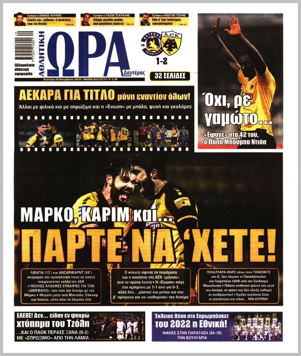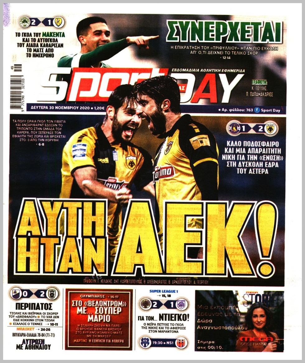 Οι αθλητικές εφημερίδες 30/11/2020 Διονύσης Νίκκας 06:54, Δευτέρα 30 Νοεμβρίου 2020 Media Διαβάστε τα πρωτοσέλιδα των αθλητικών εφημερίδων… ΑΘΛΗΤΙΚΕΣ ΕΦΗΜΕΡΙΔΕΣ Μοιράσου το: σχολίασε κι εσύ (0 σχόλια) Ακολουθήστε το enikos.gr στο Google News και μάθετε πρώτοι όλες τις ειδήσεις Δείτε όλες τις τελευταίες ειδήσεις από την Ελλάδα και τον Κόσμο στο enikos.gr Ειδήσεις Ροή Ειδήσεων 5 ώρες πριν Χριστούγεννα στα μπλόκα: Επιμένουν στις κινητοποιήσεις τους οι αγρότες – Ανοίγουν τα διόδια το Σαββατοκύριακο 6 ώρες πριν Ουκρανία: Η άνευ προηγουμένου επίθεση σε ρωσικό τάνκερ στη Μεσόγειο και το μήνυμα προς στον Πούτιν – Το «μακρύ χέρι» του Κιέβου 5 ώρες πριν Πούτιν: Τα μηνύματα σε Ευρώπη και ΝΑΤΟ από το μαραθώνιο «σόου» του – Η απαίτηση για «σεβασμό» και η ειρήνη «με τους όρους» της Μόσχας 6 ώρες πριν Τραμπ: Δεν αποκλείει την πιθανότητα ενός πολέμου στη Βενεζουέλα – «Ο Μαδούρο ξέρει καλύτερα από τον καθένα τι ακριβώς θέλω» 6 ώρες πριν Συνεχίζει να προκαλεί ο Μίτσκοσκι: «Για μένα το όνομα Μακεδονία είναι ιερό» 5 ώρες πριν Ανακαλύφθηκαν αρχαία χρυσά νομίσματα 2.200 ετών που απεικονίζουν τον θεό Απόλλωνα – Η άγνωστη σύνδεση με τον Φίλιππο Β΄ της Μακεδονίας 6 ώρες πριν Ύπνος: Μια κρυφή κατάσταση του εγκεφάλου πριν από τον ύπνο μπορεί να είναι το “κλειδί” για υψηλή ευφυΐα και δημιουργικότητα 7 ώρες πριν Αριθμολογία: Οι άνθρωποι που έχουν γεννηθεί αυτές τις 4 ημερομηνίες, συχνά παρεξηγούνται – «Η καλοσύνη τους κρύβει τεράστια δύναμη» 8 ώρες πριν Ξεχάστε το καθάρισμα το Σαββατοκύριακο: Ο «κανόνας των 20 λεπτών» που θα σας λύσει τα χέρια 2 λεπτά πριν Φως στο Τούνελ: Έφτασε η ώρα της αλήθειας για την δολοφονία της χήρας του πρώην υπουργού στο Κολωνάκι 17 λεπτά πριν Ντόναλντ Τραμπ: Προστέθηκε το όνομά του στην πρόσοψη του Κέντρου Κένεντι – Οργισμένη αντίδραση των συγγενών του JFK 32 λεπτά πριν Ταμίλα Κουλίεβα: «Δεν θέλω να είμαι κάποια που πορεύεται συνεχώς με τις ίδιες αναφορές» 47 λεπτά πριν Η Ελλάδα προσχωρεί στη Διεθνή Επιτροπή Αποζημιώσεων για την Ουκρανία 1 ώρα πριν GNTM: Η Ξένια Τσίρκοβα αναδείχθηκε μεγάλη νικήτρια και πήρε τις 50.000 ευρώ – Ποιος βρέθηκε σε απόσταση αναπνοής; ENIKOS NETWORK Το ΕΚΑΒ τιμήθηκε από την Ακαδημία Αθηνών για τα 40 χρόνια προσφοράς του Έχετε πραγματικά μεγάλη καρδιά; 10 χαρακτηριστικά όσων έχουν καλοσύνη Αναστολή μέτρων αναγκαστικής εκτέλεσης για κτηνοτρόφους που πλήττονται από την ευλογιά των αιγοπροβάτων Πλήρης επάρκεια προϊόντων στις λαϊκές της Αττικής, παρά τις αγροτικές κινητοποιήσεις – Τι απαντούν οι πωλητές Χαρτογραφώντας το «σημείο χωρίς επιστροφή»: Για πρώτη φορά αποκαλύπτεται με λεπτομέρεια το ακανθώδες όριο της ατμόσφαιρας τ... Η Google καταργεί τη λειτουργία «dark web report» – Πώς θα μπορούν οι χρήστες να διαγράφουν τα δεδομένα τους περισσότερα 02:50 , Σάββατο 20 Δεκεμβρίου 2025 GNTM: Η Ξένια Τσίρκοβα αναδείχθηκε μεγάλη νικήτρια και πήρε τις 50.000 ευρώ – Ποιος βρέθηκε σε απόσταση αναπνοής; Με φαντασμαγορικό τρόπο ολοκληρώθηκε το βράδυ της Παρασκευής ο μεγάλος τελικός του GNTM, μέσα ... 22:42 , Παρασκευή 19 Δεκεμβρίου 2025 Γιώργος Γιαννόπουλος για “Το σόι σου”: “Είναι ευτυχία και ευλογία αυτή η σειρά” «Είναι ευτυχία και ευλογία η συγκυρία αυτής της σειράς», θα πει ο Γιώργος Γιαννόπουλος -ο αγαπ... 20:37 , Παρασκευή 19 Δεκεμβρίου 2025 Don’t Forget The Lyrics: Η Έλλη Κοκκίνου υποδέχεται 4 παίκτες που θα κάνουν τα πάντα για να μη χάσουν ούτε… μισή λέξη από τους στίχους Το «Don’t Forget The Lyrics» επιστρέφει α