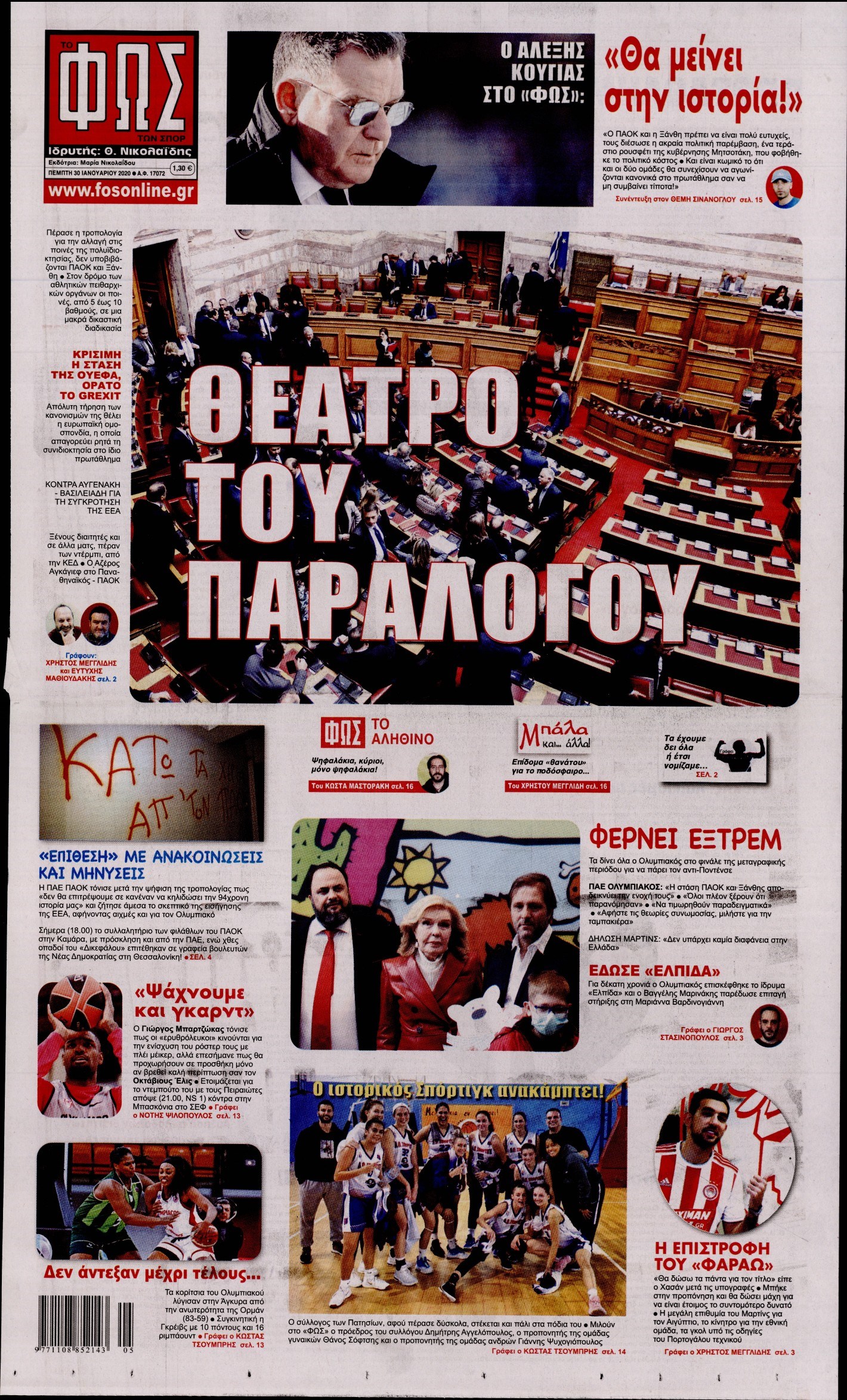 Οι αθλητικές εφημερίδες 30/1/20 Διονύσης Νίκκας 06:45, Πέμπτη 30 Ιανουαρίου 2020 Media Διαβάστε τα πρωτοσέλιδα των αθλητικών εφημερίδων… ΑΘΛΗΤΙΚΕΣ ΕΦΗΜΕΡΙΔΕΣ ΠΡΩΤΟΣΕΛΙΔΑ Μοιράσου το: σχολίασε κι εσύ (0 σχόλια) Ακολουθήστε το enikos.gr στο Google News και μάθετε πρώτοι όλες τις ειδήσεις Δείτε όλες τις τελευταίες ειδήσεις από την Ελλάδα και τον Κόσμο στο enikos.gr Ειδήσεις Ροή Ειδήσεων 4 ώρες πριν Μεσόγειος: Η διαδρομή του ρωσικού τάνκερ «Qendil» και η στοχευμένη επίθεση της Ουκρανίας με drone – Ο Πούτιν προειδοποίησε για αντίποινα 52 λεπτά πριν Αγρότες: Έκλεισαν για μία ώρα την παρακαμπτήρια της Ιόνιας Οδού στη θέση Χαλίκι 2 ώρες πριν Εμπλοκή και αερομαχίες με οπλισμένα τουρκικά F-16 στο Αιγαίο 2 ώρες πριν Πούτιν: «Ναι, είμαι ερωτευμένος» – Βίντεο από τη σπάνια προσωπική παραδοχή του 56 λεπτά πριν Ανδρέας Λυκουρέντζος: Υπέβαλε την παραίτησή του ο πρόεδρος του ΕΛΓΑ, αλλά δεν έγινε δεκτή – Όλο το παρασκήνιο 1 ώρα πριν Αριθμολογία: Οι άνθρωποι που έχουν γεννηθεί αυτές τις 4 ημερομηνίες, συχνά παρεξηγούνται – «Η καλοσύνη τους κρύβει τεράστια δύναμη» 3 ώρες πριν Μήπως έχετε χάσει τον εαυτό σας στη σχέση σας; 7 «αθόρυβες» υποχωρήσεις που μάλλον κάνατε, χωρίς να το συνειδητοποιήσετε 2 ώρες πριν Ξεχάστε το καθάρισμα το Σαββατοκύριακο: Ο «κανόνας των 20 λεπτών» που θα σας λύσει τα χέρια 5 ώρες πριν Κουίζ για την παλιά Αθήνα: Αναγνωρίζετε την περιοχή; Έχετε περάσει 100% από εκεί 7 λεπτά πριν Ύπνος: Μια κρυφή κατάσταση του εγκεφάλου πριν από τον ύπνο μπορεί να είναι το “κλειδί” για υψηλή ευφυΐα και δημιουργικότητα 12 λεπτά πριν ΕΕ: «Κάποια στιγμή θα χρησιμοποιήσουμε τα ρωσικά περιουσιακά στοιχεία» δήλωσε ο πρόεδρος του ΕΛΚ 16 λεπτά πριν Conference League: Καλύτερη επίθεση η ΑΕΚ στη διοργάνωση και 2η σε προσπάθειες στην εστία – Ξεχωρίζουν Πινέδα, Ελίασον και Ρότα 17 λεπτά πριν Έγκυος η Άννα Κορακάκη: «Η οικογένειά μας μεγαλώνει…» – Η αποκάλυψη για το φύλο του μωρού 25 λεπτά πριν Τραγωδία στο Βελεστίνο: Πέθανε ο αντιδήμαρχος Γιάννης Παπαϊωάννου ENIKOS NETWORK Το ΕΚΑΒ τιμήθηκε από την Ακαδημία Αθηνών για τα 40 χρόνια προσφοράς του Έχετε πραγματικά μεγάλη καρδιά; 10 χαρακτηριστικά όσων έχουν καλοσύνη Όμιλος ΔΕΗ: Νέα ορόσημα και ενισχυμένη διαφάνεια στην ετήσια Έκθεση Βιώσιμης Ανάπτυξης Έρχονται νέες προσλήψεις σε Δήμο – Όλες οι λεπτομέρειες Χαρτογραφώντας το «σημείο χωρίς επιστροφή»: Για πρώτη φορά αποκαλύπτεται με λεπτομέρεια το ακανθώδες όριο της ατμόσφαιρας τ... Η Google καταργεί τη λειτουργία «dark web report» – Πώς θα μπορούν οι χρήστες να διαγράφουν τα δεδομένα τους περισσότερα 20:37 , Παρασκευή 19 Δεκεμβρίου 2025 Don’t Forget The Lyrics: Η Έλλη Κοκκίνου υποδέχεται 4 παίκτες που θα κάνουν τα πάντα για να μη χάσουν ούτε… μισή λέξη από τους στίχους Το «Don’t Forget The Lyrics» επιστρέφει απόψε, Παρασκευή 19 Δεκεμβρίου, στις 21:00 με νέο επει... 19:31 , Παρασκευή 19 Δεκεμβρίου 2025 GNTM: Απόψε ο μεγάλος τελικός για τους 4 φιναλίστ Έπειτα από μήνες γεμάτους μόδα, δημιουργία και έντονες αναμετρήσεις, το GNTM 2025 κορυφώνεται,... 18:11 , Παρασκευή 19 Δεκεμβρίου 2025 Το σόι σου: Ο Άρης έρχεται στην Ελλάδα για τις γιορτές των Χριστουγέννων – Τι θα δούμε στο αποψινό εορταστικό επεισόδιο Ένα απολαυστικό, εορταστικό επεισόδιο της σειράς “Το σόι σου”, γεμάτο ευτράπελα αλ... 15:15 , Παρασκευή 19 Δεκεμβρίου 2025 Την Κυριακή με τη Realnews: Ό,τι και αν αγοράσεις, σκανάρεις και κερδίζεις! Την Κυριακή με τη Realnews: Ό,τι και αν αγοράσεις, σκανάρεις και κερδίζεις! Με το PADU app, το... ΤΕΛΕΥΤΑΙΕΣ 