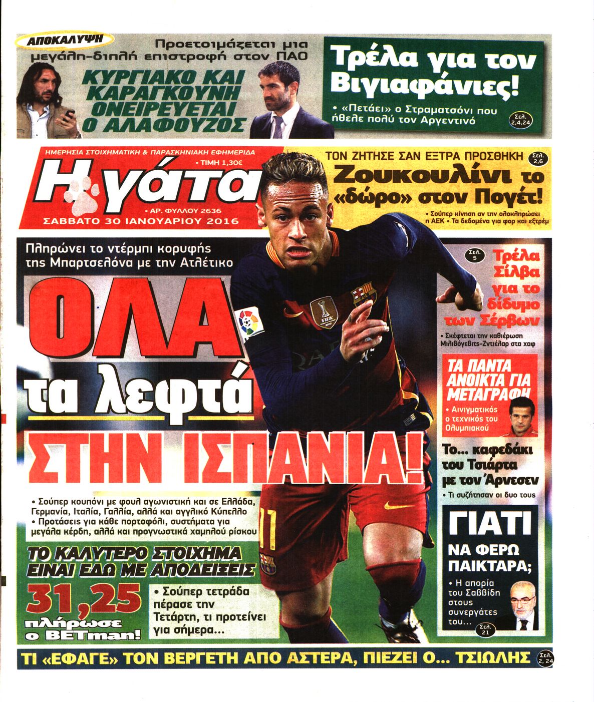 Οι αθλητικές εφημερίδες 30/1/2016 Enikos Newsroom 06:47, Σάββατο 30 Ιανουαρίου 2016 Media Διαβάστε τα σημερινά πρωτοσέλιδα των αθλητικών εφημερίδων: ΑΘΛΗΤΙΚΕΣ ΕΦΗΜΕΡΙΔΕΣ ΠΡΩΤΟΣΕΛΙΔΑ Μοιράσου το: σχολίασε κι εσύ (0 σχόλια) Ακολουθήστε το enikos.gr στο Google News και μάθετε πρώτοι όλες τις ειδήσεις Δείτε όλες τις τελευταίες ειδήσεις από την Ελλάδα και τον Κόσμο στο enikos.gr Ειδήσεις Ροή Ειδήσεων 3 ώρες πριν Υπόθεση Έπσταϊν: Το Υπουργείο Δικαιοσύνης δημοσιοποίησε μια σειρά από εξαιρετικά επεξεργασμένα αρχεία – «Λείπουν τα πιο σημαντικά έγγραφα», λένε οι Δημοκρατικοί 14 λεπτά πριν Γιορτές με μπλόκα για τους αγρότες: Ανοίγουν διόδια και μοιράζουν προϊόντα στους ταξιδιώτες 46 λεπτά πριν Εξαφάνιση 33χρονου γιατρού στην Κρήτη: «Άναψα τα φώτα, τρόμαξε και άρχισε να τρέχει στα χωράφια» – Η τελευταία διαδρομή και η μαρτυρία «κλειδί» 2 ώρες πριν Ο «χάρτης» με τις αυξήσεις και τις φοροελαφρύνσεις του 2026 – Ποιοι και πόσα κερδίζουν 30 λεπτά πριν Τα αρχεία του Έπσταϊν αποκαλύπτουν φωτογραφία του έκπτωτου πρίγκιπα Άντριου – Είναι ξαπλωμένος στην αγκαλιά 5 γυναικών 37 λεπτά πριν Μία νέα «χρυσή» περίοδος αρχίζει για 3 ζώδια από σήμερα – «Μία αναπάντεχη ευκαιρία οδηγεί στην επιτυχία» 5 ώρες πριν Αυγά: Πόσα μπορείτε να τρώτε την ημέρα με ασφάλεια για μέγιστη πρόσληψη πρωτεΐνης 3 ώρες πριν Αρχαιολόγοι ανακάλυψαν σε χωράφι απεικόνιση 600 ετών ενός Αγίου – Τα στοιχεία που δείχνουν ότι μαρτύρησε 2 ώρες πριν Αγχώνεται για το χριστουγεννιάτικο δώρο που πήρε στην πλούσια σύντροφό του – «Φοβάμαι πως θα το βρει φθηνιάρικο, φοράει βραχιόλια Cartier» 6 λεπτά πριν e-ΕΦΚΑ και ΔΥΠΑ: Οι πληρωμές από 22 έως 24 Δεκεμβρίου – Ποιοι θα δουν χρήματα στους λογαριασμούς τους 14 λεπτά πριν Συνελήφθη οδηγός μηχανής που έτρεχε με 161 χλμ στη Συγγρού – Τον έπιασε το ραντάρ της Τροχαίας 14 λεπτά πριν Γιορτές με μπλόκα για τους αγρότες: Ανοίγουν διόδια και μοιράζουν προϊόντα στους ταξιδιώτες 22 λεπτά πριν Τηλεθέαση (19/12): Κυριάρχησε η σειρά «Το σόι σου» – Τι νούμερα έκανε ο τελικός του GNTM 30 λεπτά πριν Τα αρχεία του Έπσταϊν αποκαλύπτουν φωτογραφία του έκπτωτου πρίγκιπα Άντριου – Είναι ξαπλωμένος στην αγκαλιά 5 γυναικών ENIKOS NETWORK Είστε μόνιμα απρόσεκτοι; 3 σημάδια που δείχνουν ότι μπορεί να είναι σύμπτωμα πάθησης Πόσα κιλά παίρνουμε πραγματικά τα Χριστούγεννα, σύμφωνα με την επιστήμη – Πώς να το αποτρέψουμε; Επίδομα παιδιού: Τι αλλάζει από το 2026 – Το όφελος από τις φορολογικές ελαφρύνσεις Mega χριστουγεννιάτικη φορολοταρία: «Κλείδωσε» η ημερομηνία για την κλήρωση – Ερωτήσεις και απαντήσεις Χαρτογραφώντας το «σημείο χωρίς επιστροφή»: Για πρώτη φορά αποκαλύπτεται με λεπτομέρεια το ακανθώδες όριο της ατμόσφαιρας τ... Η Google καταργεί τη λειτουργία «dark web report» – Πώς θα μπορούν οι χρήστες να διαγράφουν τα δεδομένα τους περισσότερα 09:30 , Σάββατο 20 Δεκεμβρίου 2025 «Porto Leone: Στη γειτονιά με τα κόκκινα φανάρια» – Ο Χρόνης αποκαλύπτει στην Αλεξάνδρα το μυστικό για το παιδί της Λένας Η μεγάλη δραματική σειρά του Apha «Porto Leone: Στη γειτονιά με τα κόκκινα φανάρια» μας μεταφέ... 08:14 , Σάββατο 20 Δεκεμβρίου 2025 Τρομεροί γονείς: Η Μαρία Καβογιάννη εισβάλλει στο σπίτι της οικογένειας Στεφανίδη Όσα θα δούμε στο νέο διπλό επεισόδιο της σειράς «Τρομεροί γονείς», σήμερα Σάββατο 20 Δεκεμβρίο... 05:48 , Σάββατο 20 Δεκεμβρίου 2025 Οι οικονομικές εφημερίδες 20/12/2025 Διαβάστε τα πρωτοσέλιδα από τις οικονομικές εφημερίδες, σήμερα 20/12/2025. 05:43 , Σάββατο 20 Δεκεμβρίου 2025 Οι αθλητ