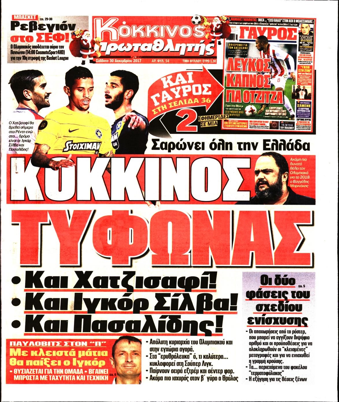 Οι αθλητικές εφημερίδες 30/12/2017 Enikos Newsroom 07:19, Σάββατο 30 Δεκεμβρίου 2017 Media Διαβάστε τα σημερινά πρωτοσέλιδα των αθλητικών εφημερίδων: ΑΘΛΗΤΙΚΕΣ ΕΦΗΜΕΡΙΔΕΣ ΠΡΩΤΟΣΕΛΙΔΑ Μοιράσου το: σχολίασε κι εσύ (0 σχόλια) Ακολουθήστε το enikos.gr στο Google News και μάθετε πρώτοι όλες τις ειδήσεις Δείτε όλες τις τελευταίες ειδήσεις από την Ελλάδα και τον Κόσμο στο enikos.gr Ειδήσεις Ροή Ειδήσεων 3 ώρες πριν Από το Ορμένιο ως τα Μάλγαρα κι από τη Σιάτιστα μέχρι τη Νίκαια: Μπλόκα σε όλη την Ελλάδα – Το Σάββατο ανοίγουν τα διόδια οι αγρότες 1 ώρα πριν Εμπλοκή και αερομαχίες με οπλισμένα τουρκικά F-16 στο Αιγαίο 3 ώρες πριν Αττική: Θρίλερ με νεκρό βρέφος 5 μηνών – Κοιμόταν στο ίδιο κρεβάτι με τους γονείς του 55 λεπτά πριν Πούτιν: «Ναι, είμαι ερωτευμένος» – Βίντεο από τη σπάνια προσωπική παραδοχή του 3 ώρες πριν Μεσόγειος: Η διαδρομή του ρωσικού τάνκερ «Qendil» και η στοχευμένη επίθεση της Ουκρανίας με drone – Ο Πούτιν προειδοποίησε για αντίποινα 5 ώρες πριν Τα 5 ζώδια που ευνοούνται στην ερωτική ζωή τους την επόμενη εβδομάδα – «Η ενέργεια του Αιγόκερου φέρνει αγάπη και σταθερότητα» 6 ώρες πριν Αυτό το έξυπνο μαθηματικό κόλπο θα μπορούσε να αλλάξει τον τρόπο με τον οποίο οι επιστήμονες μελετούν τους σεισμούς 2 ώρες πριν Μήπως έχετε χάσει τον εαυτό σας στη σχέση σας; 7 «αθόρυβες» υποχωρήσεις που μάλλον κάνατε, χωρίς να το συνειδητοποιήσετε 4 ώρες πριν Κουίζ για την παλιά Αθήνα: Αναγνωρίζετε την περιοχή; Έχετε περάσει 100% από εκεί 6 λεπτά πριν Don’t Forget The Lyrics: Η Έλλη Κοκκίνου υποδέχεται 4 παίκτες που θα κάνουν τα πάντα για να μη χάσουν ούτε… μισή λέξη από τους στίχους 12 λεπτά πριν Πλεύρης στον ΑΝΤ1: Η βασική πολιτική που ψηφίστηκε από τους υπουργούς Μετανάστευσης είναι η δημιουργία κέντρων κράτησης μεταναστών στην Αφρική – ΒΙΝΤΕΟ 17 λεπτά πριν Η εξομολόγηση της Νίκης Σερέτη: «Δεν κρύβω ότι ήταν πάρα πολύ δύσκολο όλο αυτό που βίωσα» 22 λεπτά πριν Αγρότες: Κλειστό ξανά το ρεύμα εισόδου στα Μάλγαρα – Άνοιξαν τον κόμβο της Χαλκηδόνας 27 λεπτά πριν Νίκος Γιαννόπουλος: «Μου επιτέθηκε ο Παππάς – Ήμουν νηφάλιος, δεν τον προκάλεσα» – ΒΙΝΤΕΟ ENIKOS NETWORK Έχετε πραγματικά μεγάλη καρδιά; 10 χαρακτηριστικά όσων έχουν καλοσύνη «Η σούπερ» γρίπη εξαπλώνεται στην Ευρώπη-Στοιχεία από το ECDC για την αποτελεσματικότητα του εμβολίου Επίδομα παιδιού: Πότε ανοίγει ξανά η πλατφόρμα για τις αιτήσεις Προκήρυξη ΑΣΕΠ για 397 μόνιμες προσλήψεις στο Δημόσιο: Βγήκαν τα προσωρινά αποτελέσματα – Πότε αρχίζει η υποβολή ενστάσεων Χαρτογραφώντας το «σημείο χωρίς επιστροφή»: Για πρώτη φορά αποκαλύπτεται με λεπτομέρεια το ακανθώδες όριο της ατμόσφαιρας τ... Η Google καταργεί τη λειτουργία «dark web report» – Πώς θα μπορούν οι χρήστες να διαγράφουν τα δεδομένα τους περισσότερα 20:37 , Παρασκευή 19 Δεκεμβρίου 2025 Don’t Forget The Lyrics: Η Έλλη Κοκκίνου υποδέχεται 4 παίκτες που θα κάνουν τα πάντα για να μη χάσουν ούτε… μισή λέξη από τους στίχους Το «Don’t Forget The Lyrics» επιστρέφει απόψε, Παρασκευή 19 Δεκεμβρίου, στις 21:00 με νέο επει... 19:31 , Παρασκευή 19 Δεκεμβρίου 2025 GNTM: Απόψε ο μεγάλος τελικός για τους 4 φιναλίστ Έπειτα από μήνες γεμάτους μόδα, δημιουργία και έντονες αναμετρήσεις, το GNTM 2025 κορυφώνεται,... 18:11 , Παρασκευή 19 Δεκεμβρίου 2025 Το σόι σου: Ο Άρης έρχεται στην Ελλάδα για τις γιορτές των Χριστουγέννων – Τι θα δούμε στο αποψινό εορταστικό επεισόδιο Ένα απολαυστικό, εορταστικό επεισόδιο της σειράς “Το σόι σου”, γεμάτο ευτράπελα αλ... 15:15 , Παρασκευή 19 Δεκεμβρίου 2025 Τη