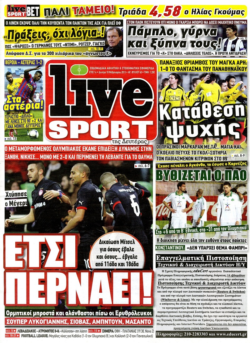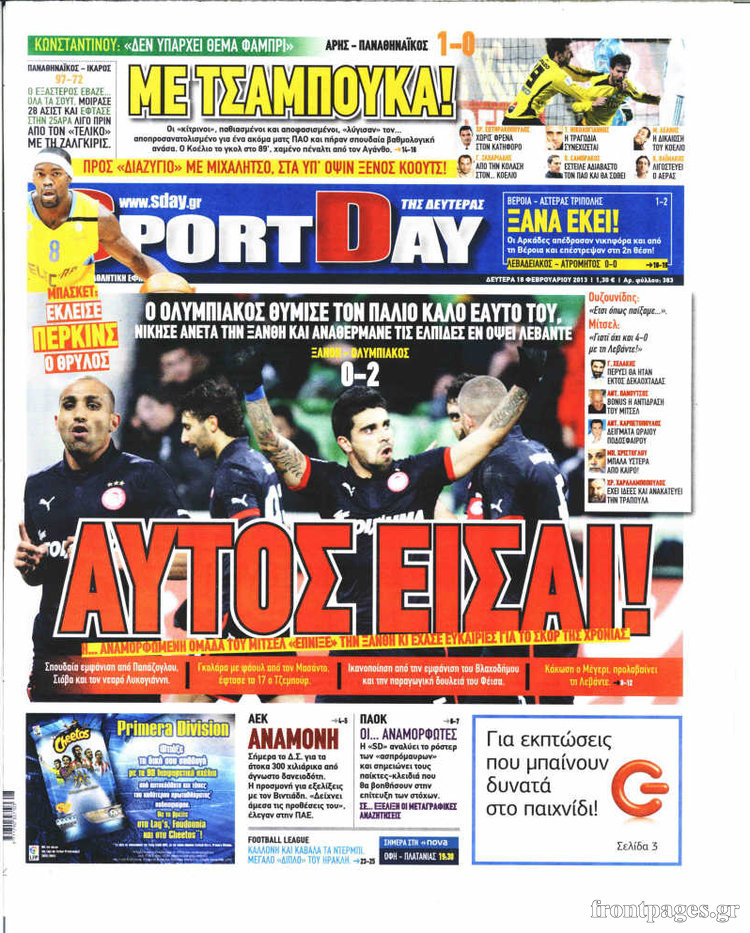 Οι αθλητικές εφημερίδες Enikos Newsroom 08:25, Δευτέρα 18 Φεβρουαρίου 2013 Media Οι αθλητικές εφημερίδες ΑΘΛΗΤΙΚΕΣ ΕΦΗΜΕΡΙΔΕΣ ΕΦΗΜΕΡΙΔΕΣ ΠΡΩΤΟΣΕΛΙΔΑ Μοιράσου το: σχολίασε κι εσύ (0 σχόλια) Ακολουθήστε το enikos.gr στο Google News και μάθετε πρώτοι όλες τις ειδήσεις Δείτε όλες τις τελευταίες ειδήσεις από την Ελλάδα και τον Κόσμο στο enikos.gr Ειδήσεις Ροή Ειδήσεων 3 ώρες πριν Αυξάνουν την πίεση προς την κυβέρνηση οι αγρότες: Κλείνουν παρακαμπτήριους και ανοίγουν διόδια – Τι θα γίνει τις γιορτές 2 ώρες πριν ΟΠΕΚΕΠΕ: Προφυλακιστέος ο φερόμενος αρχηγός και ο λογιστής της εγκληματικής οργάνωσης 3 ώρες πριν Φοινικούντα: Το Σάββατο απολογείται ο 30χρονος γιος γνωστού επιχειρηματία της Πλάκας που παραδόθηκε – Όσα είπε στους αστυνομικούς και ο ρόλος του στο έγκλημα 3 ώρες πριν Μπορεί ο Μαδούρο να αντέξει τον αποκλεισμό του Τραμπ; Τι θα χρειαστεί η Ουάσινγκτον για να τον ανατρέψει 4 ώρες πριν Πρίγκιπας Ουίλιαμ – Κέιτ: Η νέα οικογενειακή φωτογραφία για τις Χριστουγεννιάτικες κάρτες του 2025 4 ώρες πριν Ύπνος: Η απλή βραδινή ρουτίνα για να προστατεύσετε τα μαλλιά σας από το κρύο κατά τη διάρκεια του χειμώνα 5 ώρες πριν Manifesting: Πώς να συναντήσετε τον σύντροφο της ζωής σας, ανάλογα με τον μήνα γέννησής σας 2 ημέρες πριν 20 χρόνια τα Χριστούγεννα ξεκινούν στα Public με μεγάλη ποικιλία σε δώρα! 3 ώρες πριν Αρχαιολόγοι ανακάλυψαν ρωμαϊκά τεχνουργήματα από μια πόλη που δεν υπήρξε ποτέ – Τα τρία εντυπωσιακά κτίρια και ο αμφορέας με τις… σαρδέλες 6 λεπτά πριν Μάρκο Νίκολιτς: «Είμαι περήφανος για τους παίκτες μου, όποιος αντίπαλος και να έρθει θα προετοιμαστούμε» 15 λεπτά πριν ΟΗΕ: Την εκλογή του νέου ύπατου αρμοστή για τους Πρόσφυγες Μπαρχάμ Άχμεντ Σαλίχ χαιρέτησε ο Αντόνιο Γκουτέρες 20 λεπτά πριν Σύνοδος Κορυφής στις Βρυξέλλες: Ακόμη πιο κοντά σε διέξοδο για τη χρηματοδότηση της Ουκρανίας 28 λεπτά πριν ΟΗΕ: Iστορική επίσκεψη του Συμβουλίου Ασφαλείας στη Δαμασκό – Mήνυμα Ελλάδας για συμπερίληψη και λογοδοσία 35 λεπτά πριν Νέος πρέσβης της Μεγάλης Βρετανίας στις ΗΠΑ ο Κρίστιαν Τέρνερ ENIKOS NETWORK Σε περίοδο αυξημένης δραστηριότητας η γρίπη στην Ελλάδα-Μέτρα προστασίας από τον ΕΟΔΥ Σκέφτεστε συνέχεια συζητήσεις που έχετε κάνει; Τι σημαίνει αυτό, σύμφωνα με ειδικό Στεγαστικό: Τι λέει η ΠΟΜΙΔΑ για τα νέα μέτρα που ανακοίνωσε ο Κυριάκος Μητσοτάκης Λαγκάρντ: Αισιόδοξη για την ανάπτυξη της Ευρωζώνης, αβέβαιη για τον πληθωρισμό Χαρτογραφώντας το «σημείο χωρίς επιστροφή»: Για πρώτη φορά αποκαλύπτεται με λεπτομέρεια το ακανθώδες όριο της ατμόσφαιρας τ... Η Google καταργεί τη λειτουργία «dark web report» – Πώς θα μπορούν οι χρήστες να διαγράφουν τα δεδομένα τους περισσότερα 17:45 , Πέμπτη 18 Δεκεμβρίου 2025 ROUK ZOUK: Εορταστικό επεισόδιο με καλεσμένους τους πρωταγωνιστές του «Γιατί ρε πατέρα» Το Σάββατο 20 Δεκεμβρίου στις 21:00, η Ζέτα Μακρυπούλια υποδέχεται εκλεκτούς ηθοποιούς που όλο... 17:20 , Πέμπτη 18 Δεκεμβρίου 2025 Άγιος έρωτας: Η Χριστίνα εξομολογείται στον πατέρα Νικόλαο, απόψε στις 21:00 στον Alpha Η Νότα αποφασίζει να εκδικηθεί τον Πέτρο και τον Στέφανο, για χάρη του Λούη, όμως τα πράγματα ... 16:50 , Πέμπτη 18 Δεκεμβρίου 2025 Να μ’ αγαπάς: Ζωή και Φωτεινή συμφιλιώνονται ως μάνα με κόρη, απόψε στις 20:00 Η ταυτότητα του Άγγελου αποκαλύπτεται στο νέο επεισόδιο της σειράς “Να μ’ αγαπάς... 15:52 , Πέμπτη 18 Δεκεμβρίου 2025 Το Σπίτι Δίπλα Στο Ποτάμι: Το καθηλωτικό τελευταίο επεισόδιο για το 2025 απόψε στις 22:30 Καθηλώνει το σημερινό επεισόδιο της σει
