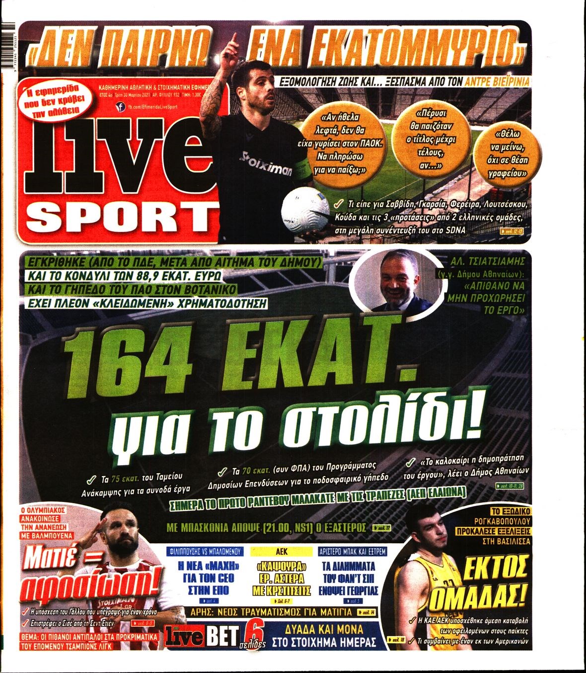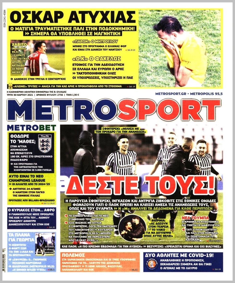 Οι αθλητικές εφημερίδες 30/3/2021 Διονύσης Νίκκας 06:55, Τρίτη 30 Μαρτίου 2021 Media Διαβάστε τα πρωτοσέλιδα των αθλητικών εφημερίδων… ΑΘΛΗΤΙΚΕΣ ΕΦΗΜΕΡΙΔΕΣ Μοιράσου το: σχολίασε κι εσύ (0 σχόλια) Ακολουθήστε το enikos.gr στο Google News και μάθετε πρώτοι όλες τις ειδήσεις Δείτε όλες τις τελευταίες ειδήσεις από την Ελλάδα και τον Κόσμο στο enikos.gr Ειδήσεις Ροή Ειδήσεων 3 ώρες πριν Μεσόγειος: Η διαδρομή του ρωσικού τάνκερ «Qendil» και η στοχευμένη επίθεση της Ουκρανίας με drone – Ο Πούτιν προειδοποίησε για αντίποινα 6 λεπτά πριν Αγρότες: Έκλεισαν την παρακαμπτήρια της Ιόνιας Οδού στη θέση Χαλίκι 2 ώρες πριν Εμπλοκή και αερομαχίες με οπλισμένα τουρκικά F-16 στο Αιγαίο 3 ώρες πριν Αττική: Θρίλερ με νεκρό βρέφος 5 μηνών – Κοιμόταν στο ίδιο κρεβάτι με τους γονείς του 2 ώρες πριν Πούτιν: «Ναι, είμαι ερωτευμένος» – Βίντεο από τη σπάνια προσωπική παραδοχή του 19 λεπτά πριν Αριθμολογία: Οι άνθρωποι που έχουν γεννηθεί αυτές τις 4 ημερομηνίες, συχνά παρεξηγούνται – «Η καλοσύνη τους κρύβει τεράστια δύναμη» 2 ώρες πριν Μήπως έχετε χάσει τον εαυτό σας στη σχέση σας; 7 «αθόρυβες» υποχωρήσεις που μάλλον κάνατε, χωρίς να το συνειδητοποιήσετε 1 ώρα πριν Ξεχάστε το καθάρισμα το Σαββατοκύριακο: Ο «κανόνας των 20 λεπτών» που θα σας λύσει τα χέρια 4 ώρες πριν Κουίζ για την παλιά Αθήνα: Αναγνωρίζετε την περιοχή; Έχετε περάσει 100% από εκεί 6 λεπτά πριν Αγρότες: Έκλεισαν την παρακαμπτήρια της Ιόνιας Οδού στη θέση Χαλίκι 9 λεπτά πριν Ανδρέας Λυκουρέντζος: Υπέβαλε την παραίτησή του ο πρόεδρος του ΕΛΓΑ, αλλά δεν έγινε δεκτή – Όλο το παρασκήνιο 14 λεπτά πριν Ηράκλειο: «Ιπτάμενοι» Άγιοι Βασίληδες μοίρασαν δώρα και χαμόγελα στα παιδιά στο ΠΑΓΝΗ – Δείτε βίντεο 19 λεπτά πριν Αριθμολογία: Οι άνθρωποι που έχουν γεννηθεί αυτές τις 4 ημερομηνίες, συχνά παρεξηγούνται – «Η καλοσύνη τους κρύβει τεράστια δύναμη» 26 λεπτά πριν Ρύθμιση του ΥΠΑΑΤ για τους αγρότες που δεν έλαβαν τη βασική ενίσχυση λόγω εκκρεμοτήτων στο Κτηματολόγιο ENIKOS NETWORK Το ΕΚΑΒ τιμήθηκε από την Ακαδημία Αθηνών για τα 40 χρόνια προσφοράς του Έχετε πραγματικά μεγάλη καρδιά; 10 χαρακτηριστικά όσων έχουν καλοσύνη Έρχονται νέες προσλήψεις σε Δήμο – Όλες οι λεπτομέρειες Επίδομα παιδιού: Πότε ανοίγει ξανά η πλατφόρμα για τις αιτήσεις Χαρτογραφώντας το «σημείο χωρίς επιστροφή»: Για πρώτη φορά αποκαλύπτεται με λεπτομέρεια το ακανθώδες όριο της ατμόσφαιρας τ... Η Google καταργεί τη λειτουργία «dark web report» – Πώς θα μπορούν οι χρήστες να διαγράφουν τα δεδομένα τους περισσότερα 20:37 , Παρασκευή 19 Δεκεμβρίου 2025 Don’t Forget The Lyrics: Η Έλλη Κοκκίνου υποδέχεται 4 παίκτες που θα κάνουν τα πάντα για να μη χάσουν ούτε… μισή λέξη από τους στίχους Το «Don’t Forget The Lyrics» επιστρέφει απόψε, Παρασκευή 19 Δεκεμβρίου, στις 21:00 με νέο επει... 19:31 , Παρασκευή 19 Δεκεμβρίου 2025 GNTM: Απόψε ο μεγάλος τελικός για τους 4 φιναλίστ Έπειτα από μήνες γεμάτους μόδα, δημιουργία και έντονες αναμετρήσεις, το GNTM 2025 κορυφώνεται,... 18:11 , Παρασκευή 19 Δεκεμβρίου 2025 Το σόι σου: Ο Άρης έρχεται στην Ελλάδα για τις γιορτές των Χριστουγέννων – Τι θα δούμε στο αποψινό εορταστικό επεισόδιο Ένα απολαυστικό, εορταστικό επεισόδιο της σειράς “Το σόι σου”, γεμάτο ευτράπελα αλ... 15:15 , Παρασκευή 19 Δεκεμβρίου 2025 Την Κυριακή με τη Realnews: Ό,τι και αν αγοράσεις, σκανάρεις και κερδίζεις! Την Κυριακή με τη Realnews: Ό,τι και αν αγοράσεις, σκανάρεις και κερδίζεις! Με το PADU app, το... ΤΕΛΕΥΤΑΙΕΣ ΕΙΔΗΣΕΙΣ 6 λεπτά πριν Αγρότες: Έκλεισαν την παρακαμπτήρια τ
