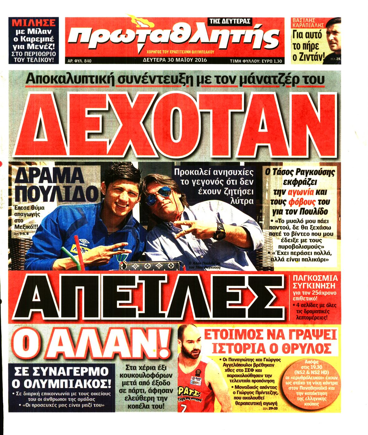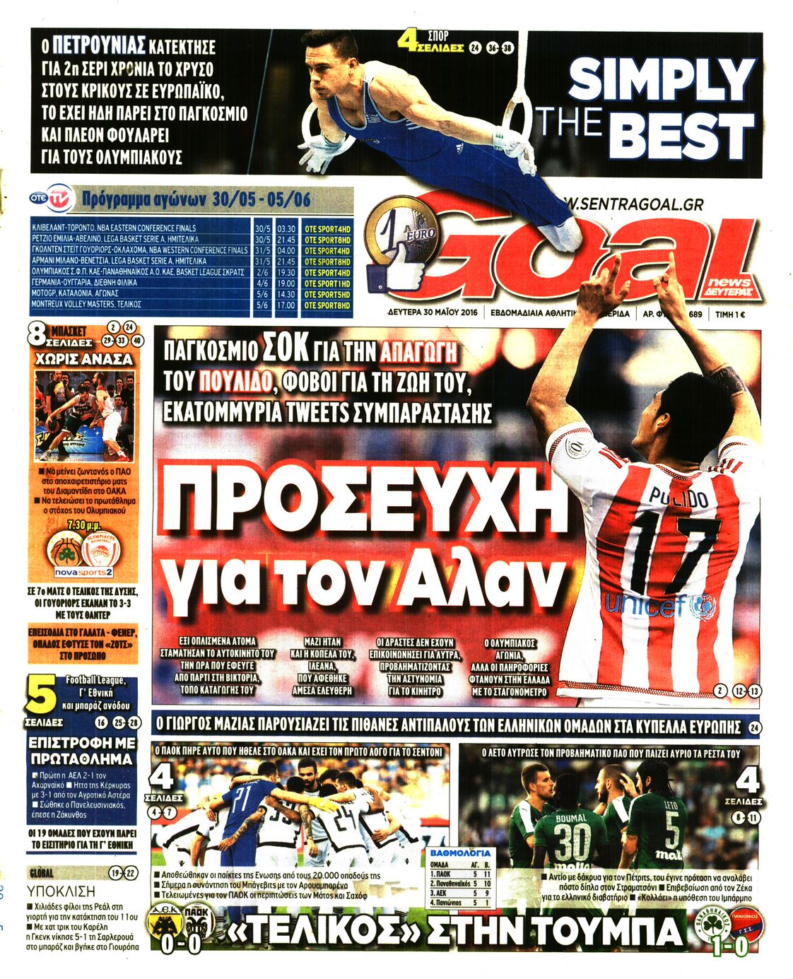 Οι αθλητικές εφημερίδες 30/5/2016 Enikos Newsroom 05:05, Δευτέρα 30 Μαΐου 2016 Media Διαβάστε τα σημερινά πρωτοσέλιδα των αθλητικών εφημερίδων: ΑΘΛΗΤΙΚΕΣ ΕΦΗΜΕΡΙΔΕΣ ΠΡΩΤΟΣΕΛΙΔΑ Μοιράσου το: σχολίασε κι εσύ (0 σχόλια) Ακολουθήστε το enikos.gr στο Google News και μάθετε πρώτοι όλες τις ειδήσεις Δείτε όλες τις τελευταίες ειδήσεις από την Ελλάδα και τον Κόσμο στο enikos.gr Ειδήσεις Ροή Ειδήσεων 4 ώρες πριν Θετικοί οι αγρότες στη νέα πρόσκληση για διάλογο με τον Πρωθυπουργό – Αποφασίζουν την Παρασκευή εάν θα «σπάσουν» τον 48ωρο αποκλεισμό 4 ώρες πριν Πάτρα: Την Παρασκευή οι απολογίες των 4 εμπλεκομένων για τον θανάσιμο ξυλοδαρμό του 30χρονου – Το ξέσπασμα της μητέρας του θύματος και το βίντεο-σοκ 4 ώρες πριν Μινεάπολη: Η εκτέλεση της 37χρονης Ρενέ Γκουντ αποκαλύπτει δύο εντελώς αντίθετες διαχωριστικές γραμμές στην αμερικανική πολιτική 6 ώρες πριν Κύπρος: Πολιτικές αντιδράσεις μετά την διαρροή του βίντεο με «χρηματοδοτήσεις» και «επενδυτές» – Κυβέρνηση: Υβριδική επίθεση με κακόβουλο μοντάζ 44 λεπτά πριν Χρήστος Πολίτης: Το πραγματικό του όνομα, η καριέρα και το… φαινόμενο «Γιάγκος Δράκος» 6 ώρες πριν Αριθμολογία 2026: Οι άτυχοι μήνες της χρονιάς, με βάση την ημερομηνία γέννησής σας 7 ώρες πριν Περιορίστε τη σκόνη στο σπίτι σας με μια απλή και οικονομική λύση – Ο ρόλος της υγρασίας 5 ώρες πριν Ύπνος: Δυσκολεύεστε να κοιμηθείτε; Γιατρός μοιράζεται ένα «μυστικό» συστατικό που βοηθάει στη χαλάρωση 4 ώρες πριν Ανακαλύφθηκε εντυπωσιακός τάφος 1.300 ετών – Τα τεχνουργήματα που περιείχε ρίχνουν φως στη ζωή των ελίτ της δυναστείας Τανγκ 29 λεπτά πριν Συναγερμός στο Πόρτλαντ: Πράκτορες της Υπηρεσίας Μετανάστευσης πυροβόλησαν δύο άτομα 44 λεπτά πριν Χρήστος Πολίτης: Το πραγματικό του όνομα, η καριέρα και το… φαινόμενο «Γιάγκος Δράκος» 60 λεπτά πριν Super Cup Ισπανίας: Στον τελικό με Μπαρτσελόνα η Ρεάλ, που κέρδισε 2-1 την Ατλέτικο – Δείτε τα γκολ 1 ώρα πριν Νέα ισραηλινά πλήγματα στη Λωρίδα της Γάζας: Τουλάχιστον εννέα νεκροί, ανάμεσά τους πέντε παιδιά 1 ώρα πριν Ταραχές στο Ιράν: Στους δρόμους οι πολίτες – Κόπηκε η πρόσβαση στο διαδίκτυο και οι τηλεπικοινωνίες – Δείτε βίντεο ENIKOS NETWORK Γιατί κάποιοι κρεμάνε φύλλα δάφνης στην πόρτα της κρεβατοκάμαρας; Το μυστικό για καλύτερο ύπνο ΠΟΕΔΗΝ: Σήμα κινδύνου εκπέμπει η Πνευμονολογική Κλινική του Νοσοκομείου Άρτας ΣΑΤΑ: 48ωρη απεργία για τις 13 και 14 Ιανουαρίου αποφάσισαν οι αυτοκινητιστές των ταξί στην Αττική ΔΥΠΑ: Αρχίζει η υποβολή προγραμμάτων κατάρτισης για άνεργους δικαιούχους του Ελάχιστου Εγγυημένου Εισοδήματος – Όλες οι λεπ... Ο Google Assistant θα παραμείνει λίγο περισσότερο για ορισμένους χρήστες Android Τεστ προσωπικότητας: Το βάζο που θα επιλέξετε αποκαλύπτει πώς λύνετε προβλήματα στη ζωή σας περισσότερα 18:15 , Πέμπτη 08 Ιανουαρίου 2026 Άγιος Έρωτας: Ο πατήρ Νικόλαος σώζει τη μικρή Ελευθερία και ο Παύλος παθαίνει καρδιακή προσβολή – Καθηλώνουν τα επόμενα επεισόδια Η αγαπημένη δραματική σειρά “Άγιος ‘Ερωτας” επιστρέφει στις οθόνες μας με νέ... 17:43 , Πέμπτη 08 Ιανουαρίου 2026 Οι Αθώοι: Η μουσική της μεγάλης παραγωγής του Mega – Νέο lyrics video Η σειρά εποχής, που έχει ήδη κλέψει τις εντυπώσεις από τις πρώτες κιόλας εικόνες των τρέιλερ π... 17:04 , Πέμπτη 08 Ιανουαρίου 2026 Νέα δυναμική διεθνής επένδυση του Θοδωρή Κυριακού στις ΗΠΑ Ο Πρόεδρος του Ομίλου Antenna, Θοδωρής Κυριακού, συνεχίζει να ενισχύει δυναμικά την παγκόσμια ... 12:40 , Πέμπτη 08 Ιανουαρίου 2026 Ακούστε την εκπομπή του 