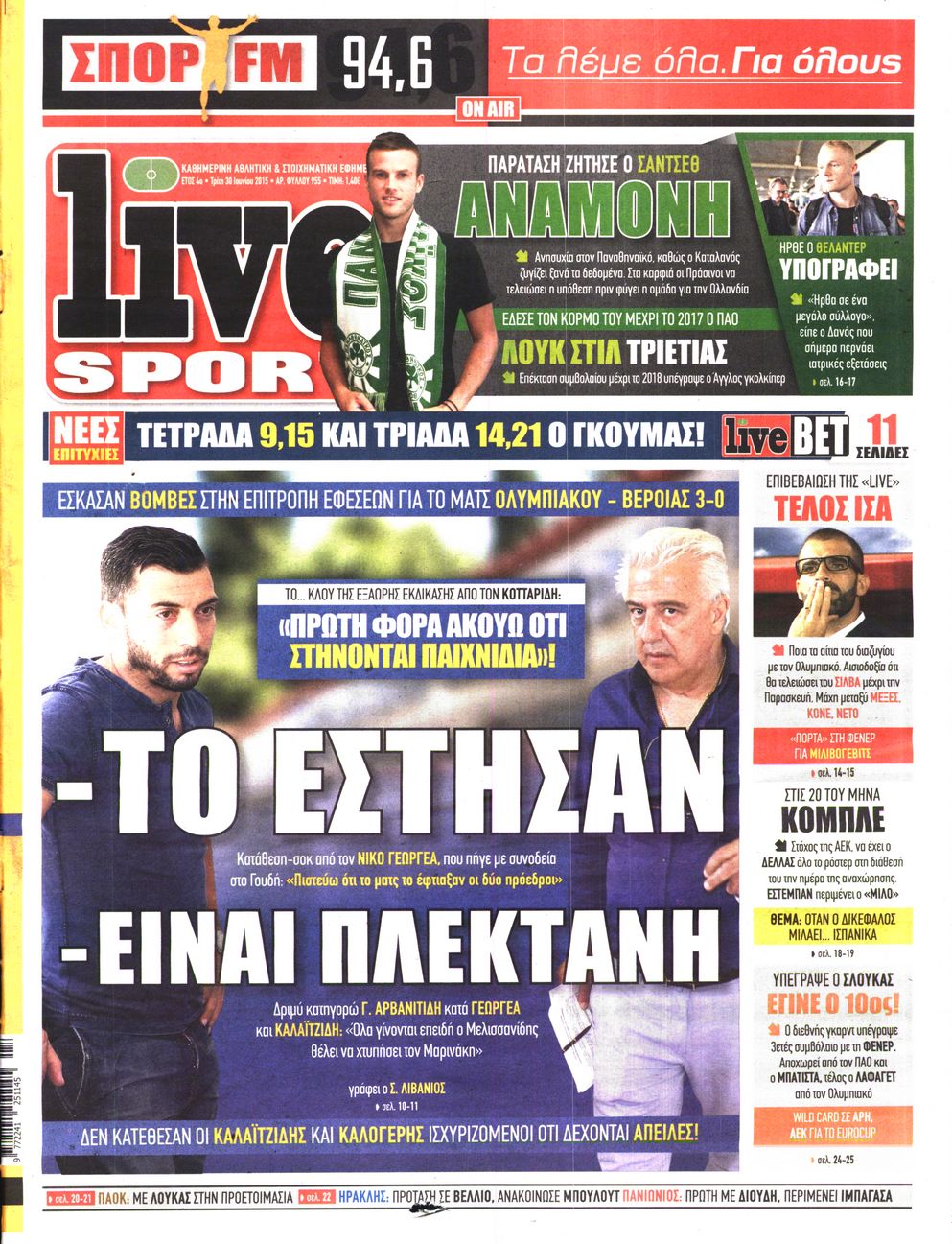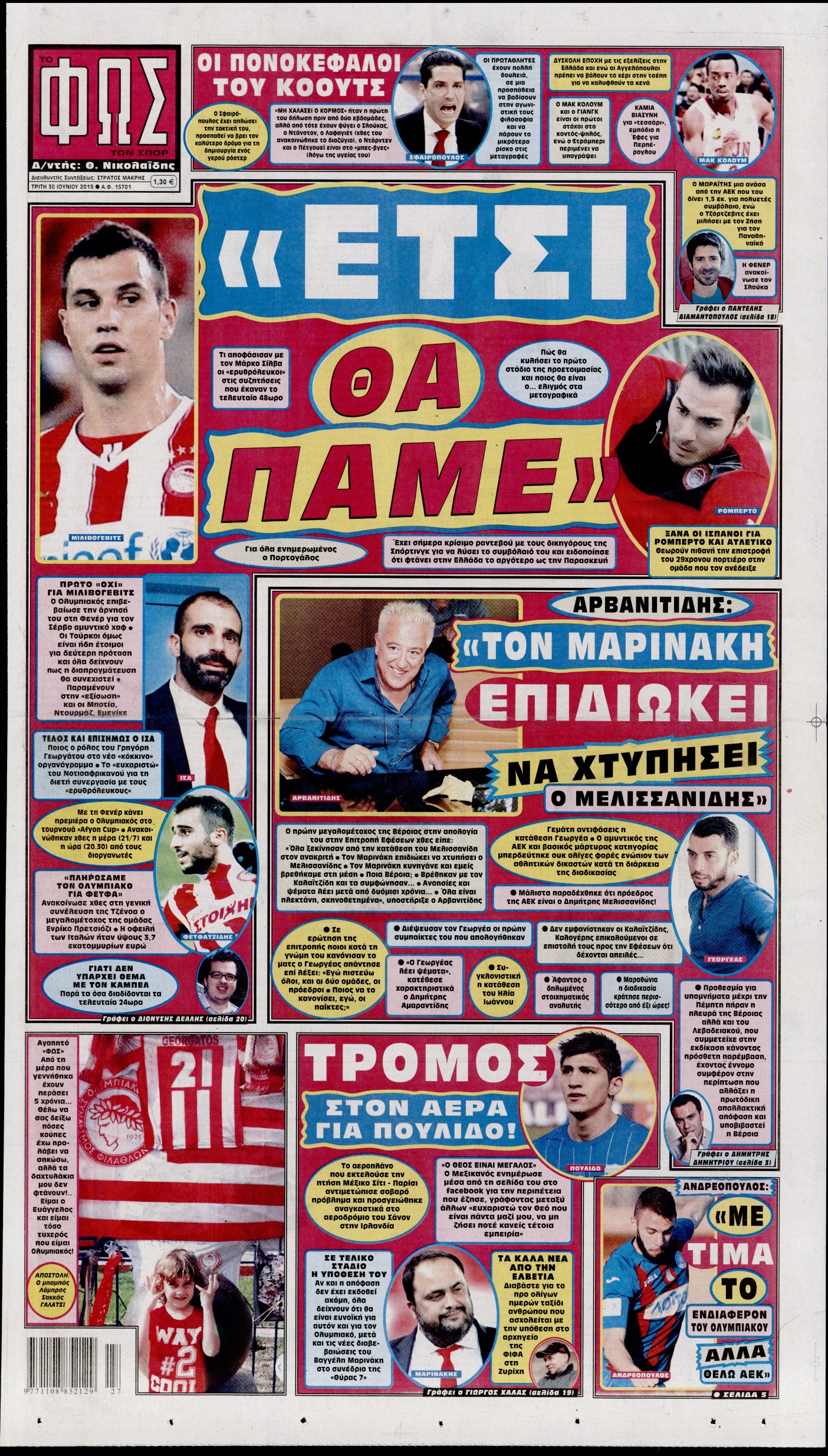 Οι αθλητικές εφημερίδες 30/6/2015 Enikos Newsroom 06:24, Τρίτη 30 Ιουνίου 2015 Media Διαβάστε τα σημερινά πρωτοσέλιδα των αθλητικών εφημερίδων: ΑΘΛΗΤΙΚΕΣ ΕΦΗΜΕΡΙΔΕΣ ΠΡΩΤΟΣΕΛΙΔΑ Μοιράσου το: σχολίασε κι εσύ (0 σχόλια) Ακολουθήστε το enikos.gr στο Google News και μάθετε πρώτοι όλες τις ειδήσεις Δείτε όλες τις τελευταίες ειδήσεις από την Ελλάδα και τον Κόσμο στο enikos.gr Ειδήσεις Ροή Ειδήσεων 2 ώρες πριν Η Ουκρανία χτύπησε τάνκερ του σκιώδους στόλου της Ρωσίας στη Μεσόγειο – Έπλεε νότια της Κρήτης 4 ώρες πριν Πούτιν: Η Ουκρανία δεν είναι έτοιμη για ειρηνευτικές συνομιλίες – Ο ρωσικός στρατός προελαύνει σε όλα τα μέτωπα 46 λεπτά πριν Θεσσαλονίκη: Στη φυλακή ο 44χρονος που κατηγορείται ότι προσπάθησε να πνίξει με κορδόνι την 34χρονη σύντροφό του 1 ώρα πριν Εξώδικο επιχειρηματία στον Γιώργο Μαζωνάκη – Τι απαντά στις καταγγελίες του τραγουδιστή 2 ώρες πριν Βουλή: Υπερψηφίστηκε το νομοσχέδιο για την ένταξη του ΟΠΕΚΕΠΕ στην ΑΑΔΕ 6 ώρες πριν Αλλαγή σελίδας για 3 ζώδια – «Μία δύσκολη περίοδος φτάνει στο τέλος της» 2 ημέρες πριν 20 χρόνια τα Χριστούγεννα ξεκινούν στα Public με μεγάλη ποικιλία σε δώρα! 5 ώρες πριν Γεμάτος νεροχύτης; 5 σοβαρές ευθύνες που «φοβίζουν» όσους αφήνουν άπλυτα πιάτα 4 ώρες πριν Ειδικός μοιράζεται 6 κόλπα για να διατηρείστε σε φόρμα με πάνω από 40 ώρες εργασίας την εβδομάδα: «Προπονηθείτε πριν από τη δουλειά, όχι μετά» 23 δευτερόλεπτα πριν Ηράκλειο: Νεκρός ένας 65χρονος μοτοσικλετιστής έπειτα από σφοδρή σύγκρουση οχημάτων – ΦΩΤΟ 8 λεπτά πριν Πούτιν: Σαρκαστικά μηνύματα, παράπονα και απρόοπτα στη συνέντευξη Τύπου – Η πρόταση γάμου on air και οι ερωτήσεις για τα αγγούρια και τους… εξωγήινους 16 λεπτά πριν Κρήτη: Ένοχος ο 54χρονος «ερευνητής» για απάτη στην υπόθεση του 33χρονου γιατρού που αγνοείται 16 λεπτά πριν Νίκος Κούρκουλος: Αυτός ο αλύγιστος και ασυμβίβαστος «Αστραπόγιαννος» 21 λεπτά πριν Παναθηναϊκός: Θα προτείνει στη Λάτσιο 4 εκατ. ευρώ και συνιδιοκτησία για τον Μανδά ENIKOS NETWORK Τάξη στις ιατρικές διαφημίσεις για την προστασία των πολιτών βάζει ο ΙΣΑ Μακροζωία: Τι παίζει πιο σημαντικό ρόλο ακόμα και από την διατροφή και την άσκηση, σύμφωνα με μελέτη Βουλή: Υπερψηφίστηκε το νομοσχέδιο για τη μετάβαση του ΟΠΕΚΕΠΕ στην ΑΑΔΕ ΕΥΔΑΠ: Οδηγός για τις αλλαγές στα τιμολόγια του νερού – 17 ερωτήσεις και απαντήσεις Χαρτογραφώντας το «σημείο χωρίς επιστροφή»: Για πρώτη φορά αποκαλύπτεται με λεπτομέρεια το ακανθώδες όριο της ατμόσφαιρας τ... Η Google καταργεί τη λειτουργία «dark web report» – Πώς θα μπορούν οι χρήστες να διαγράφουν τα δεδομένα τους περισσότερα 15:15 , Παρασκευή 19 Δεκεμβρίου 2025 Την Κυριακή με τη Realnews: Ό,τι και αν αγοράσεις, σκανάρεις και κερδίζεις! Την Κυριακή με τη Realnews: Ό,τι και αν αγοράσεις, σκανάρεις και κερδίζεις! Με το PADU app, το... 08:00 , Παρασκευή 19 Δεκεμβρίου 2025 Την Κυριακή με τη Realnews: Δωροεπιταγή 10€ Δωροεπιταγή αξίας 10€ για αγορές άνω των 60€ από τα πολυκαταστήματα FactoryOutlet H προσφορά ι... 05:48 , Παρασκευή 19 Δεκεμβρίου 2025 Οι οικονομικές εφημερίδες 19/12/2025 Διαβάστε τα πρωτοσέλιδα από τις οικονομικές εφημερίδες, σήμερα 19/12/2025. 05:43 , Παρασκευή 19 Δεκεμβρίου 2025 Οι αθλητικές εφημερίδες 19/12/2025 Διαβάστε τα πρωτοσέλιδα από τις αθλητικές εφημερίδες, σήμερα 19/12/2025. ΤΕΛΕΥΤΑΙΕΣ ΕΙΔΗΣΕΙΣ 8 λεπτά πριν Πούτιν: Σαρκαστικά μηνύματα, παράπονα και απρόοπτα... 16 λεπτά πριν Κρήτη: Ένοχος ο 54χρονος «ερευνητής» για απάτη στην... 16 λεπτά πριν Νίκος Κούρκουλος: Αυτός ο αλύγιστος και ασυμβίβαστος... 21 λεπτά πριν Π