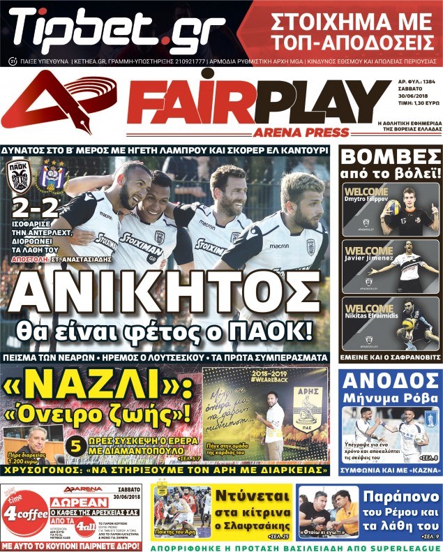 Οι αθλητικές εφημερίδες 30/6/2018 Enikos Newsroom 06:27, Σάββατο 30 Ιουνίου 2018 Media Διαβάστε τα πρωτοσέλιδα. ΑΘΛΗΤΙΚΕΣ ΕΦΗΜΕΡΙΔΕΣ ΠΡΩΤΟΣΕΛΙΔΑ Μοιράσου το: σχολίασε κι εσύ (0 σχόλια) Ακολουθήστε το enikos.gr στο Google News και μάθετε πρώτοι όλες τις ειδήσεις Δείτε όλες τις τελευταίες ειδήσεις από την Ελλάδα και τον Κόσμο στο enikos.gr Ειδήσεις Ροή Ειδήσεων 3 ώρες πριν Η Ουκρανία χτύπησε τάνκερ του σκιώδους στόλου της Ρωσίας στη Μεσόγειο – Έπλεε νότια της Κρήτης 1 ώρα πριν Πούτιν: Σαρκαστικά μηνύματα, παράπονα και απρόοπτα στη συνέντευξη Τύπου – Η πρόταση γάμου on air και οι ερωτήσεις για τα αγγούρια και τους… εξωγήινους 2 ώρες πριν Η απάντηση της κυβέρνησης στα αιτήματα των αγροτών: 16+4 υλοποιούνται ή βρίσκονται υπό επεξεργασία για να βρεθεί λύση – 7 δεν μπορούν να επιλυθούν 2 ώρες πριν Θεσσαλονίκη: Στη φυλακή ο 44χρονος που κατηγορείται ότι προσπάθησε να πνίξει με κορδόνι την 34χρονη σύντροφό του 2 ώρες πριν Εξώδικο επιχειρηματία στον Γιώργο Μαζωνάκη – Τι απαντά στις καταγγελίες του τραγουδιστή 54 λεπτά πριν Τα 5 ζώδια που ευνοούνται στην ερωτική ζωή τους την επόμενη εβδομάδα – «Η ενέργεια του Αιγόκερου φέρνει αγάπη και σταθερότητα» 6 ώρες πριν Γεμάτος νεροχύτης; 5 σοβαρές ευθύνες που «φοβίζουν» όσους αφήνουν άπλυτα πιάτα 5 ώρες πριν Ειδικός μοιράζεται 6 κόλπα για να διατηρείστε σε φόρμα με πάνω από 40 ώρες εργασίας την εβδομάδα: «Προπονηθείτε πριν από τη δουλειά, όχι μετά» 2 ημέρες πριν 20 χρόνια τα Χριστούγεννα ξεκινούν στα Public με μεγάλη ποικιλία σε δώρα! 3 λεπτά πριν ΟΠΑΠ: Φρέσκια και δυναμική καμπάνια για το Υπεύθυνο Παιχνίδι με Χριστουγεννιάτικη διάθεση 6 λεπτά πριν ΟΗΕ: Δεν υπάρχει πλέον λιμός στη Γάζα αλλά η επισιτιστική ανασφάλεια παραμένει 12 λεπτά πριν Τραγωδία στη Λάρισα: Νεκρή γυναίκα που παρασύρθηκε από φορτηγό 17 λεπτά πριν Κασπία Θάλασσα: Ουκρανικά πλήγματα με drones σε ρωσική εξέδρα άντλησης πετρελαίου 22 λεπτά πριν Μαρινάκης για το «όχι» του ΠΑΣΟΚ στην ένταξη του ΟΠΕΚΕΠΕ στην ΑΑΔΕ: «Εκτεθειμένος ο κ. Ανδρουλάκης απέναντι στους αγρότες» ENIKOS NETWORK Τάξη στις ιατρικές διαφημίσεις για την προστασία των πολιτών βάζει ο ΙΣΑ Μακροζωία: Τι παίζει πιο σημαντικό ρόλο ακόμα και από την διατροφή και την άσκηση, σύμφωνα με μελέτη Παπαθανάσης για νέο Εθνικό Πρόγραμμα Ανάπτυξης 2026-2030: Είναι υπερδιπλάσιο από αυτό της προηγούμενης προγραμματικής περιό... Βουλή: Υπερψηφίστηκε το νομοσχέδιο για τη μετάβαση του ΟΠΕΚΕΠΕ στην ΑΑΔΕ Χαρτογραφώντας το «σημείο χωρίς επιστροφή»: Για πρώτη φορά αποκαλύπτεται με λεπτομέρεια το ακανθώδες όριο της ατμόσφαιρας τ... Η Google καταργεί τη λειτουργία «dark web report» – Πώς θα μπορούν οι χρήστες να διαγράφουν τα δεδομένα τους περισσότερα 15:15 , Παρασκευή 19 Δεκεμβρίου 2025 Την Κυριακή με τη Realnews: Ό,τι και αν αγοράσεις, σκανάρεις και κερδίζεις! Την Κυριακή με τη Realnews: Ό,τι και αν αγοράσεις, σκανάρεις και κερδίζεις! Με το PADU app, το... 08:00 , Παρασκευή 19 Δεκεμβρίου 2025 Την Κυριακή με τη Realnews: Δωροεπιταγή 10€ Δωροεπιταγή αξίας 10€ για αγορές άνω των 60€ από τα πολυκαταστήματα FactoryOutlet H προσφορά ι... 05:48 , Παρασκευή 19 Δεκεμβρίου 2025 Οι οικονομικές εφημερίδες 19/12/2025 Διαβάστε τα πρωτοσέλιδα από τις οικονομικές εφημερίδες, σήμερα 19/12/2025. 05:43 , Παρασκευή 19 Δεκεμβρίου 2025 Οι αθλητικές εφημερίδες 19/12/2025 Διαβάστε τα πρωτοσέλιδα από τις αθλητικές εφημερίδες, σήμερα 19/12/2025. ΤΕΛΕΥΤΑΙΕΣ ΕΙΔΗΣΕΙΣ 3 λεπτά πριν ΟΠΑΠ: Φρέσκια και δυναμική καμπάνια για το Υπεύθυνο... 6 λεπτά πριν ΟΗΕ: Δεν υπάρχει πλέον 