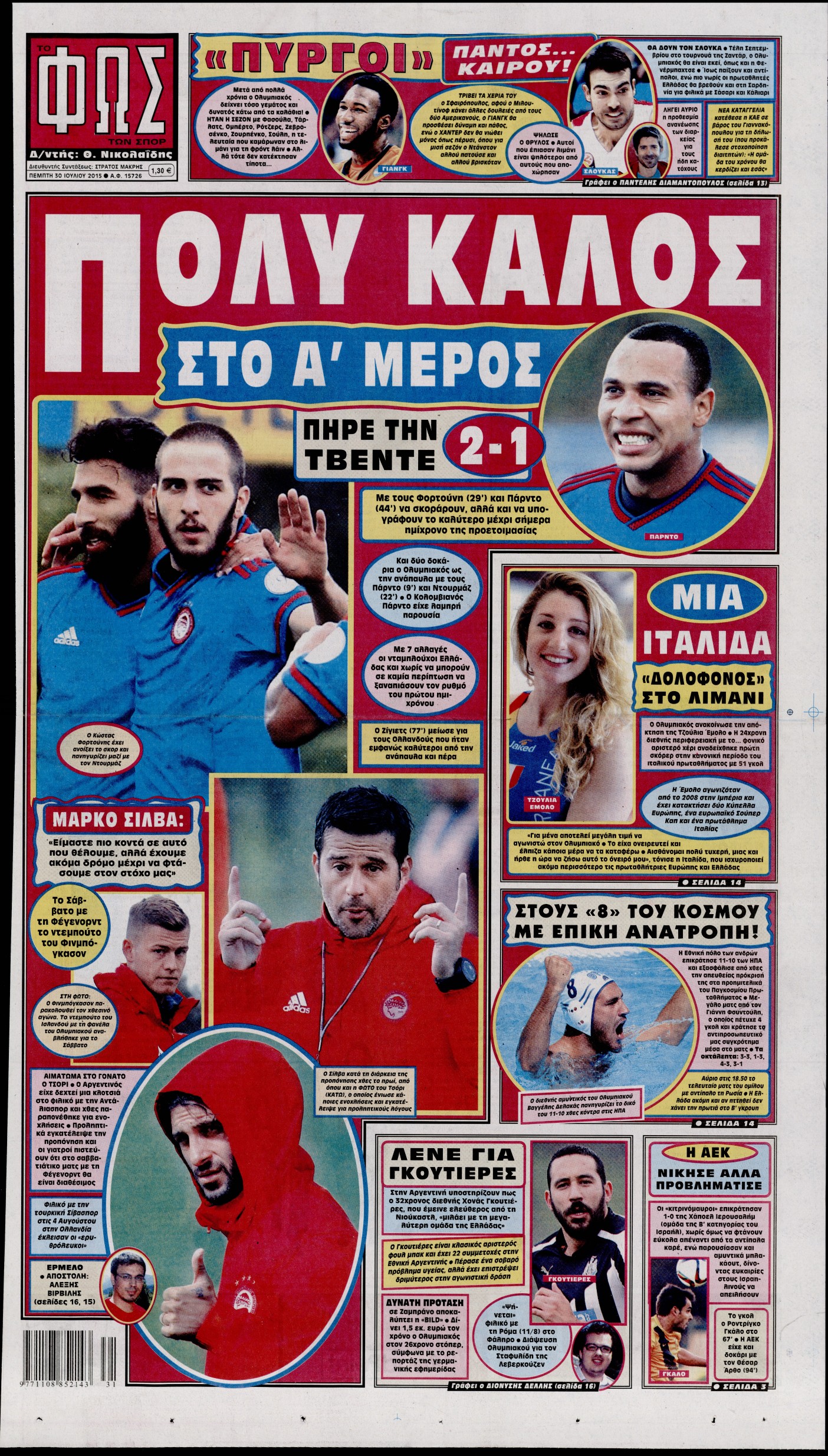 Οι αθλητικές εφημερίδες 30/7/2015 Enikos Newsroom 07:55, Πέμπτη 30 Ιουλίου 2015 Media Διαβάστε τα σημερινά πρωτοσέλιδα των αθλητικών εφημερίδων. ΑΘΛΗΤΙΚΕΣ ΕΦΗΜΕΡΙΔΕΣ ΕΦΗΜΕΡΙΔΕΣ ΠΡΩΤΟΣΕΛΙΔΑ Μοιράσου το: σχολίασε κι εσύ (0 σχόλια) Ακολουθήστε το enikos.gr στο Google News και μάθετε πρώτοι όλες τις ειδήσεις Δείτε όλες τις τελευταίες ειδήσεις από την Ελλάδα και τον Κόσμο στο enikos.gr Ειδήσεις Ροή Ειδήσεων 4 ώρες πριν Μεσόγειος: Η διαδρομή του ρωσικού τάνκερ «Qendil» και η στοχευμένη επίθεση της Ουκρανίας με drone – Ο Πούτιν προειδοποίησε για αντίποινα 28 λεπτά πριν Αγρότες: Έκλεισαν για μία ώρα την παρακαμπτήρια της Ιόνιας Οδού στη θέση Χαλίκι 2 ώρες πριν Εμπλοκή και αερομαχίες με οπλισμένα τουρκικά F-16 στο Αιγαίο 2 ώρες πριν Πούτιν: «Ναι, είμαι ερωτευμένος» – Βίντεο από τη σπάνια προσωπική παραδοχή του 31 λεπτά πριν Ανδρέας Λυκουρέντζος: Υπέβαλε την παραίτησή του ο πρόεδρος του ΕΛΓΑ, αλλά δεν έγινε δεκτή – Όλο το παρασκήνιο 41 λεπτά πριν Αριθμολογία: Οι άνθρωποι που έχουν γεννηθεί αυτές τις 4 ημερομηνίες, συχνά παρεξηγούνται – «Η καλοσύνη τους κρύβει τεράστια δύναμη» 3 ώρες πριν Μήπως έχετε χάσει τον εαυτό σας στη σχέση σας; 7 «αθόρυβες» υποχωρήσεις που μάλλον κάνατε, χωρίς να το συνειδητοποιήσετε 2 ώρες πριν Ξεχάστε το καθάρισμα το Σαββατοκύριακο: Ο «κανόνας των 20 λεπτών» που θα σας λύσει τα χέρια 5 ώρες πριν Κουίζ για την παλιά Αθήνα: Αναγνωρίζετε την περιοχή; Έχετε περάσει 100% από εκεί 4 λεπτά πριν Ολυμπιακός – Βιλερμπάν: Μάτωσε στο πρόσωπο ο Παπανικολάου έπειτα από αγκωνιά του Βοτιέ – ΦΩΤΟ 12 λεπτά πριν Συνεχίζει να προκαλεί ο Μίτσκοσκι: «Για μένα το όνομα Μακεδονία είναι ιερό» 22 λεπτά πριν Ο Γιάννης Κακλέας σκηνοθετεί Βερόνικα Δαβάκη και Ιβάν Σβιτάιλο στη «Locandiera» 28 λεπτά πριν Αγρότες: Έκλεισαν για μία ώρα την παρακαμπτήρια της Ιόνιας Οδού στη θέση Χαλίκι 31 λεπτά πριν Ανδρέας Λυκουρέντζος: Υπέβαλε την παραίτησή του ο πρόεδρος του ΕΛΓΑ, αλλά δεν έγινε δεκτή – Όλο το παρασκήνιο ENIKOS NETWORK Το ΕΚΑΒ τιμήθηκε από την Ακαδημία Αθηνών για τα 40 χρόνια προσφοράς του Έχετε πραγματικά μεγάλη καρδιά; 10 χαρακτηριστικά όσων έχουν καλοσύνη Έρχονται νέες προσλήψεις σε Δήμο – Όλες οι λεπτομέρειες Επίδομα παιδιού: Πότε ανοίγει ξανά η πλατφόρμα για τις αιτήσεις Χαρτογραφώντας το «σημείο χωρίς επιστροφή»: Για πρώτη φορά αποκαλύπτεται με λεπτομέρεια το ακανθώδες όριο της ατμόσφαιρας τ... Η Google καταργεί τη λειτουργία «dark web report» – Πώς θα μπορούν οι χρήστες να διαγράφουν τα δεδομένα τους περισσότερα 20:37 , Παρασκευή 19 Δεκεμβρίου 2025 Don’t Forget The Lyrics: Η Έλλη Κοκκίνου υποδέχεται 4 παίκτες που θα κάνουν τα πάντα για να μη χάσουν ούτε… μισή λέξη από τους στίχους Το «Don’t Forget The Lyrics» επιστρέφει απόψε, Παρασκευή 19 Δεκεμβρίου, στις 21:00 με νέο επει... 19:31 , Παρασκευή 19 Δεκεμβρίου 2025 GNTM: Απόψε ο μεγάλος τελικός για τους 4 φιναλίστ Έπειτα από μήνες γεμάτους μόδα, δημιουργία και έντονες αναμετρήσεις, το GNTM 2025 κορυφώνεται,... 18:11 , Παρασκευή 19 Δεκεμβρίου 2025 Το σόι σου: Ο Άρης έρχεται στην Ελλάδα για τις γιορτές των Χριστουγέννων – Τι θα δούμε στο αποψινό εορταστικό επεισόδιο Ένα απολαυστικό, εορταστικό επεισόδιο της σειράς “Το σόι σου”, γεμάτο ευτράπελα αλ... 15:15 , Παρασκευή 19 Δεκεμβρίου 2025 Την Κυριακή με τη Realnews: Ό,τι και αν αγοράσεις, σκανάρεις και κερδίζεις! Την Κυριακή με τη Realnews: Ό,τι και αν αγοράσεις, σκανάρεις και κερδίζεις! Με το PADU app, το... ΤΕΛΕΥΤΑΙΕΣ ΕΙΔΗΣΕΙΣ 4 λεπτά πριν Ολυμπιακός – Βιλερμπάν: Μάτωσε στο πρόσωπο ο... 12 λεπτ