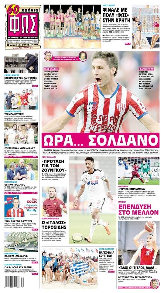 Οι αθλητικές εφημερίδες 30/7/2018 Enikos Newsroom 05:23, Δευτέρα 30 Ιουλίου 2018 Media Διαβάστε τα σημερινά πρωτοσέλιδα των αθλητικών εφημερίδων. ΑΘΛΗΤΙΚΕΣ ΕΦΗΜΕΡΙΔΕΣ Μοιράσου το: σχολίασε κι εσύ (0 σχόλια) Ακολουθήστε το enikos.gr στο Google News και μάθετε πρώτοι όλες τις ειδήσεις Δείτε όλες τις τελευταίες ειδήσεις από την Ελλάδα και τον Κόσμο στο enikos.gr Ειδήσεις Ροή Ειδήσεων 3 ώρες πριν Από το Ορμένιο ως τα Μάλγαρα κι από τη Σιάτιστα μέχρι τη Νίκαια: Μπλόκα σε όλη την Ελλάδα – Το Σάββατο ανοίγουν τα διόδια οι αγρότες 1 ώρα πριν Εμπλοκή και αερομαχίες με οπλισμένα τουρκικά F-16 στο Αιγαίο 3 ώρες πριν Αττική: Θρίλερ με νεκρό βρέφος 5 μηνών – Κοιμόταν στο ίδιο κρεβάτι με τους γονείς του 56 λεπτά πριν Πούτιν: «Ναι, είμαι ερωτευμένος» – Βίντεο από τη σπάνια προσωπική παραδοχή του 3 ώρες πριν Μεσόγειος: Η διαδρομή του ρωσικού τάνκερ «Qendil» και η στοχευμένη επίθεση της Ουκρανίας με drone – Ο Πούτιν προειδοποίησε για αντίποινα 5 ώρες πριν Τα 5 ζώδια που ευνοούνται στην ερωτική ζωή τους την επόμενη εβδομάδα – «Η ενέργεια του Αιγόκερου φέρνει αγάπη και σταθερότητα» 6 ώρες πριν Αυτό το έξυπνο μαθηματικό κόλπο θα μπορούσε να αλλάξει τον τρόπο με τον οποίο οι επιστήμονες μελετούν τους σεισμούς 2 ώρες πριν Μήπως έχετε χάσει τον εαυτό σας στη σχέση σας; 7 «αθόρυβες» υποχωρήσεις που μάλλον κάνατε, χωρίς να το συνειδητοποιήσετε 4 ώρες πριν Κουίζ για την παλιά Αθήνα: Αναγνωρίζετε την περιοχή; Έχετε περάσει 100% από εκεί 3 λεπτά πριν Μπαράκ Ομπάμα: Τα βιβλία, οι ταινίες και τα τραγούδια που ξεχώρισε το 2025 – Πλήρης λίστα 7 λεπτά πριν Don’t Forget The Lyrics: Η Έλλη Κοκκίνου υποδέχεται 4 παίκτες που θα κάνουν τα πάντα για να μη χάσουν ούτε… μισή λέξη από τους στίχους 13 λεπτά πριν Πλεύρης στον ΑΝΤ1: Η βασική πολιτική που ψηφίστηκε από τους υπουργούς Μετανάστευσης είναι η δημιουργία κέντρων κράτησης μεταναστών στην Αφρική – ΒΙΝΤΕΟ 18 λεπτά πριν Η εξομολόγηση της Νίκης Σερέτη: «Δεν κρύβω ότι ήταν πάρα πολύ δύσκολο όλο αυτό που βίωσα» 23 λεπτά πριν Αγρότες: Κλειστό ξανά το ρεύμα εισόδου στα Μάλγαρα – Άνοιξαν τον κόμβο της Χαλκηδόνας ENIKOS NETWORK Έχετε πραγματικά μεγάλη καρδιά; 10 χαρακτηριστικά όσων έχουν καλοσύνη «Η σούπερ» γρίπη εξαπλώνεται στην Ευρώπη-Στοιχεία από το ECDC για την αποτελεσματικότητα του εμβολίου Επίδομα παιδιού: Πότε ανοίγει ξανά η πλατφόρμα για τις αιτήσεις Προκήρυξη ΑΣΕΠ για 397 μόνιμες προσλήψεις στο Δημόσιο: Βγήκαν τα προσωρινά αποτελέσματα – Πότε αρχίζει η υποβολή ενστάσεων Χαρτογραφώντας το «σημείο χωρίς επιστροφή»: Για πρώτη φορά αποκαλύπτεται με λεπτομέρεια το ακανθώδες όριο της ατμόσφαιρας τ... Η Google καταργεί τη λειτουργία «dark web report» – Πώς θα μπορούν οι χρήστες να διαγράφουν τα δεδομένα τους περισσότερα 20:37 , Παρασκευή 19 Δεκεμβρίου 2025 Don’t Forget The Lyrics: Η Έλλη Κοκκίνου υποδέχεται 4 παίκτες που θα κάνουν τα πάντα για να μη χάσουν ούτε… μισή λέξη από τους στίχους Το «Don’t Forget The Lyrics» επιστρέφει απόψε, Παρασκευή 19 Δεκεμβρίου, στις 21:00 με νέο επει... 19:31 , Παρασκευή 19 Δεκεμβρίου 2025 GNTM: Απόψε ο μεγάλος τελικός για τους 4 φιναλίστ Έπειτα από μήνες γεμάτους μόδα, δημιουργία και έντονες αναμετρήσεις, το GNTM 2025 κορυφώνεται,... 18:11 , Παρασκευή 19 Δεκεμβρίου 2025 Το σόι σου: Ο Άρης έρχεται στην Ελλάδα για τις γιορτές των Χριστουγέννων – Τι θα δούμε στο αποψινό εορταστικό επεισόδιο Ένα απολαυστικό, εορταστικό επεισόδιο της σειράς “Το σόι σου”, γεμάτο ευτράπελα αλ... 15:15 , Παρασκευή 19 Δεκεμβρίου 2025 Την Κυριακή με τη Realnews: 
