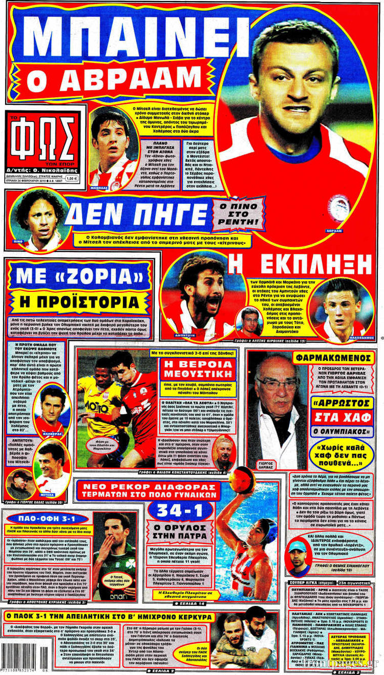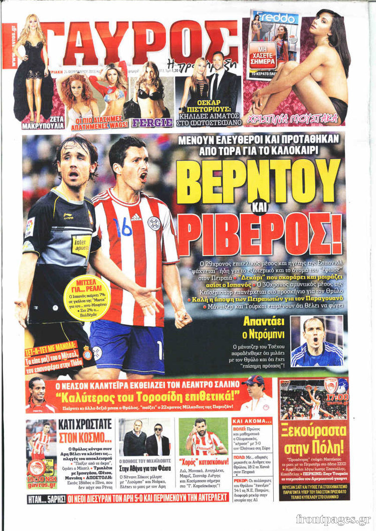 Οι αθλητικές εφημερίδες Enikos Newsroom 09:03, Κυριακή 24 Φεβρουαρίου 2013 Media Οι αθλητικές εφημερίδες ΑΘΛΗΤΙΚΕΣ ΕΦΗΜΕΡΙΔΕΣ Μοιράσου το: σχολίασε κι εσύ (0 σχόλια) Ακολουθήστε το enikos.gr στο Google News και μάθετε πρώτοι όλες τις ειδήσεις Δείτε όλες τις τελευταίες ειδήσεις από την Ελλάδα και τον Κόσμο στο enikos.gr Ειδήσεις Ροή Ειδήσεων 3 ώρες πριν Γεραπετρίτης για συνάντηση Μητσοτάκη – Ερντογάν: Τα θέματα με την Τουρκία πρέπει να λυθούν βάσει διεθνούς Δικαίου, εκτός διαλόγου ζητήματα κυριαρχίας 17 λεπτά πριν ΑΠΕΥΘΕΙΑΣ – Η συνέντευξη Τύπου του προέδρου της ΓΣΕΕ, Γιάννη Παναγόπουλου 3 ώρες πριν Αναστάσης Παπαληγούρας: Πέθανε ο πρώην υπουργός της Νέας Δημοκρατίας 2 ώρες πριν Επεισοδιακή καταδίωξη στο κέντρο της Αθήνας: 16χρονος οδηγούσε κλεμμένη μηχανή – Έπεσε πάνω σε μοτοσικλέτα της Τροχαίας 4 ώρες πριν Χειμερινή εκπαίδευση και διαβίωση: Το κολασμένο πρόγραμμα των αυριανών Υπαξιωματικών στο βουνό – Δείτε φωτογραφίες 20 ώρες πριν ΕΛΤΑ: Το «φρακαρισμένο» παλιό κέντρο διαλογής στην Αττική και οι καθυστερήσεις στις παραδόσεις που αγγίζουν τους 2 μήνες – «Είμαστε επιφυλακτικοί ως προς τον σχεδιασμό» 5 ώρες πριν «Διάλογος με όρια, χωρίς αυταπάτες» – Ανάλυση του Δημήτρη Σταθακόπουλου για τη συνάντηση Μητσοτάκη – Ερντογάν 14 ώρες πριν Βιολάντα: Ο ιδιοκτήτης είχε ελεγχθεί στο παρελθόν για παράνομη διακίνηση υγραερίου 13 ώρες πριν Υπόθεση Επστάιν: Οι αποκαλύψεις προκαλούν χάος από τη Σκανδιναβία έως τη Νότια Ασία – Το τίμημα του πάθους για γυναίκες, σεξ και χρήμα 5 λεπτά πριν Χατζηδάκης για Τουρκία: Έχουμε φύγει από το κλίμα του 2020, ο δρόμος μας δεν είναι οι ψευτοπαλικαρισμοί – Τι είπε για την υπόθεση Παναγόπουλου 10 λεπτά πριν Τουρκικά ΜΜΕ για Μητσοτάκη – Ερντογάν: Η Αθήνα ανάσανε με βαθιά ανακούφιση μετά τη συνάντηση 17 λεπτά πριν ΑΠΕΥΘΕΙΑΣ – Η συνέντευξη Τύπου του προέδρου της ΓΣΕΕ, Γιάννη Παναγόπουλου 23 λεπτά πριν Χαμός στη Βουλή με την Κωνσταντοπούλου: «Κηφήνες οι βουλευτές της ΝΔ» – Ο έντονος διάλογος με τον Πλακιωτάκη 30 λεπτά πριν ΠΑΣΟΚ: Κατέθεσε τροπολογία για τις Συλλογικές Συμβάσεις Εργασίας – Τι αναφέρει για τη διαιτησία ENIKOS NETWORK Ακράτεια ούρων στην εμμηνόπαυση: Γιατί οι ασκήσεις Kegel δεν αρκούν – Τι να κάνετε σύμφωνα με τους ειδικούς Η γρίπη πιέζει το ΕΣΥ-Πάνω από 100.000 περιστατικά στα ΤΕΠ τον Ιανουάριο Τσικνοπέμπτη 2026: Οι τιμές των κρεάτων στη Βαρβάκειο Αγορά – Ποιο είναι το πιο φθηνό είδος ΑΑΔΕ: Διευκρινίσεις για τις πληρωμές των κτηνοτρόφων Ευπάθεια στο moltbook ai αποκαλύπτει email, tokens σύνδεσης και api keys Αυτός είναι ο ρόλος της μικρής τρύπας στους νυχοκόπτες – «Είμαι ο μόνος που δεν το ήξερε;»» περισσότερα 11:19 , Πέμπτη 12 Φεβρουαρίου 2026 Τηλεθέαση (11/2): Πρώτη στις πρωινές ενημερωτικές εκπομπές στο δυναμικό κοινό το «Ώρα Ελλάδος» Ανατροπή στην τηλεθέαση στις πρωινές ενημερωτικές εκπομπές, καθώς η εκπομπή «Ώρα Ελλάδος» του ... 09:51 , Πέμπτη 12 Φεβρουαρίου 2026 Τηλεθέαση (11/2): Τι νούμερα έκανε ο Ά ημιτελικός της Eurovision στην ΕΡΤ Ο ημιτελικός Sing for Greece που θα αναδείξει το τραγούδι που θα εκπροσωπήσει την χώρα στην Eu... 09:20 , Πέμπτη 12 Φεβρουαρίου 2026 MasterChef: Ο Κουτσόπουλος εντόπισε αίμα στο κρέας – «Δεν χρειάζεται να δείξουμε βαθμολογίες» Νέα δοκιμασία αποχώρησης έφερε ένταση και ανατροπές στο MasterChef, με καλεσμένο τον Μιχάλη Χά... 07:36 , Πέμπτη 12 Φεβρουαρίου 2026 Οι αθλητικές μεταδόσεις 12/2/2026 Το ματς Ολυμπιακός – Ερυθρός Αστέρας για τη Euroleague ξεχωρίζεί στο πρόγραμμα με τις αθλητικέ... ΤΕ