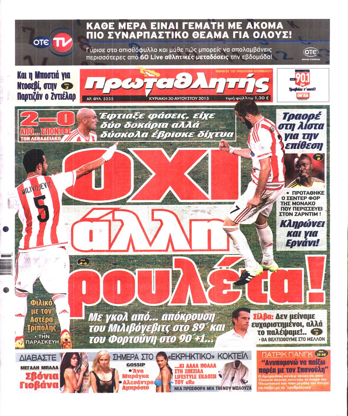 Οι αθλητικές εφημερίδες 30/8/2015 Enikos Newsroom 06:47, Κυριακή 30 Αυγούστου 2015 Media Διαβάστε τα σημερινά πρωτοσέλιδα των αθλητικών εφημερίδων: ΑΘΛΗΤΙΚΕΣ ΕΦΗΜΕΡΙΔΕΣ ΠΡΩΤΟΣΕΛΙΔΑ Μοιράσου το: σχολίασε κι εσύ (0 σχόλια) Ακολουθήστε το enikos.gr στο Google News και μάθετε πρώτοι όλες τις ειδήσεις Δείτε όλες τις τελευταίες ειδήσεις από την Ελλάδα και τον Κόσμο στο enikos.gr Ειδήσεις Ροή Ειδήσεων 20 λεπτά πριν «Έλληνας Εσκομπάρ»: Φωτογραφίες με τους 4 τόνους κοκαΐνης που κατασχέθηκαν από το σκάφος «Ουρανία» 3 ώρες πριν Η Ουκρανία χτύπησε τάνκερ του σκιώδους στόλου της Ρωσίας στη Μεσόγειο – Έπλεε νότια της Κρήτης 2 ώρες πριν Πούτιν: Σαρκαστικά μηνύματα, παράπονα και απρόοπτα στη συνέντευξη Τύπου – Η πρόταση γάμου on air και οι ερωτήσεις για τα αγγούρια και τους… εξωγήινους 2 ώρες πριν Η απάντηση της κυβέρνησης στα αιτήματα των αγροτών: 16+4 υλοποιούνται ή βρίσκονται υπό επεξεργασία για να βρεθεί λύση – 7 δεν μπορούν να επιλυθούν 3 ώρες πριν Εξώδικο επιχειρηματία στον Γιώργο Μαζωνάκη – Τι απαντά στις καταγγελίες του τραγουδιστή 1 ώρα πριν Τα 5 ζώδια που ευνοούνται στην ερωτική ζωή τους την επόμενη εβδομάδα – «Η ενέργεια του Αιγόκερου φέρνει αγάπη και σταθερότητα» 6 ώρες πριν Γεμάτος νεροχύτης; 5 σοβαρές ευθύνες που «φοβίζουν» όσους αφήνουν άπλυτα πιάτα 5 ώρες πριν Ειδικός μοιράζεται 6 κόλπα για να διατηρείστε σε φόρμα με πάνω από 40 ώρες εργασίας την εβδομάδα: «Προπονηθείτε πριν από τη δουλειά, όχι μετά» 2 ημέρες πριν 20 χρόνια τα Χριστούγεννα ξεκινούν στα Public με μεγάλη ποικιλία σε δώρα! 7 λεπτά πριν Από το Ορμένιο ως τα Μάλγαρα κι από τη Σιάτιστα μέχρι τη Νίκαια: Μπλόκα σε όλη την Ελλάδα – Το Σάββατο ανοίγουν τα διόδια οι αγρότες 8 λεπτά πριν Ταϊβάν: 3 νεκροί έπειτα από επίθεση άνδρα με μαχαίρι – Ο δράστης σκοτώθηκε σε αστυνομική καταδίωξη – ΒΙΝΤΕΟ 11 λεπτά πριν Άρης Μουγκοπέτρος για τα προσθετικά μέλη: «Οι κόρες μου ήρθαν, μου χαϊδέψαν το χέρι και μου είπαν “μπαμπά το μιμί πέρασε”» 16 λεπτά πριν Πούτιν: «Δεν είμαι υπεύθυνος» για τους θανάτους στην Ουκρανία – Σχέδιο για κατάπαυση του πυρός αν ο Ζελένσκι κάνει εκλογές 18 λεπτά πριν Κουίζ για την παλιά Αθήνα: Αναγνωρίζετε την περιοχή; Έχετε περάσει 100% από εκεί ENIKOS NETWORK ΕΛΣΤΑΤ: Αύξηση κατά 1,7% των επαγγελματιών υγείας το 2024 Τάξη στις ιατρικές διαφημίσεις για την προστασία των πολιτών βάζει ο ΙΣΑ Μετρό: Ενισχύονται τα δρομολόγια – Δείτε ποιες ημέρες Παπαθανάσης για νέο Εθνικό Πρόγραμμα Ανάπτυξης 2026-2030: Είναι υπερδιπλάσιο από αυτό της προηγούμενης προγραμματικής περιό... Χαρτογραφώντας το «σημείο χωρίς επιστροφή»: Για πρώτη φορά αποκαλύπτεται με λεπτομέρεια το ακανθώδες όριο της ατμόσφαιρας τ... Η Google καταργεί τη λειτουργία «dark web report» – Πώς θα μπορούν οι χρήστες να διαγράφουν τα δεδομένα τους περισσότερα 15:15 , Παρασκευή 19 Δεκεμβρίου 2025 Την Κυριακή με τη Realnews: Ό,τι και αν αγοράσεις, σκανάρεις και κερδίζεις! Την Κυριακή με τη Realnews: Ό,τι και αν αγοράσεις, σκανάρεις και κερδίζεις! Με το PADU app, το... 08:00 , Παρασκευή 19 Δεκεμβρίου 2025 Την Κυριακή με τη Realnews: Δωροεπιταγή 10€ Δωροεπιταγή αξίας 10€ για αγορές άνω των 60€ από τα πολυκαταστήματα FactoryOutlet H προσφορά ι... 05:48 , Παρασκευή 19 Δεκεμβρίου 2025 Οι οικονομικές εφημερίδες 19/12/2025 Διαβάστε τα πρωτοσέλιδα από τις οικονομικές εφημερίδες, σήμερα 19/12/2025. 05:43 , Παρασκευή 19 Δεκεμβρίου 2025 Οι αθλητικές εφημερίδες 19/12/2025 Διαβάστε τα πρωτοσέλιδα από τις αθλητικές εφημερίδες, σήμερα 19/12/2025. ΤΕΛΕΥΤΑΙΕΣ ΕΙΔΗΣΕΙΣ 7 λεπτά πριν 