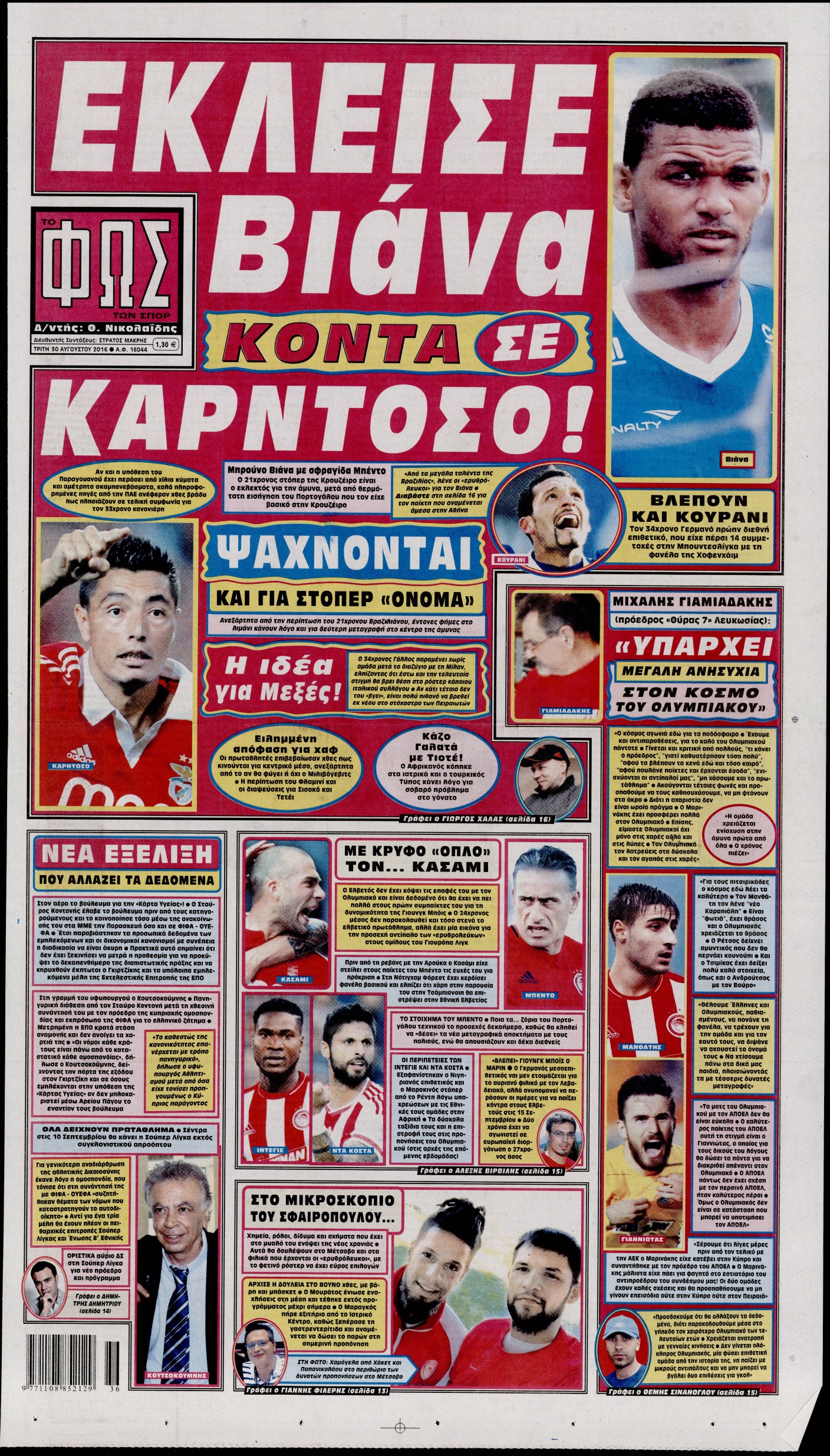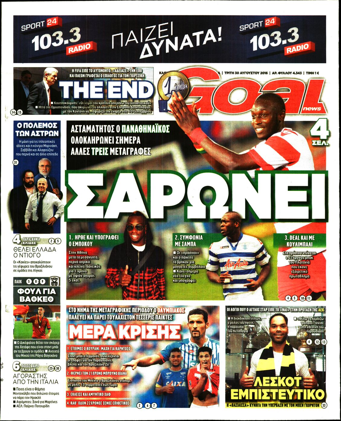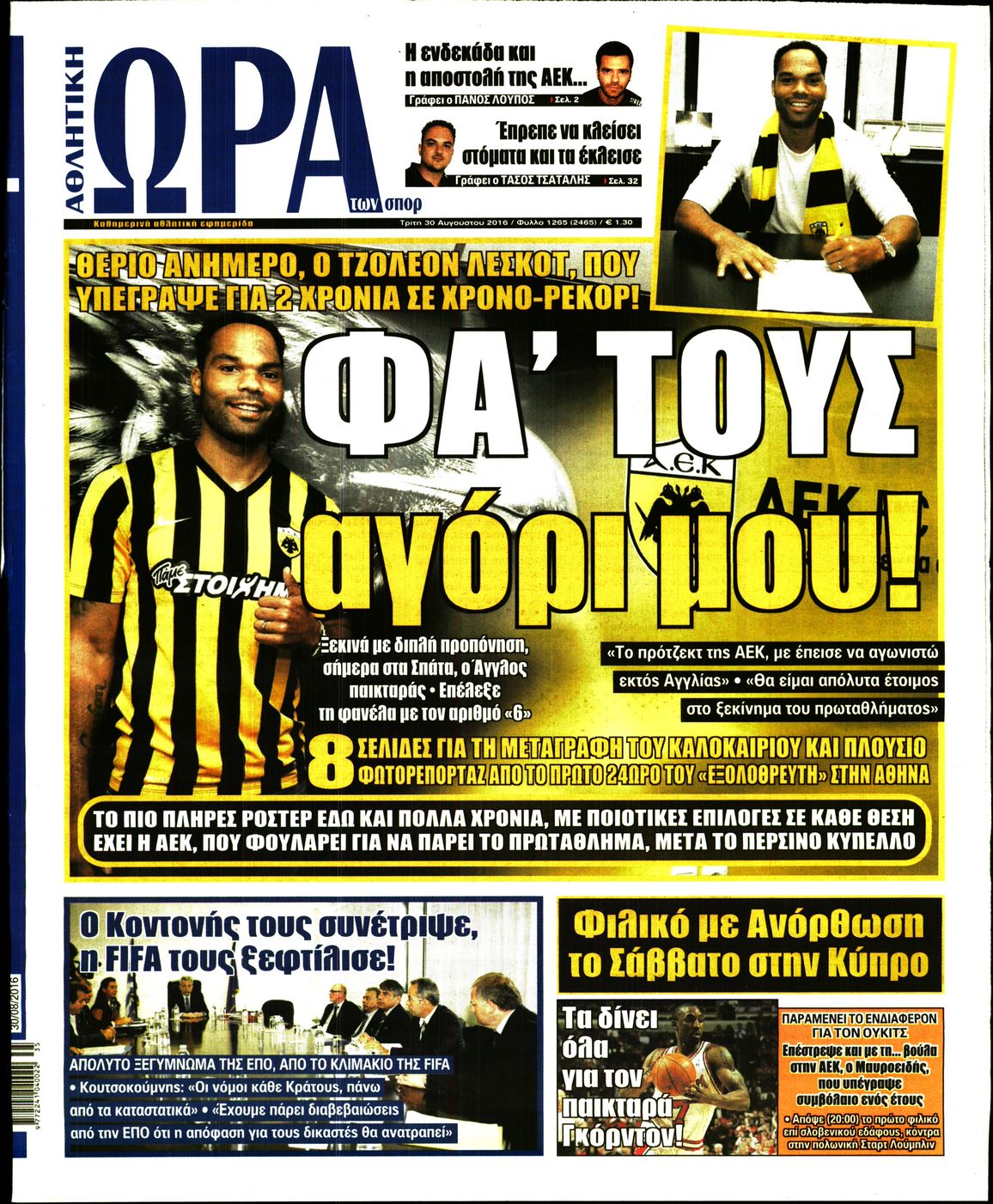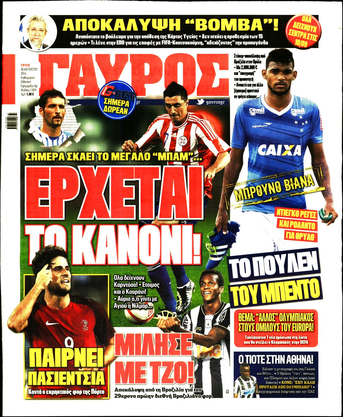 Οι αθλητικές εφημερίδες 30/8/2016 Enikos Newsroom 05:21, Τρίτη 30 Αυγούστου 2016 Media Διαβάστε τα σημερινά πρωτοσέλιδα των αθλητικών εφημερίδων: ΑΘΛΗΤΙΚΕΣ ΕΦΗΜΕΡΙΔΕΣ ΠΡΩΤΟΣΕΛΙΔΑ Μοιράσου το: σχολίασε κι εσύ (0 σχόλια) Ακολουθήστε το enikos.gr στο Google News και μάθετε πρώτοι όλες τις ειδήσεις Δείτε όλες τις τελευταίες ειδήσεις από την Ελλάδα και τον Κόσμο στο enikos.gr Ειδήσεις Ροή Ειδήσεων 34 λεπτά πριν Αγρότες: «Όχι στον διάλογο, μας εμπαίζει η κυβέρνηση» – Αποφάσισαν κλιμάκωση των κινητοποιήσεων 1 ώρα πριν Την πρώτη Belharra παρέλαβε η χώρα μας, υψώθηκε η ελληνική σημαία στη φρεγάτα «Κίμων» – Δένδιας: «Το ισχυρότερο Πολεμικό Ναυτικό που είχε ποτέ ο ελληνισμός» 4 ώρες πριν Γιώργος Μαζωνάκης: «Δεν ζήτησα χρήματα, παρά μόνο ηθική δικαίωση» – Οι πρώτες δηλώσεις του 21χρονου μετά την κατάθεση της μήνυσης 19 λεπτά πριν Μιχάλης Χουρδάκης: «Είμαι διαθέσιμος να συμβάλω στην προσωρινή κάλυψη του ιατρείου της Ψερίμου» – Η επιστολή στον Άδωνι Γεωργιάδη 43 λεπτά πριν Εξώδικο Γεωργιάδη στην Κωνσταντοπούλου – «Με κατηγόρησε ότι έχω καταδικαστεί για παιδεραστία» 1 ώρα πριν Τα 5 ζώδια που θα ευνοηθούν στα οικονομικά τους το 2026 – «Τραβούν το χρήμα σαν μαγνήτες» 6 ώρες πριν Αν κάνετε συνεχώς αυτά τα 8 πράγματα με τα κατοικίδιά σας, σας λείπει η ανθρώπινη επαφή 2 ώρες πριν Αυτό που κρύβεται κάτω από τη Γροιλανδία θα μπορούσε να ανατρέψει όσα γνωρίζουμε για την άνοδο της στάθμης των θαλασσών 1 ημέρα πριν 20 χρόνια τα Χριστούγεννα ξεκινούν στα Public με μεγάλη ποικιλία σε δώρα! 3 λεπτά πριν Σμαράγδα Καρύδη για την περούκα της «Ντάλιας»: «Την είχα 20 χρόνια και τώρα μπήκε ξανά σε κουτί» 8 λεπτά πριν Άγιος έρωτας: Η Χριστίνα εξομολογείται στον πατέρα Νικόλαο, απόψε στις 21:00 στον Alpha 13 λεπτά πριν ΕΛΚ – Κωστής Χατζηδάκης: Παρεμβάσεις σε 9 τομείς για την ανταγωνιστικότητα 19 λεπτά πριν Μιχάλης Χουρδάκης: «Είμαι διαθέσιμος να συμβάλω στην προσωρινή κάλυψη του ιατρείου της Ψερίμου» – Η επιστολή στον Άδωνι Γεωργιάδη 24 λεπτά πριν Κουίζ για την παλιά Αθήνα: Αναγνωρίζετε την περιοχή; Είναι από τις πιο γνωστές ENIKOS NETWORK 100 χρόνια ΠΙΣ: Ένας αιώνας προσφοράς στην Ιατρική και την κοινωνία Ένα ποτήρι την ημέρα από αυτόν τον χυμό μειώνει τη χοληστερίνη, τη φλεγμονή και την πίεση Χριστούγεννα και Πρωτοχρονιά: Δείτε πόσα χρήματα θα πάρουν ως αμοιβή όσοι εργαστούν Κρατική επιχορήγηση έως 14.500 ευρώ: Ποιοι θα λάβουν από σήμερα την προκαταβολή στον τραπεζικό λογαριασμό τους Χαρτογραφώντας το «σημείο χωρίς επιστροφή»: Για πρώτη φορά αποκαλύπτεται με λεπτομέρεια το ακανθώδες όριο της ατμόσφαιρας τ... Η Google καταργεί τη λειτουργία «dark web report» – Πώς θα μπορούν οι χρήστες να διαγράφουν τα δεδομένα τους περισσότερα 17:20 , Πέμπτη 18 Δεκεμβρίου 2025 Άγιος έρωτας: Η Χριστίνα εξομολογείται στον πατέρα Νικόλαο, απόψε στις 21:00 στον Alpha Η Νότα αποφασίζει να εκδικηθεί τον Πέτρο και τον Στέφανο, για χάρη του Λούη, όμως τα πράγματα ... 16:50 , Πέμπτη 18 Δεκεμβρίου 2025 Να μ’ αγαπάς: Ζωή και Φωτεινή συμφιλιώνονται ως μάνα με κόρη, απόψε στις 20:00 Η ταυτότητα του Άγγελου αποκαλύπτεται στο νέο επεισόδιο της σειράς “Να μ’ αγαπάς... 15:52 , Πέμπτη 18 Δεκεμβρίου 2025 Το Σπίτι Δίπλα Στο Ποτάμι: Το καθηλωτικό τελευταίο επεισόδιο για το 2025 απόψε στις 22:30 Καθηλώνει το σημερινό επεισόδιο της σειράς “Το Σπίτι Δίπλα Στο Ποτάμι” που έρχεται... 15:20 , Πέμπτη 18 Δεκεμβρίου 2025 Άγιος έρωτας – Η Ελευθερία Αρβανιτάκη τραγουδά και ο Γιάννης Τσορτέκης καθηλώνει με τον χορό του Ο Κλεάνθ