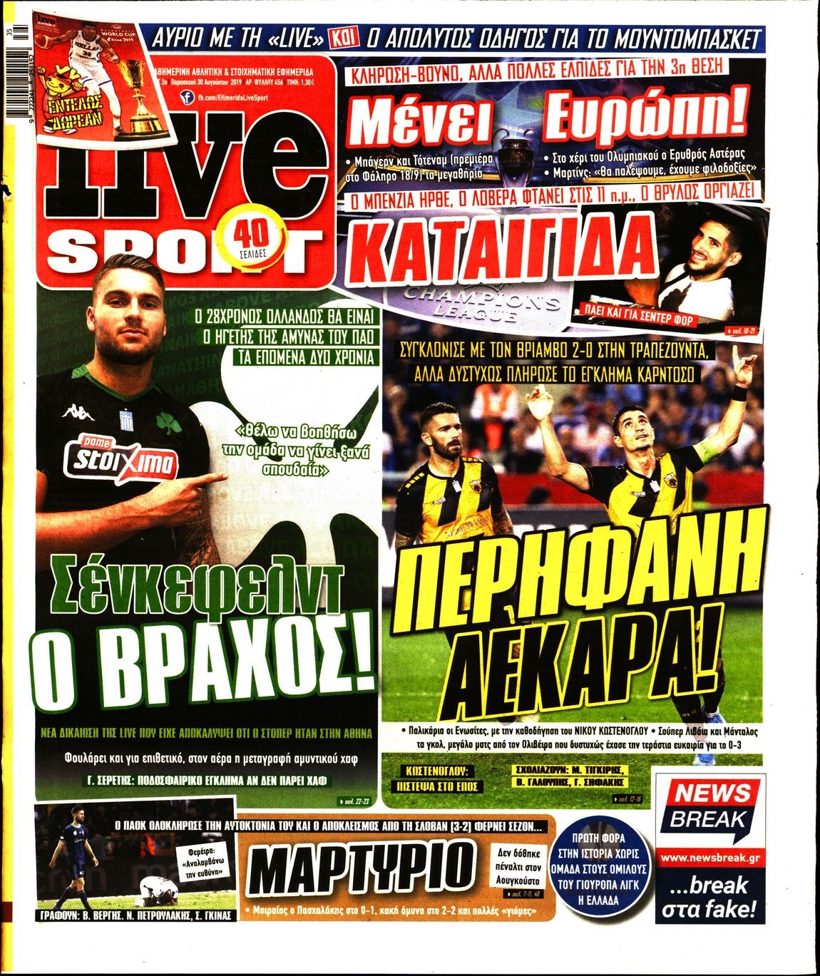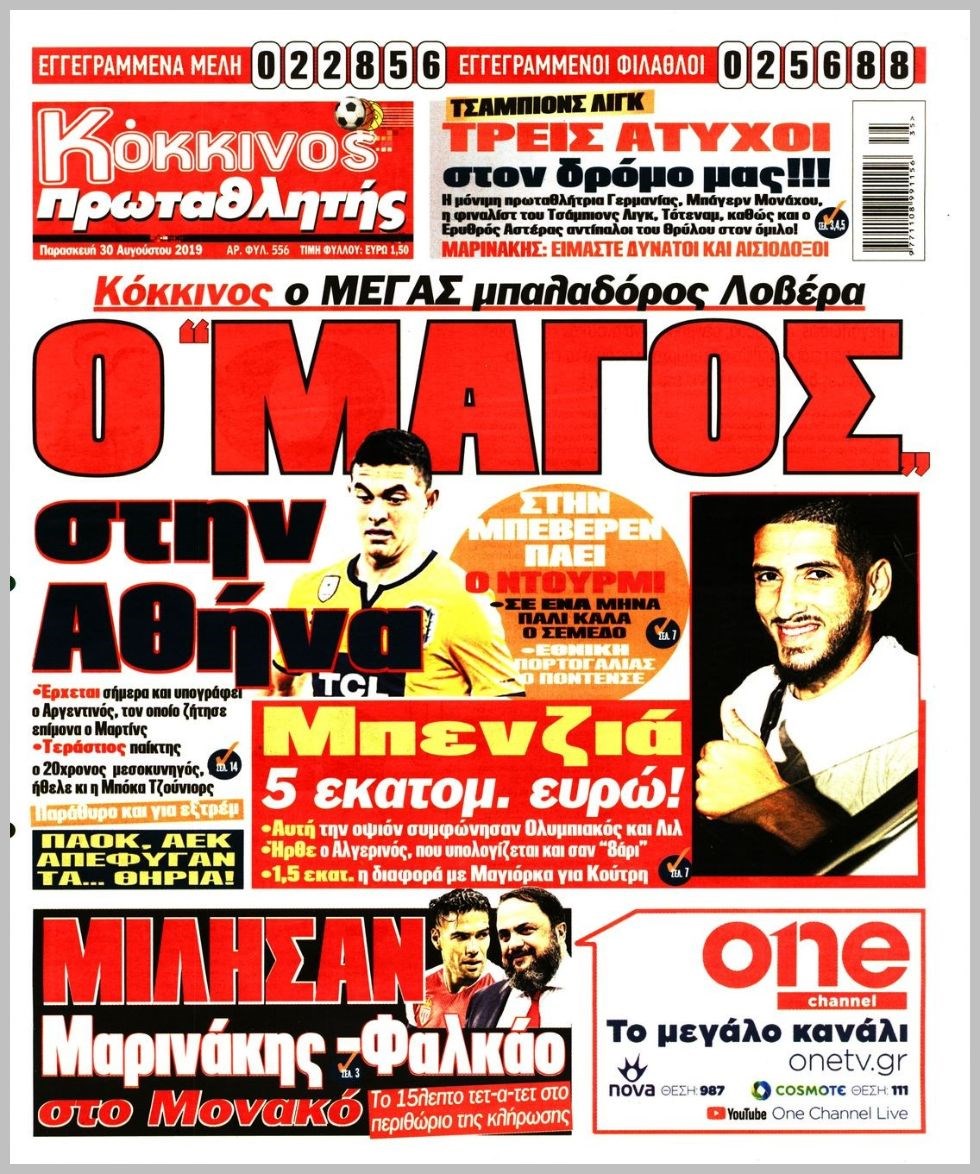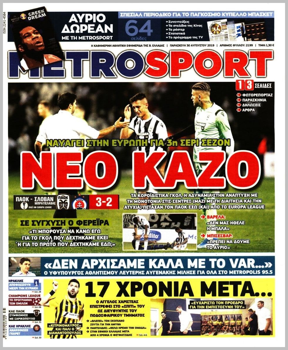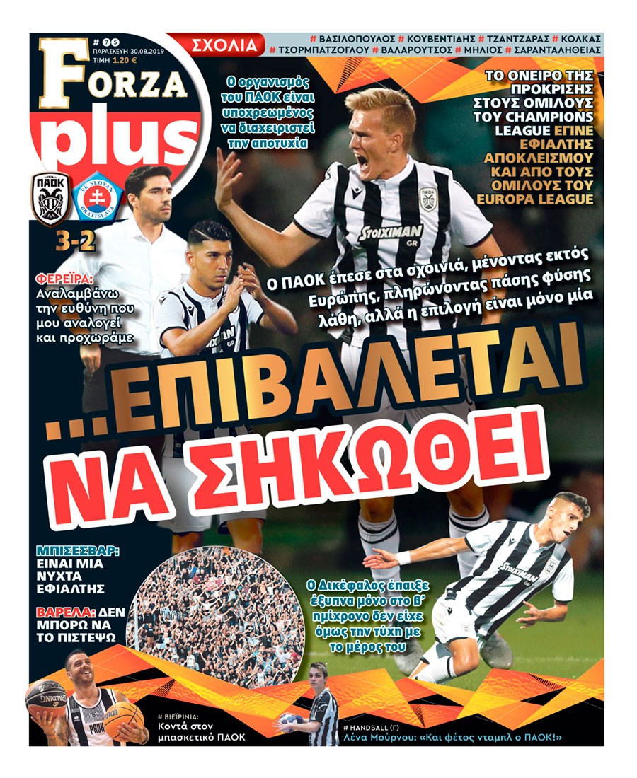 Οι αθλητικές εφημερίδες 30/8/2019 Διονύσης Νίκκας 06:34, Παρασκευή 30 Αυγούστου 2019 Media Διαβάστε τα πρωτοσέλιδα των αθλητικών εφημερίδων… ΑΘΛΗΤΙΚΩΝ ΕΦΗΜΕΡΙΔΩΝ ΠΡΩΤΟΣΕΛΙΔΑ Μοιράσου το: σχολίασε κι εσύ (0 σχόλια) Ακολουθήστε το enikos.gr στο Google News και μάθετε πρώτοι όλες τις ειδήσεις Δείτε όλες τις τελευταίες ειδήσεις από την Ελλάδα και τον Κόσμο στο enikos.gr Ειδήσεις Ροή Ειδήσεων 1 ώρα πριν Τραγωδία στη Ρουμανία: Τα σενάρια που εξετάζονται για το πολύνεκρο τροχαίο – «Δεν μπορεί να μπλόκαρε το τιμόνι» λέει ειδικός στο enikos.gr 47 λεπτά πριν «Βιολάντα»: Δεν φανταζόμουν ποτέ πως υπήρχε διαρροή προπανίου, φέρεται να είπε ο ιδιοκτήτης στους πυροσβέστες – Τι απάντησε για τις μαρτυρίες περί οσμής αερίου 2 ώρες πριν Καιρός: Έκτακτο δελτίο από την ΕΜΥ – Έρχεται νέο κύμα κακοκαιρίας με ισχυρές βροχές, καταιγίδες και χαλαζοπτώσεις 18 λεπτά πριν Κλειστή σύσκεψη για το κυκλοφοριακό στην Αττική στο Μέγαρο Μαξίμου: Έξυπνα φανάρια και μείωση κυκλοφορίας των φορτηγών στον Κηφισό 2 ώρες πριν Φονική φωτιά στο Μάτι: Την απόρριψη των αιτήσεων αναίρεσης τεσσάρων καταδικασθέντων που προσέφυγαν στον Άρειο πάγο, πρότεινε η εισαγγελέας 4 ώρες πριν Τα 4 ζώδια που λαμβάνουν ένα σημαντικό μήνυμα από το σύμπαν – «Μην χάνετε χρόνο και μπείτε στην ουσία των πραγμάτων» 5 ώρες πριν Έδωσε τελεσίγραφο στον σύντροφό της – «Του είπα ότι πρέπει να αρραβωνιαστούμε μέσα σε έναν μήνα και τα έχασε» 3 ώρες πριν Άνδρας αποκαλύπτει πώς έχασε 136 κιλά μετά από πολλές αποτυχημένες προσπάθειες – Η απόφαση που άλλαξε την καθημερινότητά του 2 ώρες πριν Γλώσσα του σώματος: Τα 7 σημάδια που μαρτυρούν ότι κάποιος θα σας προδώσει 4 λεπτά πριν Στην τελική ευθεία το σίκουελ του «Dirty Dancing» 9 λεπτά πριν H Έλενα Κουντουρά στην «Ευρωπαϊκή Ημέρα Τουρισμού» της Κομισιόν: 5 βασικές προτεραιότητες για βιώσιμους, ανθεκτικούς και ανταγωνιστικούς προορισμούς στην ΕΕ 18 λεπτά πριν Κλειστή σύσκεψη για το κυκλοφοριακό στην Αττική στο Μέγαρο Μαξίμου: Έξυπνα φανάρια και μείωση κυκλοφορίας των φορτηγών στον Κηφισό 19 λεπτά πριν Τουρκία: Εκδοτικός οίκος κατηγορείται για «χρηματοδότηση της τρομοκρατίας» επειδή κατέβαλε αμοιβή για πνευματικά δικαιώματα 24 λεπτά πριν Καμπάνια του ΠΑΣΟΚ για το κυκλοφοριακό πρόβλημα στην Αττική – Τι προτείνει, δείτε τα σποτ ENIKOS NETWORK Γιατί το χοιρινό είναι «το πιο υγιεινό κρέας» – Έρευνα αποκαλύπτει ότι έχει τα ίδια οφέλη με φακές, αρακά και φασόλια Γρίπη: Διασωληνωμένο νοσηλεύεται στη ΜΕΘ του νοσοκομείου «Αγία Σοφία» 4χρονο αγοράκι Φορολοταρία: Μπείτε εδώ για να δείτε εάν κερδίσατε 50.000 ευρώ Δύο ελληνικά νησιά στη λίστα με τους πιο αυθεντικούς προορισμούς του κόσμου για το 2026 Η Google αλλάζει το Gmail έπειτα από 20 χρόνια – Προσέξτε μην χάσετε τον λογαριασμό σας Γνωστός προπονητής ποδοσφαίρου απολύθηκε επειδή χρησιμοποιούσε το ChatGPT για «κρίσιμες αποφάσεις» περισσότερα 12:20 , Τετάρτη 28 Ιανουαρίου 2026 Ακούστε την εκπομπή του Νίκου Χατζηνικολάου 28/1/2026 Ακούστε την εκπομπή του Νίκου Χατζηνικολάου στον ραδιοφωνικό σταθμό RealFm 97,8, την Τετάρτη 2... 10:40 , Τετάρτη 28 Ιανουαρίου 2026 MasterChef 2026: Νέο επεισόδιο με ακόμη μία αποχώρηση – «Σαν να το έχω ξαναζήσει αυτό» Στο επεισόδιο που θα προβληθεί σήμερα Τετάρτη στις 21:00 στο Star, οι τηλεθεατές του MasterChe... 10:06 , Τετάρτη 28 Ιανουαρίου 2026 Τηλεθέαση (27/1): Η κατάταξη το βράδυ της Τρίτης – Τι νούμερα έκανε το MasterChef Στην prime time ζώνη, την πρωτιά στο γενικό σύνολο κατακτά η σειρά «Να μ’ αγαπάς