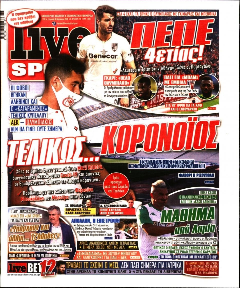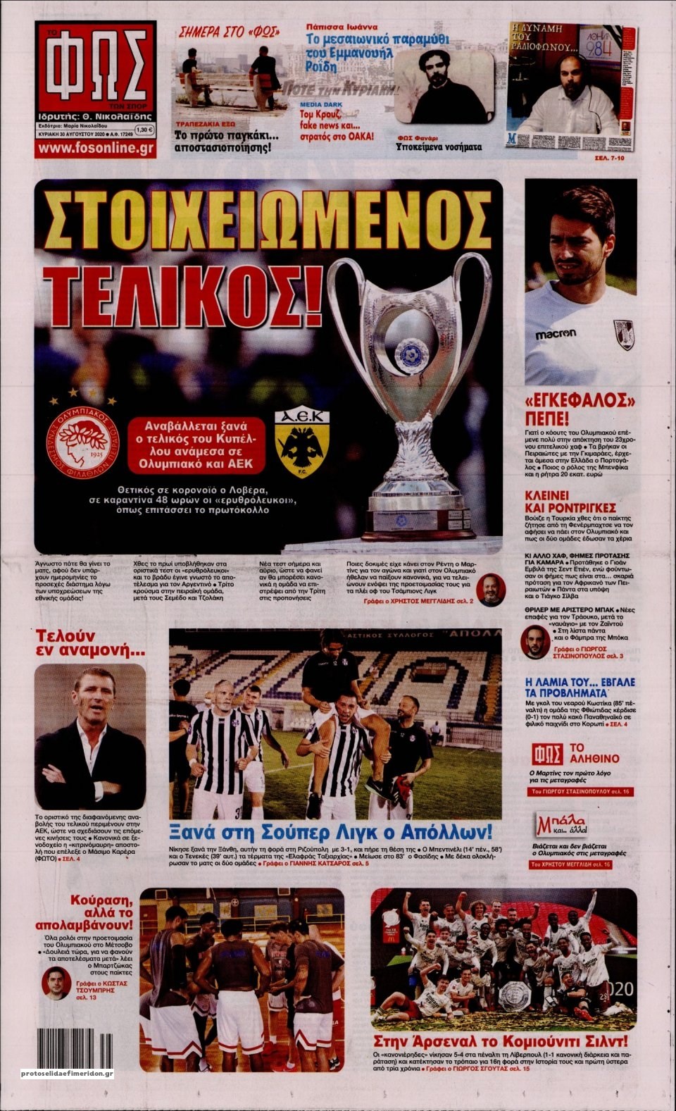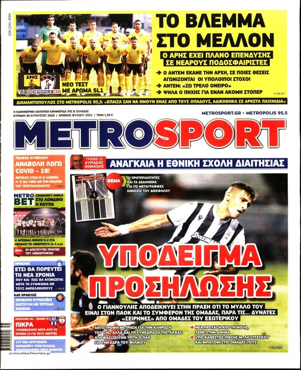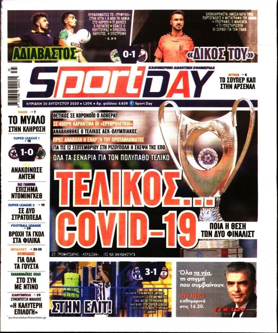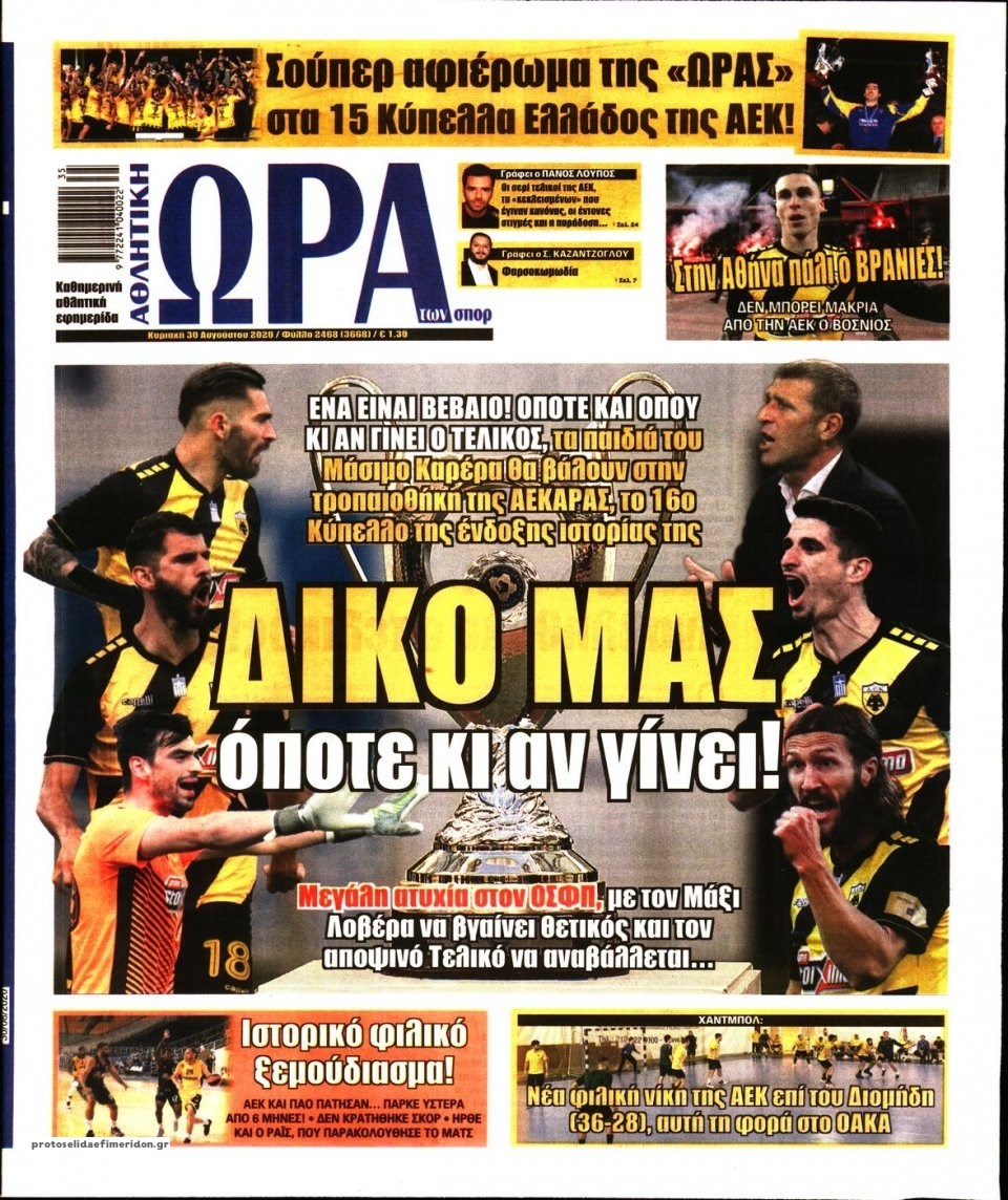Οι αθλητικές εφημερίδες 30/8/2020 Σήφης Γαρυφαλάκης 07:19, Κυριακή 30 Αυγούστου 2020 Media Διαβάστε τα πρωτοσέλιδα των αθλητικών εφημερίδων… ΑΘΛΗΤΙΚΕΣ ΕΦΗΜΕΡΙΔΕΣ ΕΦΗΜΕΡΙΔΕΣ ΠΡΩΤΟΣΕΛΙΔΑ ΠΡΩΤΟΣΕΛΙΔΑ ΕΦΗΜΕΡΙΔΩΝ Μοιράσου το: σχολίασε κι εσύ (0 σχόλια) Ακολουθήστε το enikos.gr στο Google News και μάθετε πρώτοι όλες τις ειδήσεις Δείτε όλες τις τελευταίες ειδήσεις από την Ελλάδα και τον Κόσμο στο enikos.gr Ειδήσεις Ροή Ειδήσεων 3 ώρες πριν Αυξάνουν την πίεση προς την κυβέρνηση οι αγρότες: Κλείνουν παρακαμπτήριους και ανοίγουν διόδια – Τι θα γίνει τις γιορτές 1 ώρα πριν ΟΠΕΚΕΠΕ: Προφυλακιστέος ο φερόμενος αρχηγός και ο λογιστής της εγκληματικής οργάνωσης 2 ώρες πριν Φοινικούντα: Το Σάββατο απολογείται ο 30χρονος γιος γνωστού επιχειρηματία της Πλάκας που παραδόθηκε – Όσα είπε στους αστυνομικούς και ο ρόλος του στο έγκλημα 2 ώρες πριν Μπορεί ο Μαδούρο να αντέξει τον αποκλεισμό του Τραμπ; Τι θα χρειαστεί η Ουάσινγκτον για να τον ανατρέψει 4 ώρες πριν Πρίγκιπας Ουίλιαμ – Κέιτ: Η νέα οικογενειακή φωτογραφία για τις Χριστουγεννιάτικες κάρτες του 2025 3 ώρες πριν Ύπνος: Η απλή βραδινή ρουτίνα για να προστατεύσετε τα μαλλιά σας από το κρύο κατά τη διάρκεια του χειμώνα 4 ώρες πριν Manifesting: Πώς να συναντήσετε τον σύντροφο της ζωής σας, ανάλογα με τον μήνα γέννησής σας 2 ημέρες πριν 20 χρόνια τα Χριστούγεννα ξεκινούν στα Public με μεγάλη ποικιλία σε δώρα! 2 ώρες πριν Αρχαιολόγοι ανακάλυψαν ρωμαϊκά τεχνουργήματα από μια πόλη που δεν υπήρξε ποτέ – Τα τρία εντυπωσιακά κτίρια και ο αμφορέας με τις… σαρδέλες 3 λεπτά πριν Νέος πρέσβης της Μεγάλης Βρετανίας στις ΗΠΑ ο Κρίστιαν Τέρνερ 6 λεπτά πριν Conference League: Με Νόα, Ντρίτα, Άλκμααρ ή Τσέλιε στους «16» η ΑΕΚ 15 λεπτά πριν Conference League: Απευθείας στους «16» η ΑΕΚ Λάρνακας και η Ρακόβ των Σβάρνα και Κωνσταντόπουλου – Τα αποτελέσματα και η βαθμολογία, 3η η ΑΕΚ 25 λεπτά πριν Σε ομάδες που συνδέονται με το ρωσικό κράτος αποδίδει η Δανία δύο κυβερνοεπιθέσεις που δέχθηκε 40 λεπτά πριν Βαθμολογία UEFA: Η Πολωνία προσπέρασε την Ελλάδα ENIKOS NETWORK Σε περίοδο αυξημένης δραστηριότητας η γρίπη στην Ελλάδα-Μέτρα προστασίας από τον ΕΟΔΥ Σκέφτεστε συνέχεια συζητήσεις που έχετε κάνει; Τι σημαίνει αυτό, σύμφωνα με ειδικό Στεγαστικό: Τι λέει η ΠΟΜΙΔΑ για τα νέα μέτρα που ανακοίνωσε ο Κυριάκος Μητσοτάκης Λαγκάρντ: Αισιόδοξη για την ανάπτυξη της Ευρωζώνης, αβέβαιη για τον πληθωρισμό Χαρτογραφώντας το «σημείο χωρίς επιστροφή»: Για πρώτη φορά αποκαλύπτεται με λεπτομέρεια το ακανθώδες όριο της ατμόσφαιρας τ... Η Google καταργεί τη λειτουργία «dark web report» – Πώς θα μπορούν οι χρήστες να διαγράφουν τα δεδομένα τους περισσότερα 17:45 , Πέμπτη 18 Δεκεμβρίου 2025 ROUK ZOUK: Εορταστικό επεισόδιο με καλεσμένους τους πρωταγωνιστές του «Γιατί ρε πατέρα» Το Σάββατο 20 Δεκεμβρίου στις 21:00, η Ζέτα Μακρυπούλια υποδέχεται εκλεκτούς ηθοποιούς που όλο... 17:20 , Πέμπτη 18 Δεκεμβρίου 2025 Άγιος έρωτας: Η Χριστίνα εξομολογείται στον πατέρα Νικόλαο, απόψε στις 21:00 στον Alpha Η Νότα αποφασίζει να εκδικηθεί τον Πέτρο και τον Στέφανο, για χάρη του Λούη, όμως τα πράγματα ... 16:50 , Πέμπτη 18 Δεκεμβρίου 2025 Να μ’ αγαπάς: Ζωή και Φωτεινή συμφιλιώνονται ως μάνα με κόρη, απόψε στις 20:00 Η ταυτότητα του Άγγελου αποκαλύπτεται στο νέο επεισόδιο της σειράς “Να μ’ αγαπάς... 15:52 , Πέμπτη 18 Δεκεμβρίου 2025 Το Σπίτι Δίπλα Στο Ποτάμι: Το καθηλωτικό τελευταίο επεισόδιο για το 2025 απόψε στις 22:30 Καθηλώνει το σημερινό επεισόδιο της σειράς “Το Σπίτι Δίπλα Στο