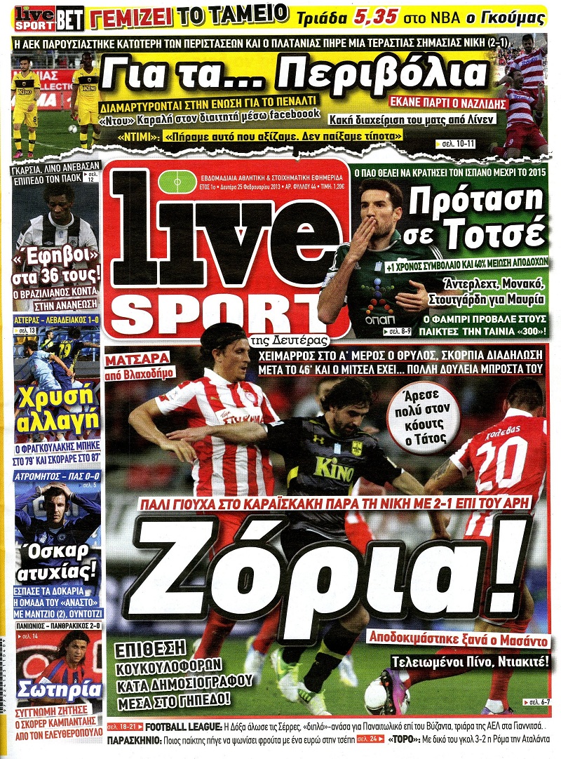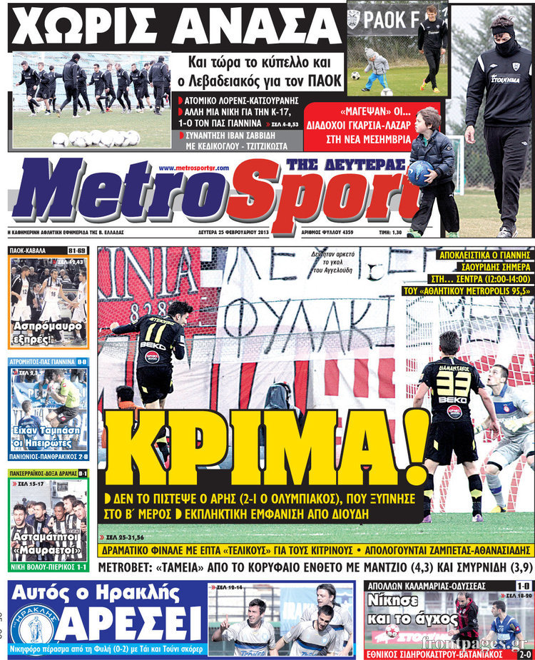 Οι αθλητικές εφημερίδες Enikos Newsroom 08:21, Δευτέρα 25 Φεβρουαρίου 2013 Media Οι αθλητικές εφημερίδες Τα πρωτοσέλιδα των αθλητικών εφημερίδων. ΑΘΛΗΤΙΚΕΣ ΕΦΗΜΕΡΙΔΕΣ ΕΦΗΜΕΡΙΔΕΣ ΠΡΩΤΟΣΕΛΙΔΑ Μοιράσου το: σχολίασε κι εσύ (0 σχόλια) Ακολουθήστε το enikos.gr στο Google News και μάθετε πρώτοι όλες τις ειδήσεις Δείτε όλες τις τελευταίες ειδήσεις από την Ελλάδα και τον Κόσμο στο enikos.gr Ειδήσεις Ροή Ειδήσεων 3 ώρες πριν Γεραπετρίτης για συνάντηση Μητσοτάκη – Ερντογάν: Τα θέματα με την Τουρκία πρέπει να λυθούν βάσει διεθνούς Δικαίου, εκτός διαλόγου ζητήματα κυριαρχίας 17 λεπτά πριν ΑΠΕΥΘΕΙΑΣ – Η συνέντευξη Τύπου του προέδρου της ΓΣΕΕ, Γιάννη Παναγόπουλου 3 ώρες πριν Αναστάσης Παπαληγούρας: Πέθανε ο πρώην υπουργός της Νέας Δημοκρατίας 2 ώρες πριν Επεισοδιακή καταδίωξη στο κέντρο της Αθήνας: 16χρονος οδηγούσε κλεμμένη μηχανή – Έπεσε πάνω σε μοτοσικλέτα της Τροχαίας 4 ώρες πριν Χειμερινή εκπαίδευση και διαβίωση: Το κολασμένο πρόγραμμα των αυριανών Υπαξιωματικών στο βουνό – Δείτε φωτογραφίες 20 ώρες πριν ΕΛΤΑ: Το «φρακαρισμένο» παλιό κέντρο διαλογής στην Αττική και οι καθυστερήσεις στις παραδόσεις που αγγίζουν τους 2 μήνες – «Είμαστε επιφυλακτικοί ως προς τον σχεδιασμό» 5 ώρες πριν «Διάλογος με όρια, χωρίς αυταπάτες» – Ανάλυση του Δημήτρη Σταθακόπουλου για τη συνάντηση Μητσοτάκη – Ερντογάν 14 ώρες πριν Βιολάντα: Ο ιδιοκτήτης είχε ελεγχθεί στο παρελθόν για παράνομη διακίνηση υγραερίου 13 ώρες πριν Υπόθεση Επστάιν: Οι αποκαλύψεις προκαλούν χάος από τη Σκανδιναβία έως τη Νότια Ασία – Το τίμημα του πάθους για γυναίκες, σεξ και χρήμα 5 λεπτά πριν Χατζηδάκης για Τουρκία: Έχουμε φύγει από το κλίμα του 2020, ο δρόμος μας δεν είναι οι ψευτοπαλικαρισμοί – Τι είπε για την υπόθεση Παναγόπουλου 10 λεπτά πριν Τουρκικά ΜΜΕ για Μητσοτάκη – Ερντογάν: Η Αθήνα ανάσανε με βαθιά ανακούφιση μετά τη συνάντηση 17 λεπτά πριν ΑΠΕΥΘΕΙΑΣ – Η συνέντευξη Τύπου του προέδρου της ΓΣΕΕ, Γιάννη Παναγόπουλου 23 λεπτά πριν Χαμός στη Βουλή με την Κωνσταντοπούλου: «Κηφήνες οι βουλευτές της ΝΔ» – Ο έντονος διάλογος με τον Πλακιωτάκη 30 λεπτά πριν ΠΑΣΟΚ: Κατέθεσε τροπολογία για τις Συλλογικές Συμβάσεις Εργασίας – Τι αναφέρει για τη διαιτησία ENIKOS NETWORK Ακράτεια ούρων στην εμμηνόπαυση: Γιατί οι ασκήσεις Kegel δεν αρκούν – Τι να κάνετε σύμφωνα με τους ειδικούς Η γρίπη πιέζει το ΕΣΥ-Πάνω από 100.000 περιστατικά στα ΤΕΠ τον Ιανουάριο Τσικνοπέμπτη 2026: Οι τιμές των κρεάτων στη Βαρβάκειο Αγορά – Ποιο είναι το πιο φθηνό είδος ΑΑΔΕ: Διευκρινίσεις για τις πληρωμές των κτηνοτρόφων Ευπάθεια στο moltbook ai αποκαλύπτει email, tokens σύνδεσης και api keys Αυτός είναι ο ρόλος της μικρής τρύπας στους νυχοκόπτες – «Είμαι ο μόνος που δεν το ήξερε;»» περισσότερα 11:19 , Πέμπτη 12 Φεβρουαρίου 2026 Τηλεθέαση (11/2): Πρώτη στις πρωινές ενημερωτικές εκπομπές στο δυναμικό κοινό το «Ώρα Ελλάδος» Ανατροπή στην τηλεθέαση στις πρωινές ενημερωτικές εκπομπές, καθώς η εκπομπή «Ώρα Ελλάδος» του ... 09:51 , Πέμπτη 12 Φεβρουαρίου 2026 Τηλεθέαση (11/2): Τι νούμερα έκανε ο Ά ημιτελικός της Eurovision στην ΕΡΤ Ο ημιτελικός Sing for Greece που θα αναδείξει το τραγούδι που θα εκπροσωπήσει την χώρα στην Eu... 09:20 , Πέμπτη 12 Φεβρουαρίου 2026 MasterChef: Ο Κουτσόπουλος εντόπισε αίμα στο κρέας – «Δεν χρειάζεται να δείξουμε βαθμολογίες» Νέα δοκιμασία αποχώρησης έφερε ένταση και ανατροπές στο MasterChef, με καλεσμένο τον Μιχάλη Χά... 07:36 , Πέμπτη 12 Φεβρουαρίου 2026 Οι αθλητικές μεταδόσεις 12/2/2026 Το ματς Ολυμπιακός – Ερυθρός
