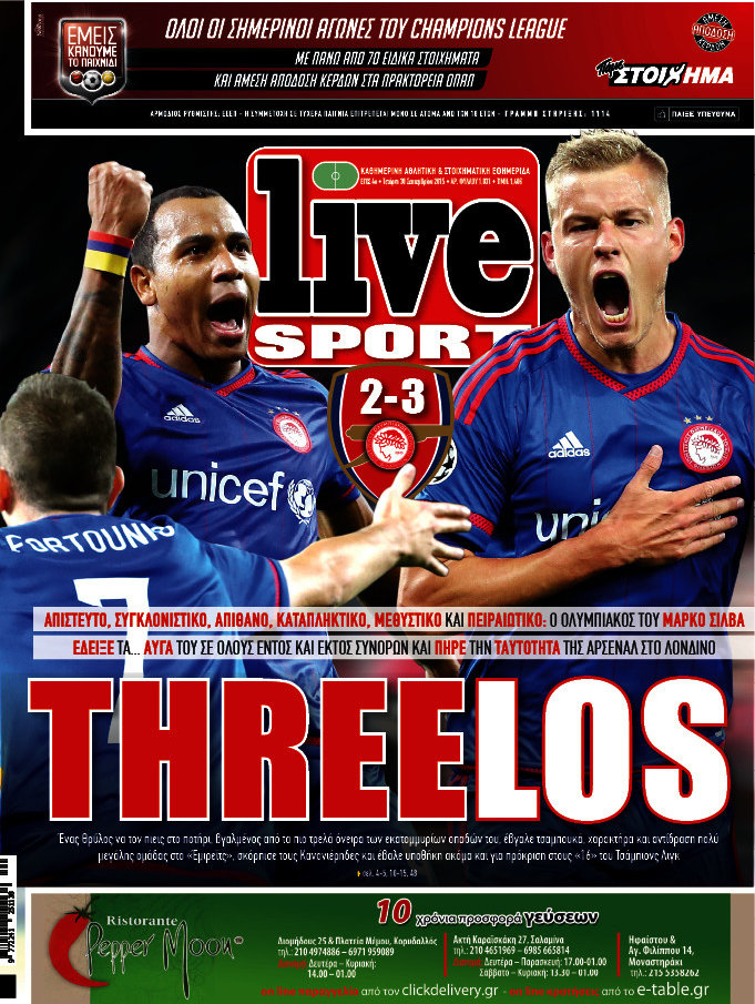 Οι αθλητικές εφημερίδες 30/9/2015 Enikos Newsroom 08:19, Τετάρτη 30 Σεπτεμβρίου 2015 Media Διαβάστε τα σημερινά πρωτοσέλιδα των αθλητικών εφημερίδων: ΑΘΛΗΤΙΚΕΣ ΕΦΗΜΕΡΙΔΕΣ ΠΡΩΤΟΣΕΛΙΔΑ Μοιράσου το: σχολίασε κι εσύ (0 σχόλια) Ακολουθήστε το enikos.gr στο Google News και μάθετε πρώτοι όλες τις ειδήσεις Δείτε όλες τις τελευταίες ειδήσεις από την Ελλάδα και τον Κόσμο στο enikos.gr Ειδήσεις Ροή Ειδήσεων 7 ώρες πριν Χριστούγεννα στα μπλόκα: Επιμένουν στις κινητοποιήσεις τους οι αγρότες – Ανοίγουν τα διόδια το Σαββατοκύριακο 7 ώρες πριν Ουκρανία: Η άνευ προηγουμένου επίθεση σε ρωσικό τάνκερ στη Μεσόγειο και το μήνυμα προς στον Πούτιν – Το «μακρύ χέρι» του Κιέβου 6 ώρες πριν Πούτιν: Τα μηνύματα σε Ευρώπη και ΝΑΤΟ από το μαραθώνιο «σόου» του – Η απαίτηση για «σεβασμό» και η ειρήνη «με τους όρους» της Μόσχας 7 ώρες πριν Τραμπ: Δεν αποκλείει την πιθανότητα ενός πολέμου στη Βενεζουέλα – «Ο Μαδούρο ξέρει καλύτερα από τον καθένα τι ακριβώς θέλω» 8 ώρες πριν Συνεχίζει να προκαλεί ο Μίτσκοσκι: «Για μένα το όνομα Μακεδονία είναι ιερό» 6 ώρες πριν Ανακαλύφθηκαν αρχαία χρυσά νομίσματα 2.200 ετών που απεικονίζουν τον θεό Απόλλωνα – Η άγνωστη σύνδεση με τον Φίλιππο Β΄ της Μακεδονίας 7 ώρες πριν Ύπνος: Μια κρυφή κατάσταση του εγκεφάλου πριν από τον ύπνο μπορεί να είναι το “κλειδί” για υψηλή ευφυΐα και δημιουργικότητα 8 ώρες πριν Αριθμολογία: Οι άνθρωποι που έχουν γεννηθεί αυτές τις 4 ημερομηνίες, συχνά παρεξηγούνται – «Η καλοσύνη τους κρύβει τεράστια δύναμη» 9 ώρες πριν Ξεχάστε το καθάρισμα το Σαββατοκύριακο: Ο «κανόνας των 20 λεπτών» που θα σας λύσει τα χέρια 7 λεπτά πριν ΟΗΕ: Το Συμβούλιο Ασφαλείας παρατείνει για έναν χρόνο την εντολή της ειρηνευτικής δύναμης στο Κονγκό 23 λεπτά πριν Μοχάμεντ Σαλάχ: Ζήτησε «συγγνώμη» από τους συμπαίκτες του στη Λίβερπουλ για το ξέσπασμά του 38 λεπτά πριν Μάρκο Ρούμπιο: Ανθρωπιστική κατάπαυση του πυρός στο Σουδάν ζητά ο Αμερικανός υπουργός Εξωτερικών 52 λεπτά πριν Αγγελική Νικολούλη: Τα συλλυπητήρια για την απώλεια της Ειρήνης Μαρινάκη 1 ώρα πριν Βολιβία: Μαζική διαδηλώσεις εναντίον της κατάργησης των επιδοτήσεων των τιμών των καυσίμων ENIKOS NETWORK Το ΕΚΑΒ τιμήθηκε από την Ακαδημία Αθηνών για τα 40 χρόνια προσφοράς του Έχετε πραγματικά μεγάλη καρδιά; 10 χαρακτηριστικά όσων έχουν καλοσύνη Αναστολή μέτρων αναγκαστικής εκτέλεσης για κτηνοτρόφους που πλήττονται από την ευλογιά των αιγοπροβάτων Πλήρης επάρκεια προϊόντων στις λαϊκές της Αττικής, παρά τις αγροτικές κινητοποιήσεις – Τι απαντούν οι πωλητές Χαρτογραφώντας το «σημείο χωρίς επιστροφή»: Για πρώτη φορά αποκαλύπτεται με λεπτομέρεια το ακανθώδες όριο της ατμόσφαιρας τ... Η Google καταργεί τη λειτουργία «dark web report» – Πώς θα μπορούν οι χρήστες να διαγράφουν τα δεδομένα τους περισσότερα 04:20 , Σάββατο 20 Δεκεμβρίου 2025 Αγγελική Νικολούλη: Τα συλλυπητήρια για την απώλεια της Ειρήνης Μαρινάκη Τα συλληπητήρια στον πρόεδρο του Mega, τον Βαγγέλη Μαρινάκη, για την απώλεια της μητέρας του Ε... 02:50 , Σάββατο 20 Δεκεμβρίου 2025 GNTM: Η Ξένια Τσίρκοβα αναδείχθηκε μεγάλη νικήτρια και πήρε τις 50.000 ευρώ – Ποιος βρέθηκε σε απόσταση αναπνοής; Με φαντασμαγορικό τρόπο ολοκληρώθηκε το βράδυ της Παρασκευής ο μεγάλος τελικός του GNTM, μέσα ... 22:42 , Παρασκευή 19 Δεκεμβρίου 2025 Γιώργος Γιαννόπουλος για “Το σόι σου”: “Είναι ευτυχία και ευλογία αυτή η σειρά” «Είναι ευτυχία και ευλογία η συγκυρία αυτής της σειράς», θα πει ο Γιώργος Γιαννόπουλος -ο αγαπ... 