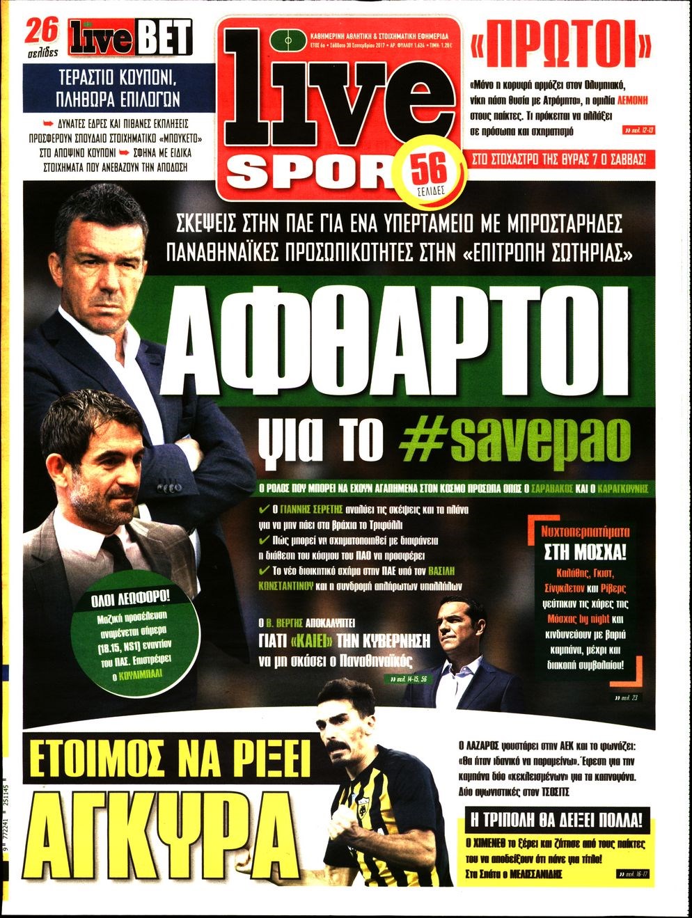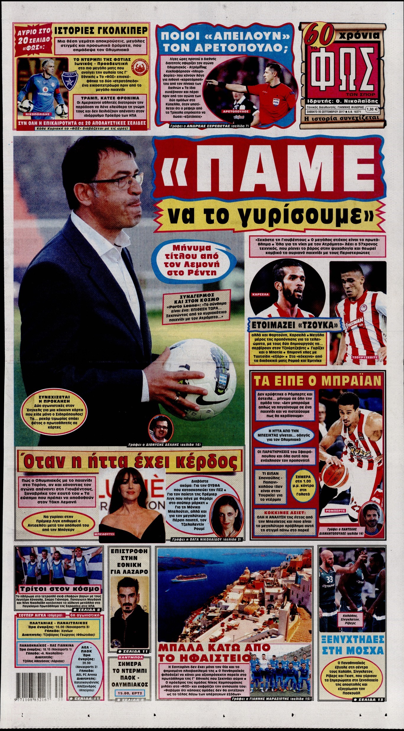 Οι αθλητικές εφημερίδες 30/9/2017 Enikos Newsroom 07:38, Σάββατο 30 Σεπτεμβρίου 2017 Media Διαβάστε τα σημερινά πρωτοσέλιδα των αθλητικών εφημερίδων: ΑΘΛΗΤΙΚΕΣ ΕΦΗΜΕΡΙΔΕΣ ΠΡΩΤΟΣΕΛΙΔΑ Μοιράσου το: σχολίασε κι εσύ (0 σχόλια) Ακολουθήστε το enikos.gr στο Google News και μάθετε πρώτοι όλες τις ειδήσεις Δείτε όλες τις τελευταίες ειδήσεις από την Ελλάδα και τον Κόσμο στο enikos.gr Ειδήσεις Ροή Ειδήσεων 2 ώρες πριν Αγρότες: Πολύωροι αποκλεισμοί στα τελωνεία Προμαχώνα, Εξοχής, Ευζώνων και Νίκης – Κλείνουν τον κόμβο Φιλώτα οι παραγωγοί στη Δυτική Μακεδονία 1 ώρα πριν Νίκος Παππάς: Ζητώ συγγνώμη για αυτό το επεισόδιο – Δεν τον γρονθοκόπησα 3 ώρες πριν Ευρωπαϊκό Συμβούλιο: Όλες οι λεπτομέρειες για το δάνειο των 90 δισ. ευρώ στην Ουκρανία – Τα συμπεράσματα της Συνόδου Κορυφής 3 ώρες πριν Αίγιο: 22χρονη κατήγγειλε ότι έπεσε θύμα βιασμού και ληστείας από συγγενικά της πρόσωπα 1 ώρα πριν Τρομακτικό βίντεο: Η στιγμή της έκρηξης στο τζετ που μετέφερε τον οδηγό του NASCAR, Γκρεγκ Μπιφλ και την οικογένειά του 2 ώρες πριν Αλλαγή σελίδας για 3 ζώδια – «Μία δύσκολη περίοδος φτάνει στο τέλος της» 2 ημέρες πριν 20 χρόνια τα Χριστούγεννα ξεκινούν στα Public με μεγάλη ποικιλία σε δώρα! 3 ώρες πριν Ο σύζυγός της συμπεριφέρεται όπως το παιδί τους – «Χρησιμοποιεί αστείες δικαιολογίες για να μην κάνει δουλειές και να ξοδεύει λεφτά» 53 λεπτά πριν Γεμάτος νεροχύτης; 5 σοβαρές ευθύνες που «φοβίζουν» όσους αφήνουν άπλυτα πιάτα 6 λεπτά πριν Πούτιν: Η Ουκρανία δεν είναι έτοιμη για ειρηνευτικές συνομιλίες – ο ρωσικός στρατός προελαύνει σε όλα τα μέτωπα 12 λεπτά πριν Βουλή: Αποσύρθηκε προσθήκη για έργα του Ταμειακού Προγράμματος Ανάπτυξης της Γ.Γ. Αθλητισμού μετά τις αντιδράσεις της αντιπολίτευσης 17 λεπτά πριν Νορβηγία: Η πριγκίπισσα Μέτε-Μάριτ πιθανότατα θα υποβληθεί σε μεταμόσχευση πνεύμονα 28 λεπτά πριν Ενίσχυση δρομολογίων του Μετρό τις Κυριακές 21 και 28 Δεκεμβρίου – Κυκλοφοριακές ρυθμίσεις αύριο στη Γραμμή 7 του τραμ λόγω εορταστικών εκδηλώσεων 32 λεπτά πριν Βλαντίμιρ Πούτιν: LIVE η συνέντευξη Τύπου για τον απολογισμό της χρονιάς ENIKOS NETWORK Καρκίνος του πνεύμονα: Έως 8.000 ζωές μπορούν να σωθούν με την έγκαιρη διάγνωση Καρδιοπαθείς: Οι νέες συστάσεις για τα εμβόλια που πρέπει να κάνουν τον χειμώνα Επιδόματα και παροχές από τον ΟΠΕΚΑ: Τι πιστώνεται σήμερα στους τραπεζικούς λογαριασμούς Απειλή για τον Προϋπολογισμό τα ληξιπρόθεσμα χρέη των ιδιωτών προς την εφορία – Τι δείχνουν τα στοιχεία Χαρτογραφώντας το «σημείο χωρίς επιστροφή»: Για πρώτη φορά αποκαλύπτεται με λεπτομέρεια το ακανθώδες όριο της ατμόσφαιρας τ... Η Google καταργεί τη λειτουργία «dark web report» – Πώς θα μπορούν οι χρήστες να διαγράφουν τα δεδομένα τους περισσότερα 08:00 , Παρασκευή 19 Δεκεμβρίου 2025 Την Κυριακή με τη Realnews: Δωροεπιταγή 10€ Δωροεπιταγή αξίας 10€ για αγορές άνω των 60€ από τα πολυκαταστήματα FactoryOutlet H προσφορά ι... 05:48 , Παρασκευή 19 Δεκεμβρίου 2025 Οι οικονομικές εφημερίδες 19/12/2025 Διαβάστε τα πρωτοσέλιδα από τις οικονομικές εφημερίδες, σήμερα 19/12/2025. 05:43 , Παρασκευή 19 Δεκεμβρίου 2025 Οι αθλητικές εφημερίδες 19/12/2025 Διαβάστε τα πρωτοσέλιδα από τις αθλητικές εφημερίδες, σήμερα 19/12/2025. 05:38 , Παρασκευή 19 Δεκεμβρίου 2025 Οι πολιτικές εφημερίδες 19/12/2025 Διαβάστε τα πρωτοσέλιδα από τις πολιτικές εφημερίδες, σήμερα 19/12/2025. ΤΕΛΕΥΤΑΙΕΣ ΕΙΔΗΣΕΙΣ 6 λεπτά πριν Πούτιν: Η Ουκρανία δεν είναι έτοιμη για ειρηνευτικές... 12 λεπτά πριν Βουλή: Αποσύρθηκε προσθήκη για έργα του Ταμειακού...