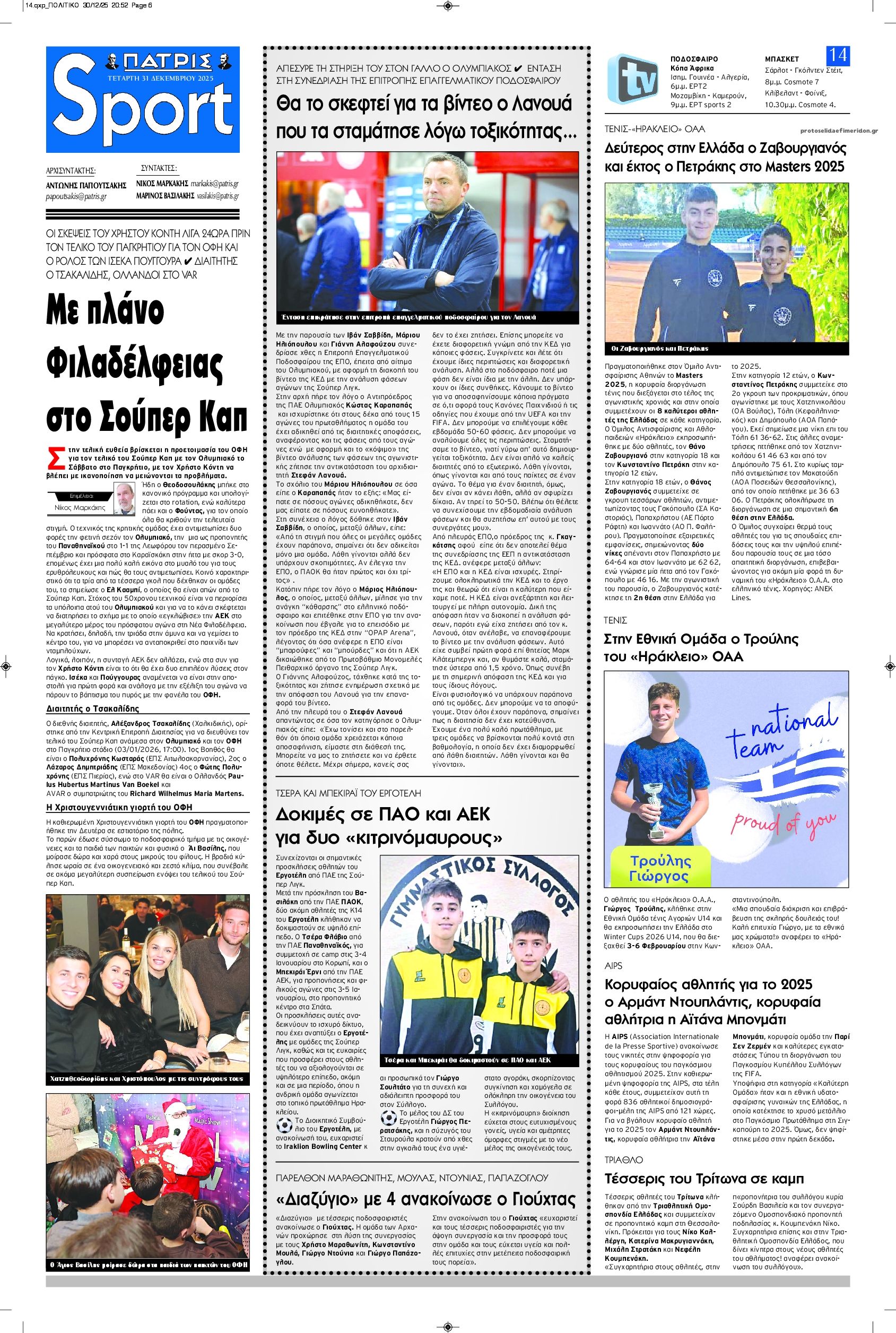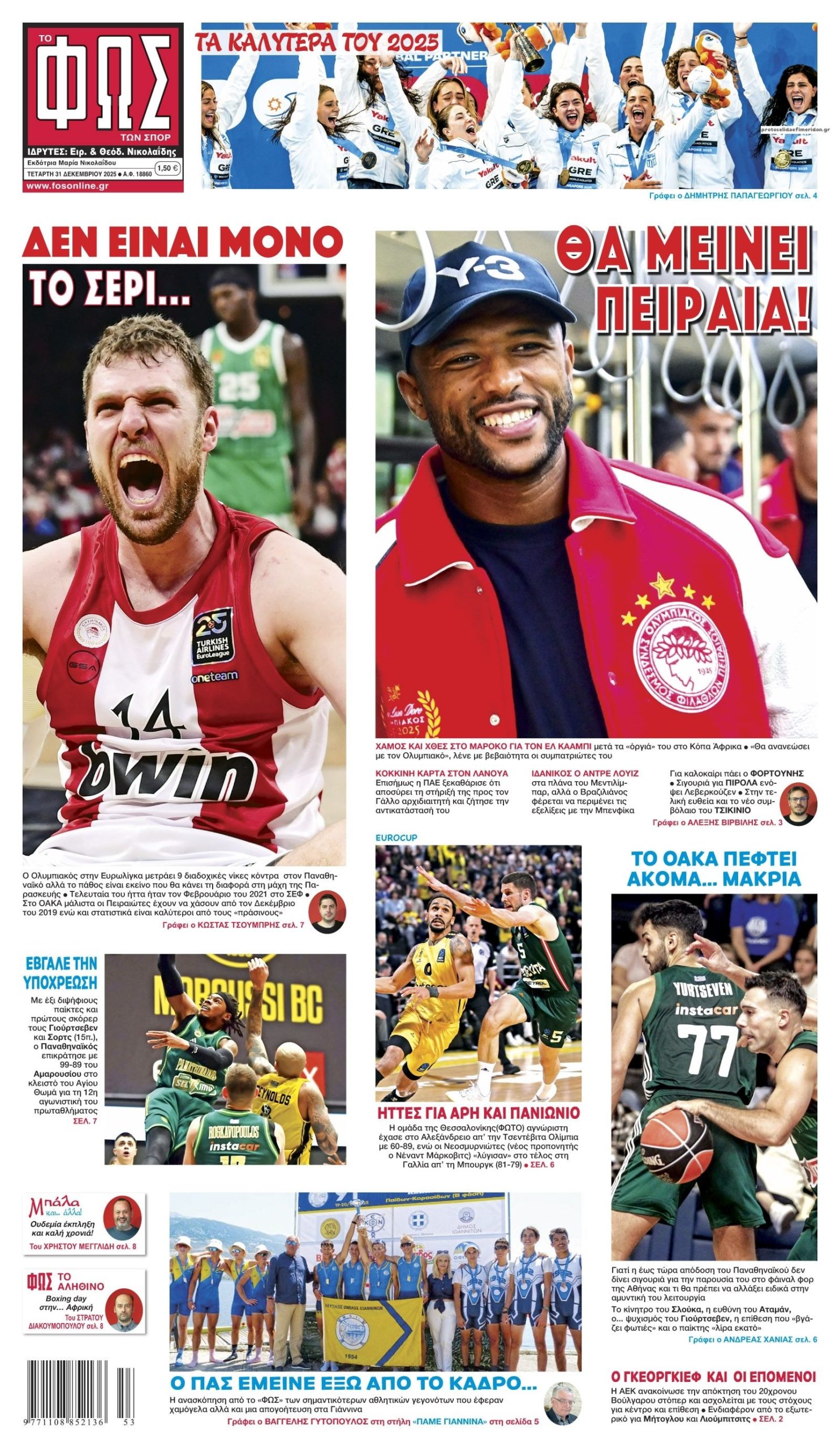 Διαβάστε τα πρωτοσέλιδα από τις αθλητικές εφημερίδες, σήμερα 31/12/2025.