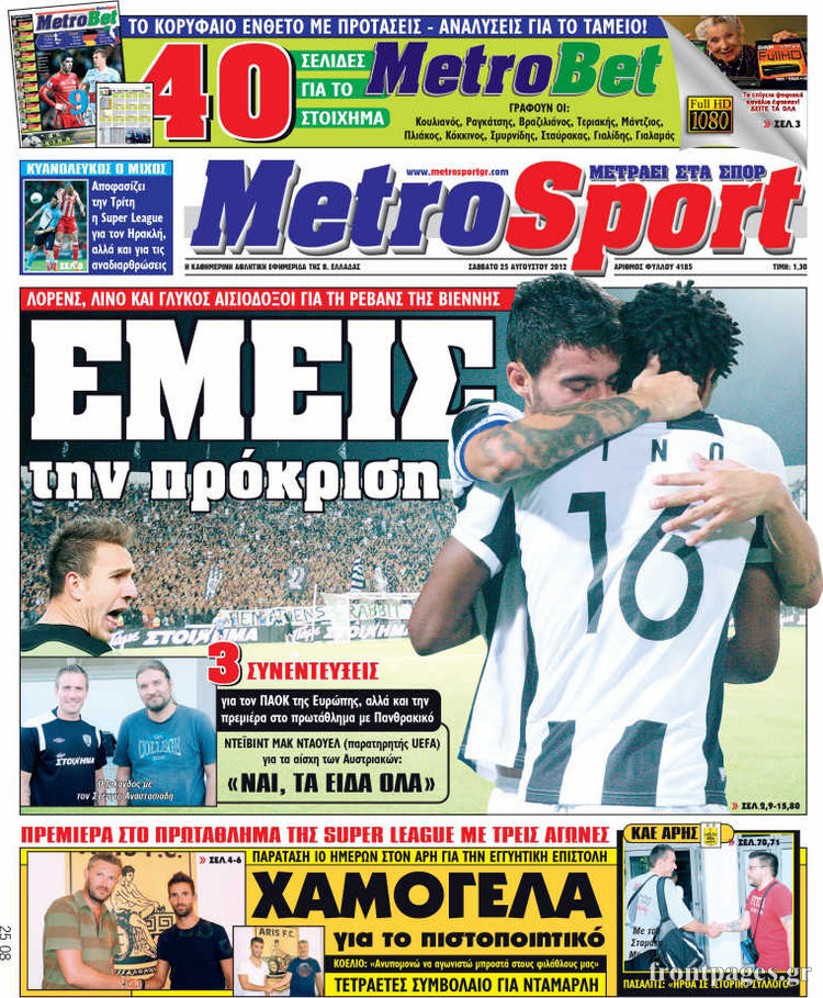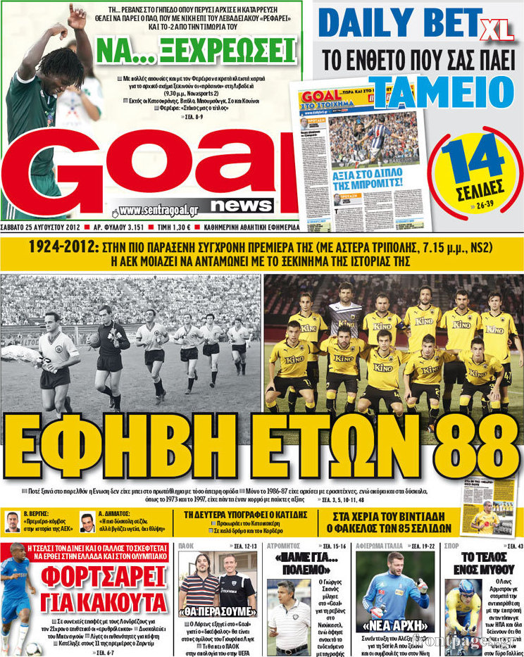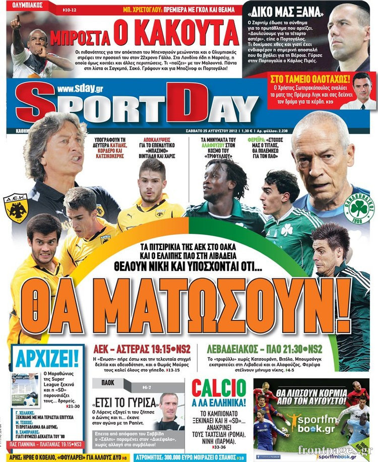 Τα πρωτοσέλιδα των σημερινών αθλητικών εφημερίδων.