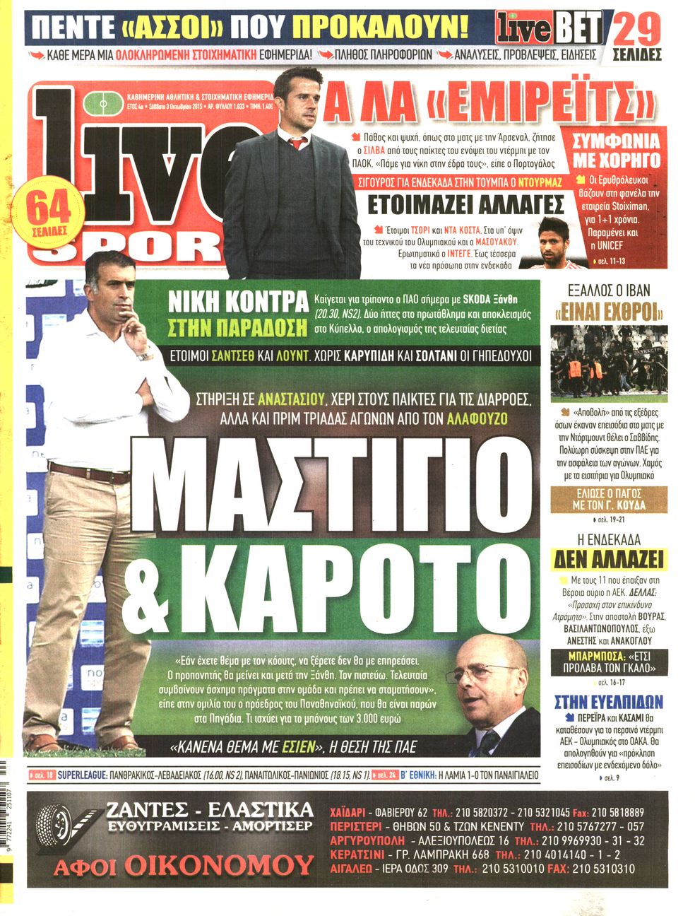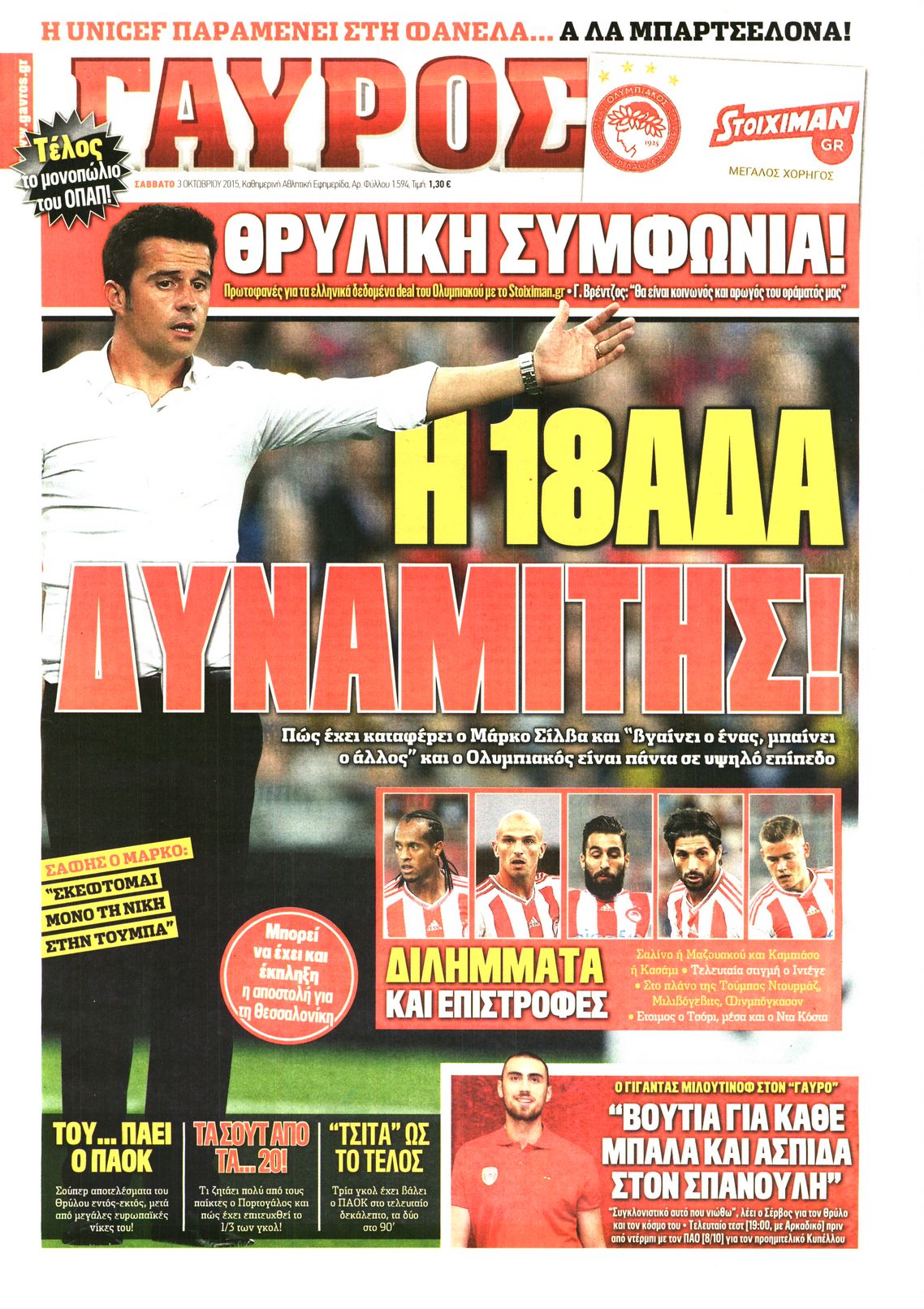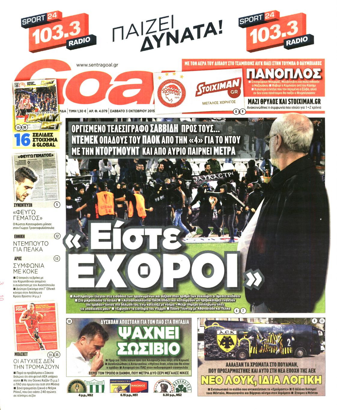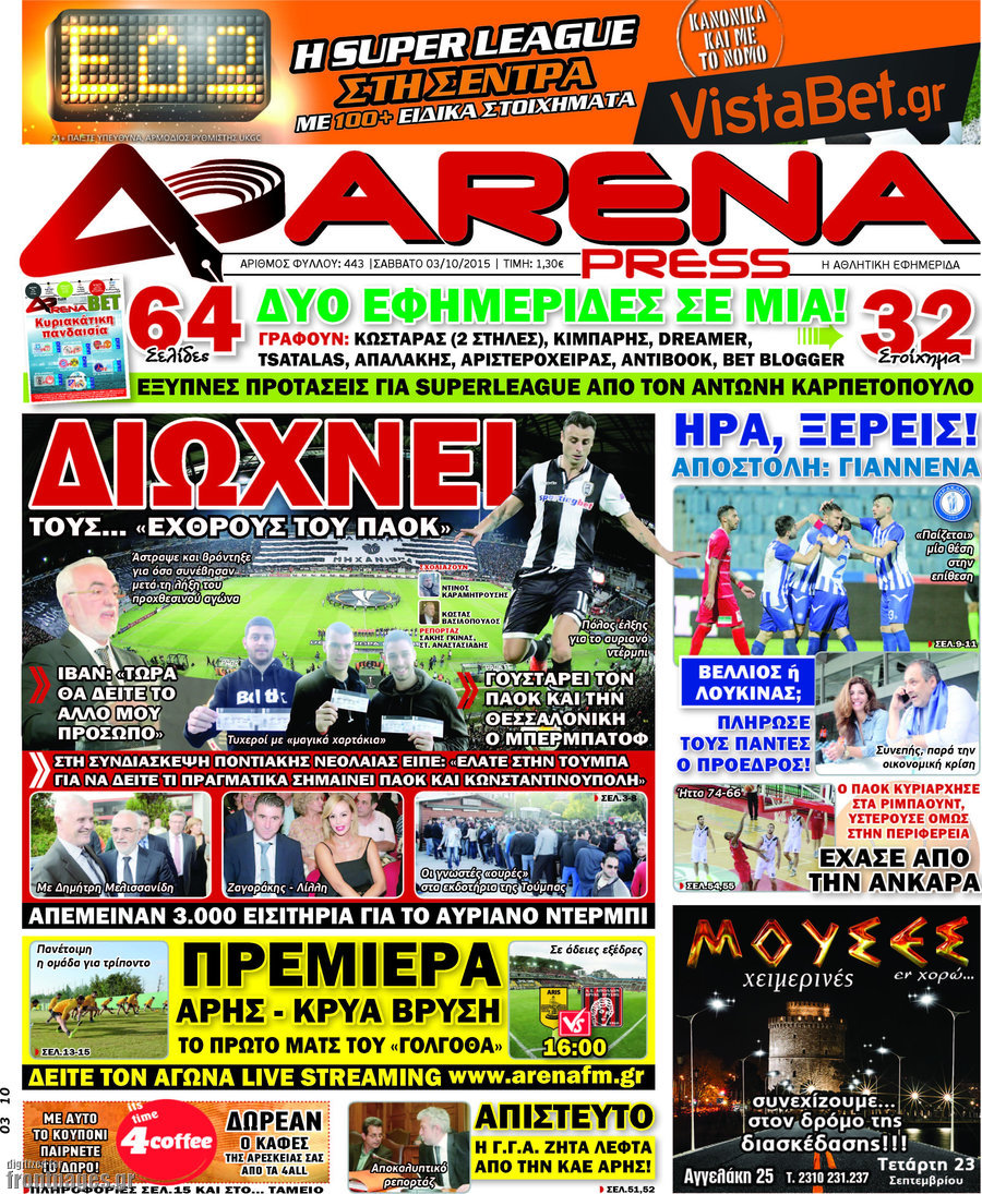 Οι αθλητικές εφημερίδες 3/10/2015 Enikos Newsroom 08:12, Σάββατο 03 Οκτωβρίου 2015 Media Διαβάστε τα σημερινά πρωτοσέλιδα των αθλητικών εφημερίδων. ΑΘΛΗΤΙΚΕΣ ΕΦΗΜΕΡΙΔΕΣ ΕΦΗΜΕΡΙΔΕΣ ΠΡΩΤΟΣΕΛΙΔΑ Μοιράσου το: σχολίασε κι εσύ (0 σχόλια) Ακολουθήστε το enikos.gr στο Google News και μάθετε πρώτοι όλες τις ειδήσεις Δείτε όλες τις τελευταίες ειδήσεις από την Ελλάδα και τον Κόσμο στο enikos.gr Ειδήσεις Ροή Ειδήσεων 8 ώρες πριν Χριστούγεννα στα μπλόκα: Επιμένουν στις κινητοποιήσεις τους οι αγρότες – Ανοίγουν τα διόδια το Σαββατοκύριακο 8 ώρες πριν Ουκρανία: Η άνευ προηγουμένου επίθεση σε ρωσικό τάνκερ στη Μεσόγειο και το μήνυμα προς στον Πούτιν – Το «μακρύ χέρι» του Κιέβου 7 ώρες πριν Πούτιν: Τα μηνύματα σε Ευρώπη και ΝΑΤΟ από το μαραθώνιο «σόου» του – Η απαίτηση για «σεβασμό» και η ειρήνη «με τους όρους» της Μόσχας 6 ώρες πριν ΗΠΑ: Η κυβέρνηση του Ντόναλντ Τραμπ άρχισε να δημοσιοποιεί τα αρχεία Έπσταϊν 7 ώρες πριν Άνω Λιόσια: Πυροβολισμοί σε επιχείρηση με χαλιά – Εντοπίστηκαν 10 κάλυκες 21 λεπτά πριν Αυγά: Πόσα μπορείτε να τρώτε την ημέρα με ασφάλεια για μέγιστη πρόσληψη πρωτεΐνης 51 λεπτά πριν Τα ζώδια σήμερα, Σάββατο 20 Δεκεμβρίου: Παρθένοι, το σύμπαν σας δίνει το κλειδί 7 ώρες πριν Ανακαλύφθηκαν αρχαία χρυσά νομίσματα 2.200 ετών που απεικονίζουν τον θεό Απόλλωνα – Η άγνωστη σύνδεση με τον Φίλιππο Β΄ της Μακεδονίας 8 ώρες πριν Ύπνος: Μια κρυφή κατάσταση του εγκεφάλου πριν από τον ύπνο μπορεί να είναι το “κλειδί” για υψηλή ευφυΐα και δημιουργικότητα 5 λεπτά πριν Οπτική ψευδαίσθηση: Μόνο αν είσαι ο Σέρλοκ Χολμς θα βρεις τον αριθμό «87» σε 7 δευτερόλεπτα 13 λεπτά πριν Σαρωτικοί οι έλεγχοι στους δρόμους ενόψει εορτών – Μπλόκα της τροχαίας σε κεντρικές αρτηρίες της Αττικής 21 λεπτά πριν Αυγά: Πόσα μπορείτε να τρώτε την ημέρα με ασφάλεια για μέγιστη πρόσληψη πρωτεΐνης 28 λεπτά πριν Σαν σήμερα 20 Δεκεμβρίου: Τα σημαντικότερα γεγονότα της ημέρας 32 λεπτά πριν Οι οικονομικές εφημερίδες 20/12/2025 ENIKOS NETWORK Το ΕΚΑΒ τιμήθηκε από την Ακαδημία Αθηνών για τα 40 χρόνια προσφοράς του Έχετε πραγματικά μεγάλη καρδιά; 10 χαρακτηριστικά όσων έχουν καλοσύνη Αναστολή μέτρων αναγκαστικής εκτέλεσης για κτηνοτρόφους που πλήττονται από την ευλογιά των αιγοπροβάτων Πλήρης επάρκεια προϊόντων στις λαϊκές της Αττικής, παρά τις αγροτικές κινητοποιήσεις – Τι απαντούν οι πωλητές Χαρτογραφώντας το «σημείο χωρίς επιστροφή»: Για πρώτη φορά αποκαλύπτεται με λεπτομέρεια το ακανθώδες όριο της ατμόσφαιρας τ... Η Google καταργεί τη λειτουργία «dark web report» – Πώς θα μπορούν οι χρήστες να διαγράφουν τα δεδομένα τους περισσότερα 05:48 , Σάββατο 20 Δεκεμβρίου 2025 Οι οικονομικές εφημερίδες 20/12/2025 Διαβάστε τα πρωτοσέλιδα από τις οικονομικές εφημερίδες, σήμερα 20/12/2025. 05:43 , Σάββατο 20 Δεκεμβρίου 2025 Οι αθλητικές εφημερίδες 20/12/2025 Διαβάστε τα πρωτοσέλιδα από τις αθλητικές εφημερίδες, σήμερα 20/12/2025. 05:38 , Σάββατο 20 Δεκεμβρίου 2025 Οι πολιτικές εφημερίδες 20/12/2025 Διαβάστε τα πρωτοσέλιδα από τις πολιτικές εφημερίδες, σήμερα 20/12/2025. 04:20 , Σάββατο 20 Δεκεμβρίου 2025 Αγγελική Νικολούλη: Τα συλλυπητήρια για την απώλεια της Ειρήνης Μαρινάκη Τα συλληπητήρια στον πρόεδρο του Mega, τον Βαγγέλη Μαρινάκη, για την απώλεια της μητέρας του Ε... ΤΕΛΕΥΤΑΙΕΣ ΕΙΔΗΣΕΙΣ 5 λεπτά πριν Οπτική ψευδαίσθηση: Μόνο αν είσαι ο Σέρλοκ Χολμς θα... 13 λεπτά πριν Σαρωτικοί οι έλεγχοι στους δρόμους ενόψει εορτών –... 21 λεπτά πριν Αυγά: Πόσα μπορείτε να τρώτε την ημέρα με ασφάλεια για... 28 λεπτά πριν Σαν 