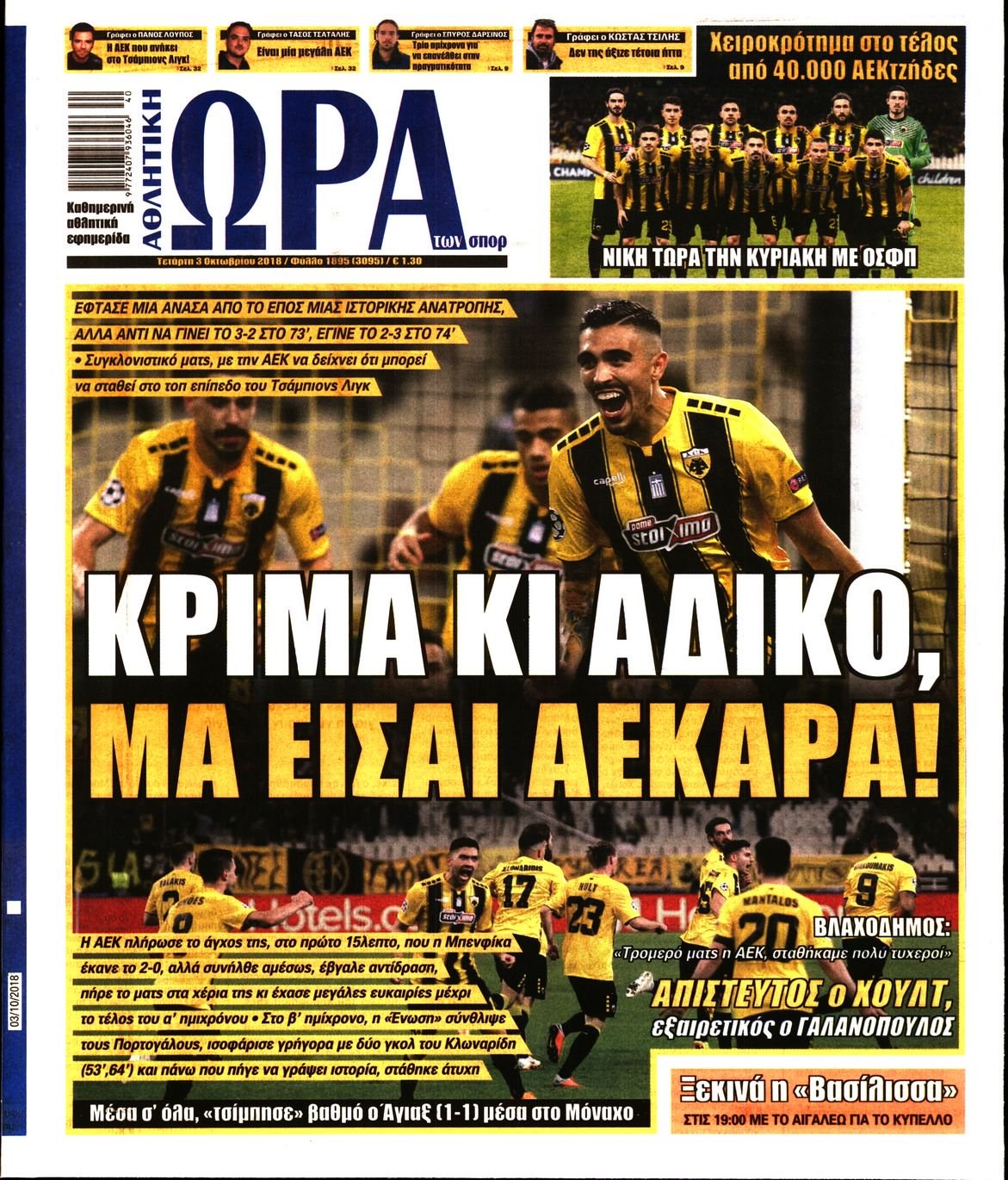 Οι αθλητικές εφημερίδες 3/10/2018 Enikos Newsroom 06:55, Τετάρτη 03 Οκτωβρίου 2018 Media Διαβάστε τα πρωτοσέλιδα: ΑΘΛΗΤΙΚΕΣ ΕΦΗΜΕΡΙΔΕΣ ΠΡΩΤΟΣΕΛΙΔΑ Μοιράσου το: σχολίασε κι εσύ (0 σχόλια) Ακολουθήστε το enikos.gr στο Google News και μάθετε πρώτοι όλες τις ειδήσεις Δείτε όλες τις τελευταίες ειδήσεις από την Ελλάδα και τον Κόσμο στο enikos.gr Ειδήσεις Ροή Ειδήσεων 7 ώρες πριν Χριστούγεννα στα μπλόκα: Επιμένουν στις κινητοποιήσεις τους οι αγρότες – Ανοίγουν τα διόδια το Σαββατοκύριακο 7 ώρες πριν Ουκρανία: Η άνευ προηγουμένου επίθεση σε ρωσικό τάνκερ στη Μεσόγειο και το μήνυμα προς στον Πούτιν – Το «μακρύ χέρι» του Κιέβου 7 ώρες πριν Πούτιν: Τα μηνύματα σε Ευρώπη και ΝΑΤΟ από το μαραθώνιο «σόου» του – Η απαίτηση για «σεβασμό» και η ειρήνη «με τους όρους» της Μόσχας 7 ώρες πριν Τραμπ: Δεν αποκλείει την πιθανότητα ενός πολέμου στη Βενεζουέλα – «Ο Μαδούρο ξέρει καλύτερα από τον καθένα τι ακριβώς θέλω» 8 ώρες πριν Συνεχίζει να προκαλεί ο Μίτσκοσκι: «Για μένα το όνομα Μακεδονία είναι ιερό» 7 λεπτά πριν Τα ζώδια σήμερα, Σάββατο 20 Δεκεμβρίου: Παρθένοι, το σύμπαν σας δίνει το κλειδί 7 ώρες πριν Ανακαλύφθηκαν αρχαία χρυσά νομίσματα 2.200 ετών που απεικονίζουν τον θεό Απόλλωνα – Η άγνωστη σύνδεση με τον Φίλιππο Β΄ της Μακεδονίας 8 ώρες πριν Ύπνος: Μια κρυφή κατάσταση του εγκεφάλου πριν από τον ύπνο μπορεί να είναι το “κλειδί” για υψηλή ευφυΐα και δημιουργικότητα 9 ώρες πριν Αριθμολογία: Οι άνθρωποι που έχουν γεννηθεί αυτές τις 4 ημερομηνίες, συχνά παρεξηγούνται – «Η καλοσύνη τους κρύβει τεράστια δύναμη» 7 λεπτά πριν Τα ζώδια σήμερα, Σάββατο 20 Δεκεμβρίου: Παρθένοι, το σύμπαν σας δίνει το κλειδί 12 λεπτά πριν Παιανία: Δυο αυτοκίνητα τυλίχτηκαν στις φλόγες – Συναγερμός στην Πυροσβεστική 15 λεπτά πριν Εφημερεύοντα φαρμακεία σε Αθήνα και Θεσσαλονίκη (20/12) 21 λεπτά πριν Γιώργος Μπαρτζώκας: «Για εμένα σημαίνει πάρα πολλά να ακούω το όνομά μου από τον κόσμο του Ολυμπιακού» 31 λεπτά πριν ΟΗΕ: Το Συμβούλιο Ασφαλείας παρατείνει για έναν χρόνο την εντολή της ειρηνευτικής δύναμης στο Κονγκό ENIKOS NETWORK Το ΕΚΑΒ τιμήθηκε από την Ακαδημία Αθηνών για τα 40 χρόνια προσφοράς του Έχετε πραγματικά μεγάλη καρδιά; 10 χαρακτηριστικά όσων έχουν καλοσύνη Αναστολή μέτρων αναγκαστικής εκτέλεσης για κτηνοτρόφους που πλήττονται από την ευλογιά των αιγοπροβάτων Πλήρης επάρκεια προϊόντων στις λαϊκές της Αττικής, παρά τις αγροτικές κινητοποιήσεις – Τι απαντούν οι πωλητές Χαρτογραφώντας το «σημείο χωρίς επιστροφή»: Για πρώτη φορά αποκαλύπτεται με λεπτομέρεια το ακανθώδες όριο της ατμόσφαιρας τ... Η Google καταργεί τη λειτουργία «dark web report» – Πώς θα μπορούν οι χρήστες να διαγράφουν τα δεδομένα τους περισσότερα 04:20 , Σάββατο 20 Δεκεμβρίου 2025 Αγγελική Νικολούλη: Τα συλλυπητήρια για την απώλεια της Ειρήνης Μαρινάκη Τα συλληπητήρια στον πρόεδρο του Mega, τον Βαγγέλη Μαρινάκη, για την απώλεια της μητέρας του Ε... 02:50 , Σάββατο 20 Δεκεμβρίου 2025 GNTM: Η Ξένια Τσίρκοβα αναδείχθηκε μεγάλη νικήτρια και πήρε τις 50.000 ευρώ – Ποιος βρέθηκε σε απόσταση αναπνοής; Με φαντασμαγορικό τρόπο ολοκληρώθηκε το βράδυ της Παρασκευής ο μεγάλος τελικός του GNTM, μέσα ... 22:42 , Παρασκευή 19 Δεκεμβρίου 2025 Γιώργος Γιαννόπουλος για “Το σόι σου”: “Είναι ευτυχία και ευλογία αυτή η σειρά” «Είναι ευτυχία και ευλογία η συγκυρία αυτής της σειράς», θα πει ο Γιώργος Γιαννόπουλος -ο αγαπ... 20:37 , Παρασκευή 19 Δεκεμβρίου 2025 Don’t Forget The Lyrics: Η Έλλη Κοκκίνου υποδέχεται 4 παίκτες που θα 