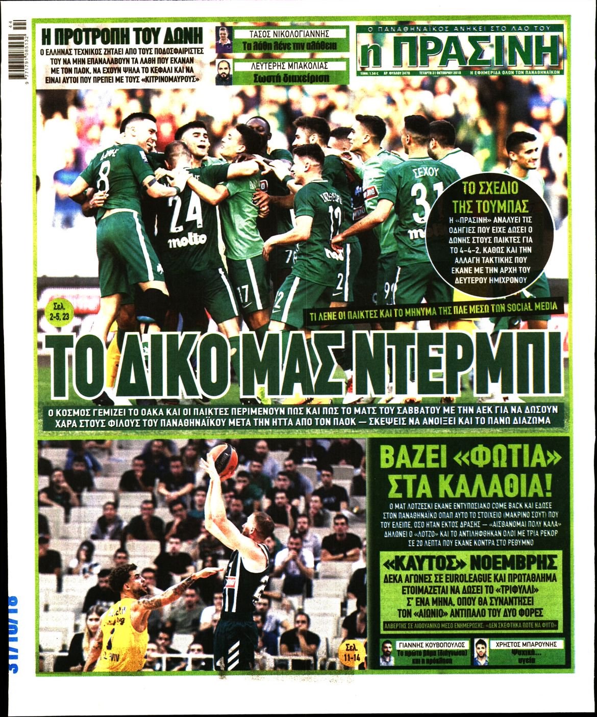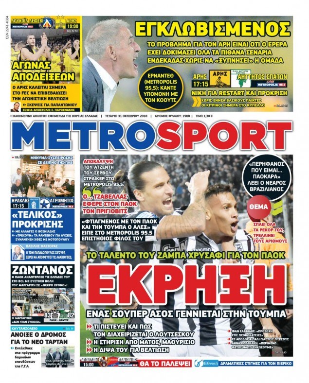 Οι αθλητικές εφημερίδες 31/10/18 Enikos Newsroom 06:33, Τετάρτη 31 Οκτωβρίου 2018 Media Διαβάστε τα πρωτοσέλιδα: ΑΘΛΗΤΙΚΕΣ ΕΦΗΜΕΡΙΔΕΣ ΠΡΩΤΟΣΕΛΙΔΑ Μοιράσου το: σχολίασε κι εσύ (0 σχόλια) Ακολουθήστε το enikos.gr στο Google News και μάθετε πρώτοι όλες τις ειδήσεις Δείτε όλες τις τελευταίες ειδήσεις από την Ελλάδα και τον Κόσμο στο enikos.gr Ειδήσεις Ροή Ειδήσεων 42 λεπτά πριν Χριστούγεννα στα μπλόκα: Επιμένουν στις κινητοποιήσεις τους οι αγρότες – Ανοίγουν τα διόδια το Σαββατοκύριακο 1 ώρα πριν Ουκρανία: Η άνευ προηγουμένου επίθεση σε ρωσικό τάνκερ στη Μεσόγειο και το μήνυμα προς στον Πούτιν – Το «μακρύ χέρι» του Κιέβου 19 λεπτά πριν Πούτιν: Τα μηνύματα σε Ευρώπη και ΝΑΤΟ από το μαραθώνιο «σόου» του – Η απαίτηση για «σεβασμό» και η ειρήνη «με τους όρους» της Μόσχας 1 ώρα πριν Τραμπ: Δεν αποκλείει την πιθανότητα ενός πολέμου στη Βενεζουέλα – «Ο Μαδούρο ξέρει καλύτερα από τον καθένα τι ακριβώς θέλω» 2 ώρες πριν Συνεχίζει να προκαλεί ο Μίτσκοσκι: «Για μένα το όνομα Μακεδονία είναι ιερό» 4 ώρες πριν Πούτιν: «Ναι, είμαι ερωτευμένος» – Βίντεο από τη σπάνια προσωπική παραδοχή του 2 ώρες πριν Αριθμολογία: Οι άνθρωποι που έχουν γεννηθεί αυτές τις 4 ημερομηνίες, συχνά παρεξηγούνται – «Η καλοσύνη τους κρύβει τεράστια δύναμη» 1 ώρα πριν Ύπνος: Μια κρυφή κατάσταση του εγκεφάλου πριν από τον ύπνο μπορεί να είναι το “κλειδί” για υψηλή ευφυΐα και δημιουργικότητα 3 ώρες πριν Ξεχάστε το καθάρισμα το Σαββατοκύριακο: Ο «κανόνας των 20 λεπτών» που θα σας λύσει τα χέρια 20 λεπτά πριν Ανακαλύφθηκαν αρχαία χρυσά νομίσματα 2.200 ετών που απεικονίζουν τον θεό Απόλλωνα – Η άγνωστη σύνδεση με τον Φίλιππο Β΄ της Μακεδονίας 4 λεπτά πριν Ολυμπιακός – Βιλερμπάν 107-84: Επιστροφή στις νίκες με… προπόνηση 10 λεπτά πριν Νέος Κόσμος: Συνελήφθη 41χρονος με ένταλμα από την Τουρκία για εμπόριο ναρκωτικών και ληστεία 19 λεπτά πριν Πούτιν: Τα μηνύματα σε Ευρώπη και ΝΑΤΟ από το μαραθώνιο «σόου» του – Η απαίτηση για «σεβασμό» και η ειρήνη «με τους όρους» της Μόσχας 20 λεπτά πριν Ανακαλύφθηκαν αρχαία χρυσά νομίσματα 2.200 ετών που απεικονίζουν τον θεό Απόλλωνα – Η άγνωστη σύνδεση με τον Φίλιππο Β΄ της Μακεδονίας 25 λεπτά πριν Νίκος Ξυλούρης: Συγκινεί η χήρα του σπουδαίου καλλιτέχνη – «Ευχαριστώ όλο τον κόσμο που τον κρατάει ζωντανό 45 χρόνια» ENIKOS NETWORK Το ΕΚΑΒ τιμήθηκε από την Ακαδημία Αθηνών για τα 40 χρόνια προσφοράς του Έχετε πραγματικά μεγάλη καρδιά; 10 χαρακτηριστικά όσων έχουν καλοσύνη Αναστολή μέτρων αναγκαστικής εκτέλεσης για κτηνοτρόφους που πλήττονται από την ευλογιά των αιγοπροβάτων Πλήρης επάρκεια προϊόντων στις λαϊκές της Αττικής, παρά τις αγροτικές κινητοποιήσεις – Τι απαντούν οι πωλητές Χαρτογραφώντας το «σημείο χωρίς επιστροφή»: Για πρώτη φορά αποκαλύπτεται με λεπτομέρεια το ακανθώδες όριο της ατμόσφαιρας τ... Η Google καταργεί τη λειτουργία «dark web report» – Πώς θα μπορούν οι χρήστες να διαγράφουν τα δεδομένα τους περισσότερα 22:42 , Παρασκευή 19 Δεκεμβρίου 2025 Γιώργος Γιαννόπουλος για “Το σόι σου”: “Είναι ευτυχία και ευλογία αυτή η σειρά” «Είναι ευτυχία και ευλογία η συγκυρία αυτής της σειράς», θα πει ο Γιώργος Γιαννόπουλος -ο αγαπ... 20:37 , Παρασκευή 19 Δεκεμβρίου 2025 Don’t Forget The Lyrics: Η Έλλη Κοκκίνου υποδέχεται 4 παίκτες που θα κάνουν τα πάντα για να μη χάσουν ούτε… μισή λέξη από τους στίχους Το «Don’t Forget The Lyrics» επιστρέφει απόψε, Παρασκευή 19 Δεκεμβρίου, στις 21:00 με νέο επει... 19:31 , Παρασκευή 19 Δεκεμβρίου 2025 GNTM: Απόψε ο μεγάλος