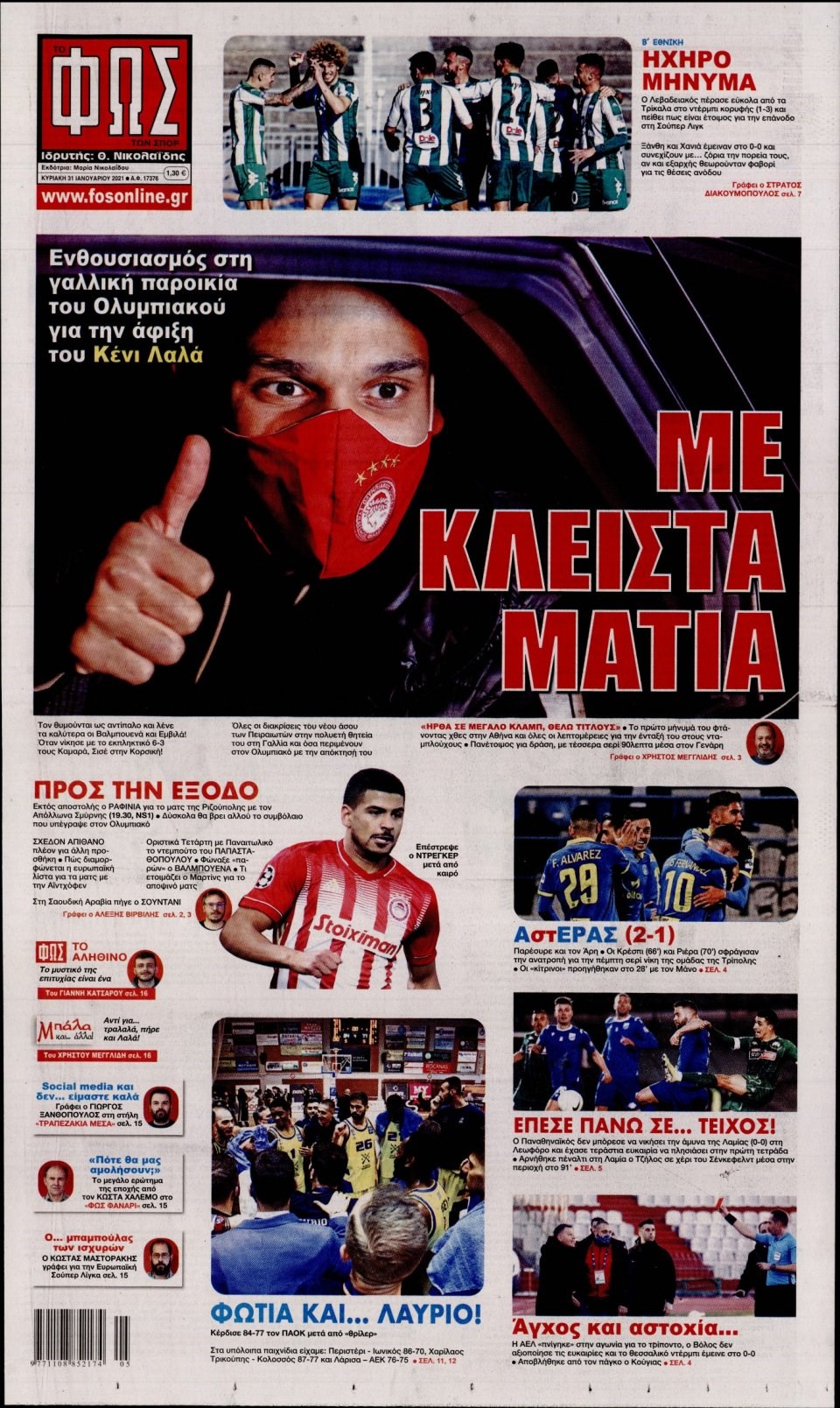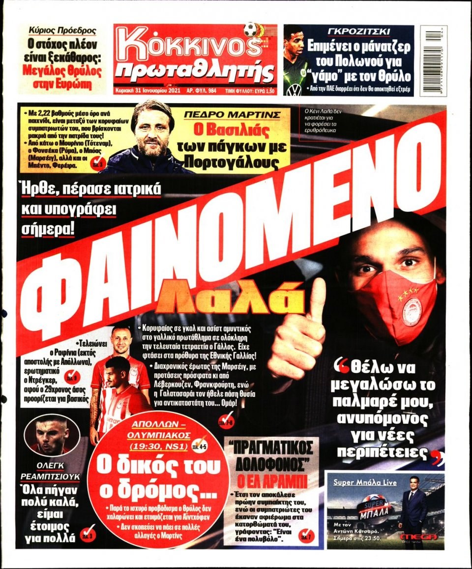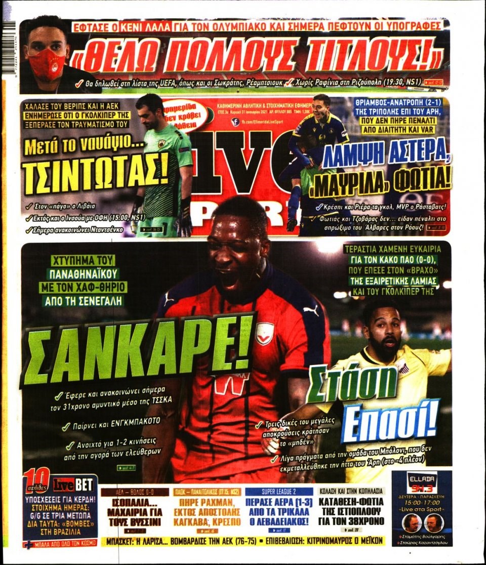 Οι αθλητικές εφημερίδες 31/1/2021 Σήφης Γαρυφαλάκης 07:42, Κυριακή 31 Ιανουαρίου 2021 Media Διαβάστε τα πρωτοσέλιδα των αθλητικών εφημερίδων… ΑΘΛΗΤΙΚΕΣ ΕΦΗΜΕΡΙΔΕΣ ΕΦΗΜΕΡΙΔΕΣ ΠΡΩΤΟΣΕΛΙΔΑ ΠΡΩΤΟΣΕΛΙΔΑ ΕΦΗΜΕΡΙΔΩΝ Μοιράσου το: σχολίασε κι εσύ (0 σχόλια) Ακολουθήστε το enikos.gr στο Google News και μάθετε πρώτοι όλες τις ειδήσεις Δείτε όλες τις τελευταίες ειδήσεις από την Ελλάδα και τον Κόσμο στο enikos.gr Ειδήσεις Ροή Ειδήσεων 2 ώρες πριν ΑΑΔΕ: Στον Εισαγγελέα οι πρώτες 50 μαζικές διαγραφές αγρών στο Ε9 – Εξετάζονται συνολικά 3.000 περιπτώσεις 6 ώρες πριν Καιρός: Νέο έκτακτο δελτίο επιδείνωσης από την ΕΜΥ – Ποιες περιοχές θα «χτυπήσει» η κακοκαιρία τα Χριστούγεννα 24 λεπτά πριν Τουρκία: Σε ουδέτερη χώρα θα αναλυθεί το μαύρο κουτί του αεροσκάφους που συνετρίβη 2 ώρες πριν Ζελένσκι: Πέρασε στην αντεπίθεση με το σχέδιο ειρήνης – Ζητεί συνάντηση με Τραμπ για το εδαφικό 7 ώρες πριν Live – Έξοδος Χριστουγέννων: Αυξημένη η κίνηση στις Εθνικές Οδούς – Εικόνα αποσυμφόρησης με νέες λωρίδες κυκλοφορίας στα αγροτικά μπλόκα 2 ώρες πριν Τα 5 ζώδια που έχουν μεγάλες πιθανότητες να πλουτίσουν το 2026 – «Οι οικονομικές δυσκολίες ανήκουν στο παρελθόν» 3 ώρες πριν Επιστήμονες ανακάλυψαν κάτι συγκλονιστικό – Η μάζα μπορεί να προέρχεται από αόρατες διαστάσεις 7 ώρες πριν Γυναίκα που έχασε 30 κιλά αποκαλύπτει τα μυστικά της επιτυχίας της – «Οι υδατάνθρακες είναι καύσιμο του οργανισμού, όχι εχθρός» 6 ώρες πριν Οι άνθρωποι που αποφεύγουν να γιορτάσουν τα Χριστούγεννα με την οικογένειά τους, συνήθως είχαν αυτές τις 8 εμπειρίες στην παιδική ηλικία 8 λεπτά πριν Ερντογάν για τις εξελίξεις στη Μεσόγειο: Δεν θα επιτρέψουμε την καταπάτηση των δικαιωμάτων των Τουρκοκυπρίων 16 λεπτά πριν Πάτρα: Παιδιά είπαν τα κάλαντα και πληρώθηκαν με… IRIS 24 λεπτά πριν Τουρκία: Σε ουδέτερη χώρα θα αναλυθεί το μαύρο κουτί του αεροσκάφους που συνετρίβη 31 λεπτά πριν Αττική: Πλημμύρισε ο δρόμος στην Αργυρουπόλεως – Βίντεο αναγνώστη 38 λεπτά πριν Greek Mafia: Στον ανακριτή ο 35χρονος συνεργός του «Εντίκ» – Σε δύο δόσεις η απολογία του ENIKOS NETWORK ΕΟΔΥ: Οι «χρυσές» συμβουλές για να απολαύσουμε το Χριστουγεννιάτικο τραπέζι χωρίς υπερβολές New Year’s Resolutions: Μικρές αποφάσεις για μια καλή χρονιά e-ΕΦΚΑ και ΔΥΠΑ: Ποιοι πληρώνονται έως σήμερα ΑΑΔΕ: Στον Εισαγγελέα οι πρώτες 50 μαζικές διαγραφές αγρών στο Ε9 – Η λίστα με 3.000 «ιδιοκτήτες» για επιδοτήσεις ΟΠΕΚΕΠΕ Ο Google Assistant θα παραμείνει λίγο περισσότερο για ορισμένους χρήστες Android Τεστ προσωπικότητας: Το βάζο που θα επιλέξετε αποκαλύπτει πώς λύνετε προβλήματα στη ζωή σας περισσότερα 16:12 , Τετάρτη 24 Δεκεμβρίου 2025 ALPHA: Παραμονή Χριστουγέννων με τον Κωνσταντίνο Αργυρό Ο Alpha παρουσιάζει απόψε σε πρώτη τηλεοπτική μετάδοση τη συναρπαστική και sold out εμφάνιση ... 15:51 , Τετάρτη 24 Δεκεμβρίου 2025 ‘Αγιος Έρωτας: Ο σεισμός που έκοψε την ανάσα – Δείτε τις συγκλονιστικές σκηνές Με έναν συγκλονιστικό τρόπο έκλεισε χθες βράδυ το τελευταίο επεισόδιο του 2025 της σειράς R... 13:27 , Τετάρτη 24 Δεκεμβρίου 2025 Ο Χριστουγεννιάτικος Τηλεμαραθώνιος του ΑΝΤ1 ένωσε τους πολιτικούς αρχηγούς – Τα εγκωμιαστικά σχόλια για τον Θοδωρή Κυριακού Σπάνια ομοφωνία: Όλοι οι πολιτικοί αρχηγοί αποθεώνουν τον Θοδωρή Κυριακού Ο Χριστουγεννιάτικος... 12:05 , Τετάρτη 24 Δεκεμβρίου 2025 Έξοδος εκδρομέων για τα Χριστούγεννα: Στείλε βίντεο ή φωτογραφίες στο enikos.gr – Αποθήκευσε τον αριθμό 6944 05 05 05 Πολλοί έχουν επιλέξει να περάσουν τις γιορτές εκτός πόλης