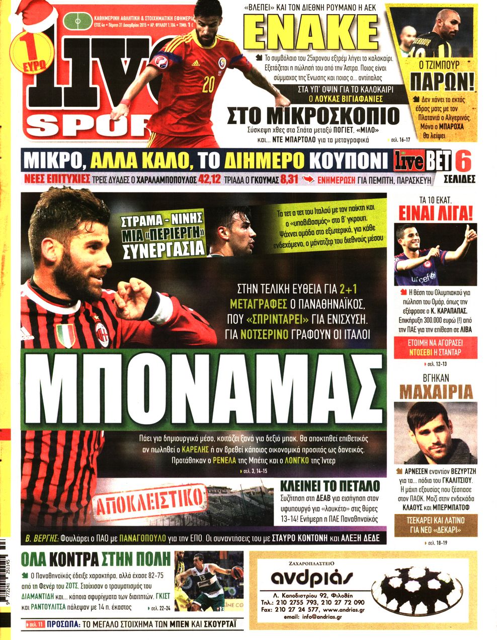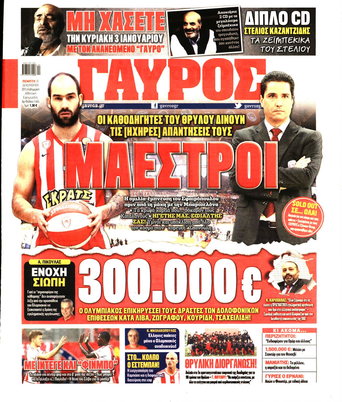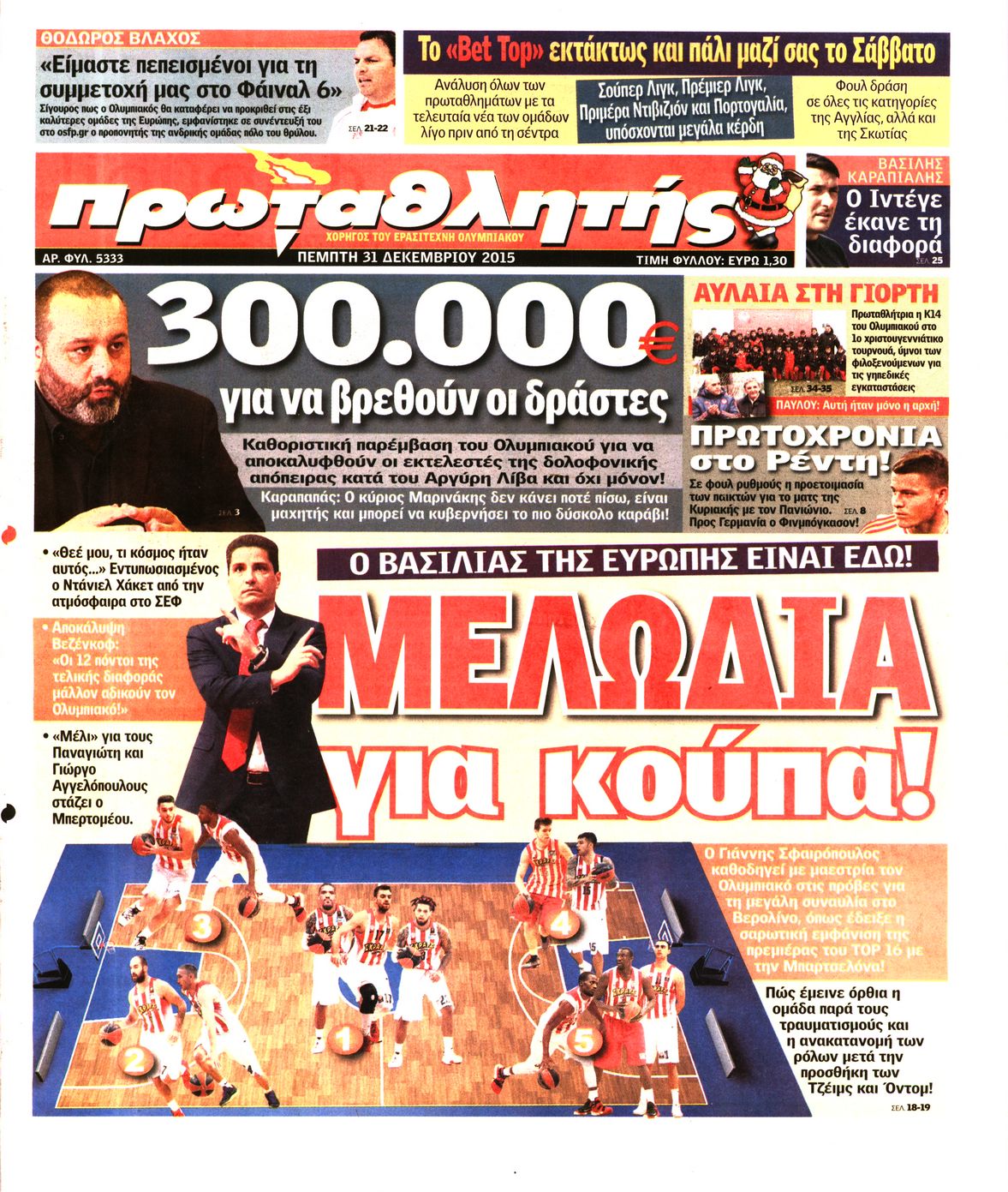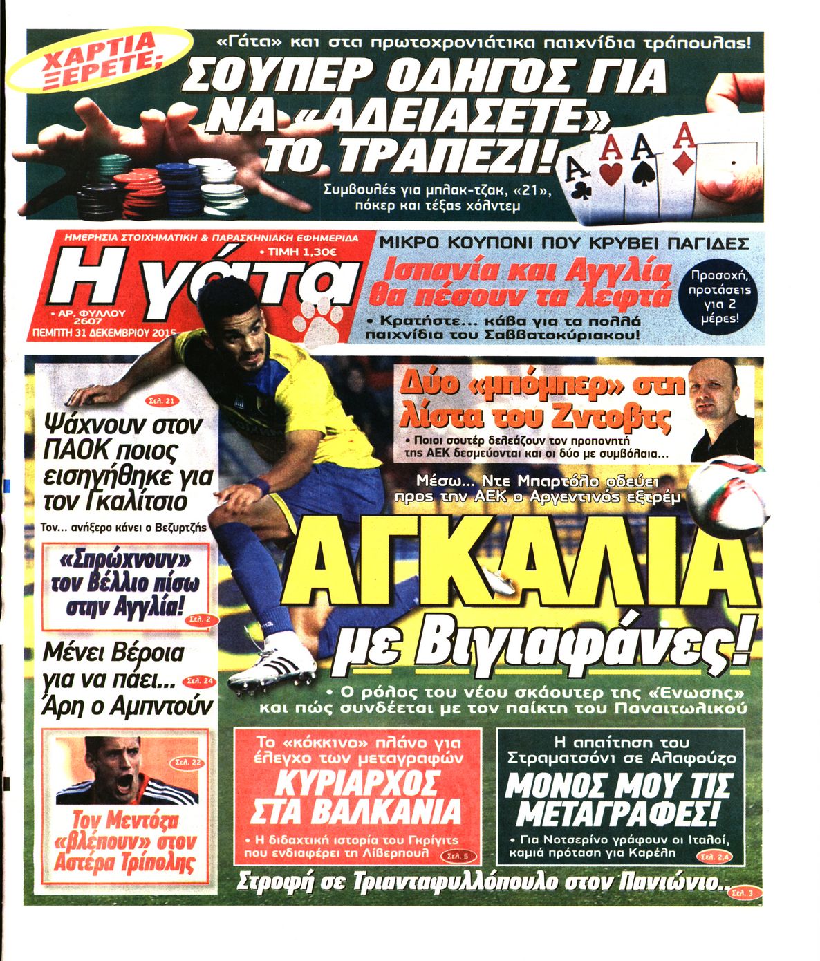 Οι αθλητικές εφημερίδες 31/12/2015 Enikos Newsroom 06:07, Πέμπτη 31 Δεκεμβρίου 2015 Media Διαβάστε τα σημερινά πρωτοσέλιδα των αθλητικών εφημερίδων: ΑΘΛΗΤΙΚΕΣ ΕΦΗΜΕΡΙΔΕΣ ΠΡΩΤΟΣΕΛΙΔΑ Μοιράσου το: σχολίασε κι εσύ (0 σχόλια) Ακολουθήστε το enikos.gr στο Google News και μάθετε πρώτοι όλες τις ειδήσεις Δείτε όλες τις τελευταίες ειδήσεις από την Ελλάδα και τον Κόσμο στο enikos.gr Ειδήσεις Ροή Ειδήσεων 50 λεπτά πριν Αυξάνουν την πίεση προς την κυβέρνηση οι αγρότες: Κλείνουν παρακαμπτήριους και ανοίγουν διόδια – Τι θα γίνει τις γιορτές 41 λεπτά πριν Φοινικούντα: Το Σάββατο απολογείται ο 30χρονος γιος γνωστού επιχειρηματία της Πλάκας που παραδόθηκε – Όσα είπε στους αστυνομικούς και ο ρόλος του στο έγκλημα 23 λεπτά πριν Μπορεί ο Μαδούρο να αντέξει τον αποκλεισμό του Τραμπ; Τι θα χρειαστεί η Ουάσινγκτον για να τον ανατρέψει 2 ώρες πριν Δημοσκόπηση Metron Analysis: Στις 10 μονάδες η διαφορά ΝΔ-ΠΑΣΟΚ, στην 3η θέση η Πλεύση Ελευθερίας – 8 στους 10 στηρίζουν τον αγώνα των αγροτών 2 ώρες πριν Πρίγκιπας Ουίλιαμ – Κέιτ: Η νέα οικογενειακή φωτογραφία για τις Χριστουγεννιάτικες κάρτες του 2025 1 ώρα πριν Ύπνος: Η απλή βραδινή ρουτίνα για να προστατεύσετε τα μαλλιά σας από το κρύο κατά τη διάρκεια του χειμώνα 2 ώρες πριν Manifesting: Πώς να συναντήσετε τον σύντροφο της ζωής σας, ανάλογα με τον μήνα γέννησής σας 2 ημέρες πριν 20 χρόνια τα Χριστούγεννα ξεκινούν στα Public με μεγάλη ποικιλία σε δώρα! 26 λεπτά πριν Αρχαιολόγοι ανακάλυψαν ρωμαϊκά τεχνουργήματα από μια πόλη που δεν υπήρξε ποτέ – Τα τρία εντυπωσιακά κτίρια και ο αμφορέας με τις… σαρδέλες 7 λεπτά πριν Παναθηναϊκός – Χάποελ Τελ Αβίβ 93-82: Με… φόρα από την Κωνσταντινούπολη 23 λεπτά πριν Μπορεί ο Μαδούρο να αντέξει τον αποκλεισμό του Τραμπ; Τι θα χρειαστεί η Ουάσινγκτον για να τον ανατρέψει 26 λεπτά πριν Αρχαιολόγοι ανακάλυψαν ρωμαϊκά τεχνουργήματα από μια πόλη που δεν υπήρξε ποτέ – Τα τρία εντυπωσιακά κτίρια και ο αμφορέας με τις… σαρδέλες 28 λεπτά πριν Στο ΟΑΚΑ για το «Παναθηναϊκός – Χάποελ» η Κίμπερλι Γκίλφοϊλ – ΦΩΤΟ 36 λεπτά πριν Ούρσουλα φον ντερ Λάιεν: Μετατίθεται για τον Ιανουάριο η υπογραφή της εμπορικής συμφωνίας «ΕΕ-MERCOSUR» ENIKOS NETWORK Σε περίοδο αυξημένης δραστηριότητας η γρίπη στην Ελλάδα-Μέτρα προστασίας από τον ΕΟΔΥ Σκέφτεστε συνέχεια συζητήσεις που έχετε κάνει; Τι σημαίνει αυτό, σύμφωνα με ειδικό Στεγαστικό: Τι λέει η ΠΟΜΙΔΑ για τα νέα μέτρα που ανακοίνωσε ο Κυριάκος Μητσοτάκης Λαγκάρντ: Αισιόδοξη για την ανάπτυξη της Ευρωζώνης, αβέβαιη για τον πληθωρισμό Χαρτογραφώντας το «σημείο χωρίς επιστροφή»: Για πρώτη φορά αποκαλύπτεται με λεπτομέρεια το ακανθώδες όριο της ατμόσφαιρας τ... Η Google καταργεί τη λειτουργία «dark web report» – Πώς θα μπορούν οι χρήστες να διαγράφουν τα δεδομένα τους περισσότερα 17:45 , Πέμπτη 18 Δεκεμβρίου 2025 ROUK ZOUK: Εορταστικό επεισόδιο με καλεσμένους τους πρωταγωνιστές του «Γιατί ρε πατέρα» Το Σάββατο 20 Δεκεμβρίου στις 21:00, η Ζέτα Μακρυπούλια υποδέχεται εκλεκτούς ηθοποιούς που όλο... 17:20 , Πέμπτη 18 Δεκεμβρίου 2025 Άγιος έρωτας: Η Χριστίνα εξομολογείται στον πατέρα Νικόλαο, απόψε στις 21:00 στον Alpha Η Νότα αποφασίζει να εκδικηθεί τον Πέτρο και τον Στέφανο, για χάρη του Λούη, όμως τα πράγματα ... 16:50 , Πέμπτη 18 Δεκεμβρίου 2025 Να μ’ αγαπάς: Ζωή και Φωτεινή συμφιλιώνονται ως μάνα με κόρη, απόψε στις 20:00 Η ταυτότητα του Άγγελου αποκαλύπτεται στο νέο επεισόδιο της σειράς “Να μ’ αγαπάς... 15:52 , Πέμπτη 18 Δεκεμβρίου 2025 Το Σπίτι Δίπλα Στο Ποτάμι: Το καθηλωτικό τελ