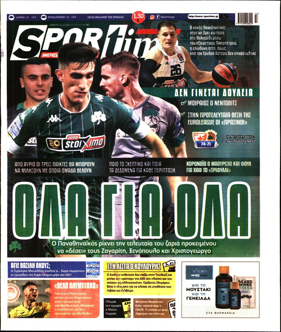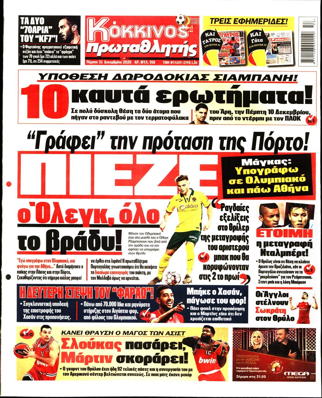 Οι αθλητικές εφημερίδες 31/12/2020 Διονύσης Νίκκας 07:32, Πέμπτη 31 Δεκεμβρίου 2020 Media Διαβάστε τα πρωτοσέλιδα των αθλητικών εφημερίδων… ΑΘΛΗΤΙΚΕΣ ΕΦΗΜΕΡΙΔΕΣ Μοιράσου το: σχολίασε κι εσύ (0 σχόλια) Ακολουθήστε το enikos.gr στο Google News και μάθετε πρώτοι όλες τις ειδήσεις Δείτε όλες τις τελευταίες ειδήσεις από την Ελλάδα και τον Κόσμο στο enikos.gr Ειδήσεις Ροή Ειδήσεων 35 λεπτά πριν Χριστούγεννα στα μπλόκα: Επιμένουν στις κινητοποιήσεις τους οι αγρότες – Ανοίγουν τα διόδια το Σαββατοκύριακο 58 λεπτά πριν Ουκρανία: Η άνευ προηγουμένου επίθεση σε ρωσικό τάνκερ στη Μεσόγειο και το μήνυμα προς στον Πούτιν – Το «μακρύ χέρι» του Κιέβου 13 λεπτά πριν Πούτιν: Τα μηνύματα σε Ευρώπη και ΝΑΤΟ από το μαραθώνιο «σόου» του – Η απαίτηση για «σεβασμό» και η ειρήνη «με τους όρους» της Μόσχας 1 ώρα πριν Τραμπ: Δεν αποκλείει την πιθανότητα ενός πολέμου στη Βενεζουέλα – «Ο Μαδούρο ξέρει καλύτερα από τον καθένα τι ακριβώς θέλω» 2 ώρες πριν Συνεχίζει να προκαλεί ο Μίτσκοσκι: «Για μένα το όνομα Μακεδονία είναι ιερό» 3 ώρες πριν Πούτιν: «Ναι, είμαι ερωτευμένος» – Βίντεο από τη σπάνια προσωπική παραδοχή του 2 ώρες πριν Αριθμολογία: Οι άνθρωποι που έχουν γεννηθεί αυτές τις 4 ημερομηνίες, συχνά παρεξηγούνται – «Η καλοσύνη τους κρύβει τεράστια δύναμη» 1 ώρα πριν Ύπνος: Μια κρυφή κατάσταση του εγκεφάλου πριν από τον ύπνο μπορεί να είναι το “κλειδί” για υψηλή ευφυΐα και δημιουργικότητα 3 ώρες πριν Ξεχάστε το καθάρισμα το Σαββατοκύριακο: Ο «κανόνας των 20 λεπτών» που θα σας λύσει τα χέρια 14 λεπτά πριν Ανακαλύφθηκαν αρχαία χρυσά νομίσματα 2.200 ετών που απεικονίζουν τον θεό Απόλλωνα – Η άγνωστη σύνδεση με τον Φίλιππο Β΄ της Μακεδονίας 13 λεπτά πριν Πούτιν: Τα μηνύματα σε Ευρώπη και ΝΑΤΟ από το μαραθώνιο «σόου» του – Η απαίτηση για «σεβασμό» και η ειρήνη «με τους όρους» της Μόσχας 14 λεπτά πριν Ανακαλύφθηκαν αρχαία χρυσά νομίσματα 2.200 ετών που απεικονίζουν τον θεό Απόλλωνα – Η άγνωστη σύνδεση με τον Φίλιππο Β΄ της Μακεδονίας 19 λεπτά πριν Νίκος Ξυλούρης: Συγκινεί η χήρα του σπουδαίου καλλιτέχνη – «Ευχαριστώ όλο τον κόσμο που τον κρατάει ζωντανό 45 χρόνια» 26 λεπτά πριν Παναθηναϊκός: «Μέσα» οι Σφιντέρσκι και Τουμπά για το ματς με τον ΠΑΟΚ – Τι έδειξε η μαγνητική του Πάντοβιτς 31 λεπτά πριν Γιώργος Γιαννόπουλος για “Το σόι σου”: “Είναι ευτυχία και ευλογία αυτή η σειρά” ENIKOS NETWORK Το ΕΚΑΒ τιμήθηκε από την Ακαδημία Αθηνών για τα 40 χρόνια προσφοράς του Έχετε πραγματικά μεγάλη καρδιά; 10 χαρακτηριστικά όσων έχουν καλοσύνη Πλήρης επάρκεια προϊόντων στις λαϊκές της Αττικής, παρά τις αγροτικές κινητοποιήσεις – Τι απαντούν οι πωλητές ΑΑΔΕ: Νέες αναβαθμίσεις στο Ψηφιακό Πελατολόγιο και την εφαρμογή myDATAapp – Τι πρέπει να γνωρίζετε Χαρτογραφώντας το «σημείο χωρίς επιστροφή»: Για πρώτη φορά αποκαλύπτεται με λεπτομέρεια το ακανθώδες όριο της ατμόσφαιρας τ... Η Google καταργεί τη λειτουργία «dark web report» – Πώς θα μπορούν οι χρήστες να διαγράφουν τα δεδομένα τους περισσότερα 22:42 , Παρασκευή 19 Δεκεμβρίου 2025 Γιώργος Γιαννόπουλος για “Το σόι σου”: “Είναι ευτυχία και ευλογία αυτή η σειρά” «Είναι ευτυχία και ευλογία η συγκυρία αυτής της σειράς», θα πει ο Γιώργος Γιαννόπουλος -ο αγαπ... 20:37 , Παρασκευή 19 Δεκεμβρίου 2025 Don’t Forget The Lyrics: Η Έλλη Κοκκίνου υποδέχεται 4 παίκτες που θα κάνουν τα πάντα για να μη χάσουν ούτε… μισή λέξη από τους στίχους Το «Don’t Forget The Lyrics» επιστρέφει απόψε, Παρασκευή 19 Δεκεμβρίου, στις 21:00 με νέο επει... 19: