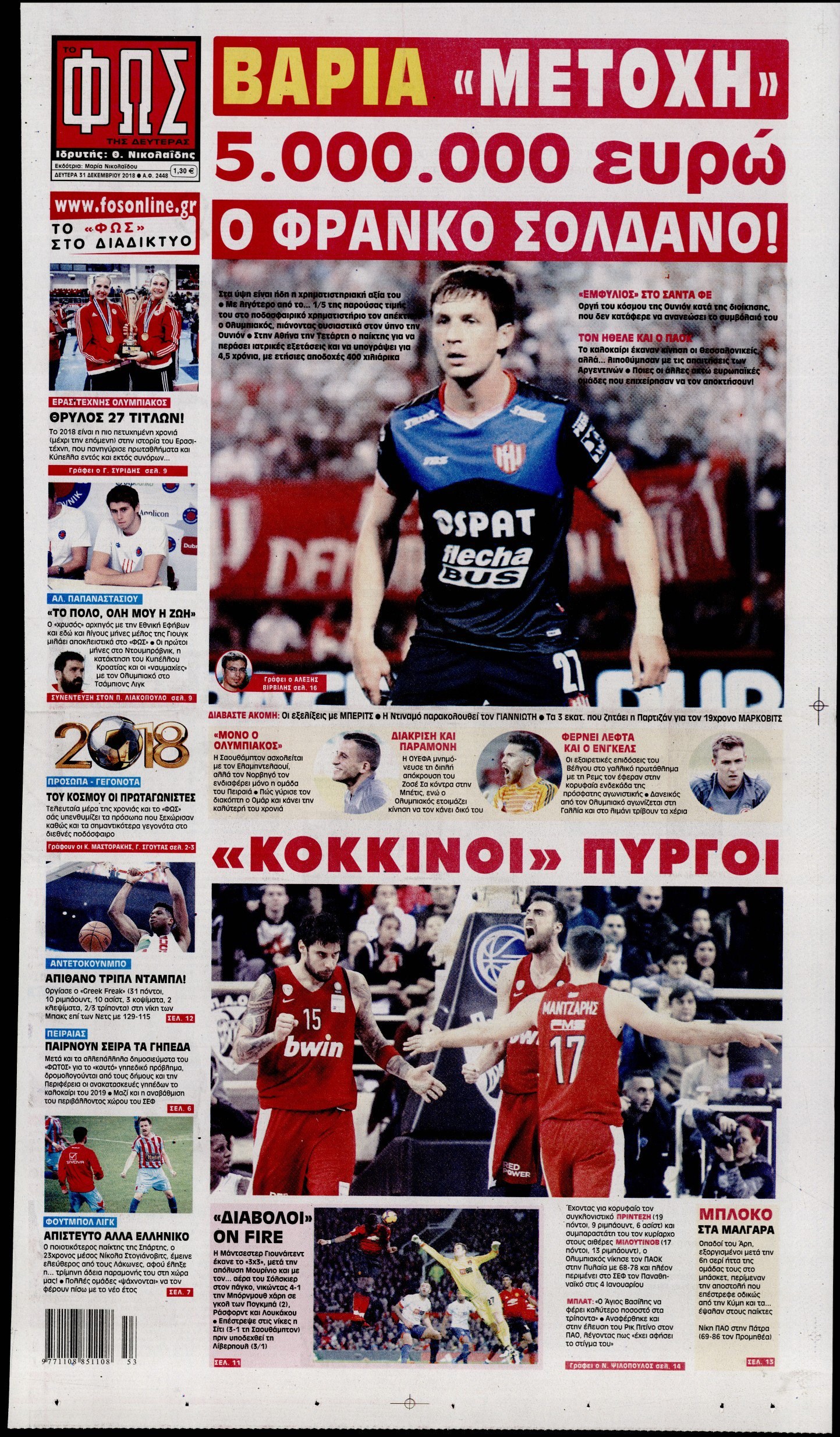 Οι αθλητικές εφημερίδες 31/21/18 Enikos Newsroom 06:30, Δευτέρα 31 Δεκεμβρίου 2018 Media Διαβάστε τα πρωτοσέλιδα: ΑΘΛΗΤΙΚΕΣ ΕΦΗΜΕΡΙΔΕΣ ΠΡΩΤΟΣΕΛΙΔΑ Μοιράσου το: σχολίασε κι εσύ (0 σχόλια) Ακολουθήστε το enikos.gr στο Google News και μάθετε πρώτοι όλες τις ειδήσεις Δείτε όλες τις τελευταίες ειδήσεις από την Ελλάδα και τον Κόσμο στο enikos.gr Ειδήσεις Ροή Ειδήσεων 49 λεπτά πριν «Έλληνας Εσκομπάρ»: Φωτογραφίες με τους 4 τόνους κοκαΐνης που κατασχέθηκαν από το σκάφος «Ουρανία» 36 λεπτά πριν Από το Ορμένιο ως τα Μάλγαρα κι από τη Σιάτιστα μέχρι τη Νίκαια: Μπλόκα σε όλη την Ελλάδα – Το Σάββατο ανοίγουν τα διόδια οι αγρότες 4 ώρες πριν Η Ουκρανία χτύπησε τάνκερ του σκιώδους στόλου της Ρωσίας στη Μεσόγειο – Έπλεε νότια της Κρήτης 2 ώρες πριν Πούτιν: Σαρκαστικά μηνύματα, παράπονα και απρόοπτα στη συνέντευξη Τύπου – Η πρόταση γάμου on air και οι ερωτήσεις για τα αγγούρια και τους… εξωγήινους 3 ώρες πριν Εξώδικο επιχειρηματία στον Γιώργο Μαζωνάκη – Τι απαντά στις καταγγελίες του τραγουδιστή 2 ώρες πριν Τα 5 ζώδια που ευνοούνται στην ερωτική ζωή τους την επόμενη εβδομάδα – «Η ενέργεια του Αιγόκερου φέρνει αγάπη και σταθερότητα» 7 ώρες πριν Γεμάτος νεροχύτης; 5 σοβαρές ευθύνες που «φοβίζουν» όσους αφήνουν άπλυτα πιάτα 6 ώρες πριν Ειδικός μοιράζεται 6 κόλπα για να διατηρείστε σε φόρμα με πάνω από 40 ώρες εργασίας την εβδομάδα: «Προπονηθείτε πριν από τη δουλειά, όχι μετά» 2 ημέρες πριν 20 χρόνια τα Χριστούγεννα ξεκινούν στα Public με μεγάλη ποικιλία σε δώρα! 1 λεπτό πριν Σοκ στις Σέρρες: 62χρονος καθηγητής παρενόχλησε σεξουαλικά 16χρονη μαθήτριά του μέσα σε σχολείο – Η καταγγελία 6 λεπτά πριν Κίνηση… παντού: «Κόκκινος» ο Κηφισός, μποτιλιάρισμα στην Κηφισίας και στο κέντρο της Αθήνας – Καθυστερήσεις και στην Αττική Οδό 9 λεπτά πριν ΑΕΚ: Τα συγχαρητήρια της ΕΠΟ θα γίνουν αποδεκτά όταν καθαρίσουν τα «ακάθαρτα» 16 λεπτά πριν ΔΥΠΑ: Τι δείχνουν τα νέα στοιχεία για την ανεργία 16 λεπτά πριν Αγροτικά μπλόκα: Άνοιξε ο Προμαχώνας – Ουρές από φορτηγά ENIKOS NETWORK ΕΛΣΤΑΤ: Αύξηση κατά 1,7% των επαγγελματιών υγείας το 2024 Τάξη στις ιατρικές διαφημίσεις για την προστασία των πολιτών βάζει ο ΙΣΑ Μετρό: Ενισχύονται τα δρομολόγια – Δείτε ποιες ημέρες Παπαθανάσης για νέο Εθνικό Πρόγραμμα Ανάπτυξης 2026-2030: Είναι υπερδιπλάσιο από αυτό της προηγούμενης προγραμματικής περιό... Χαρτογραφώντας το «σημείο χωρίς επιστροφή»: Για πρώτη φορά αποκαλύπτεται με λεπτομέρεια το ακανθώδες όριο της ατμόσφαιρας τ... Η Google καταργεί τη λειτουργία «dark web report» – Πώς θα μπορούν οι χρήστες να διαγράφουν τα δεδομένα τους περισσότερα 15:15 , Παρασκευή 19 Δεκεμβρίου 2025 Την Κυριακή με τη Realnews: Ό,τι και αν αγοράσεις, σκανάρεις και κερδίζεις! Την Κυριακή με τη Realnews: Ό,τι και αν αγοράσεις, σκανάρεις και κερδίζεις! Με το PADU app, το... 08:00 , Παρασκευή 19 Δεκεμβρίου 2025 Την Κυριακή με τη Realnews: Δωροεπιταγή 10€ Δωροεπιταγή αξίας 10€ για αγορές άνω των 60€ από τα πολυκαταστήματα FactoryOutlet H προσφορά ι... 05:48 , Παρασκευή 19 Δεκεμβρίου 2025 Οι οικονομικές εφημερίδες 19/12/2025 Διαβάστε τα πρωτοσέλιδα από τις οικονομικές εφημερίδες, σήμερα 19/12/2025. 05:43 , Παρασκευή 19 Δεκεμβρίου 2025 Οι αθλητικές εφημερίδες 19/12/2025 Διαβάστε τα πρωτοσέλιδα από τις αθλητικές εφημερίδες, σήμερα 19/12/2025. ΤΕΛΕΥΤΑΙΕΣ ΕΙΔΗΣΕΙΣ 6 λεπτά πριν Κίνηση… παντού: «Κόκκινος» ο Κηφισός,... 9 λεπτά πριν ΑΕΚ: Τα συγχαρητήρια της ΕΠΟ θα γίνουν αποδεκτά όταν... 16 λεπτά πριν ΔΥΠΑ: Τι δείχνουν τα νέα στοιχεία για την ανεργία 16 λεπτά πριν Αγροτ