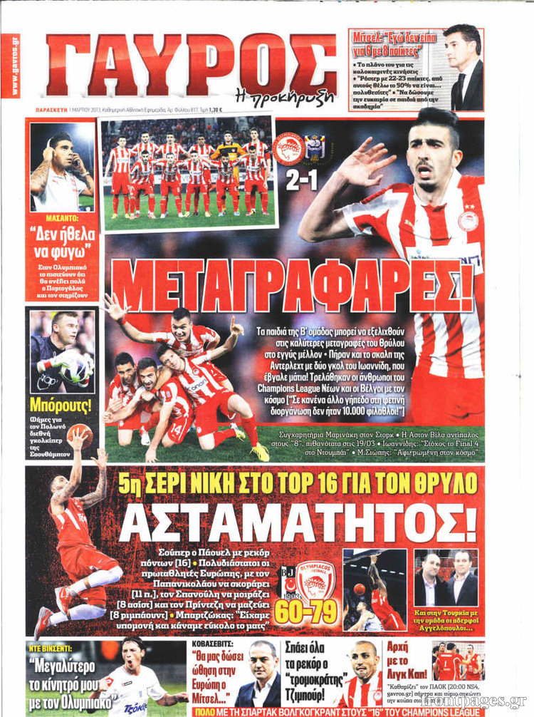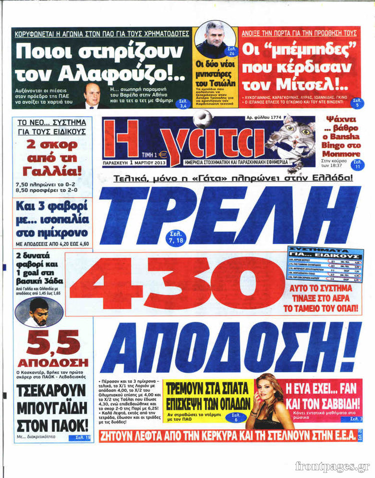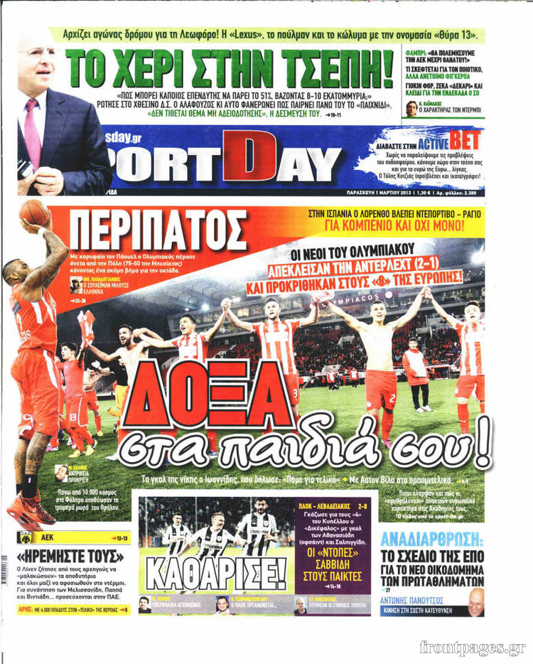 Οι αθλητικές εφημερίδες Enikos Newsroom 08:49, Παρασκευή 01 Μαρτίου 2013 Media Οι αθλητικές εφημερίδες Τα πρωτοσέλιδα των αθλητικών εφημερίδων. ΑΘΛΗΤΙΚΕΣ ΕΦΗΜΕΡΙΔΕΣ ΕΦΗΜΕΡΙΔΕΣ ΠΡΩΤΟΣΕΛΙΔΑ Μοιράσου το: σχολίασε κι εσύ (0 σχόλια) Ακολουθήστε το enikos.gr στο Google News και μάθετε πρώτοι όλες τις ειδήσεις Δείτε όλες τις τελευταίες ειδήσεις από την Ελλάδα και τον Κόσμο στο enikos.gr Ειδήσεις Ροή Ειδήσεων 5 λεπτά πριν Φοροδιαφυγή: Ποιοι φορολογούμενοι κινδυνεύουν να πληρώσουν «τσουχτερά» πρόστιμα 8 ώρες πριν Εκτός ευρωομάδας ΣΥΡΙΖΑ ο Νίκος Παππάς μετά την επίθεση στον δημοσιογράφο Νίκο Γιαννόπουλο – Η μήνυση και οι νέες δηλώσεις 9 ώρες πριν «Αγριεύουν» οι αγρότες: «Δεν συντρέχει λόγος συνάντησης με τον πρωθυπουργό» – Ώρα αποφάσεων στη σύσκεψη της Πέμπτης 9 ώρες πριν Κυψέλη: Χωρίς την οικογένειά της δίπλα της απολογήθηκε η 16χρονη – «Της είχε επιτεθεί κάποιος για να την βιάσει, φοβήθηκε και κυκλοφορούσε με μαχαίρι» 8 ώρες πριν Politico: Το πρόβλημα της Ευρώπης δεν είναι το Βέλγιο αλλά ο Ντόναλντ Τραμπ 1 ώρα πριν Καούρα: Το μπαχαρικό που είναι «εξίσου αποτελεσματικό» με την ομεπραζόλη, σύμφωνα με ειδικούς 2 ώρες πριν Τα ζώδια σήμερα, Πέμπτη 18 Δεκεμβρίου: Λέοντες, η καρδιά σας θέλει να εκφραστεί 8 ώρες πριν Μυστήριο με τεράστιες κυκλικές πέτρες 200 κιλών – Ανακαλύφθηκαν τυχαία κατά τη διάρκεια οδικών έργων και κανείς δεν ξέρει από πού προέρχονται 22 ώρες πριν 20 χρόνια τα Χριστούγεννα ξεκινούν στα Public με μεγάλη ποικιλία σε δώρα! 2 λεπτά πριν Καιρός: Ηλιοφάνεια σήμερα με παροδικές νεφώσεις – Αναλυτική πρόγνωση ανά περιοχή 5 λεπτά πριν Φοροδιαφυγή: Ποιοι φορολογούμενοι κινδυνεύουν να πληρώσουν «τσουχτερά» πρόστιμα 17 λεπτά πριν Εορτολόγιο: Ποιοι γιορτάζουν σήμερα 18 Δεκεμβρίου 29 λεπτά πριν Επιχειρήσεις: Έρχονται νέα μέτρα φορολογικών ελαφρύνσεων – Τα σχέδια για την προκαταβολή φόρου και το τέλος επιτηδεύματος 36 λεπτά πριν ΗΠΑ: Οριστική άρση κυρώσεων κατά της Συρίας – Ανοίγει ο δρόμος για επενδύσεις ENIKOS NETWORK Μπορείτε να εντοπίσετε το ποντικάκι που κρύβεται πίσω από όλα τα μανιτάρια; Μόνο όσοι έχουν τα μάτια γερακιού μπορούν να λύ... Το «λουλούδι σκαντζόχοιρος» που μπορεί να ενισχύσει το ανοσοποιητικό, να μειώσει τη φλεγμονή και να ρυθμίσει το σάκχαρο Φοροδιαφυγή: Ποιοι φορολογούμενοι κινδυνεύουν να πληρώσουν «τσουχτερά» πρόστιμα ΕΛΣΤΑΤ: Τι δείχνουν τα νέα στοιχεία για τις ηλεκτρονικές παραγγελίες των επιχειρήσεων Χαρτογραφώντας το «σημείο χωρίς επιστροφή»: Για πρώτη φορά αποκαλύπτεται με λεπτομέρεια το ακανθώδες όριο της ατμόσφαιρας τ... Η Google καταργεί τη λειτουργία «dark web report» – Πώς θα μπορούν οι χρήστες να διαγράφουν τα δεδομένα τους περισσότερα 05:48 , Πέμπτη 18 Δεκεμβρίου 2025 Οι οικονομικές εφημερίδες 18/12/2025 Διαβάστε τα πρωτοσέλιδα από τις οικονομικές εφημερίδες, σήμερα 18/12/2025. 05:43 , Πέμπτη 18 Δεκεμβρίου 2025 Οι αθλητικές εφημερίδες 18/12/2025 Διαβάστε τα πρωτοσέλιδα από τις αθλητικές εφημερίδες, σήμερα 18/12/2025. 05:38 , Πέμπτη 18 Δεκεμβρίου 2025 Οι πολιτικές εφημερίδες 18/12/2025 Διαβάστε τα πρωτοσέλιδα από τις πολιτικές εφημερίδες, σήμερα 18/12/2025. 05:22 , Πέμπτη 18 Δεκεμβρίου 2025 Το Ποντίκι σήμερα Πέμπτη 18/12/2025 Διαβάστε το πρωτοσέλιδο της εφημερίδας «Το Ποντίκι» σήμερα 18/12/2025. ΤΕΛΕΥΤΑΙΕΣ ΕΙΔΗΣΕΙΣ 2 λεπτά πριν Καιρός: Ηλιοφάνεια σήμερα με παροδικές νεφώσεις –... 5 λεπτά πριν Φοροδιαφυγή: Ποιοι φορολογούμενοι κινδυνεύουν να... 17 λεπτά πριν Εορτολόγιο: Ποιοι γιορτάζουν σήμερα 18 Δεκεμβρίου 29 λεπτά πριν Ε