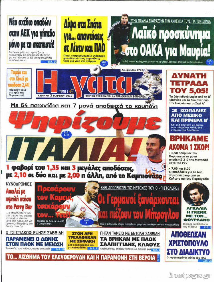 Oι αθλητικές εφημερίδες Enikos Newsroom 08:50, Κυριακή 03 Μαρτίου 2013 Media Oι αθλητικές εφημερίδες ΑΘΛΗΤΙΚΕΣ ΕΦΗΜΕΡΙΔΕΣ ΕΦΗΜΕΡΙΔΕΣ Μοιράσου το: σχολίασε κι εσύ (0 σχόλια) Ακολουθήστε το enikos.gr στο Google News και μάθετε πρώτοι όλες τις ειδήσεις Δείτε όλες τις τελευταίες ειδήσεις από την Ελλάδα και τον Κόσμο στο enikos.gr Ειδήσεις Ροή Ειδήσεων 3 ώρες πριν Ακίλα Σάλεχ: «Άκυρο» το τουρκολιβυκό μνημόνιο λέει ο πρόεδρος της λιβυκής Βουλής – Ανοίγει ο διάλογος με Ελλάδα, Αίγυπτο και Τουρκία 7 ώρες πριν Αγρότες: Την Τρίτη η απόφαση για διάλογο ή κλιμάκωση των κινητοποιήσεών τους – Πώς χαρακτηρίζουν τις ανακοινώσεις Τσιάρα και οι επόμενες κινήσεις 7 ώρες πριν Τραμπ για Ουκρανία: «Είμαστε πιο κοντά σε συμφωνία από ποτέ» – «Πολυεθνική δύναμη» προτείνουν οι Ευρωπαίοι 7 ώρες πριν Κυψέλη: Η 16χρονη που μαχαίρωσε την 14χρονη είχε συλληφθεί 3 φορές στο παρελθόν – Έβριζε καθηγητές, έβαζε φωτιές σε κάδους και εκβίαζε συμμαθητές της 7 ώρες πριν Τρομοκρατική επίθεση στο Σίδνεϊ: Θλίψη για τα 15 θύματα – Οργή στην εβραϊκή κοινότητα που προειδοποιούσε επί δύο χρόνια 7 ώρες πριν Επιστήμονες ίσως έλυσαν το μυστήριο γύρω από τα Χόμπιτ – Νέα έρευνα αποκαλύπτει πώς εξαφανίστηκαν 8 ώρες πριν Ύπνος: Η αρχαία μορφή άσκησης που αποδεικνύεται αποτελεσματική στην αντιμετώπιση της αϋπνίας, σύμφωνα με μελέτη 9 ώρες πριν Αριθμολογία: Ο τυχερός σας αριθμός, ανάλογα με τον μήνα γέννησής σας 10 ώρες πριν Πώς να μην μαραίνονται γρήγορα τα κομμένα λουλούδια: Το λάθος στην τοποθέτηση του βάζου που πρέπει να αποφεύγετε 8 λεπτά πριν Υψηλή χοληστερίνη: Γιατρός αποκαλύπτει δύο τρόπους για να την μειώσετε χωρίς φαρμακευτική αγωγή 15 λεπτά πριν Σαν σήμερα 16 Δεκεμβρίου: Τα σημαντικότερα γεγονότα της ημέρας 20 λεπτά πριν Οι οικονομικές εφημερίδες 16/12/2025 25 λεπτά πριν Οι αθλητικές εφημερίδες 16/12/2025 30 λεπτά πριν Οι πολιτικές εφημερίδες 16/12/2025 ENIKOS NETWORK Πότε το χρόνιο ροχαλητό να αποτελέσει ένδειξη κινδύνου για την καρδιά; Τι λένε οι ειδικοί Μάριος Θεμιστοκλέους: Το ΕΣΥ ενισχύεται, εκσυγχρονίζεται, αλλάζει ΕΒΕΠ για αγροτικές κινητοποιήσεις: Κάθε επιπλέον εβδομάδα προσθέτει περίπου 200 εκατ. ευρώ ζημιά Τι προβλέπει το νομοσχέδιο του υπουργείου Εθνικής Άμυνας – Oι αλλαγές στους μισθούς Σύγχρονος Νοστράδαμος: Προειδοποιεί για «μεγάλο γεγονός» τους επόμενους μήνες που θα συγκλονίσει τη Βρετανία και τον κόσμο Τεστ παρατηρητικότητας: Μπορείτε να βρείτε τις 3 διαφορές στις εικόνες με έναν πιγκουίνο σε 14 δευτερόλεπτα περισσότερα 05:48 , Τρίτη 16 Δεκεμβρίου 2025 Οι οικονομικές εφημερίδες 16/12/2025 Διαβάστε τα πρωτοσέλιδα από τις οικονομικές εφημερίδες, σήμερα 16/12/2025. 05:43 , Τρίτη 16 Δεκεμβρίου 2025 Οι αθλητικές εφημερίδες 16/12/2025 Διαβάστε τα πρωτοσέλιδα από τις αθλητικές εφημερίδες, σήμερα 16/12/2025. 05:38 , Τρίτη 16 Δεκεμβρίου 2025 Οι πολιτικές εφημερίδες 16/12/2025 Διαβάστε τα πρωτοσέλιδα από τις πολιτικές εφημερίδες, σήμερα 16/12/2025. 21:35 , Δευτέρα 15 Δεκεμβρίου 2025 Το Σπίτι Δίπλα Στο Ποτάμι: Η Ιουλία και ο Φωκάς μετακομίζουν στη Ρόδο – Δύο νέοι χαρακτήρες μπαίνουν στη σειρά Δύο νέοι, κομβικοί χαρακτήρες κάνουν την εμφάνισή τους αυτή την εβδομάδα στην αγαπημένη σειρά ... ΤΕΛΕΥΤΑΙΕΣ ΕΙΔΗΣΕΙΣ 8 λεπτά πριν Υψηλή χοληστερίνη: Γιατρός αποκαλύπτει δύο τρόπους... 15 λεπτά πριν Σαν σήμερα 16 Δεκεμβρίου: Τα σημαντικότερα γεγονότα... 20 λεπτά πριν Οι οικονομικές εφημερίδες 16/12/2025 25 λεπτά πριν Οι αθλητικές εφημερίδες 16/12/2025 30 λεπτά πριν Οι πολιτικές εφημερίδες 16/12/2025 38 λεπτ
