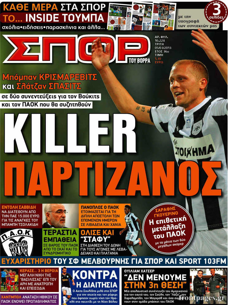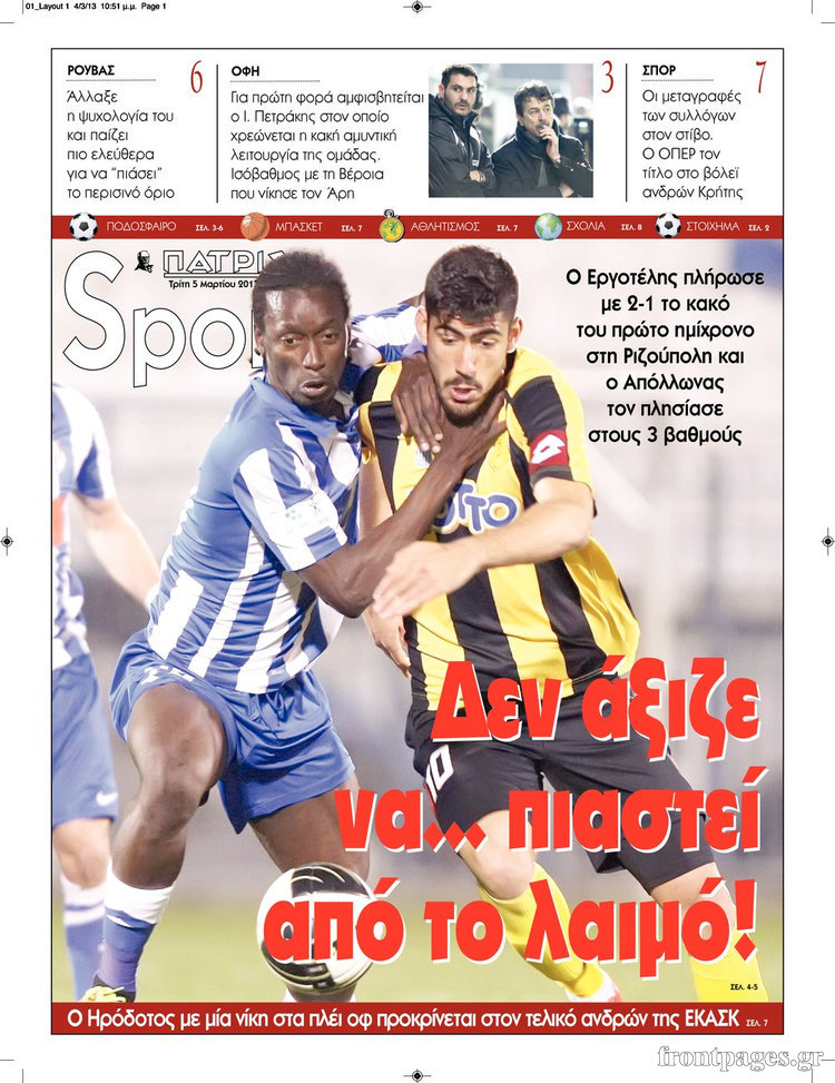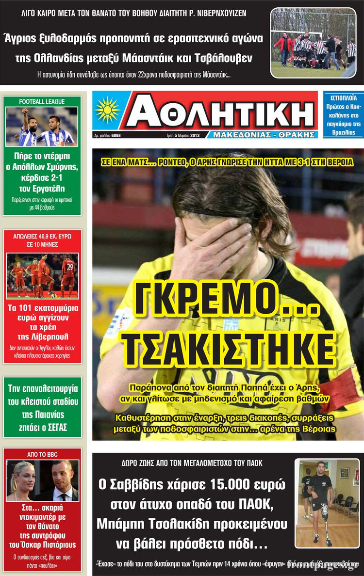 Οι αθλητικές εφημερίδες Enikos Newsroom 08:56, Τρίτη 05 Μαρτίου 2013 Media Οι αθλητικές εφημερίδες ΑΘΛΗΤΙΚΑ ΑΘΛΗΤΙΚΕΣ ΕΦΗΜΕΡΙΔΕΣ ΕΦΗΜΕΡΙΔΕΣ ΠΡΩΤΟΣΕΛΙΔΑ Μοιράσου το: σχολίασε κι εσύ (0 σχόλια) Ακολουθήστε το enikos.gr στο Google News και μάθετε πρώτοι όλες τις ειδήσεις Δείτε όλες τις τελευταίες ειδήσεις από την Ελλάδα και τον Κόσμο στο enikos.gr Ειδήσεις Ροή Ειδήσεων 3 ώρες πριν Αυξάνουν την πίεση προς την κυβέρνηση οι αγρότες: Κλείνουν παρακαμπτήριους και ανοίγουν διόδια – Τι θα γίνει τις γιορτές 2 ώρες πριν ΟΠΕΚΕΠΕ: Προφυλακιστέος ο φερόμενος αρχηγός και ο λογιστής της εγκληματικής οργάνωσης 3 ώρες πριν Φοινικούντα: Το Σάββατο απολογείται ο 30χρονος γιος γνωστού επιχειρηματία της Πλάκας που παραδόθηκε – Όσα είπε στους αστυνομικούς και ο ρόλος του στο έγκλημα 2 ώρες πριν Μπορεί ο Μαδούρο να αντέξει τον αποκλεισμό του Τραμπ; Τι θα χρειαστεί η Ουάσινγκτον για να τον ανατρέψει 4 ώρες πριν Πρίγκιπας Ουίλιαμ – Κέιτ: Η νέα οικογενειακή φωτογραφία για τις Χριστουγεννιάτικες κάρτες του 2025 4 ώρες πριν Ύπνος: Η απλή βραδινή ρουτίνα για να προστατεύσετε τα μαλλιά σας από το κρύο κατά τη διάρκεια του χειμώνα 5 ώρες πριν Manifesting: Πώς να συναντήσετε τον σύντροφο της ζωής σας, ανάλογα με τον μήνα γέννησής σας 2 ημέρες πριν 20 χρόνια τα Χριστούγεννα ξεκινούν στα Public με μεγάλη ποικιλία σε δώρα! 3 ώρες πριν Αρχαιολόγοι ανακάλυψαν ρωμαϊκά τεχνουργήματα από μια πόλη που δεν υπήρξε ποτέ – Τα τρία εντυπωσιακά κτίρια και ο αμφορέας με τις… σαρδέλες 7 λεπτά πριν ΟΗΕ: Την εκλογή του νέου ύπατου αρμοστή για τους Πρόσφυγες Μπαρχάμ Άχμεντ Σαλίχ χαιρέτησε ο Αντόνιο Γκουτέρες 12 λεπτά πριν Σύνοδος Κορυφής στις Βρυξέλλες: Ακόμη πιο κοντά σε διέξοδο για τη χρηματοδότηση της Ουκρανίας 20 λεπτά πριν ΟΗΕ: Iστορική επίσκεψη του Συμβουλίου Ασφαλείας στη Δαμασκό – Mήνυμα Ελλάδας για συμπερίληψη και λογοδοσία 27 λεπτά πριν Νέος πρέσβης της Μεγάλης Βρετανίας στις ΗΠΑ ο Κρίστιαν Τέρνερ 31 λεπτά πριν Conference League: Με Νόα, Ντρίτα, Άλκμααρ ή Τσέλιε στους «16» η ΑΕΚ ENIKOS NETWORK Σε περίοδο αυξημένης δραστηριότητας η γρίπη στην Ελλάδα-Μέτρα προστασίας από τον ΕΟΔΥ Σκέφτεστε συνέχεια συζητήσεις που έχετε κάνει; Τι σημαίνει αυτό, σύμφωνα με ειδικό Στεγαστικό: Τι λέει η ΠΟΜΙΔΑ για τα νέα μέτρα που ανακοίνωσε ο Κυριάκος Μητσοτάκης Λαγκάρντ: Αισιόδοξη για την ανάπτυξη της Ευρωζώνης, αβέβαιη για τον πληθωρισμό Χαρτογραφώντας το «σημείο χωρίς επιστροφή»: Για πρώτη φορά αποκαλύπτεται με λεπτομέρεια το ακανθώδες όριο της ατμόσφαιρας τ... Η Google καταργεί τη λειτουργία «dark web report» – Πώς θα μπορούν οι χρήστες να διαγράφουν τα δεδομένα τους περισσότερα 17:45 , Πέμπτη 18 Δεκεμβρίου 2025 ROUK ZOUK: Εορταστικό επεισόδιο με καλεσμένους τους πρωταγωνιστές του «Γιατί ρε πατέρα» Το Σάββατο 20 Δεκεμβρίου στις 21:00, η Ζέτα Μακρυπούλια υποδέχεται εκλεκτούς ηθοποιούς που όλο... 17:20 , Πέμπτη 18 Δεκεμβρίου 2025 Άγιος έρωτας: Η Χριστίνα εξομολογείται στον πατέρα Νικόλαο, απόψε στις 21:00 στον Alpha Η Νότα αποφασίζει να εκδικηθεί τον Πέτρο και τον Στέφανο, για χάρη του Λούη, όμως τα πράγματα ... 16:50 , Πέμπτη 18 Δεκεμβρίου 2025 Να μ’ αγαπάς: Ζωή και Φωτεινή συμφιλιώνονται ως μάνα με κόρη, απόψε στις 20:00 Η ταυτότητα του Άγγελου αποκαλύπτεται στο νέο επεισόδιο της σειράς “Να μ’ αγαπάς... 15:52 , Πέμπτη 18 Δεκεμβρίου 2025 Το Σπίτι Δίπλα Στο Ποτάμι: Το καθηλωτικό τελευταίο επεισόδιο για το 2025 απόψε στις 22:30 Καθηλώνει το σημερινό επεισόδιο της σειράς “Το Σπίτι Δίπλα Στο Ποτάμι” που έρχεται...
