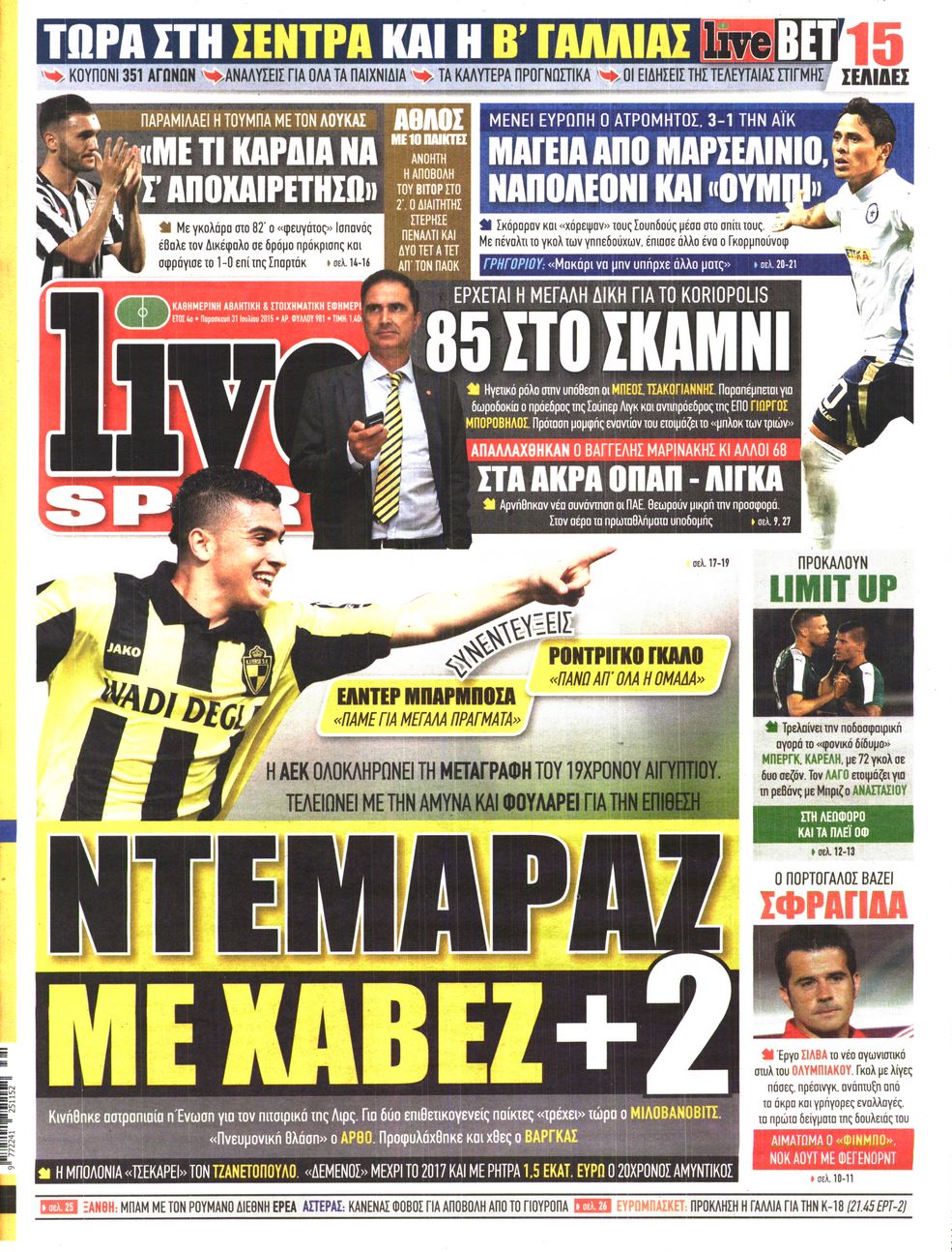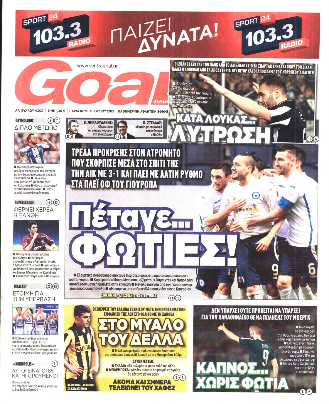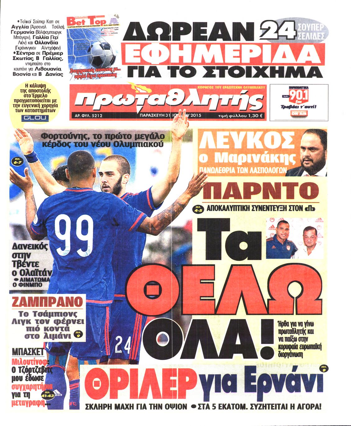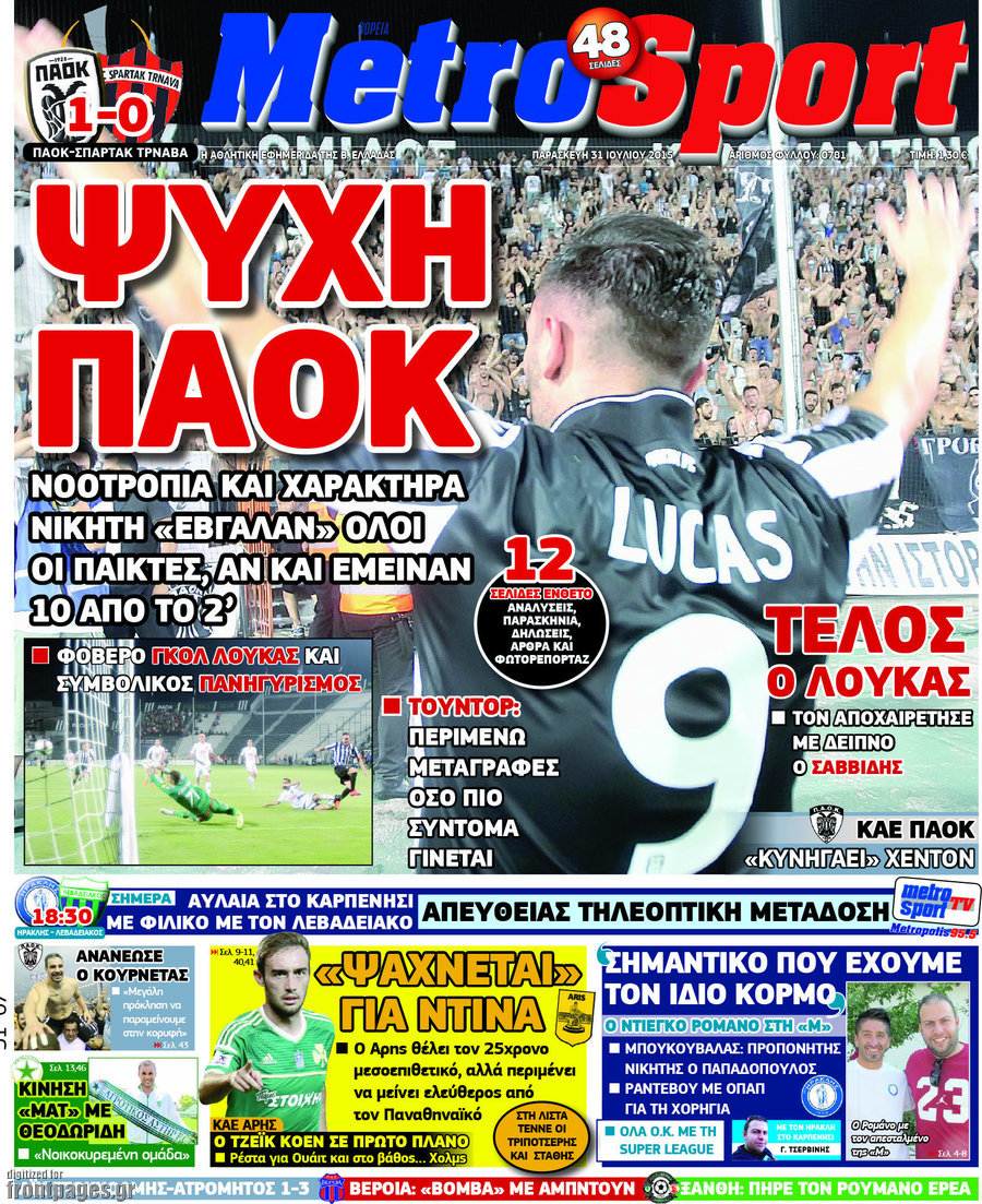 Οι αθλητικές εφημερίδες 31/7/2015 Enikos Newsroom 07:50, Παρασκευή 31 Ιουλίου 2015 Media Διαβάστε τα σημερινά πρωτοσέλιδα των αθλητικών εφημερίδων. ΑΘΛΗΤΙΚΕΣ ΕΦΗΜΕΡΙΔΕΣ ΕΦΗΜΕΡΙΔΕΣ ΠΡΩΤΟΣΕΛΙΔΑ Μοιράσου το: σχολίασε κι εσύ (0 σχόλια) Ακολουθήστε το enikos.gr στο Google News και μάθετε πρώτοι όλες τις ειδήσεις Δείτε όλες τις τελευταίες ειδήσεις από την Ελλάδα και τον Κόσμο στο enikos.gr Ειδήσεις Ροή Ειδήσεων 4 ώρες πριν Μεσόγειος: Η διαδρομή του ρωσικού τάνκερ «Qendil» και η στοχευμένη επίθεση της Ουκρανίας με drone – Ο Πούτιν προειδοποίησε για αντίποινα 45 λεπτά πριν Αγρότες: Έκλεισαν για μία ώρα την παρακαμπτήρια της Ιόνιας Οδού στη θέση Χαλίκι 2 ώρες πριν Εμπλοκή και αερομαχίες με οπλισμένα τουρκικά F-16 στο Αιγαίο 2 ώρες πριν Πούτιν: «Ναι, είμαι ερωτευμένος» – Βίντεο από τη σπάνια προσωπική παραδοχή του 49 λεπτά πριν Ανδρέας Λυκουρέντζος: Υπέβαλε την παραίτησή του ο πρόεδρος του ΕΛΓΑ, αλλά δεν έγινε δεκτή – Όλο το παρασκήνιο 59 λεπτά πριν Αριθμολογία: Οι άνθρωποι που έχουν γεννηθεί αυτές τις 4 ημερομηνίες, συχνά παρεξηγούνται – «Η καλοσύνη τους κρύβει τεράστια δύναμη» 3 ώρες πριν Μήπως έχετε χάσει τον εαυτό σας στη σχέση σας; 7 «αθόρυβες» υποχωρήσεις που μάλλον κάνατε, χωρίς να το συνειδητοποιήσετε 2 ώρες πριν Ξεχάστε το καθάρισμα το Σαββατοκύριακο: Ο «κανόνας των 20 λεπτών» που θα σας λύσει τα χέρια 5 ώρες πριν Κουίζ για την παλιά Αθήνα: Αναγνωρίζετε την περιοχή; Έχετε περάσει 100% από εκεί 5 λεπτά πριν ΕΕ: «Κάποια στιγμή θα χρησιμοποιήσουμε τα ρωσικά περιουσιακά στοιχεία» δήλωσε ο πρόεδρος του ΕΛΚ 8 λεπτά πριν Conference League: Καλύτερη επίθεση η ΑΕΚ στη διοργάνωση και 2η σε προσπάθειες στην εστία – Ξεχωρίζουν Πινέδα, Ελίασον και Ρότα 10 λεπτά πριν Έγκυος η Άννα Κορακάκη: «Η οικογένειά μας μεγαλώνει…» – Η αποκάλυψη για το φύλο του μωρού 17 λεπτά πριν Τραγωδία στο Βελεστίνο: Πέθανε ο αντιδήμαρχος Γιάννης Παπαϊωάννου 21 λεπτά πριν Ολυμπιακός – Βιλερμπάν: Μάτωσε στο πρόσωπο ο Παπανικολάου έπειτα από αγκωνιά του Βοτιέ – ΦΩΤΟ ENIKOS NETWORK Το ΕΚΑΒ τιμήθηκε από την Ακαδημία Αθηνών για τα 40 χρόνια προσφοράς του Έχετε πραγματικά μεγάλη καρδιά; 10 χαρακτηριστικά όσων έχουν καλοσύνη Έρχονται νέες προσλήψεις σε Δήμο – Όλες οι λεπτομέρειες Επίδομα παιδιού: Πότε ανοίγει ξανά η πλατφόρμα για τις αιτήσεις Χαρτογραφώντας το «σημείο χωρίς επιστροφή»: Για πρώτη φορά αποκαλύπτεται με λεπτομέρεια το ακανθώδες όριο της ατμόσφαιρας τ... Η Google καταργεί τη λειτουργία «dark web report» – Πώς θα μπορούν οι χρήστες να διαγράφουν τα δεδομένα τους περισσότερα 20:37 , Παρασκευή 19 Δεκεμβρίου 2025 Don’t Forget The Lyrics: Η Έλλη Κοκκίνου υποδέχεται 4 παίκτες που θα κάνουν τα πάντα για να μη χάσουν ούτε… μισή λέξη από τους στίχους Το «Don’t Forget The Lyrics» επιστρέφει απόψε, Παρασκευή 19 Δεκεμβρίου, στις 21:00 με νέο επει... 19:31 , Παρασκευή 19 Δεκεμβρίου 2025 GNTM: Απόψε ο μεγάλος τελικός για τους 4 φιναλίστ Έπειτα από μήνες γεμάτους μόδα, δημιουργία και έντονες αναμετρήσεις, το GNTM 2025 κορυφώνεται,... 18:11 , Παρασκευή 19 Δεκεμβρίου 2025 Το σόι σου: Ο Άρης έρχεται στην Ελλάδα για τις γιορτές των Χριστουγέννων – Τι θα δούμε στο αποψινό εορταστικό επεισόδιο Ένα απολαυστικό, εορταστικό επεισόδιο της σειράς “Το σόι σου”, γεμάτο ευτράπελα αλ... 15:15 , Παρασκευή 19 Δεκεμβρίου 2025 Την Κυριακή με τη Realnews: Ό,τι και αν αγοράσεις, σκανάρεις και κερδίζεις! Την Κυριακή με τη Realnews: Ό,τι και αν αγοράσεις, σκανάρεις και κερδίζεις! Με το PADU app, το... ΤΕΛΕΥΤΑΙΕΣ ΕΙΔΗΣΕΙΣ 5 λεπτά πριν ΕΕ: «Κάποια στιγμή