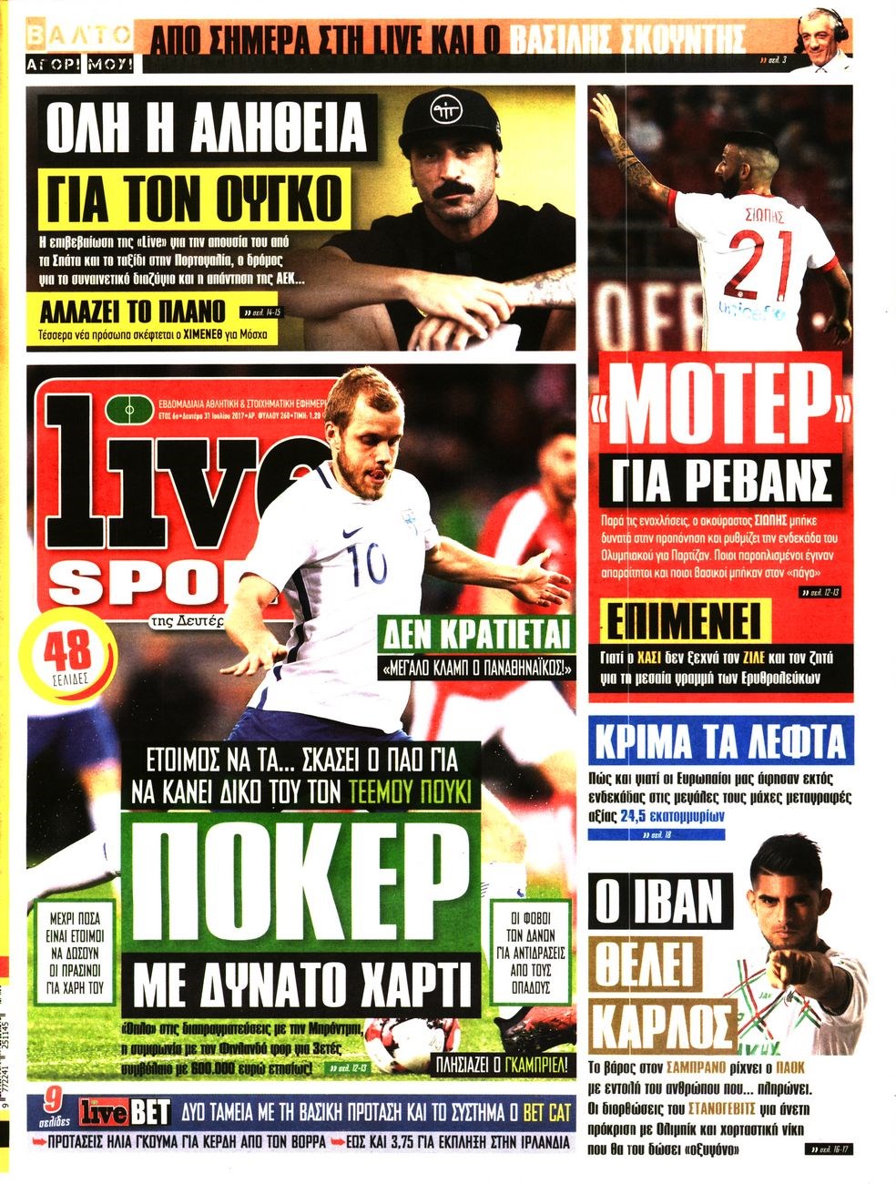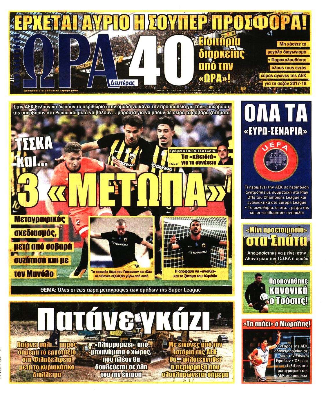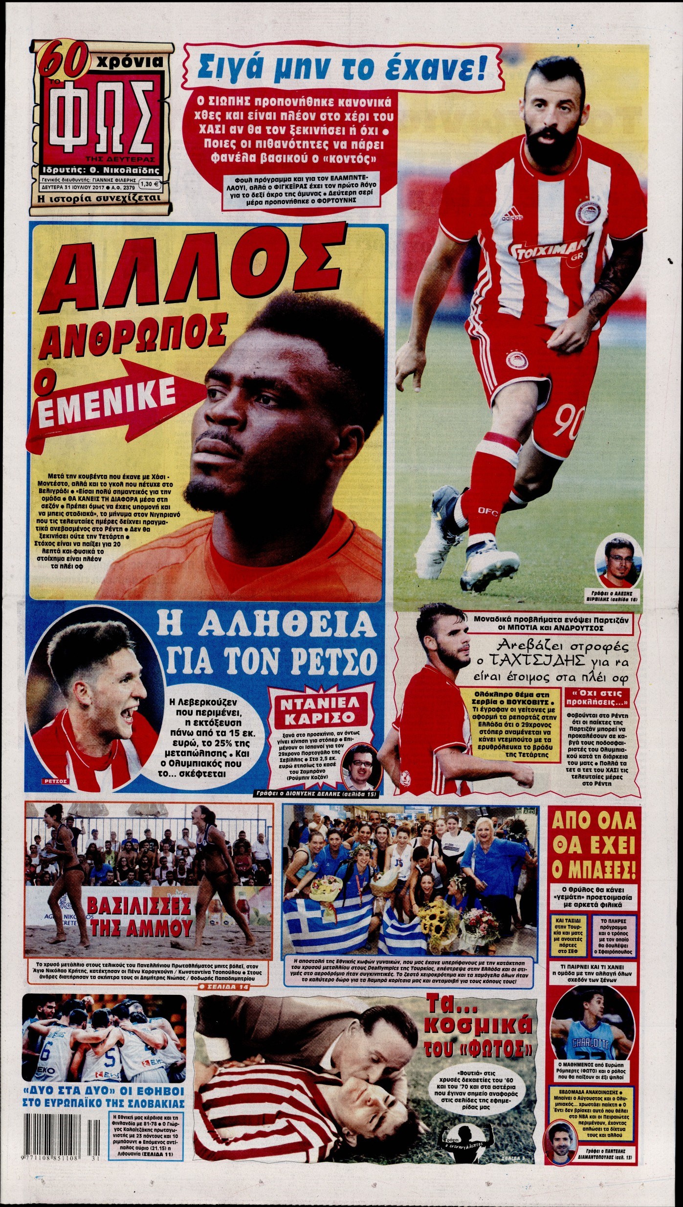 Οι αθλητικές εφημερίδες 31/7/2017 Enikos Newsroom 07:08, Δευτέρα 31 Ιουλίου 2017 Media Διαβάστε τα σημερινά πρωτοσέλιδα των αθλητικών εφημερίδων: ΑΘΛΗΤΙΚΕΣ ΕΦΗΜΕΡΙΔΕΣ ΠΡΩΤΟΣΕΛΙΔΑ Μοιράσου το: σχολίασε κι εσύ (0 σχόλια) Ακολουθήστε το enikos.gr στο Google News και μάθετε πρώτοι όλες τις ειδήσεις Δείτε όλες τις τελευταίες ειδήσεις από την Ελλάδα και τον Κόσμο στο enikos.gr Ειδήσεις Ροή Ειδήσεων 4 ώρες πριν Από το Ορμένιο ως τα Μάλγαρα κι από τη Σιάτιστα μέχρι τη Νίκαια: Μπλόκα σε όλη την Ελλάδα – Το Σάββατο ανοίγουν τα διόδια οι αγρότες 1 ώρα πριν Εμπλοκή και αερομαχίες με οπλισμένα τουρκικά F-16 στο Αιγαίο 3 ώρες πριν Αττική: Θρίλερ με νεκρό βρέφος 5 μηνών – Κοιμόταν στο ίδιο κρεβάτι με τους γονείς του 59 λεπτά πριν Πούτιν: «Ναι, είμαι ερωτευμένος» – Βίντεο από τη σπάνια προσωπική παραδοχή του 3 ώρες πριν Μεσόγειος: Η διαδρομή του ρωσικού τάνκερ «Qendil» και η στοχευμένη επίθεση της Ουκρανίας με drone – Ο Πούτιν προειδοποίησε για αντίποινα 5 ώρες πριν Τα 5 ζώδια που ευνοούνται στην ερωτική ζωή τους την επόμενη εβδομάδα – «Η ενέργεια του Αιγόκερου φέρνει αγάπη και σταθερότητα» 6 ώρες πριν Αυτό το έξυπνο μαθηματικό κόλπο θα μπορούσε να αλλάξει τον τρόπο με τον οποίο οι επιστήμονες μελετούν τους σεισμούς 2 ώρες πριν Μήπως έχετε χάσει τον εαυτό σας στη σχέση σας; 7 «αθόρυβες» υποχωρήσεις που μάλλον κάνατε, χωρίς να το συνειδητοποιήσετε 4 ώρες πριν Κουίζ για την παλιά Αθήνα: Αναγνωρίζετε την περιοχή; Έχετε περάσει 100% από εκεί 5 λεπτά πριν Μπαράκ Ομπάμα: Τα βιβλία, οι ταινίες και τα τραγούδια που ξεχώρισε το 2025 – Πλήρης λίστα 10 λεπτά πριν Don’t Forget The Lyrics: Η Έλλη Κοκκίνου υποδέχεται 4 παίκτες που θα κάνουν τα πάντα για να μη χάσουν ούτε… μισή λέξη από τους στίχους 16 λεπτά πριν Πλεύρης στον ΑΝΤ1: Η βασική πολιτική που ψηφίστηκε από τους υπουργούς Μετανάστευσης είναι η δημιουργία κέντρων κράτησης μεταναστών στην Αφρική – ΒΙΝΤΕΟ 21 λεπτά πριν Η εξομολόγηση της Νίκης Σερέτη: «Δεν κρύβω ότι ήταν πάρα πολύ δύσκολο όλο αυτό που βίωσα» 26 λεπτά πριν Αγρότες: Κλειστό ξανά το ρεύμα εισόδου στα Μάλγαρα – Άνοιξαν τον κόμβο της Χαλκηδόνας ENIKOS NETWORK Έχετε πραγματικά μεγάλη καρδιά; 10 χαρακτηριστικά όσων έχουν καλοσύνη «Η σούπερ» γρίπη εξαπλώνεται στην Ευρώπη-Στοιχεία από το ECDC για την αποτελεσματικότητα του εμβολίου Επίδομα παιδιού: Πότε ανοίγει ξανά η πλατφόρμα για τις αιτήσεις Προκήρυξη ΑΣΕΠ για 397 μόνιμες προσλήψεις στο Δημόσιο: Βγήκαν τα προσωρινά αποτελέσματα – Πότε αρχίζει η υποβολή ενστάσεων Χαρτογραφώντας το «σημείο χωρίς επιστροφή»: Για πρώτη φορά αποκαλύπτεται με λεπτομέρεια το ακανθώδες όριο της ατμόσφαιρας τ... Η Google καταργεί τη λειτουργία «dark web report» – Πώς θα μπορούν οι χρήστες να διαγράφουν τα δεδομένα τους περισσότερα 20:37 , Παρασκευή 19 Δεκεμβρίου 2025 Don’t Forget The Lyrics: Η Έλλη Κοκκίνου υποδέχεται 4 παίκτες που θα κάνουν τα πάντα για να μη χάσουν ούτε… μισή λέξη από τους στίχους Το «Don’t Forget The Lyrics» επιστρέφει απόψε, Παρασκευή 19 Δεκεμβρίου, στις 21:00 με νέο επει... 19:31 , Παρασκευή 19 Δεκεμβρίου 2025 GNTM: Απόψε ο μεγάλος τελικός για τους 4 φιναλίστ Έπειτα από μήνες γεμάτους μόδα, δημιουργία και έντονες αναμετρήσεις, το GNTM 2025 κορυφώνεται,... 18:11 , Παρασκευή 19 Δεκεμβρίου 2025 Το σόι σου: Ο Άρης έρχεται στην Ελλάδα για τις γιορτές των Χριστουγέννων – Τι θα δούμε στο αποψινό εορταστικό επεισόδιο Ένα απολαυστικό, εορταστικό επεισόδιο της σειράς “Το σόι σου”, γεμάτο ευτράπελα αλ... 15:15 , Παρασκευή 19 Δεκεμβρίου 2025 Την Κυρια