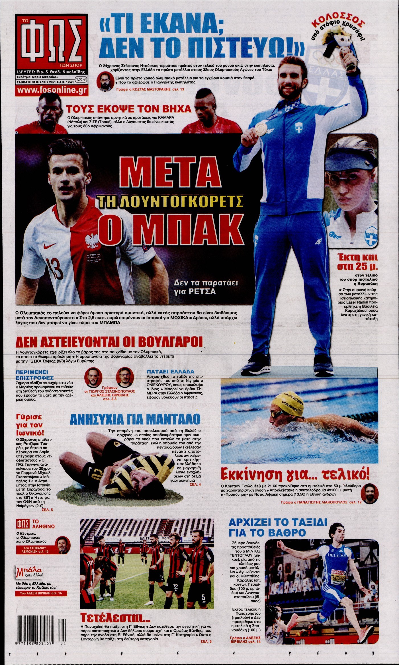 Οι αθλητικές εφημερίδες 31/7/2021 Διονύσης Νίκκας 07:55, Σάββατο 31 Ιουλίου 2021 Media Διαβάστε τα πρωτοσέλιδα των αθλητικών εφημερίδων… ΑΘΛΗΤΙΚΕΣ ΕΦΗΜΕΡΙΔΕΣ Μοιράσου το: σχολίασε κι εσύ (0 σχόλια) Ακολουθήστε το enikos.gr στο Google News και μάθετε πρώτοι όλες τις ειδήσεις Δείτε όλες τις τελευταίες ειδήσεις από την Ελλάδα και τον Κόσμο στο enikos.gr Ειδήσεις Ροή Ειδήσεων 1 ώρα πριν Μεσόγειος: Η διαδρομή του ρωσικού τάνκερ «Qendil» και η στοχευμένη επίθεση της Ουκρανίας με drone – Ο Πούτιν προειδοποίησε για αντίποινα 1 ώρα πριν Αττική: Θρίλερ με νεκρό βρέφος 5 μηνών – Κοιμόταν στο ίδιο κρεβάτι με τους γονείς του 2 ώρες πριν Από το Ορμένιο ως τα Μάλγαρα κι από τη Σιάτιστα μέχρι τη Νίκαια: Μπλόκα σε όλη την Ελλάδα – Το Σάββατο ανοίγουν τα διόδια οι αγρότες 2 ώρες πριν «Έλληνας Εσκομπάρ»: Φωτογραφίες με τους 4 τόνους κοκαΐνης που κατασχέθηκαν από το σκάφος «Ουρανία» 4 ώρες πριν Πούτιν: Σαρκαστικά μηνύματα, παράπονα και απρόοπτα στη συνέντευξη Τύπου – Η πρόταση γάμου on air και οι ερωτήσεις για τα αγγούρια και τους… εξωγήινους 3 ώρες πριν Τα 5 ζώδια που ευνοούνται στην ερωτική ζωή τους την επόμενη εβδομάδα – «Η ενέργεια του Αιγόκερου φέρνει αγάπη και σταθερότητα» 7 ώρες πριν Ειδικός μοιράζεται 6 κόλπα για να διατηρείστε σε φόρμα με πάνω από 40 ώρες εργασίας την εβδομάδα: «Προπονηθείτε πριν από τη δουλειά, όχι μετά» 4 ώρες πριν Αυτό το έξυπνο μαθηματικό κόλπο θα μπορούσε να αλλάξει τον τρόπο με τον οποίο οι επιστήμονες μελετούν τους σεισμούς 2 ώρες πριν Κουίζ για την παλιά Αθήνα: Αναγνωρίζετε την περιοχή; Έχετε περάσει 100% από εκεί 7 λεπτά πριν ΗΠΑ: Νέος γύρος συνομιλιών στο Μαϊάμι – Σήμερα συνάντηση Γουίτκοφ με Ουκρανούς και Ευρωπαίους διαπραγματευτές, το Σαββατοκύριακο με Ρώσους αξιωματούχους 12 λεπτά πριν Νέα σειρά γραμματοσήμων «ΕΛΠΙΔΑ-Μαριάννα Β. Βαρδινογιάννη» 16 λεπτά πριν Ιταλία: Με εισιτήριο από την 1η Φεβρουαρίου 2026 η πρόσβαση στη Φοντάνα ντι Τρέβι – Πόσο θα κοστίζει 24 λεπτά πριν Μήπως έχετε χάσει τον εαυτό σας στη σχέση σας; 7 «αθόρυβες» υποχωρήσεις που μάλλον κάνατε, χωρίς να το συνειδητοποιήσετε 30 λεπτά πριν Λάρισα: Ασθενοφόρο έπεσε πάνω σε κλούβα της ΕΛ.ΑΣ στον Πλατύκαμπο – Τραυματίστηκε ο συνοδηγός – ΒΙΝΤΕΟ ENIKOS NETWORK «Η σούπερ» γρίπη εξαπλώνεται στην Ευρώπη-Στοιχεία από το ECDC για την αποτελεσματικότητα του εμβολίου ΕΛΣΤΑΤ: Αύξηση κατά 1,7% των επαγγελματιών υγείας το 2024 Προκήρυξη ΑΣΕΠ για 397 μόνιμες προσλήψεις στο Δημόσιο: Βγήκαν τα προσωρινά αποτελέσματα – Πότε αρχίζει η υποβολή ενστάσεων Η απάντηση της κυβέρνησης στα αιτήματα των αγροτών: 16 έχουν ικανοποιηθεί, 4 βρίσκονται υπό επεξεργασία και 7 δεν είναι εφι... Χαρτογραφώντας το «σημείο χωρίς επιστροφή»: Για πρώτη φορά αποκαλύπτεται με λεπτομέρεια το ακανθώδες όριο της ατμόσφαιρας τ... Η Google καταργεί τη λειτουργία «dark web report» – Πώς θα μπορούν οι χρήστες να διαγράφουν τα δεδομένα τους περισσότερα 18:11 , Παρασκευή 19 Δεκεμβρίου 2025 Το σόι σου: Ο Άρης έρχεται στην Ελλάδα για τις γιορτές των Χριστουγέννων – Τι θα δούμε στο αποψινό εορταστικό επεισόδιο Ένα απολαυστικό, εορταστικό επεισόδιο της σειράς “Το σόι σου”, γεμάτο ευτράπελα αλ... 15:15 , Παρασκευή 19 Δεκεμβρίου 2025 Την Κυριακή με τη Realnews: Ό,τι και αν αγοράσεις, σκανάρεις και κερδίζεις! Την Κυριακή με τη Realnews: Ό,τι και αν αγοράσεις, σκανάρεις και κερδίζεις! Με το PADU app, το... 08:00 , Παρασκευή 19 Δεκεμβρίου 2025 Την Κυριακή με τη Realnews: Δωροεπιταγή 10€ Δωροεπιταγή αξίας 10€ για αγορές άνω