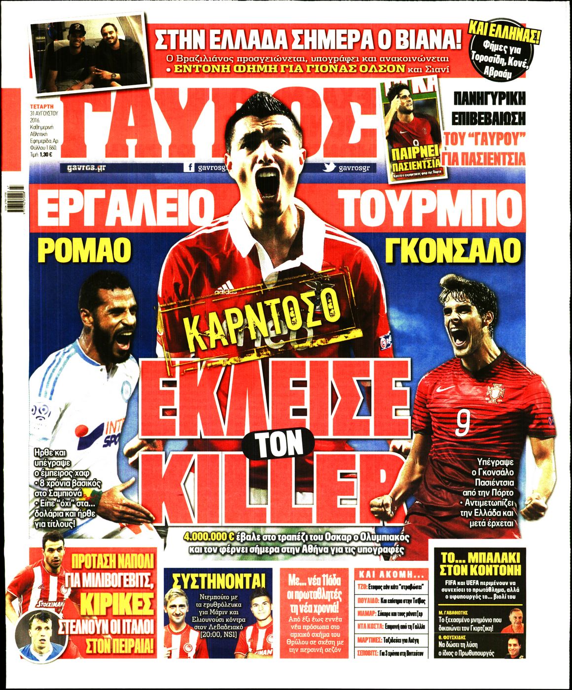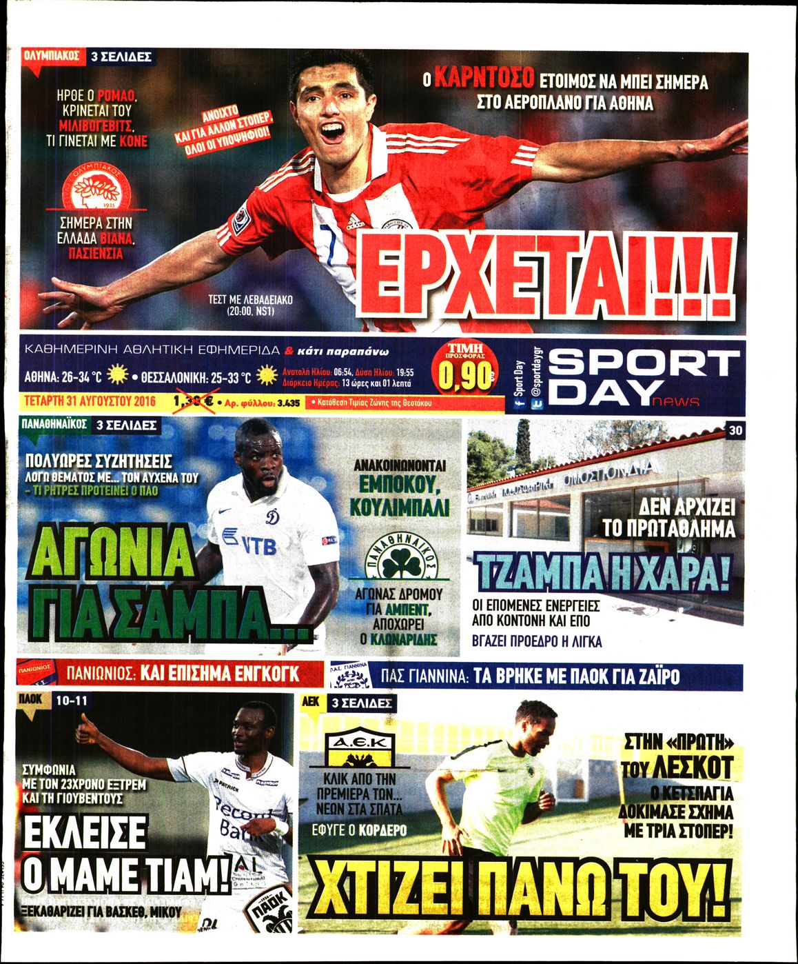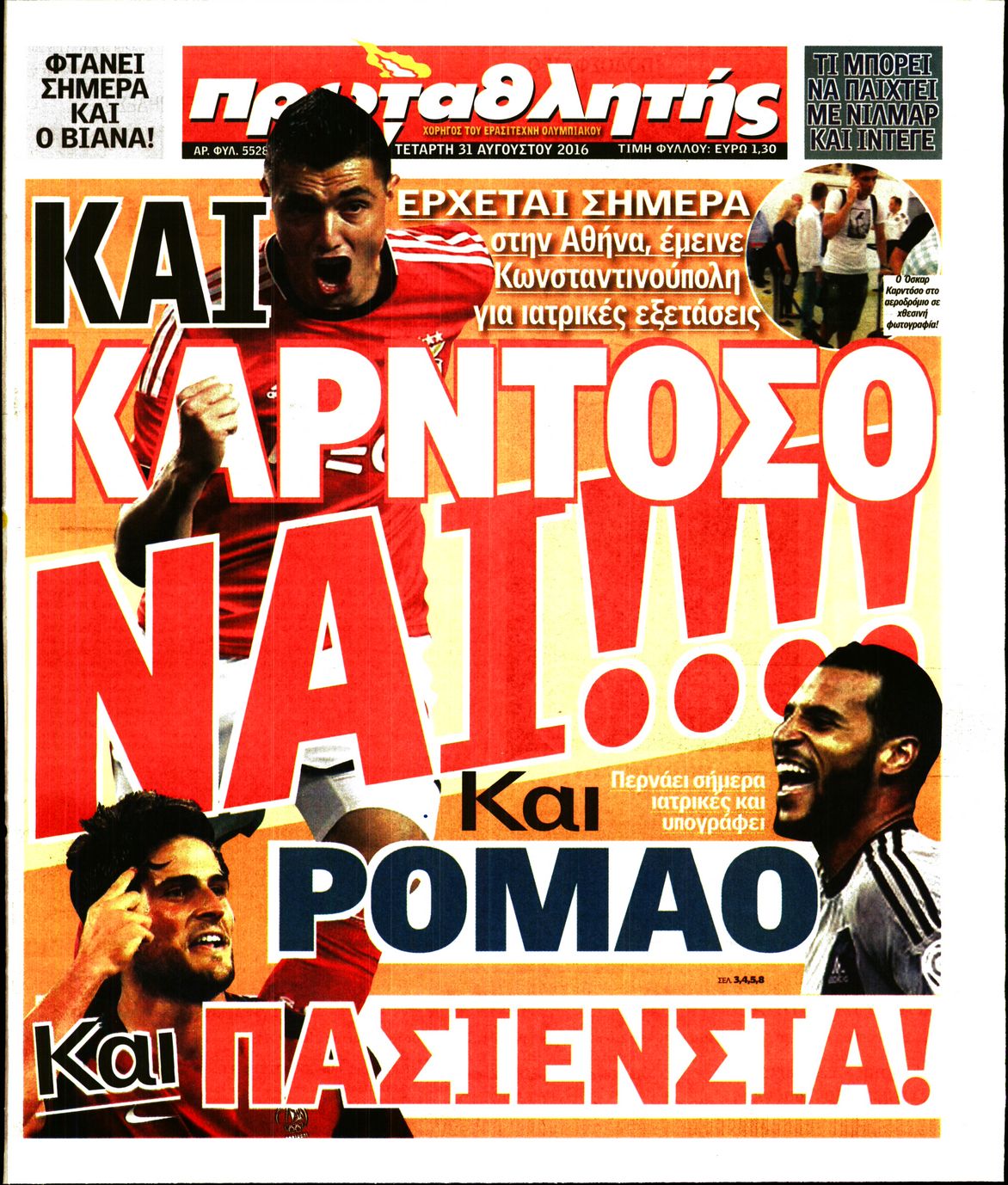 Oι αθλητικές εφημερίδες 31/8/2016 Enikos Newsroom 04:59, Τετάρτη 31 Αυγούστου 2016 Media Διαβάστε τα σημερινά πρωτοσέλιδα των αθλητικών εφημερίδων: ΑΘΛΗΤΙΚΕΣ ΕΦΗΜΕΡΙΔΕΣ ΠΡΩΤΟΣΕΛΙΔΑ Μοιράσου το: σχολίασε κι εσύ (0 σχόλια) Ακολουθήστε το enikos.gr στο Google News και μάθετε πρώτοι όλες τις ειδήσεις Δείτε όλες τις τελευταίες ειδήσεις από την Ελλάδα και τον Κόσμο στο enikos.gr Ειδήσεις Ροή Ειδήσεων 3 ώρες πριν Η Ουκρανία χτύπησε τάνκερ του σκιώδους στόλου της Ρωσίας στη Μεσόγειο – Έπλεε νότια της Κρήτης 1 ώρα πριν Πούτιν: Σαρκαστικά μηνύματα, παράπονα και απρόοπτα στη συνέντευξη Τύπου – Η πρόταση γάμου on air και οι ερωτήσεις για τα αγγούρια και τους… εξωγήινους 2 ώρες πριν Η απάντηση της κυβέρνησης στα αιτήματα των αγροτών: 16+4 υλοποιούνται ή βρίσκονται υπό επεξεργασία για να βρεθεί λύση – 7 δεν μπορούν να επιλυθούν 2 ώρες πριν Θεσσαλονίκη: Στη φυλακή ο 44χρονος που κατηγορείται ότι προσπάθησε να πνίξει με κορδόνι την 34χρονη σύντροφό του 2 ώρες πριν Εξώδικο επιχειρηματία στον Γιώργο Μαζωνάκη – Τι απαντά στις καταγγελίες του τραγουδιστή 54 λεπτά πριν Τα 5 ζώδια που ευνοούνται στην ερωτική ζωή τους την επόμενη εβδομάδα – «Η ενέργεια του Αιγόκερου φέρνει αγάπη και σταθερότητα» 6 ώρες πριν Γεμάτος νεροχύτης; 5 σοβαρές ευθύνες που «φοβίζουν» όσους αφήνουν άπλυτα πιάτα 5 ώρες πριν Ειδικός μοιράζεται 6 κόλπα για να διατηρείστε σε φόρμα με πάνω από 40 ώρες εργασίας την εβδομάδα: «Προπονηθείτε πριν από τη δουλειά, όχι μετά» 2 ημέρες πριν 20 χρόνια τα Χριστούγεννα ξεκινούν στα Public με μεγάλη ποικιλία σε δώρα! 3 λεπτά πριν ΟΠΑΠ: Φρέσκια και δυναμική καμπάνια για το Υπεύθυνο Παιχνίδι με Χριστουγεννιάτικη διάθεση 5 λεπτά πριν ΟΗΕ: Δεν υπάρχει πλέον λιμός στη Γάζα αλλά η επισιτιστική ανασφάλεια παραμένει 12 λεπτά πριν Τραγωδία στη Λάρισα: Νεκρή γυναίκα που παρασύρθηκε από φορτηγό 17 λεπτά πριν Κασπία Θάλασσα: Ουκρανικά πλήγματα με drones σε ρωσική εξέδρα άντλησης πετρελαίου 21 λεπτά πριν Μαρινάκης για το «όχι» του ΠΑΣΟΚ στην ένταξη του ΟΠΕΚΕΠΕ στην ΑΑΔΕ: «Εκτεθειμένος ο κ. Ανδρουλάκης απέναντι στους αγρότες» ENIKOS NETWORK Τάξη στις ιατρικές διαφημίσεις για την προστασία των πολιτών βάζει ο ΙΣΑ Μακροζωία: Τι παίζει πιο σημαντικό ρόλο ακόμα και από την διατροφή και την άσκηση, σύμφωνα με μελέτη Παπαθανάσης για νέο Εθνικό Πρόγραμμα Ανάπτυξης 2026-2030: Είναι υπερδιπλάσιο από αυτό της προηγούμενης προγραμματικής περιό... Βουλή: Υπερψηφίστηκε το νομοσχέδιο για τη μετάβαση του ΟΠΕΚΕΠΕ στην ΑΑΔΕ Χαρτογραφώντας το «σημείο χωρίς επιστροφή»: Για πρώτη φορά αποκαλύπτεται με λεπτομέρεια το ακανθώδες όριο της ατμόσφαιρας τ... Η Google καταργεί τη λειτουργία «dark web report» – Πώς θα μπορούν οι χρήστες να διαγράφουν τα δεδομένα τους περισσότερα 15:15 , Παρασκευή 19 Δεκεμβρίου 2025 Την Κυριακή με τη Realnews: Ό,τι και αν αγοράσεις, σκανάρεις και κερδίζεις! Την Κυριακή με τη Realnews: Ό,τι και αν αγοράσεις, σκανάρεις και κερδίζεις! Με το PADU app, το... 08:00 , Παρασκευή 19 Δεκεμβρίου 2025 Την Κυριακή με τη Realnews: Δωροεπιταγή 10€ Δωροεπιταγή αξίας 10€ για αγορές άνω των 60€ από τα πολυκαταστήματα FactoryOutlet H προσφορά ι... 05:48 , Παρασκευή 19 Δεκεμβρίου 2025 Οι οικονομικές εφημερίδες 19/12/2025 Διαβάστε τα πρωτοσέλιδα από τις οικονομικές εφημερίδες, σήμερα 19/12/2025. 05:43 , Παρασκευή 19 Δεκεμβρίου 2025 Οι αθλητικές εφημερίδες 19/12/2025 Διαβάστε τα πρωτοσέλιδα από τις αθλητικές εφημερίδες, σήμερα 19/12/2025. ΤΕΛΕΥΤΑΙΕΣ ΕΙΔΗΣΕΙΣ 3 λεπτά πριν ΟΠΑΠ: Φρέσκια και δυναμική καμπάνια για το Υπεύθυνο