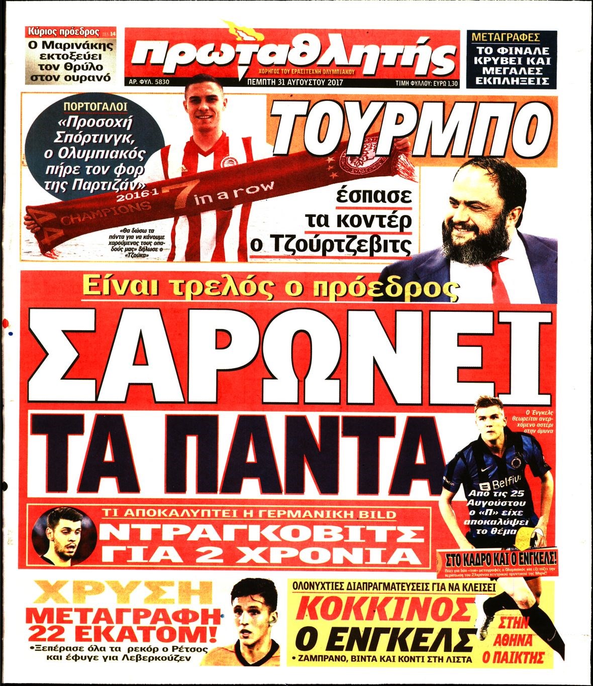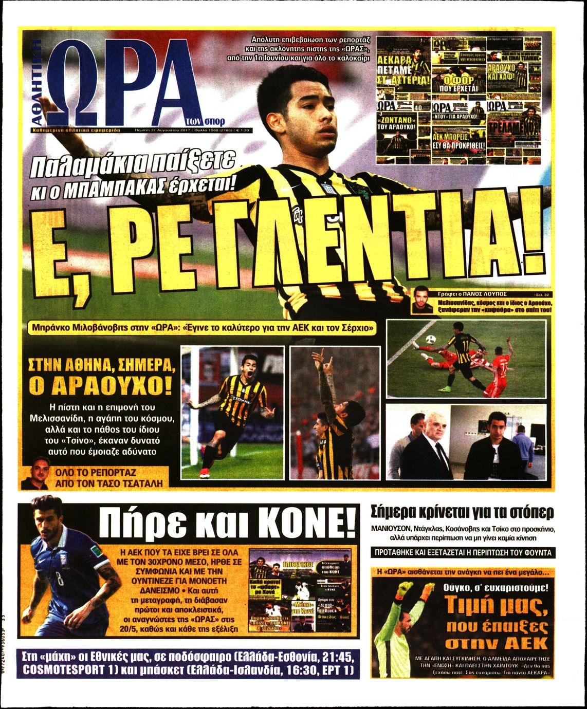Οι αθλητικές εφημερίδες 31/8/2017 Enikos Newsroom 07:30, Πέμπτη 31 Αυγούστου 2017 Media Διαβάστε τα σημερινά πρωτοσέλιδα των αθλητικών εφημερίδων: ΑΘΛΗΤΙΚΕΣ ΕΦΗΜΕΡΙΔΕΣ ΠΡΩΤΟΣΕΛΙΔΑ Μοιράσου το: σχολίασε κι εσύ (0 σχόλια) Ακολουθήστε το enikos.gr στο Google News και μάθετε πρώτοι όλες τις ειδήσεις Δείτε όλες τις τελευταίες ειδήσεις από την Ελλάδα και τον Κόσμο στο enikos.gr Ειδήσεις Ροή Ειδήσεων 2 ώρες πριν Αγρότες: Πολύωροι αποκλεισμοί στα τελωνεία Προμαχώνα, Εξοχής, Ευζώνων και Νίκης – Κλείνουν τον κόμβο Φιλώτα οι παραγωγοί στη Δυτική Μακεδονία 1 ώρα πριν Νίκος Παππάς: Ζητώ συγγνώμη για αυτό το επεισόδιο – Δεν τον γρονθοκόπησα 3 ώρες πριν Ευρωπαϊκό Συμβούλιο: Όλες οι λεπτομέρειες για το δάνειο των 90 δισ. ευρώ στην Ουκρανία – Τα συμπεράσματα της Συνόδου Κορυφής 3 ώρες πριν Αίγιο: 22χρονη κατήγγειλε ότι έπεσε θύμα βιασμού και ληστείας από συγγενικά της πρόσωπα 1 ώρα πριν Τρομακτικό βίντεο: Η στιγμή της έκρηξης στο τζετ που μετέφερε τον οδηγό του NASCAR, Γκρεγκ Μπιφλ και την οικογένειά του 2 ώρες πριν Αλλαγή σελίδας για 3 ζώδια – «Μία δύσκολη περίοδος φτάνει στο τέλος της» 2 ημέρες πριν 20 χρόνια τα Χριστούγεννα ξεκινούν στα Public με μεγάλη ποικιλία σε δώρα! 3 ώρες πριν Ο σύζυγός της συμπεριφέρεται όπως το παιδί τους – «Χρησιμοποιεί αστείες δικαιολογίες για να μην κάνει δουλειές και να ξοδεύει λεφτά» 57 λεπτά πριν Γεμάτος νεροχύτης; 5 σοβαρές ευθύνες που «φοβίζουν» όσους αφήνουν άπλυτα πιάτα 4 λεπτά πριν Γονείς για πρώτη φορά ο Πιτ Ντέιβιντσον και η Έλσι Χιούιτ 10 λεπτά πριν Πούτιν: Η Ουκρανία δεν είναι έτοιμη για ειρηνευτικές συνομιλίες – ο ρωσικός στρατός προελαύνει σε όλα τα μέτωπα 16 λεπτά πριν Βουλή: Αποσύρθηκε προσθήκη για έργα του Ταμειακού Προγράμματος Ανάπτυξης της Γ.Γ. Αθλητισμού μετά τις αντιδράσεις της αντιπολίτευσης 21 λεπτά πριν Νορβηγία: Η πριγκίπισσα Μέτε-Μάριτ πιθανότατα θα υποβληθεί σε μεταμόσχευση πνεύμονα 32 λεπτά πριν Ενίσχυση δρομολογίων του Μετρό τις Κυριακές 21 και 28 Δεκεμβρίου – Κυκλοφοριακές ρυθμίσεις αύριο στη Γραμμή 7 του τραμ λόγω εορταστικών εκδηλώσεων ENIKOS NETWORK Κίνδυνος παραπλάνησης από διαφημίσεις οδοντικών εμφυτευμάτων Καρκίνος του πνεύμονα: Έως 8.000 ζωές μπορούν να σωθούν με την έγκαιρη διάγνωση Επιδόματα και παροχές από τον ΟΠΕΚΑ: Τι πιστώνεται σήμερα στους τραπεζικούς λογαριασμούς Απειλή για τον Προϋπολογισμό τα ληξιπρόθεσμα χρέη των ιδιωτών προς την εφορία – Τι δείχνουν τα στοιχεία Χαρτογραφώντας το «σημείο χωρίς επιστροφή»: Για πρώτη φορά αποκαλύπτεται με λεπτομέρεια το ακανθώδες όριο της ατμόσφαιρας τ... Η Google καταργεί τη λειτουργία «dark web report» – Πώς θα μπορούν οι χρήστες να διαγράφουν τα δεδομένα τους περισσότερα 08:00 , Παρασκευή 19 Δεκεμβρίου 2025 Την Κυριακή με τη Realnews: Δωροεπιταγή 10€ Δωροεπιταγή αξίας 10€ για αγορές άνω των 60€ από τα πολυκαταστήματα FactoryOutlet H προσφορά ι... 05:48 , Παρασκευή 19 Δεκεμβρίου 2025 Οι οικονομικές εφημερίδες 19/12/2025 Διαβάστε τα πρωτοσέλιδα από τις οικονομικές εφημερίδες, σήμερα 19/12/2025. 05:43 , Παρασκευή 19 Δεκεμβρίου 2025 Οι αθλητικές εφημερίδες 19/12/2025 Διαβάστε τα πρωτοσέλιδα από τις αθλητικές εφημερίδες, σήμερα 19/12/2025. 05:38 , Παρασκευή 19 Δεκεμβρίου 2025 Οι πολιτικές εφημερίδες 19/12/2025 Διαβάστε τα πρωτοσέλιδα από τις πολιτικές εφημερίδες, σήμερα 19/12/2025. ΤΕΛΕΥΤΑΙΕΣ ΕΙΔΗΣΕΙΣ 4 λεπτά πριν Γονείς για πρώτη φορά ο Πιτ Ντέιβιντσον και η Έλσι... 10 λεπτά πριν Πούτιν: Η Ουκρανία δεν είναι έτοιμη για ειρηνευτικές... 16 λεπτά πριν Βουλή: Αποσύρθηκε πρ