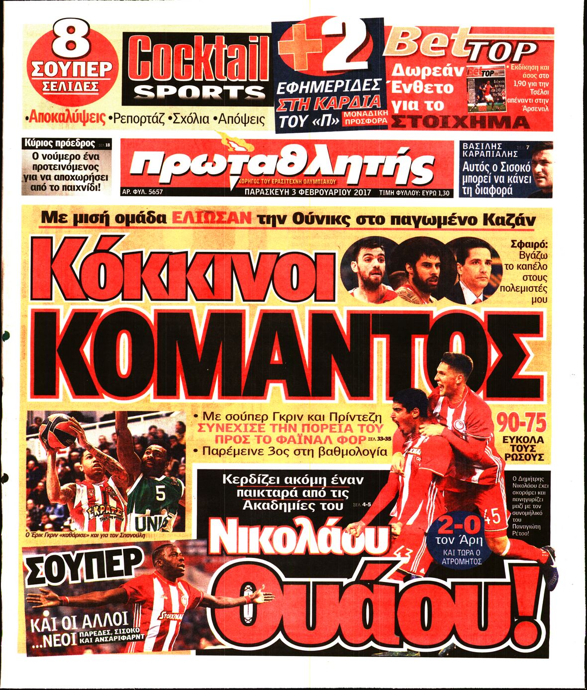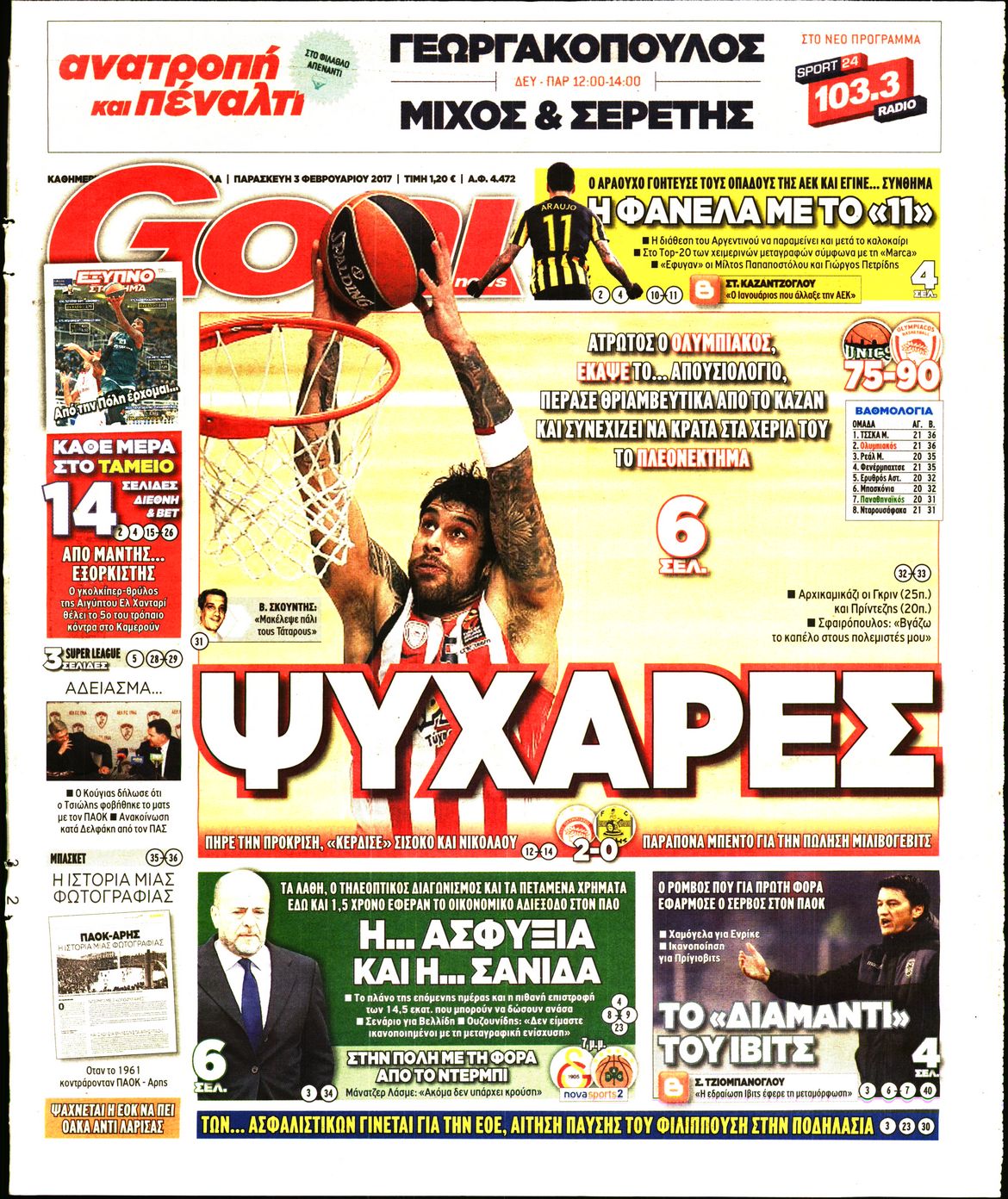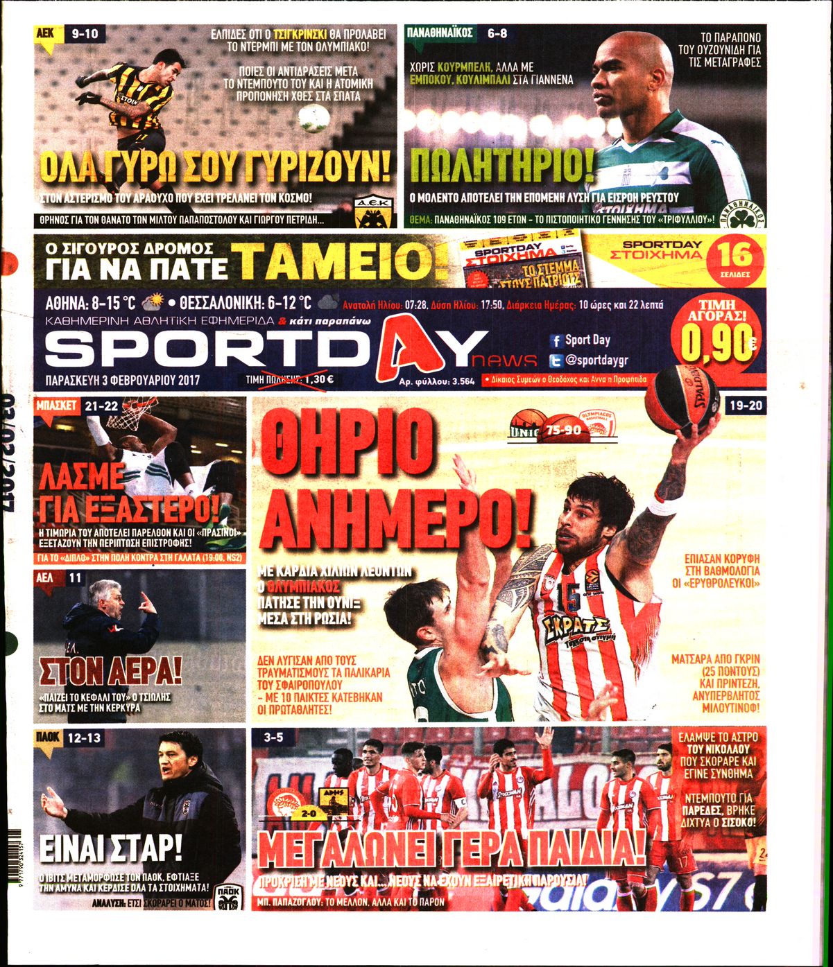 Οι αθλητικές εφημερίδες 3/2/2017 Enikos Newsroom 00:54, Παρασκευή 03 Φεβρουαρίου 2017 Media Διαβάστε τα σημερινά πρωτοσέλιδα των αθλητικών εφημερίδων: ΑΘΛΗΤΙΚΕΣ ΕΦΗΜΕΡΙΔΕΣ ΠΡΩΤΟΣΕΛΙΔΑ Μοιράσου το: σχολίασε κι εσύ (0 σχόλια) Ακολουθήστε το enikos.gr στο Google News και μάθετε πρώτοι όλες τις ειδήσεις Δείτε όλες τις τελευταίες ειδήσεις από την Ελλάδα και τον Κόσμο στο enikos.gr Ειδήσεις Ροή Ειδήσεων 3 ώρες πριν Αγρότες: Πολύωροι αποκλεισμοί στα τελωνεία Προμαχώνα, Εξοχής, Ευζώνων και Νίκης – Κλείνουν τον κόμβο Φιλώτα οι παραγωγοί στη Δυτική Μακεδονία 2 ώρες πριν Νίκος Παππάς: Ζητώ συγγνώμη για αυτό το επεισόδιο – Δεν τον γρονθοκόπησα 1 ώρα πριν Πούτιν: Η Ουκρανία δεν είναι έτοιμη για ειρηνευτικές συνομιλίες – ο ρωσικός στρατός προελαύνει σε όλα τα μέτωπα 44 λεπτά πριν Κρήτη: Στο Ρέθυμνο μεταφέρονται οι εκατοντάδες μετανάστες που διασώθηκαν ανοιχτά της Γαύδου 2 ώρες πριν Τρομακτικό βίντεο: Η στιγμή της έκρηξης στο τζετ που μετέφερε τον οδηγό του NASCAR, Γκρεγκ Μπιφλ και την οικογένειά του 3 ώρες πριν Αλλαγή σελίδας για 3 ζώδια – «Μία δύσκολη περίοδος φτάνει στο τέλος της» 2 ημέρες πριν 20 χρόνια τα Χριστούγεννα ξεκινούν στα Public με μεγάλη ποικιλία σε δώρα! 2 ώρες πριν Γεμάτος νεροχύτης; 5 σοβαρές ευθύνες που «φοβίζουν» όσους αφήνουν άπλυτα πιάτα 50 λεπτά πριν Ειδικός μοιράζεται 6 κόλπα για να διατηρείστε σε φόρμα με πάνω από 40 ώρες εργασίας την εβδομάδα: «Προπονηθείτε πριν από τη δουλειά, όχι μετά» 2 λεπτά πριν Παπαθανάσης: «Η Ελλάδα αλλάζει με μεταρρυθμίσεις και έργα – Το 2026 χρονιά μεγάλης ανάπτυξης, νέων θέσεων εργασίας, καλύτερων αμοιβών» 8 λεπτά πριν Αγρότες: Παραμένουν στα μπλόκα και ενισχύουν τις δράσεις τους σε Ημαθία, Πέλλα, Πιερία και Καβάλα 14 λεπτά πριν Γιώργος Μαζωνάκης: «Φοβόταν, θεώρησα ότι έπρεπε να τον προστατεύσω» – Τι λέει η τραγουδίστρια, Νωαίνα για τον Στέφανο Παπαδόπουλο 20 λεπτά πριν Βελόπουλος: Ό,τι και να κάνουν στην κυβέρνηση, όλοι οι υπαίτιοι του εγκλήματος των Τεμπών θα μπουν στην φυλακή 26 λεπτά πριν ΕΥΔΑΠ: 17 ερωτήσεις και απαντήσεις για τις αλλαγές στα τιμολόγια του νερού ENIKOS NETWORK Κίνδυνος παραπλάνησης από διαφημίσεις οδοντικών εμφυτευμάτων Καρκίνος του πνεύμονα: Έως 8.000 ζωές μπορούν να σωθούν με την έγκαιρη διάγνωση Αγορά πολυτελών κατοικιών: Αυτές είναι οι προτεραιότητες των αγοραστών – Σε ποιες περιοχές στρέφονται και τι επιλέγουν ΕΥΔΑΠ: Στο τραπέζι αλλαγές στους λογαριασμούς του νερού – Τι θα ισχύσει για ευάλωτα νοικοκυριά και επιχειρήσεις Χαρτογραφώντας το «σημείο χωρίς επιστροφή»: Για πρώτη φορά αποκαλύπτεται με λεπτομέρεια το ακανθώδες όριο της ατμόσφαιρας τ... Η Google καταργεί τη λειτουργία «dark web report» – Πώς θα μπορούν οι χρήστες να διαγράφουν τα δεδομένα τους περισσότερα 08:00 , Παρασκευή 19 Δεκεμβρίου 2025 Την Κυριακή με τη Realnews: Δωροεπιταγή 10€ Δωροεπιταγή αξίας 10€ για αγορές άνω των 60€ από τα πολυκαταστήματα FactoryOutlet H προσφορά ι... 05:48 , Παρασκευή 19 Δεκεμβρίου 2025 Οι οικονομικές εφημερίδες 19/12/2025 Διαβάστε τα πρωτοσέλιδα από τις οικονομικές εφημερίδες, σήμερα 19/12/2025. 05:43 , Παρασκευή 19 Δεκεμβρίου 2025 Οι αθλητικές εφημερίδες 19/12/2025 Διαβάστε τα πρωτοσέλιδα από τις αθλητικές εφημερίδες, σήμερα 19/12/2025. 05:38 , Παρασκευή 19 Δεκεμβρίου 2025 Οι πολιτικές εφημερίδες 19/12/2025 Διαβάστε τα πρωτοσέλιδα από τις πολιτικές εφημερίδες, σήμερα 19/12/2025. ΤΕΛΕΥΤΑΙΕΣ ΕΙΔΗΣΕΙΣ 2 λεπτά πριν Παπαθανάσης: «Η Ελλάδα αλλάζει με μεταρρυθμίσεις και... 8 λεπτά πριν Αγρότες: Παραμένουν στα μπλό