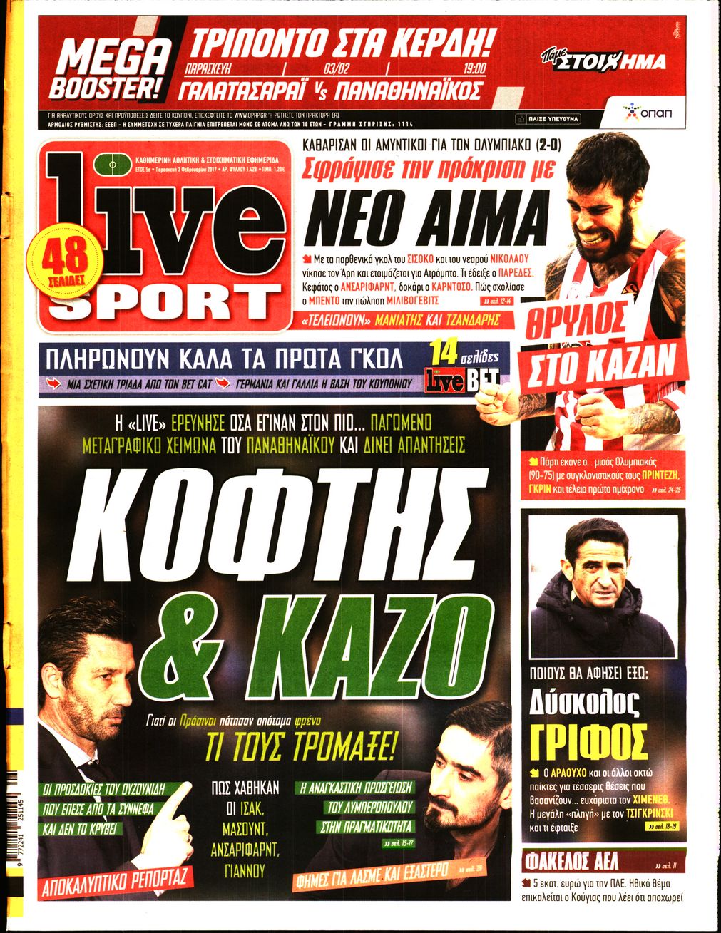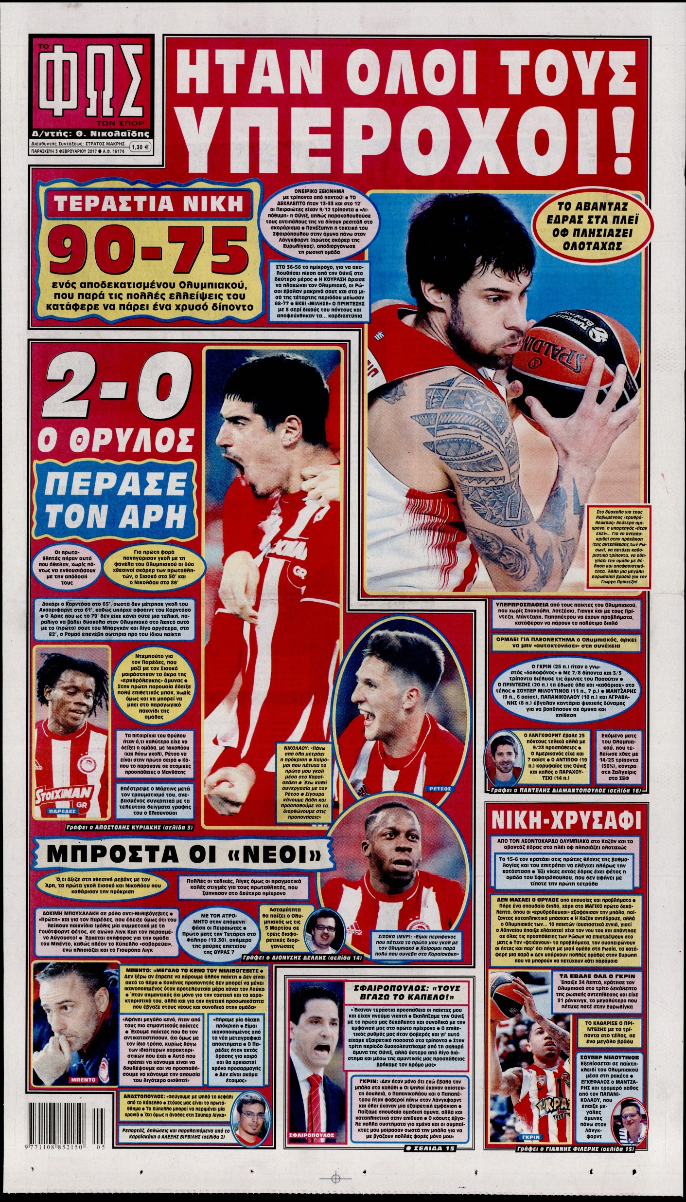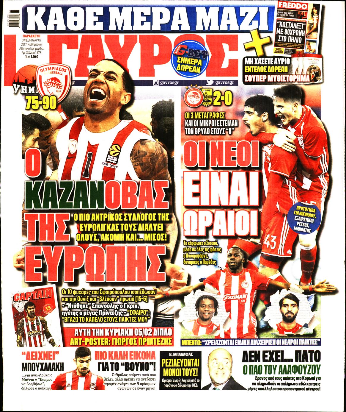 Οι αθλητικές εφημερίδες 3/2/2017 Enikos Newsroom 00:54, Παρασκευή 03 Φεβρουαρίου 2017 Media Διαβάστε τα σημερινά πρωτοσέλιδα των αθλητικών εφημερίδων: ΑΘΛΗΤΙΚΕΣ ΕΦΗΜΕΡΙΔΕΣ ΠΡΩΤΟΣΕΛΙΔΑ Μοιράσου το: σχολίασε κι εσύ (0 σχόλια) Ακολουθήστε το enikos.gr στο Google News και μάθετε πρώτοι όλες τις ειδήσεις Δείτε όλες τις τελευταίες ειδήσεις από την Ελλάδα και τον Κόσμο στο enikos.gr Ειδήσεις Ροή Ειδήσεων 3 ώρες πριν Αγρότες: Πολύωροι αποκλεισμοί στα τελωνεία Προμαχώνα, Εξοχής, Ευζώνων και Νίκης – Κλείνουν τον κόμβο Φιλώτα οι παραγωγοί στη Δυτική Μακεδονία 2 ώρες πριν Νίκος Παππάς: Ζητώ συγγνώμη για αυτό το επεισόδιο – Δεν τον γρονθοκόπησα 1 ώρα πριν Πούτιν: Η Ουκρανία δεν είναι έτοιμη για ειρηνευτικές συνομιλίες – ο ρωσικός στρατός προελαύνει σε όλα τα μέτωπα 44 λεπτά πριν Κρήτη: Στο Ρέθυμνο μεταφέρονται οι εκατοντάδες μετανάστες που διασώθηκαν ανοιχτά της Γαύδου 2 ώρες πριν Τρομακτικό βίντεο: Η στιγμή της έκρηξης στο τζετ που μετέφερε τον οδηγό του NASCAR, Γκρεγκ Μπιφλ και την οικογένειά του 3 ώρες πριν Αλλαγή σελίδας για 3 ζώδια – «Μία δύσκολη περίοδος φτάνει στο τέλος της» 2 ημέρες πριν 20 χρόνια τα Χριστούγεννα ξεκινούν στα Public με μεγάλη ποικιλία σε δώρα! 2 ώρες πριν Γεμάτος νεροχύτης; 5 σοβαρές ευθύνες που «φοβίζουν» όσους αφήνουν άπλυτα πιάτα 50 λεπτά πριν Ειδικός μοιράζεται 6 κόλπα για να διατηρείστε σε φόρμα με πάνω από 40 ώρες εργασίας την εβδομάδα: «Προπονηθείτε πριν από τη δουλειά, όχι μετά» 2 λεπτά πριν Παπαθανάσης: «Η Ελλάδα αλλάζει με μεταρρυθμίσεις και έργα – Το 2026 χρονιά μεγάλης ανάπτυξης, νέων θέσεων εργασίας, καλύτερων αμοιβών» 8 λεπτά πριν Αγρότες: Παραμένουν στα μπλόκα και ενισχύουν τις δράσεις τους σε Ημαθία, Πέλλα, Πιερία και Καβάλα 14 λεπτά πριν Γιώργος Μαζωνάκης: «Φοβόταν, θεώρησα ότι έπρεπε να τον προστατεύσω» – Τι λέει η τραγουδίστρια, Νωαίνα για τον Στέφανο Παπαδόπουλο 20 λεπτά πριν Βελόπουλος: Ό,τι και να κάνουν στην κυβέρνηση, όλοι οι υπαίτιοι του εγκλήματος των Τεμπών θα μπουν στην φυλακή 26 λεπτά πριν ΕΥΔΑΠ: 17 ερωτήσεις και απαντήσεις για τις αλλαγές στα τιμολόγια του νερού ENIKOS NETWORK Κίνδυνος παραπλάνησης από διαφημίσεις οδοντικών εμφυτευμάτων Καρκίνος του πνεύμονα: Έως 8.000 ζωές μπορούν να σωθούν με την έγκαιρη διάγνωση Αγορά πολυτελών κατοικιών: Αυτές είναι οι προτεραιότητες των αγοραστών – Σε ποιες περιοχές στρέφονται και τι επιλέγουν ΕΥΔΑΠ: Στο τραπέζι αλλαγές στους λογαριασμούς του νερού – Τι θα ισχύσει για ευάλωτα νοικοκυριά και επιχειρήσεις Χαρτογραφώντας το «σημείο χωρίς επιστροφή»: Για πρώτη φορά αποκαλύπτεται με λεπτομέρεια το ακανθώδες όριο της ατμόσφαιρας τ... Η Google καταργεί τη λειτουργία «dark web report» – Πώς θα μπορούν οι χρήστες να διαγράφουν τα δεδομένα τους περισσότερα 08:00 , Παρασκευή 19 Δεκεμβρίου 2025 Την Κυριακή με τη Realnews: Δωροεπιταγή 10€ Δωροεπιταγή αξίας 10€ για αγορές άνω των 60€ από τα πολυκαταστήματα FactoryOutlet H προσφορά ι... 05:48 , Παρασκευή 19 Δεκεμβρίου 2025 Οι οικονομικές εφημερίδες 19/12/2025 Διαβάστε τα πρωτοσέλιδα από τις οικονομικές εφημερίδες, σήμερα 19/12/2025. 05:43 , Παρασκευή 19 Δεκεμβρίου 2025 Οι αθλητικές εφημερίδες 19/12/2025 Διαβάστε τα πρωτοσέλιδα από τις αθλητικές εφημερίδες, σήμερα 19/12/2025. 05:38 , Παρασκευή 19 Δεκεμβρίου 2025 Οι πολιτικές εφημερίδες 19/12/2025 Διαβάστε τα πρωτοσέλιδα από τις πολιτικές εφημερίδες, σήμερα 19/12/2025. ΤΕΛΕΥΤΑΙΕΣ ΕΙΔΗΣΕΙΣ 2 λεπτά πριν Παπαθανάσης: «Η Ελλάδα αλλάζει με μεταρρυθμίσεις και... 8 λεπτά πριν Αγρότες: Παραμένουν στα μπλό