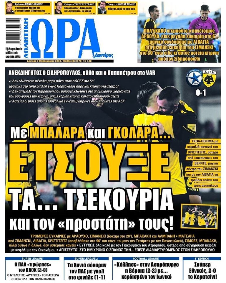 Οι αθλητικές εφημερίδες 3/2/2020 Κώστας Τεό 06:41, Δευτέρα 03 Φεβρουαρίου 2020 Media Διαβάστε τα πρωτοσέλιδα των αθλητικών εφημερίδων: ΑΘΛΗΤΙΚΕΣ ΕΦΗΜΕΡΙΔΕΣ ΠΡΩΤΟΣΕΛΙΔΑ Μοιράσου το: σχολίασε κι εσύ (0 σχόλια) Ακολουθήστε το enikos.gr στο Google News και μάθετε πρώτοι όλες τις ειδήσεις Δείτε όλες τις τελευταίες ειδήσεις από την Ελλάδα και τον Κόσμο στο enikos.gr Ειδήσεις Ροή Ειδήσεων 44 λεπτά πριν Χριστούγεννα στα μπλόκα: Επιμένουν στις κινητοποιήσεις τους οι αγρότες – Ανοίγουν τα διόδια το Σαββατοκύριακο 1 ώρα πριν Ουκρανία: Η άνευ προηγουμένου επίθεση σε ρωσικό τάνκερ στη Μεσόγειο και το μήνυμα προς στον Πούτιν – Το «μακρύ χέρι» του Κιέβου 21 λεπτά πριν Πούτιν: Τα μηνύματα σε Ευρώπη και ΝΑΤΟ από το μαραθώνιο «σόου» του – Η απαίτηση για «σεβασμό» και η ειρήνη «με τους όρους» της Μόσχας 1 ώρα πριν Τραμπ: Δεν αποκλείει την πιθανότητα ενός πολέμου στη Βενεζουέλα – «Ο Μαδούρο ξέρει καλύτερα από τον καθένα τι ακριβώς θέλω» 2 ώρες πριν Συνεχίζει να προκαλεί ο Μίτσκοσκι: «Για μένα το όνομα Μακεδονία είναι ιερό» 4 ώρες πριν Πούτιν: «Ναι, είμαι ερωτευμένος» – Βίντεο από τη σπάνια προσωπική παραδοχή του 2 ώρες πριν Αριθμολογία: Οι άνθρωποι που έχουν γεννηθεί αυτές τις 4 ημερομηνίες, συχνά παρεξηγούνται – «Η καλοσύνη τους κρύβει τεράστια δύναμη» 1 ώρα πριν Ύπνος: Μια κρυφή κατάσταση του εγκεφάλου πριν από τον ύπνο μπορεί να είναι το “κλειδί” για υψηλή ευφυΐα και δημιουργικότητα 3 ώρες πριν Ξεχάστε το καθάρισμα το Σαββατοκύριακο: Ο «κανόνας των 20 λεπτών» που θα σας λύσει τα χέρια 22 λεπτά πριν Ανακαλύφθηκαν αρχαία χρυσά νομίσματα 2.200 ετών που απεικονίζουν τον θεό Απόλλωνα – Η άγνωστη σύνδεση με τον Φίλιππο Β΄ της Μακεδονίας 6 λεπτά πριν Ολυμπιακός – Βιλερμπάν 107-84: Επιστροφή στις νίκες με… προπόνηση 12 λεπτά πριν Νέος Κόσμος: Συνελήφθη 41χρονος με ένταλμα από την Τουρκία για εμπόριο ναρκωτικών και ληστεία 21 λεπτά πριν Πούτιν: Τα μηνύματα σε Ευρώπη και ΝΑΤΟ από το μαραθώνιο «σόου» του – Η απαίτηση για «σεβασμό» και η ειρήνη «με τους όρους» της Μόσχας 22 λεπτά πριν Ανακαλύφθηκαν αρχαία χρυσά νομίσματα 2.200 ετών που απεικονίζουν τον θεό Απόλλωνα – Η άγνωστη σύνδεση με τον Φίλιππο Β΄ της Μακεδονίας 27 λεπτά πριν Νίκος Ξυλούρης: Συγκινεί η χήρα του σπουδαίου καλλιτέχνη – «Ευχαριστώ όλο τον κόσμο που τον κρατάει ζωντανό 45 χρόνια» ENIKOS NETWORK Το ΕΚΑΒ τιμήθηκε από την Ακαδημία Αθηνών για τα 40 χρόνια προσφοράς του Έχετε πραγματικά μεγάλη καρδιά; 10 χαρακτηριστικά όσων έχουν καλοσύνη Αναστολή μέτρων αναγκαστικής εκτέλεσης για κτηνοτρόφους που πλήττονται από την ευλογιά των αιγοπροβάτων Πλήρης επάρκεια προϊόντων στις λαϊκές της Αττικής, παρά τις αγροτικές κινητοποιήσεις – Τι απαντούν οι πωλητές Χαρτογραφώντας το «σημείο χωρίς επιστροφή»: Για πρώτη φορά αποκαλύπτεται με λεπτομέρεια το ακανθώδες όριο της ατμόσφαιρας τ... Η Google καταργεί τη λειτουργία «dark web report» – Πώς θα μπορούν οι χρήστες να διαγράφουν τα δεδομένα τους περισσότερα 22:42 , Παρασκευή 19 Δεκεμβρίου 2025 Γιώργος Γιαννόπουλος για “Το σόι σου”: “Είναι ευτυχία και ευλογία αυτή η σειρά” «Είναι ευτυχία και ευλογία η συγκυρία αυτής της σειράς», θα πει ο Γιώργος Γιαννόπουλος -ο αγαπ... 20:37 , Παρασκευή 19 Δεκεμβρίου 2025 Don’t Forget The Lyrics: Η Έλλη Κοκκίνου υποδέχεται 4 παίκτες που θα κάνουν τα πάντα για να μη χάσουν ούτε… μισή λέξη από τους στίχους Το «Don’t Forget The Lyrics» επιστρέφει απόψε, Παρασκευή 19 Δεκεμβρίου, στις 21:00 με νέο επει... 19:31 , Παρασκευή 19 Δε