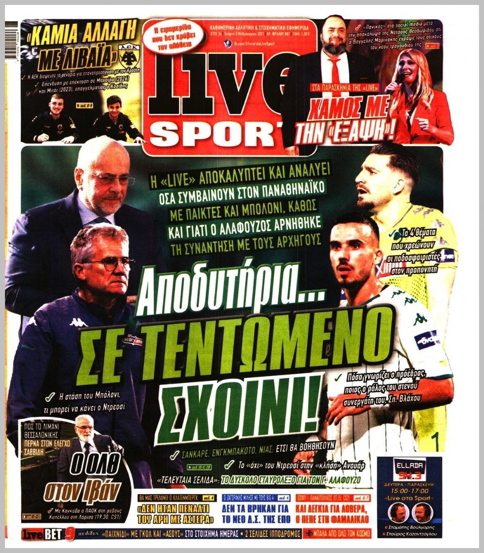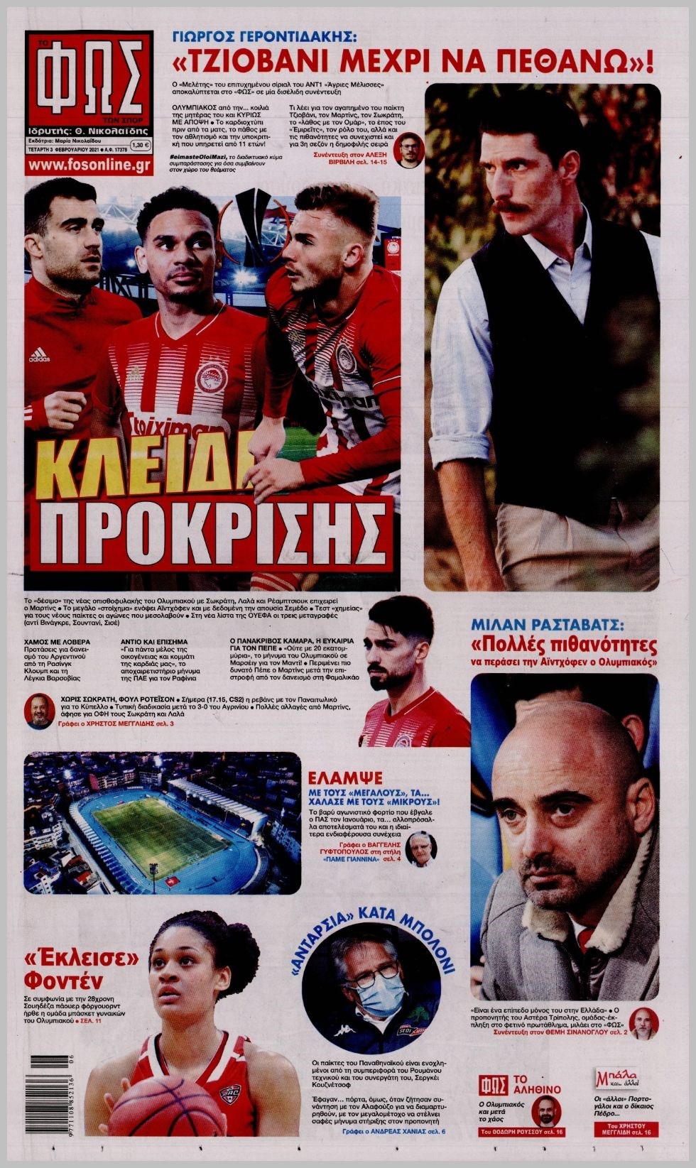 Οι αθλητικές εφημερίδες 3/2/2021 Διονύσης Νίκκας 06:29, Τετάρτη 03 Φεβρουαρίου 2021 Media Διαβάστε τα πρωτοσέλιδα των αθλητικών εφημερίδων… ΑΘΛΗΤΙΚΕΣ ΕΦΗΜΕΡΙΔΕΣ Μοιράσου το: σχολίασε κι εσύ (0 σχόλια) Ακολουθήστε το enikos.gr στο Google News και μάθετε πρώτοι όλες τις ειδήσεις Δείτε όλες τις τελευταίες ειδήσεις από την Ελλάδα και τον Κόσμο στο enikos.gr Ειδήσεις Ροή Ειδήσεων 5 ώρες πριν Μεσόγειος: Η διαδρομή του ρωσικού τάνκερ «Qendil» και η στοχευμένη επίθεση της Ουκρανίας με drone – Ο Πούτιν προειδοποίησε για αντίποινα 1 ώρα πριν Αγρότες: Έκλεισαν για μία ώρα την παρακαμπτήρια της Ιόνιας Οδού στη θέση Χαλίκι 3 ώρες πριν Εμπλοκή και αερομαχίες με οπλισμένα τουρκικά F-16 στο Αιγαίο 3 ώρες πριν Πούτιν: «Ναι, είμαι ερωτευμένος» – Βίντεο από τη σπάνια προσωπική παραδοχή του 1 ώρα πριν Ανδρέας Λυκουρέντζος: Υπέβαλε την παραίτησή του ο πρόεδρος του ΕΛΓΑ, αλλά δεν έγινε δεκτή – Όλο το παρασκήνιο 1 ώρα πριν Αριθμολογία: Οι άνθρωποι που έχουν γεννηθεί αυτές τις 4 ημερομηνίες, συχνά παρεξηγούνται – «Η καλοσύνη τους κρύβει τεράστια δύναμη» 3 ώρες πριν Μήπως έχετε χάσει τον εαυτό σας στη σχέση σας; 7 «αθόρυβες» υποχωρήσεις που μάλλον κάνατε, χωρίς να το συνειδητοποιήσετε 2 ώρες πριν Ξεχάστε το καθάρισμα το Σαββατοκύριακο: Ο «κανόνας των 20 λεπτών» που θα σας λύσει τα χέρια 5 ώρες πριν Κουίζ για την παλιά Αθήνα: Αναγνωρίζετε την περιοχή; Έχετε περάσει 100% από εκεί 7 λεπτά πριν Βασίλης Καρράς: «Είναι πάντα δίπλα μου, δεν έφυγε…», λέει ο αδελφός του 11 λεπτά πριν Ουκρανία: Η άνευ προηγουμένου επίθεση σε ρωσικό τάνκερ στη Μεσόγειο και το μήνυμα προς στον Πούτιν – Το «μακρύ χέρι» του Κιέβου 17 λεπτά πριν Τραμπ: Δεν αποκλείει την πιθανότητα ενός πολέμου στη Βενεζουέλα – «Ο Μαδούρο ξέρει καλύτερα από τον καθένα τι ακριβώς θέλω» 19 λεπτά πριν Κηφισιά: Με πολλές απουσίες κόντρα στον Ολυμπιακό – «Last dance» για τον Τεττέη 26 λεπτά πριν Ύπνος: Μια κρυφή κατάσταση του εγκεφάλου πριν από τον ύπνο μπορεί να είναι το “κλειδί” για υψηλή ευφυΐα και δημιουργικότητα ENIKOS NETWORK Το ΕΚΑΒ τιμήθηκε από την Ακαδημία Αθηνών για τα 40 χρόνια προσφοράς του Έχετε πραγματικά μεγάλη καρδιά; 10 χαρακτηριστικά όσων έχουν καλοσύνη ΑΑΔΕ: Νέες αναβαθμίσεις στο Ψηφιακό Πελατολόγιο και την εφαρμογή myDATAapp – Τι πρέπει να γνωρίζετε Όμιλος ΔΕΗ: Νέα ορόσημα και ενισχυμένη διαφάνεια στην ετήσια Έκθεση Βιώσιμης Ανάπτυξης Χαρτογραφώντας το «σημείο χωρίς επιστροφή»: Για πρώτη φορά αποκαλύπτεται με λεπτομέρεια το ακανθώδες όριο της ατμόσφαιρας τ... Η Google καταργεί τη λειτουργία «dark web report» – Πώς θα μπορούν οι χρήστες να διαγράφουν τα δεδομένα τους περισσότερα 20:37 , Παρασκευή 19 Δεκεμβρίου 2025 Don’t Forget The Lyrics: Η Έλλη Κοκκίνου υποδέχεται 4 παίκτες που θα κάνουν τα πάντα για να μη χάσουν ούτε… μισή λέξη από τους στίχους Το «Don’t Forget The Lyrics» επιστρέφει απόψε, Παρασκευή 19 Δεκεμβρίου, στις 21:00 με νέο επει... 19:31 , Παρασκευή 19 Δεκεμβρίου 2025 GNTM: Απόψε ο μεγάλος τελικός για τους 4 φιναλίστ Έπειτα από μήνες γεμάτους μόδα, δημιουργία και έντονες αναμετρήσεις, το GNTM 2025 κορυφώνεται,... 18:11 , Παρασκευή 19 Δεκεμβρίου 2025 Το σόι σου: Ο Άρης έρχεται στην Ελλάδα για τις γιορτές των Χριστουγέννων – Τι θα δούμε στο αποψινό εορταστικό επεισόδιο Ένα απολαυστικό, εορταστικό επεισόδιο της σειράς “Το σόι σου”, γεμάτο ευτράπελα αλ... 15:15 , Παρασκευή 19 Δεκεμβρίου 2025 Την Κυριακή με τη Realnews: Ό,τι και αν αγοράσεις, σκανάρεις και κερδίζεις! Την Κυριακή με τη Realnews: Ό,τι και αν αγοράσεις, σκα