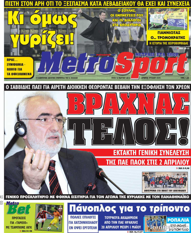 Οι αθλητικές εφημερίδες Enikos Newsroom 09:11, Τρίτη 12 Μαρτίου 2013 Media Οι αθλητικές εφημερίδες ΑΘΛΗΤΙΚΕΣ ΕΦΗΜΕΡΙΔΕΣ ΕΦΗΜΕΡΙΔΕΣ ΠΡΩΤΟΣΕΛΙΔΑ Μοιράσου το: σχολίασε κι εσύ (0 σχόλια) Ακολουθήστε το enikos.gr στο Google News και μάθετε πρώτοι όλες τις ειδήσεις Δείτε όλες τις τελευταίες ειδήσεις από την Ελλάδα και τον Κόσμο στο enikos.gr Ειδήσεις Ροή Ειδήσεων 3 ώρες πριν Ακίλα Σάλεχ: «Άκυρο» το τουρκολιβυκό μνημόνιο λέει ο πρόεδρος της λιβυκής Βουλής – Ανοίγει ο διάλογος με Ελλάδα, Αίγυπτο και Τουρκία 8 ώρες πριν Αγρότες: Την Τρίτη η απόφαση για διάλογο ή κλιμάκωση των κινητοποιήσεών τους – Πώς χαρακτηρίζουν τις ανακοινώσεις Τσιάρα και οι επόμενες κινήσεις 7 ώρες πριν Τραμπ για Ουκρανία: «Είμαστε πιο κοντά σε συμφωνία από ποτέ» – «Πολυεθνική δύναμη» προτείνουν οι Ευρωπαίοι 7 ώρες πριν Κυψέλη: Η 16χρονη που μαχαίρωσε την 14χρονη είχε συλληφθεί 3 φορές στο παρελθόν – Έβριζε καθηγητές, έβαζε φωτιές σε κάδους και εκβίαζε συμμαθητές της 7 ώρες πριν Τρομοκρατική επίθεση στο Σίδνεϊ: Θλίψη για τα 15 θύματα – Οργή στην εβραϊκή κοινότητα που προειδοποιούσε επί δύο χρόνια 7 ώρες πριν Επιστήμονες ίσως έλυσαν το μυστήριο γύρω από τα Χόμπιτ – Νέα έρευνα αποκαλύπτει πώς εξαφανίστηκαν 8 ώρες πριν Ύπνος: Η αρχαία μορφή άσκησης που αποδεικνύεται αποτελεσματική στην αντιμετώπιση της αϋπνίας, σύμφωνα με μελέτη 9 ώρες πριν Αριθμολογία: Ο τυχερός σας αριθμός, ανάλογα με τον μήνα γέννησής σας 10 ώρες πριν Πώς να μην μαραίνονται γρήγορα τα κομμένα λουλούδια: Το λάθος στην τοποθέτηση του βάζου που πρέπει να αποφεύγετε 1 λεπτό πριν Δώρο Χριστουγέννων 2025: Ποιοι εργαζόμενοι το δικαιούνται – Η online εφαρμογή της ΓΣΕΕ για να το υπολογίσετε 9 λεπτά πριν Υψηλή χοληστερίνη: Γιατρός αποκαλύπτει δύο τρόπους για να την μειώσετε χωρίς φαρμακευτική αγωγή 17 λεπτά πριν Σαν σήμερα 16 Δεκεμβρίου: Τα σημαντικότερα γεγονότα της ημέρας 21 λεπτά πριν Οι οικονομικές εφημερίδες 16/12/2025 27 λεπτά πριν Οι αθλητικές εφημερίδες 16/12/2025 ENIKOS NETWORK Πότε το χρόνιο ροχαλητό να αποτελέσει ένδειξη κινδύνου για την καρδιά; Τι λένε οι ειδικοί Μάριος Θεμιστοκλέους: Το ΕΣΥ ενισχύεται, εκσυγχρονίζεται, αλλάζει ΕΒΕΠ για αγροτικές κινητοποιήσεις: Κάθε επιπλέον εβδομάδα προσθέτει περίπου 200 εκατ. ευρώ ζημιά Τι προβλέπει το νομοσχέδιο του υπουργείου Εθνικής Άμυνας – Oι αλλαγές στους μισθούς Σύγχρονος Νοστράδαμος: Προειδοποιεί για «μεγάλο γεγονός» τους επόμενους μήνες που θα συγκλονίσει τη Βρετανία και τον κόσμο Τεστ παρατηρητικότητας: Μπορείτε να βρείτε τις 3 διαφορές στις εικόνες με έναν πιγκουίνο σε 14 δευτερόλεπτα περισσότερα 05:48 , Τρίτη 16 Δεκεμβρίου 2025 Οι οικονομικές εφημερίδες 16/12/2025 Διαβάστε τα πρωτοσέλιδα από τις οικονομικές εφημερίδες, σήμερα 16/12/2025. 05:43 , Τρίτη 16 Δεκεμβρίου 2025 Οι αθλητικές εφημερίδες 16/12/2025 Διαβάστε τα πρωτοσέλιδα από τις αθλητικές εφημερίδες, σήμερα 16/12/2025. 05:38 , Τρίτη 16 Δεκεμβρίου 2025 Οι πολιτικές εφημερίδες 16/12/2025 Διαβάστε τα πρωτοσέλιδα από τις πολιτικές εφημερίδες, σήμερα 16/12/2025. 21:35 , Δευτέρα 15 Δεκεμβρίου 2025 Το Σπίτι Δίπλα Στο Ποτάμι: Η Ιουλία και ο Φωκάς μετακομίζουν στη Ρόδο – Δύο νέοι χαρακτήρες μπαίνουν στη σειρά Δύο νέοι, κομβικοί χαρακτήρες κάνουν την εμφάνισή τους αυτή την εβδομάδα στην αγαπημένη σειρά ... ΤΕΛΕΥΤΑΙΕΣ ΕΙΔΗΣΕΙΣ 9 λεπτά πριν Υψηλή χοληστερίνη: Γιατρός αποκαλύπτει δύο τρόπους... 17 λεπτά πριν Σαν σήμερα 16 Δεκεμβρίου: Τα σημαντικότερα γεγονότα... 21 λεπτά πριν Οι οικονομικές εφημερίδες 16/12/2025 27 λεπτά 