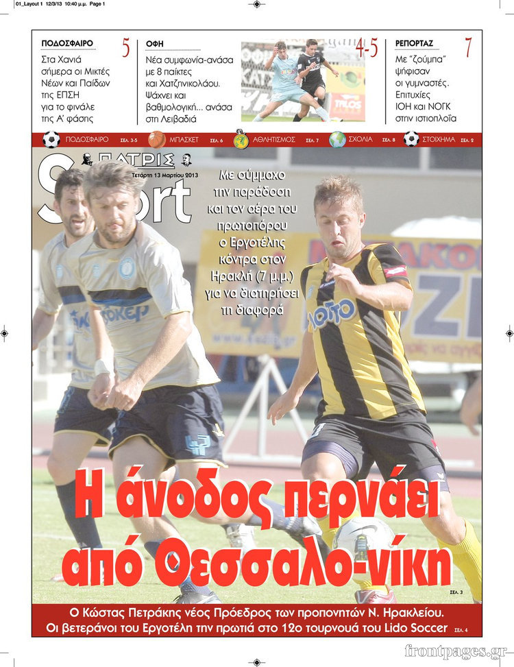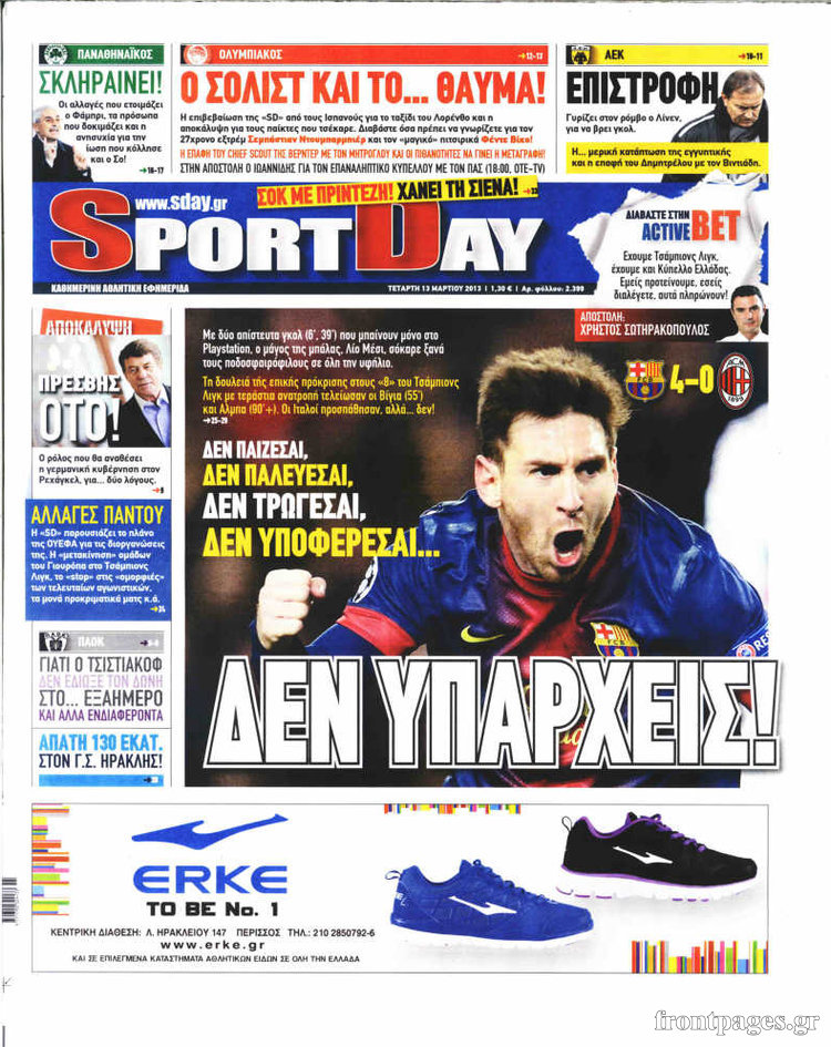 Οι αθλητικές εφημερίδες Enikos Newsroom 08:57, Τετάρτη 13 Μαρτίου 2013 Media Οι αθλητικές εφημερίδες ΑΘΛΗΤΙΚΕΣ ΕΦΗΜΕΡΙΔΕΣ ΕΦΗΜΕΡΙΔΕΣ ΠΡΩΤΟΣΕΛΙΔΑ Μοιράσου το: σχολίασε κι εσύ (0 σχόλια) Ακολουθήστε το enikos.gr στο Google News και μάθετε πρώτοι όλες τις ειδήσεις Δείτε όλες τις τελευταίες ειδήσεις από την Ελλάδα και τον Κόσμο στο enikos.gr Ειδήσεις Ροή Ειδήσεων 8 ώρες πριν Μητσοτάκης: Αναγκαία η μεταρρύθμιση του πρωτογενούς τομέα – Τα 6 νέα μέτρα για το στεγαστικό και οι αναφορές σε «Ιθάκη» και «πολιτικούς του καναπέ» 8 ώρες πριν Δάνεια σε ελβετικό φράγκο: Τα βασικά σημεία της ρύθμισης – ανάσας για 40.000 δανειολήπτες – Αναλυτικός οδηγός με ερωτήσεις και απαντήσεις 7 ώρες πριν Κυψέλη: Εξιτήριο πήρε η 14χρονη μαθήτρια που μαχαιρώθηκε από την 16χρονη σε σχολείο – «Θέλω να βοηθήσω το παιδί, έχει μπλέξει με κακές παρέες» 7 ώρες πριν Τραμπ: Γιατί κατέθεσε τώρα την αγωγή κατά του BBC – Πώς η κίνησή του εξυπηρετεί το νέο δόγμα του για «αντίσταση» στην Ευρώπη, υπέρ των συντηρητικών 8 ώρες πριν ΟΠΕΚΕΠΕ – Παράνομες επιδοτήσεις: Ελεύθεροι με περιοριστικούς όρους και οι 7 κατηγορούμενοι που απολογήθηκαν σήμερα 7 ώρες πριν Ανακαλύφθηκε βυθισμένη πέτρινη κατασκευή ανοιχτά της Κριμαίας – Αποτελεί μέρος αρχαίας ελληνικής αποικίας 8 ώρες πριν Ύπνος: Αυτό μπορεί να είναι το χειρότερο λάθος για το βιολογικό ρολόι σας, σύμφωνα με ειδικό 9 ώρες πριν Αριθμολογία: Οι άνθρωποι που έχουν γεννηθεί αυτές τις 3 ημερομηνίες, προσελκύουν μεγάλη τύχη πριν από το τέλος του 2025 11 ώρες πριν Οι 7 συμπεριφορές που μαρτυρούν ότι ένας άνδρας επενδύει μακροπρόθεσμα σε μια σχέση 41 δευτερόλεπτα πριν Υγεία του εντέρου: Προσθέστε 1 superfood στα scrambled eggs για καλύτερη πέψη και ευεξία 6 λεπτά πριν Σαν σήμερα 17 Δεκεμβρίου: Τα σημαντικότερα γεγονότα της ημέρας 12 λεπτά πριν Οι οικονομικές εφημερίδες 17/12/2025 17 λεπτά πριν Οι αθλητικές εφημερίδες 17/12/2025 22 λεπτά πριν Οι πολιτικές εφημερίδες 17/12/2025 ENIKOS NETWORK Αίτημα ΙΣΑ για την εξαίρεση των προσωπικών γιατρών από τις κατ’ οίκον επισκέψεις Η σκανδιναβική μέθοδος στον ύπνο που μπορεί να σώσει έναν γάμο Πιερρακάκης: Ο προϋπολογισμός συμβάλλει ουσιαστικά στην ενίσχυση της αγοραστικής δύναμης της πλειονότητας των εργαζομένων e-ΕΦΚΑ: Παρατείνεται η προθεσμία για την υποβολή ΑΠΔ – Ποιους αφορά Σύγχρονος Νοστράδαμος: Προειδοποιεί για «μεγάλο γεγονός» τους επόμενους μήνες που θα συγκλονίσει τη Βρετανία και τον κόσμο Τεστ παρατηρητικότητας: Μπορείτε να βρείτε τις 3 διαφορές στις εικόνες με έναν πιγκουίνο σε 14 δευτερόλεπτα περισσότερα 05:48 , Τετάρτη 17 Δεκεμβρίου 2025 Οι οικονομικές εφημερίδες 17/12/2025 Διαβάστε τα πρωτοσέλιδα από τις οικονομικές εφημερίδες, σήμερα 17/12/2025. 05:43 , Τετάρτη 17 Δεκεμβρίου 2025 Οι αθλητικές εφημερίδες 17/12/2025 Διαβάστε τα πρωτοσέλιδα από τις αθλητικές εφημερίδες, σήμερα 17/12/2025. 05:38 , Τετάρτη 17 Δεκεμβρίου 2025 Οι πολιτικές εφημερίδες 17/12/2025 Διαβάστε τα πρωτοσέλιδα από τις πολιτικές εφημερίδες, σήμερα 17/12/2025. 20:06 , Τρίτη 16 Δεκεμβρίου 2025 Ο ΣΚΑΙ καταγγέλλει τον ΕΚΚΟΜΕΔ Επιστολή με την οποία καταγράφει την έντονη διαμαρτυρία του προς τον διευθύνοντα σύμβουλο του... ΤΕΛΕΥΤΑΙΕΣ ΕΙΔΗΣΕΙΣ 6 λεπτά πριν Σαν σήμερα 17 Δεκεμβρίου: Τα σημαντικότερα γεγονότα... 12 λεπτά πριν Οι οικονομικές εφημερίδες 17/12/2025 17 λεπτά πριν Οι αθλητικές εφημερίδες 17/12/2025 22 λεπτά πριν Οι πολιτικές εφημερίδες 17/12/2025 30 λεπτά πριν Τα ζώδια σήμερα, Τετάρτη 17 Δεκεμβρίου: Κριοί, η... 38 λεπτά πριν Εφημερεύοντα φαρμακεία σε Αθήνα κ