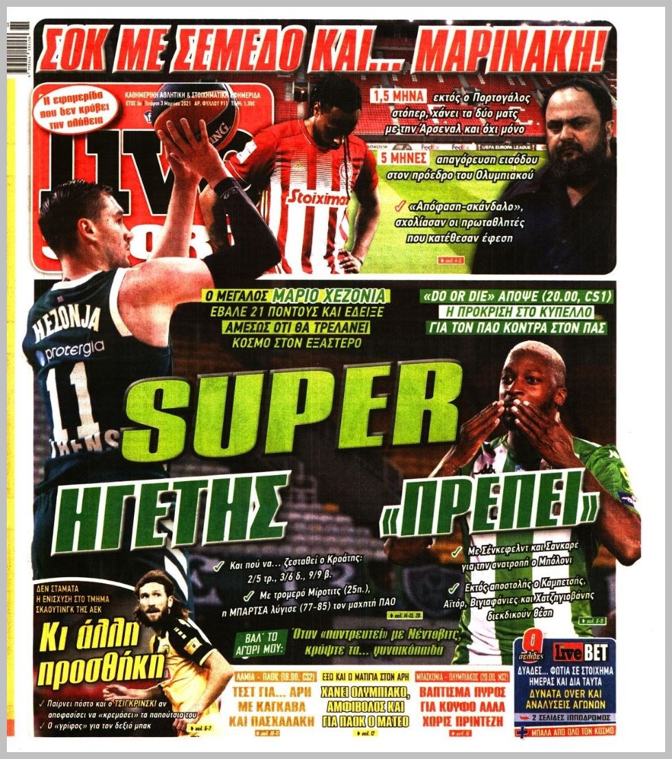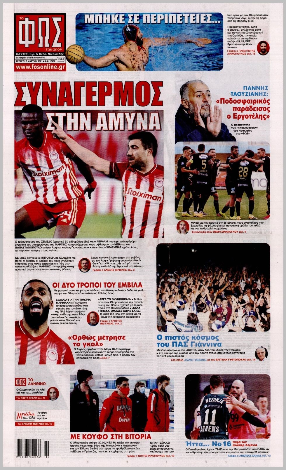 Οι αθλητικές εφημερίδες 3/3/2021 Διονύσης Νίκκας 06:28, Τετάρτη 03 Μαρτίου 2021 Media Διαβάστε τα πρωτοσέλιδα των αθλητικών εφημερίδων… ΑΘΛΗΤΙΚΕΣ ΕΦΗΜΕΡΙΔΕΣ Μοιράσου το: σχολίασε κι εσύ (0 σχόλια) Ακολουθήστε το enikos.gr στο Google News και μάθετε πρώτοι όλες τις ειδήσεις Δείτε όλες τις τελευταίες ειδήσεις από την Ελλάδα και τον Κόσμο στο enikos.gr Ειδήσεις Ροή Ειδήσεων 4 ώρες πριν Από το Ορμένιο ως τα Μάλγαρα κι από τη Σιάτιστα μέχρι τη Νίκαια: Μπλόκα σε όλη την Ελλάδα – Το Σάββατο ανοίγουν τα διόδια οι αγρότες 2 ώρες πριν Εμπλοκή και αερομαχίες με οπλισμένα τουρκικά F-16 στο Αιγαίο 3 ώρες πριν Αττική: Θρίλερ με νεκρό βρέφος 5 μηνών – Κοιμόταν στο ίδιο κρεβάτι με τους γονείς του 1 ώρα πριν Πούτιν: «Ναι, είμαι ερωτευμένος» – Βίντεο από τη σπάνια προσωπική παραδοχή του 3 ώρες πριν Μεσόγειος: Η διαδρομή του ρωσικού τάνκερ «Qendil» και η στοχευμένη επίθεση της Ουκρανίας με drone – Ο Πούτιν προειδοποίησε για αντίποινα 5 ώρες πριν Τα 5 ζώδια που ευνοούνται στην ερωτική ζωή τους την επόμενη εβδομάδα – «Η ενέργεια του Αιγόκερου φέρνει αγάπη και σταθερότητα» 6 ώρες πριν Αυτό το έξυπνο μαθηματικό κόλπο θα μπορούσε να αλλάξει τον τρόπο με τον οποίο οι επιστήμονες μελετούν τους σεισμούς 2 ώρες πριν Μήπως έχετε χάσει τον εαυτό σας στη σχέση σας; 7 «αθόρυβες» υποχωρήσεις που μάλλον κάνατε, χωρίς να το συνειδητοποιήσετε 4 ώρες πριν Κουίζ για την παλιά Αθήνα: Αναγνωρίζετε την περιοχή; Έχετε περάσει 100% από εκεί 2 λεπτά πριν Αγρότες: Έκλεισαν την παρακαμπτήρια της Ιόνιας Οδού στη θέση Χαλίκι 5 λεπτά πριν Ανδρέας Λυκουρέντζος: Υπέβαλε την παραίτησή του ο πρόεδρος του ΕΛΓΑ – Δεν έγινε δεκτή από την κυβέρνηση – ΒΙΝΤΕΟ 10 λεπτά πριν Ηράκλειο: «Ιπτάμενοι» Άγιοι Βασίληδες μοίρασαν δώρα και χαμόγελα στα παιδιά στο ΠΑΓΝΗ – Δείτε βίντεο 16 λεπτά πριν Αριθμολογία: Οι άνθρωποι που έχουν γεννηθεί αυτές τις 4 ημερομηνίες, συχνά παρεξηγούνται – «Η καλοσύνη τους κρύβει τεράστια δύναμη» 22 λεπτά πριν Ρύθμιση του ΥΠΑΑΤ για τους αγρότες που δεν έλαβαν τη βασική ενίσχυση λόγω εκκρεμοτήτων στο Κτηματολόγιο ENIKOS NETWORK Το ΕΚΑΒ τιμήθηκε από την Ακαδημία Αθηνών για τα 40 χρόνια προσφοράς του Έχετε πραγματικά μεγάλη καρδιά; 10 χαρακτηριστικά όσων έχουν καλοσύνη Έρχονται νέες προσλήψεις σε Δήμο – Όλες οι λεπτομέρειες Επίδομα παιδιού: Πότε ανοίγει ξανά η πλατφόρμα για τις αιτήσεις Χαρτογραφώντας το «σημείο χωρίς επιστροφή»: Για πρώτη φορά αποκαλύπτεται με λεπτομέρεια το ακανθώδες όριο της ατμόσφαιρας τ... Η Google καταργεί τη λειτουργία «dark web report» – Πώς θα μπορούν οι χρήστες να διαγράφουν τα δεδομένα τους περισσότερα 20:37 , Παρασκευή 19 Δεκεμβρίου 2025 Don’t Forget The Lyrics: Η Έλλη Κοκκίνου υποδέχεται 4 παίκτες που θα κάνουν τα πάντα για να μη χάσουν ούτε… μισή λέξη από τους στίχους Το «Don’t Forget The Lyrics» επιστρέφει απόψε, Παρασκευή 19 Δεκεμβρίου, στις 21:00 με νέο επει... 19:31 , Παρασκευή 19 Δεκεμβρίου 2025 GNTM: Απόψε ο μεγάλος τελικός για τους 4 φιναλίστ Έπειτα από μήνες γεμάτους μόδα, δημιουργία και έντονες αναμετρήσεις, το GNTM 2025 κορυφώνεται,... 18:11 , Παρασκευή 19 Δεκεμβρίου 2025 Το σόι σου: Ο Άρης έρχεται στην Ελλάδα για τις γιορτές των Χριστουγέννων – Τι θα δούμε στο αποψινό εορταστικό επεισόδιο Ένα απολαυστικό, εορταστικό επεισόδιο της σειράς “Το σόι σου”, γεμάτο ευτράπελα αλ... 15:15 , Παρασκευή 19 Δεκεμβρίου 2025 Την Κυριακή με τη Realnews: Ό,τι και αν αγοράσεις, σκανάρεις και κερδίζεις! Την Κυριακή με τη Realnews: Ό,τι και αν αγοράσεις, σκανάρεις και κερδίζεις! 