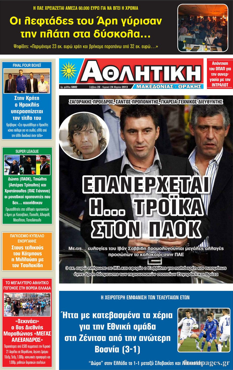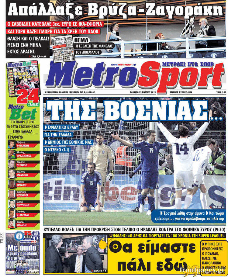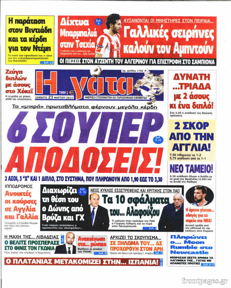 Οι αθλητικές εφημερίδες Enikos Newsroom 09:14, Σάββατο 23 Μαρτίου 2013 Media Οι αθλητικές εφημερίδες Τα πρωτοσέλιδα των αθλητικών εφημερίδων. ΑΘΛΗΤΙΚΕΣ ΕΦΗΜΕΡΙΔΕΣ ΕΦΗΜΕΡΙΔΕΣ ΠΡΩΤΟΣΕΛΙΔΑ Μοιράσου το: σχολίασε κι εσύ (0 σχόλια) Ακολουθήστε το enikos.gr στο Google News και μάθετε πρώτοι όλες τις ειδήσεις Δείτε όλες τις τελευταίες ειδήσεις από την Ελλάδα και τον Κόσμο στο enikos.gr Ειδήσεις Ροή Ειδήσεων 2 ώρες πριν Δημοσκόπηση Metron Analysis: Στις 10 μονάδες η διαφορά ΝΔ-ΠΑΣΟΚ, στην 3η θέση η Πλεύση Ελευθερίας – 8 στους 10 στηρίζουν τον αγώνα των αγροτών 6 ώρες πριν Αγρότες: «Όχι στον διάλογο, μας εμπαίζει η κυβέρνηση» – Αποφάσισαν κλιμάκωση των κινητοποιήσεων, τι θα γίνει τα Χριστούγεννα 2 ώρες πριν Νίκος Παππάς στον ΑΝΤ1: «Δεν κρύβομαι – Μετά το συμβάν ακολούθησα κανονικά το πρόγραμμά μου» – ΒΙΝΤΕΟ 3 ώρες πριν Αθήνα: Εξαρθρώθηκε εγκληματική οργάνωση που διακινούσε ναρκωτικά σε μορφή σοκολάτας – Δύο τράπερ ανάμεσα στους 4 συλληφθέντες – ΒΙΝΤΕΟ 1 ώρα πριν Διαμαντής Καραναστάσης: Οδηγούσε υπό την επήρεια αλκοόλ – Του αφαιρέθηκε το δίπλωμα και του επιβλήθηκε πρόστιμο 350 ευρώ 2 ώρες πριν Manifesting: Πώς να συναντήσετε τον σύντροφο της ζωής σας, ανάλογα με τον μήνα γέννησής σας 4 ώρες πριν Γάμος: 11 ψυχρές αλλά ευγενικές φράσεις, που λέει ένας άνδρας όταν σκέφτεται τον χωρισμό 3 ώρες πριν Σφουγγάρισμα: Η συνήθεια που θα σας βοηθήσει να διατηρήσετε το σπίτι σας καθαρό και τακτοποιημένο 2 ημέρες πριν 20 χρόνια τα Χριστούγεννα ξεκινούν στα Public με μεγάλη ποικιλία σε δώρα! 3 λεπτά πριν Ούρσουλα φον ντερ Λάιεν: Μετατίθεται για τον Ιανουάριο η υπογραφή της εμπορικής συμφωνίας «ΕΕ-MERCOSUR» 9 λεπτά πριν Φοινικούντα: Το Σάββατο απολογείται ο 30χρονος γιος γνωστού επιχειρηματία της Πλάκας που παραδόθηκε – Όσα είπε στους αστυνομικούς και ο ρόλος του στο έγκλημα 18 λεπτά πριν Αυξάνουν την πίεση προς την κυβέρνηση οι αγρότες: Κλείνουν παρακαμπτήριους και ανοίγουν διόδια – Τι θα γίνει τις γιορτές 23 λεπτά πριν Ελισάβετ Κωνσταντινίδου για τον Γεράσιμο Μιχελή και την Πόπη Χριστοδούλου: «Ξέρω ότι έχουν πάει απλώς κάπου αλλού, ότι δεν είναι ο θάνατος έτσι όπως τον έχουμε στο μυαλό μας» 28 λεπτά πριν Κρήτη: Νέες αποκαλύψεις για τον 54χρονο που κατηγορείται ότι εξαπάτησε τους γονείς του 33χρονου – Ζητούσε τρίχες αγνοουμένων ENIKOS NETWORK Σε περίοδο αυξημένης δραστηριότητας η γρίπη στην Ελλάδα-Μέτρα προστασίας από τον ΕΟΔΥ Σκέφτεστε συνέχεια συζητήσεις που έχετε κάνει; Τι σημαίνει αυτό, σύμφωνα με ειδικό Λαγκάρντ: Αισιόδοξη για την ανάπτυξη της Ευρωζώνης, αβέβαιη για τον πληθωρισμό ΑΣΕΠ 2ΓΒ/2025: Σήμερα αρχίζει η υποβολή ενστάσεων – Πότε θα βγουν τα οριστικά αποτελέσματα Χαρτογραφώντας το «σημείο χωρίς επιστροφή»: Για πρώτη φορά αποκαλύπτεται με λεπτομέρεια το ακανθώδες όριο της ατμόσφαιρας τ... Η Google καταργεί τη λειτουργία «dark web report» – Πώς θα μπορούν οι χρήστες να διαγράφουν τα δεδομένα τους περισσότερα 17:45 , Πέμπτη 18 Δεκεμβρίου 2025 ROUK ZOUK: Εορταστικό επεισόδιο με καλεσμένους τους πρωταγωνιστές του «Γιατί ρε πατέρα» Το Σάββατο 20 Δεκεμβρίου στις 21:00, η Ζέτα Μακρυπούλια υποδέχεται εκλεκτούς ηθοποιούς που όλο... 17:20 , Πέμπτη 18 Δεκεμβρίου 2025 Άγιος έρωτας: Η Χριστίνα εξομολογείται στον πατέρα Νικόλαο, απόψε στις 21:00 στον Alpha Η Νότα αποφασίζει να εκδικηθεί τον Πέτρο και τον Στέφανο, για χάρη του Λούη, όμως τα πράγματα ... 16:50 , Πέμπτη 18 Δεκεμβρίου 2025 Να μ’ αγαπάς: Ζωή και Φωτεινή συμφιλιώνονται ως μάνα με κόρη, απόψε στις 20:00 Η ταυτότη